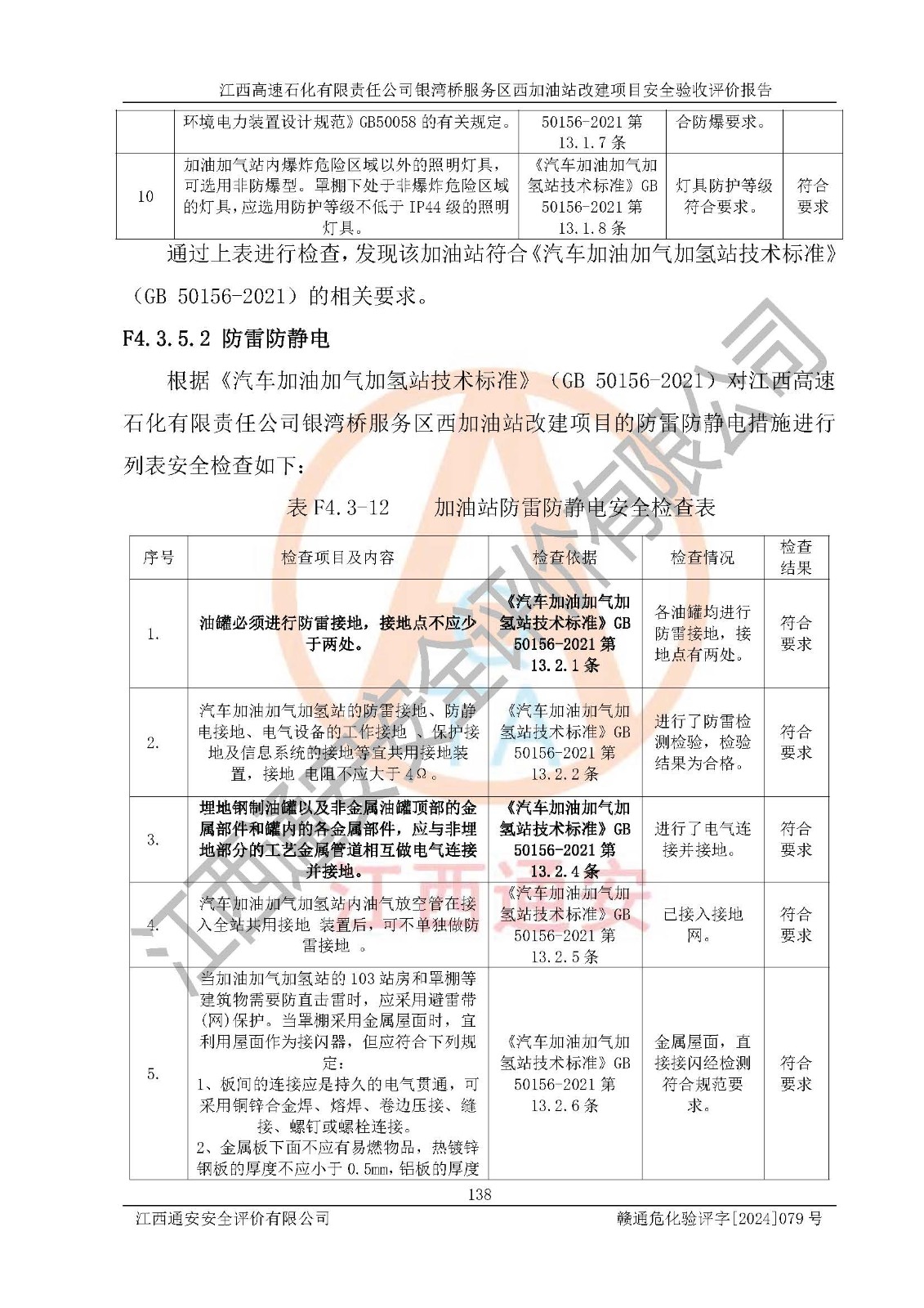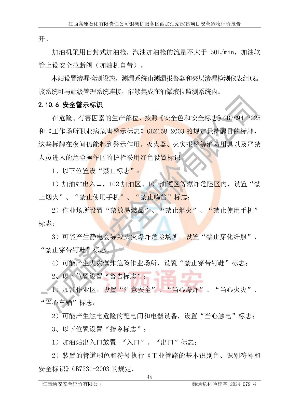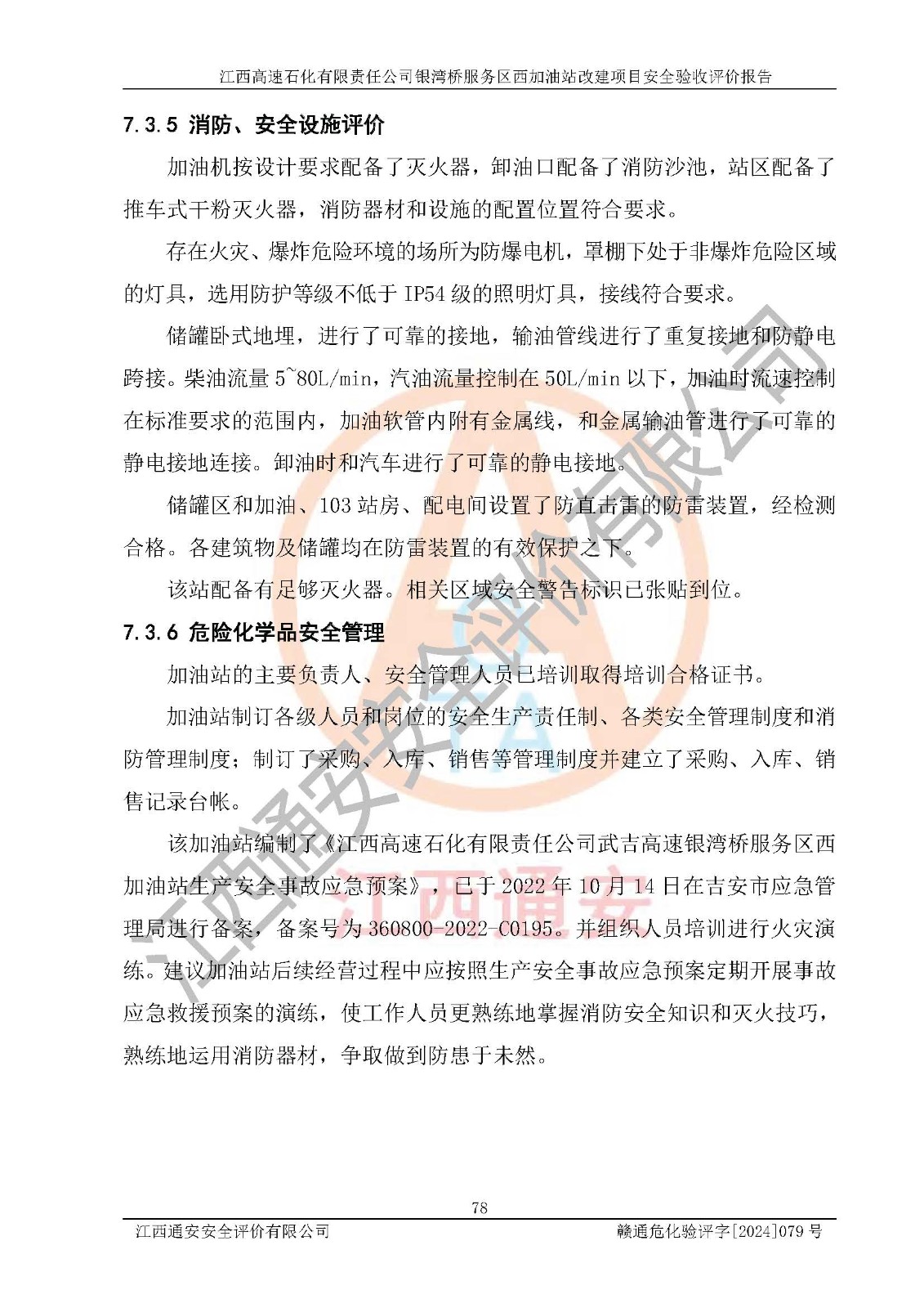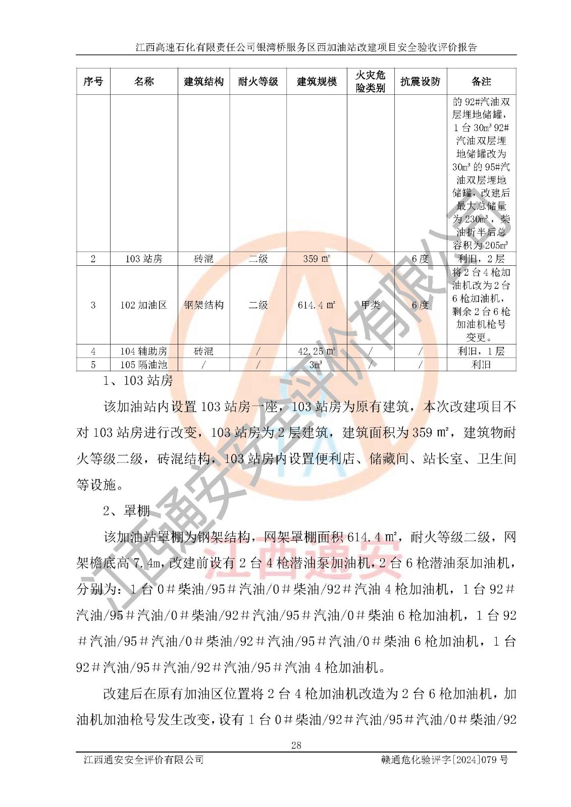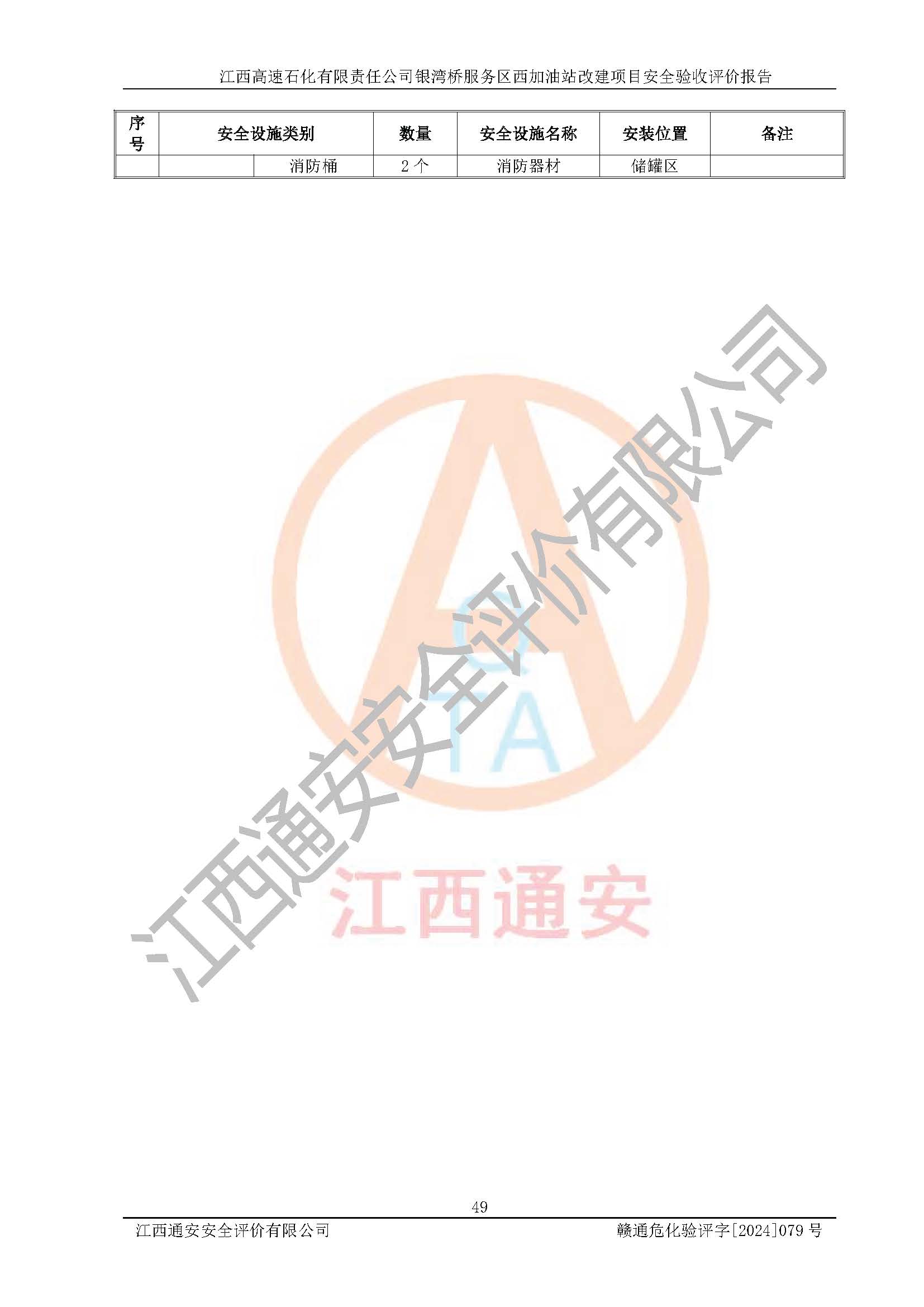 项目名称 | 江西高速石化有限责任公司银湾桥服务区西加油站改建项目安全验收评价报告 | ||||