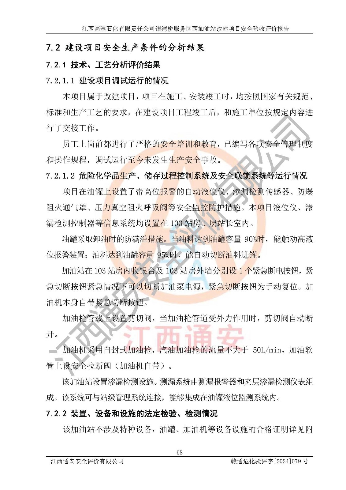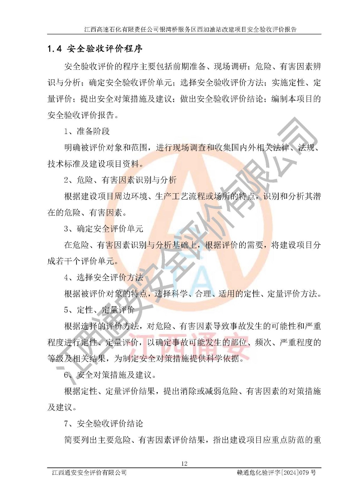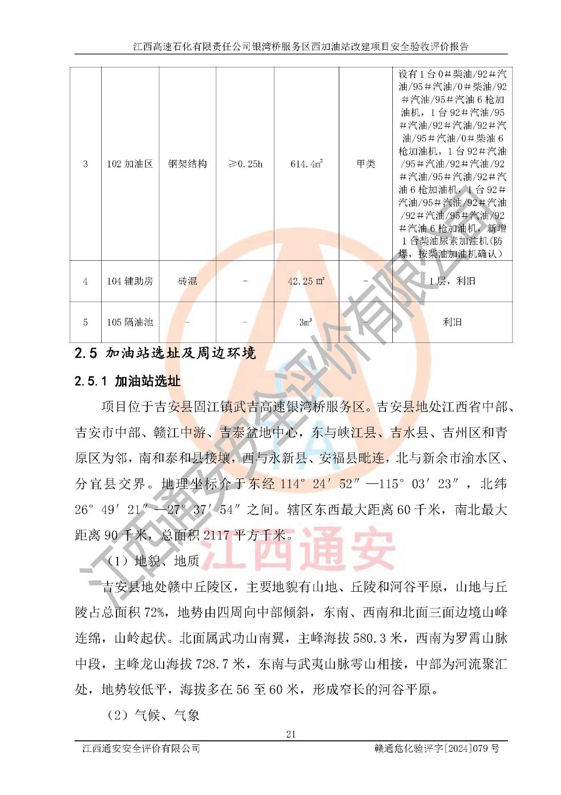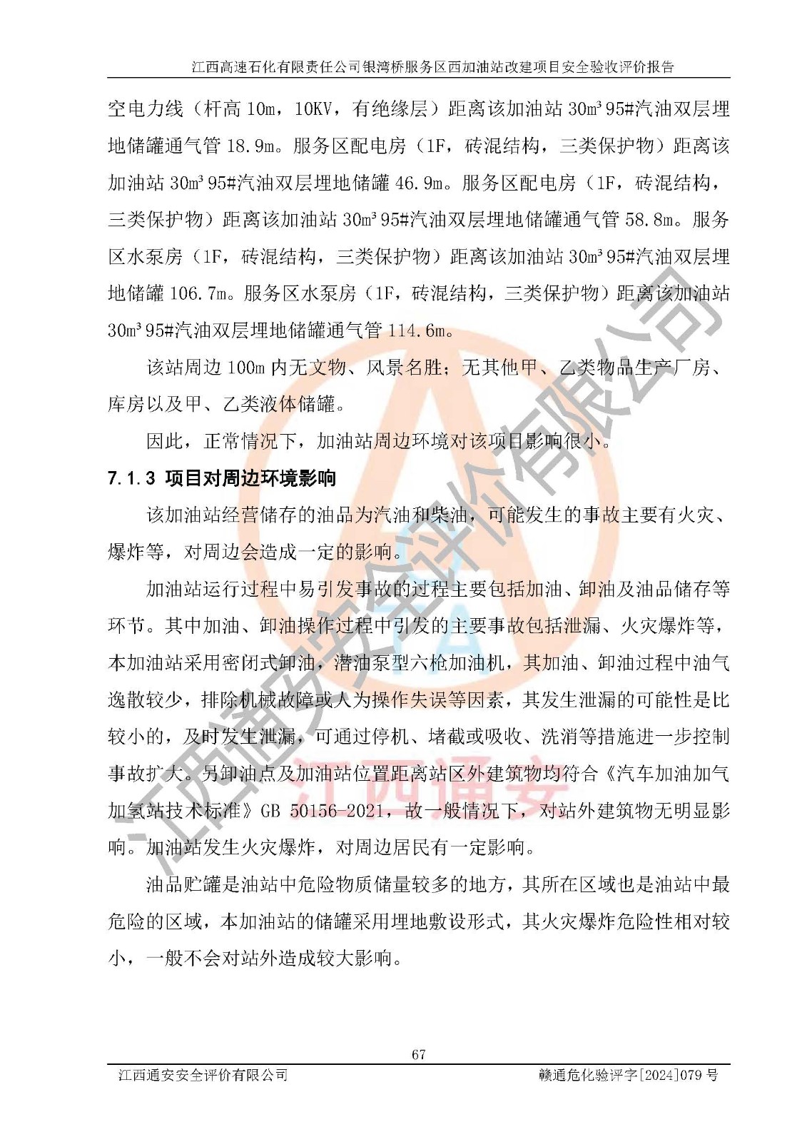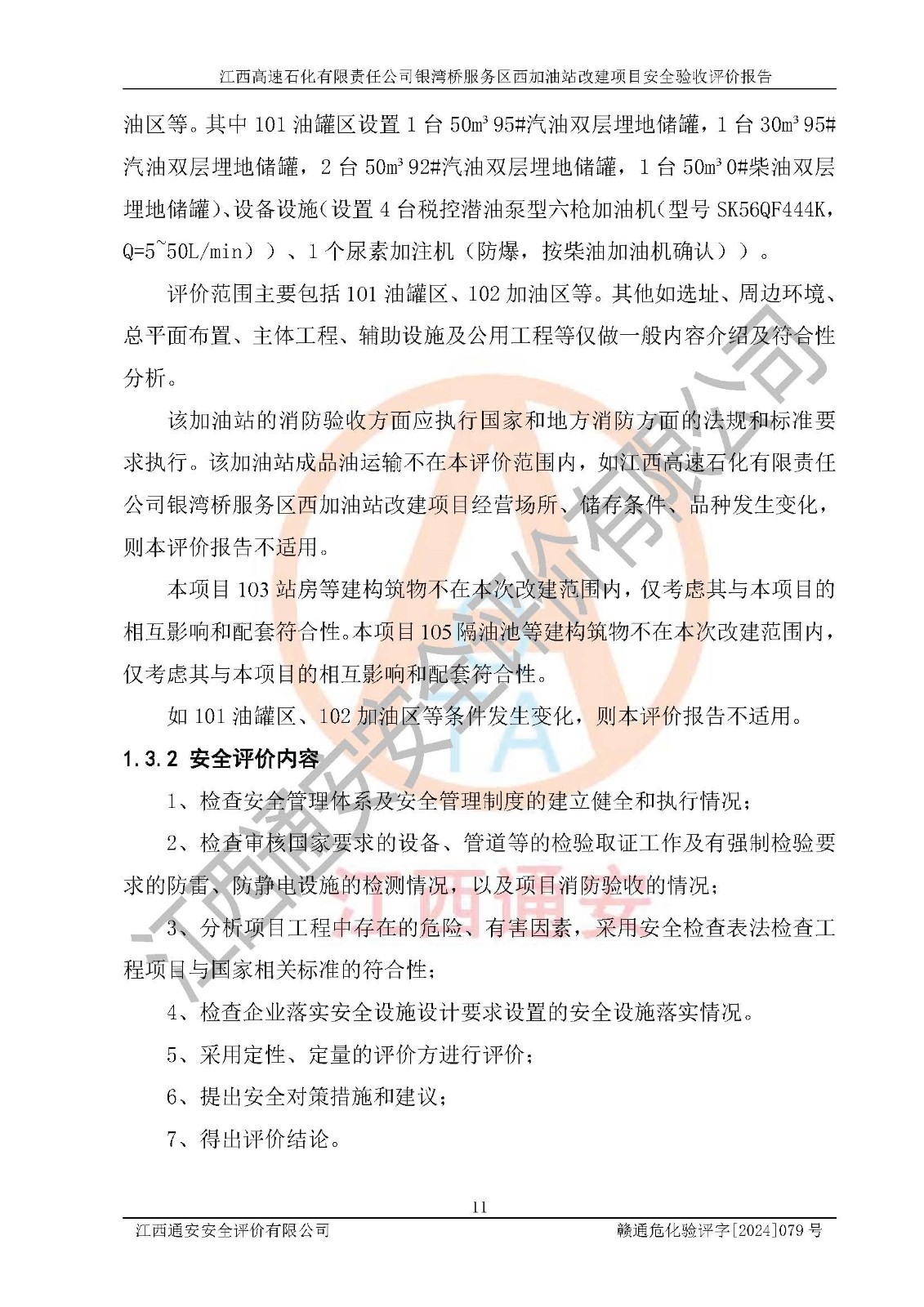 项目名称 | 江西高速石化有限责任公司银湾桥服务区西加油站改建项目安全验收评价报告 | ||||