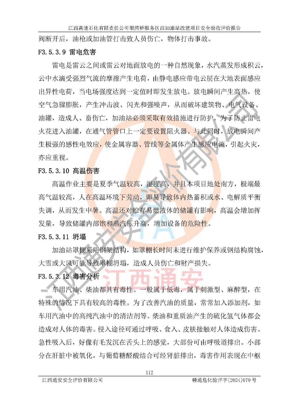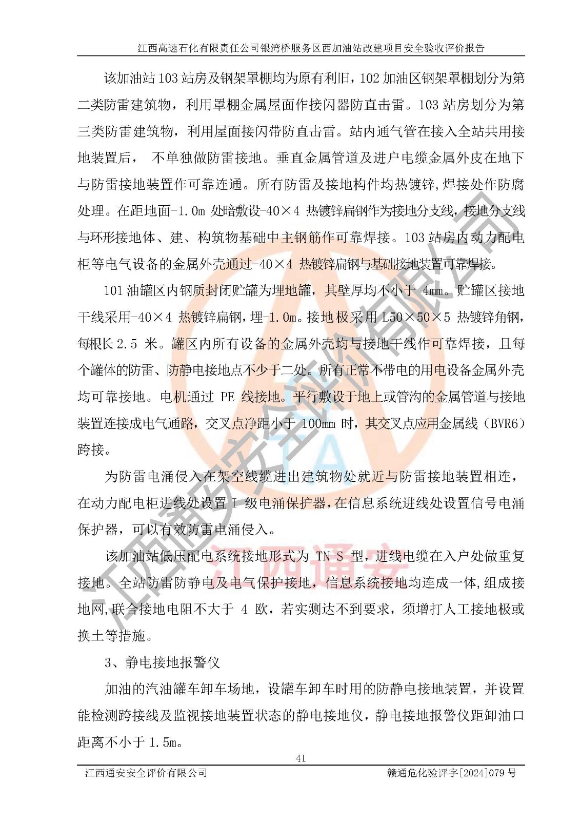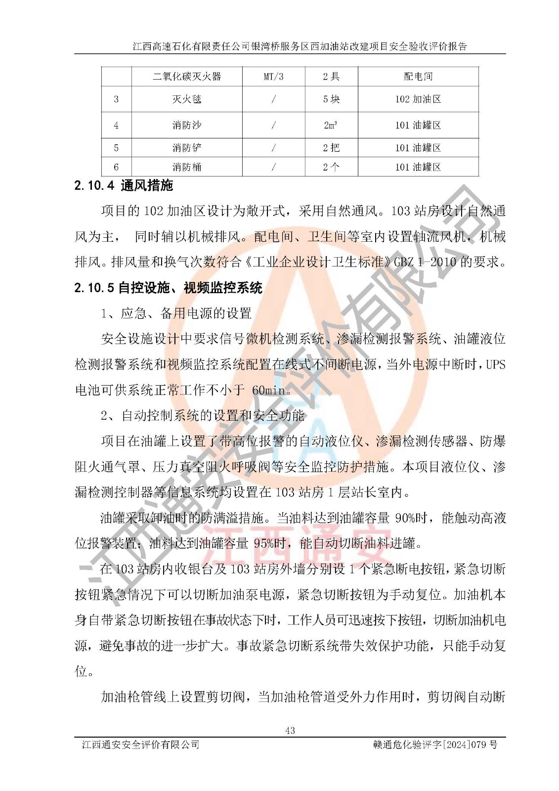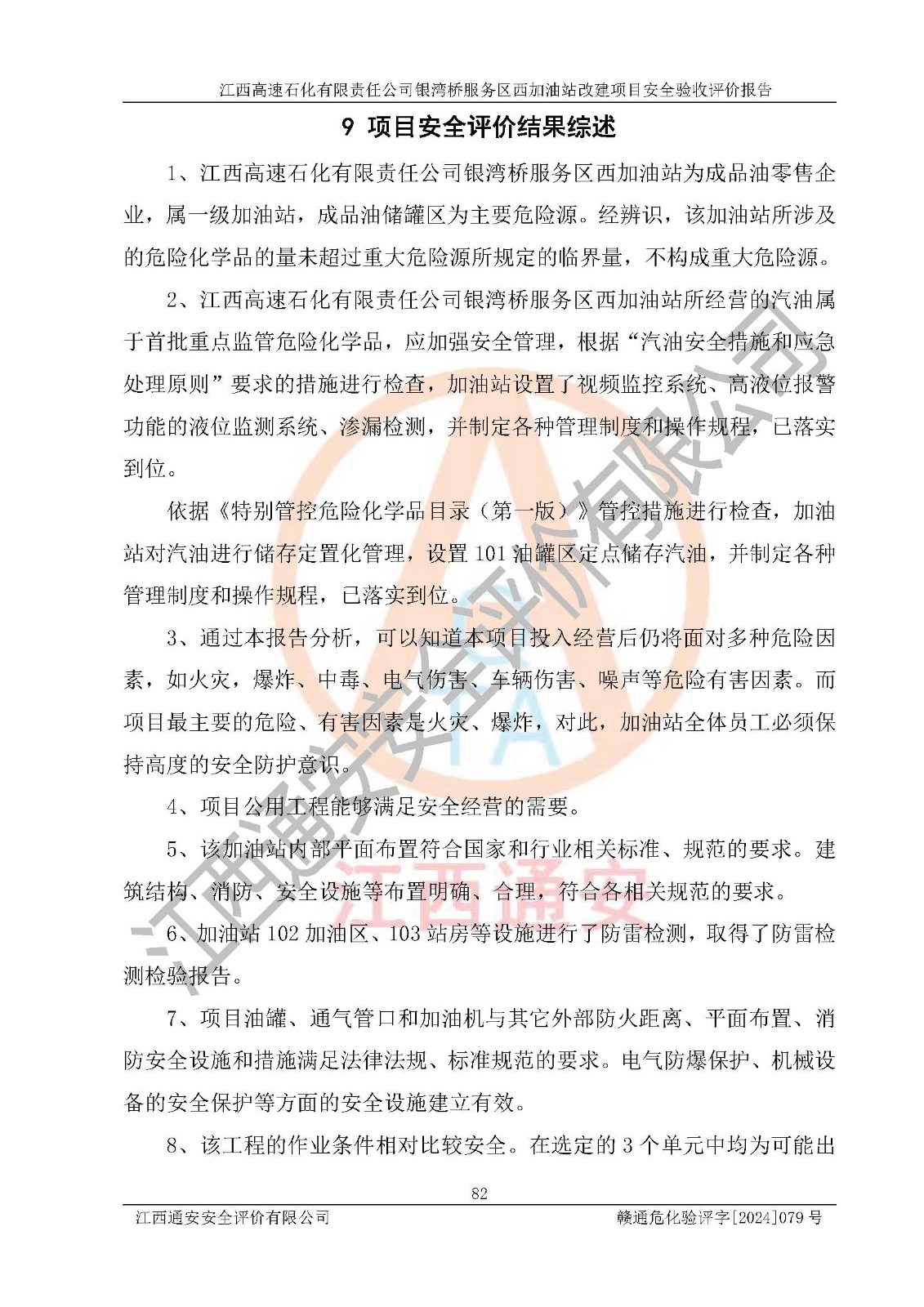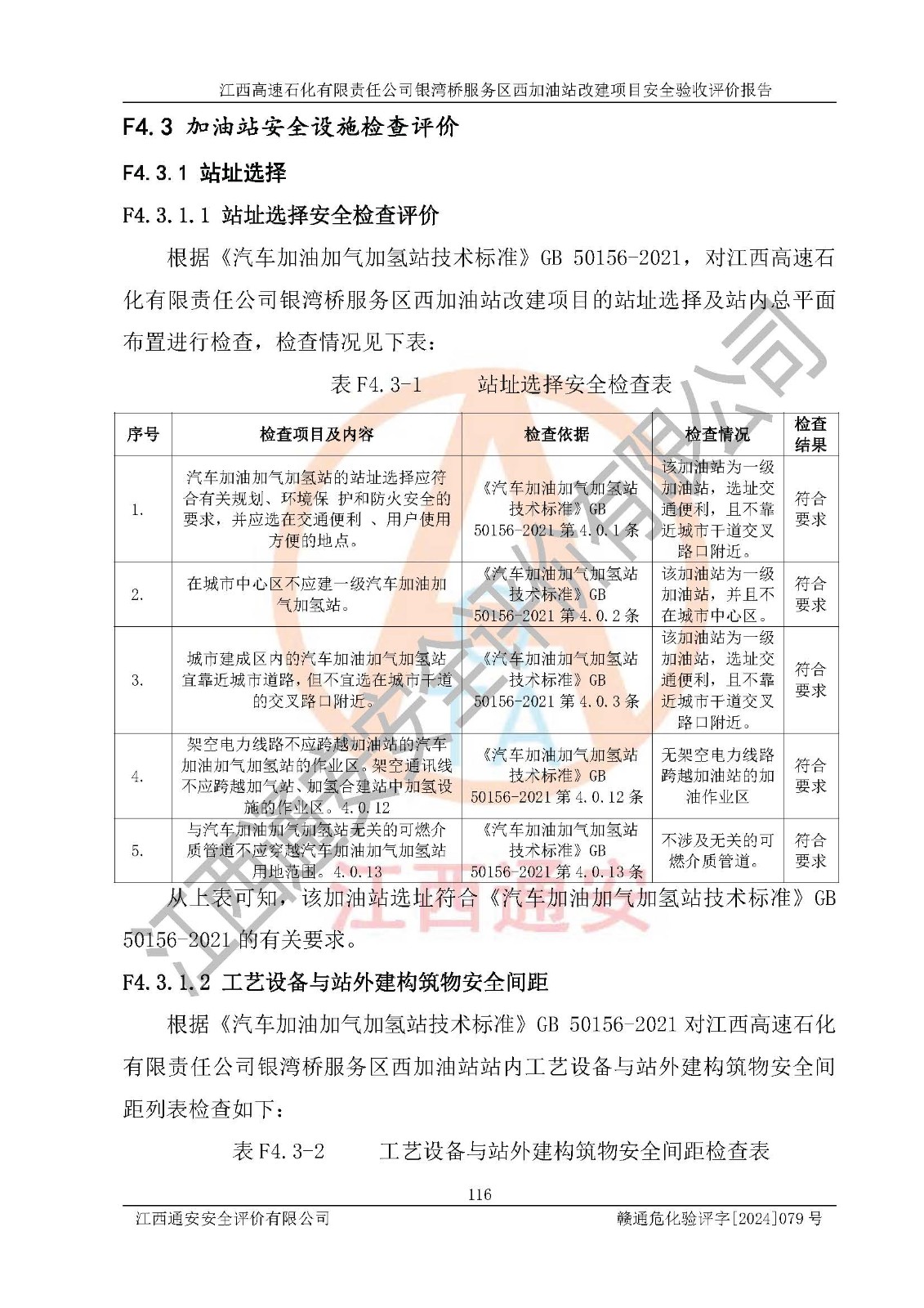 项目名称 | 江西高速石化有限责任公司银湾桥服务区西加油站改建项目安全验收评价报告 | ||||