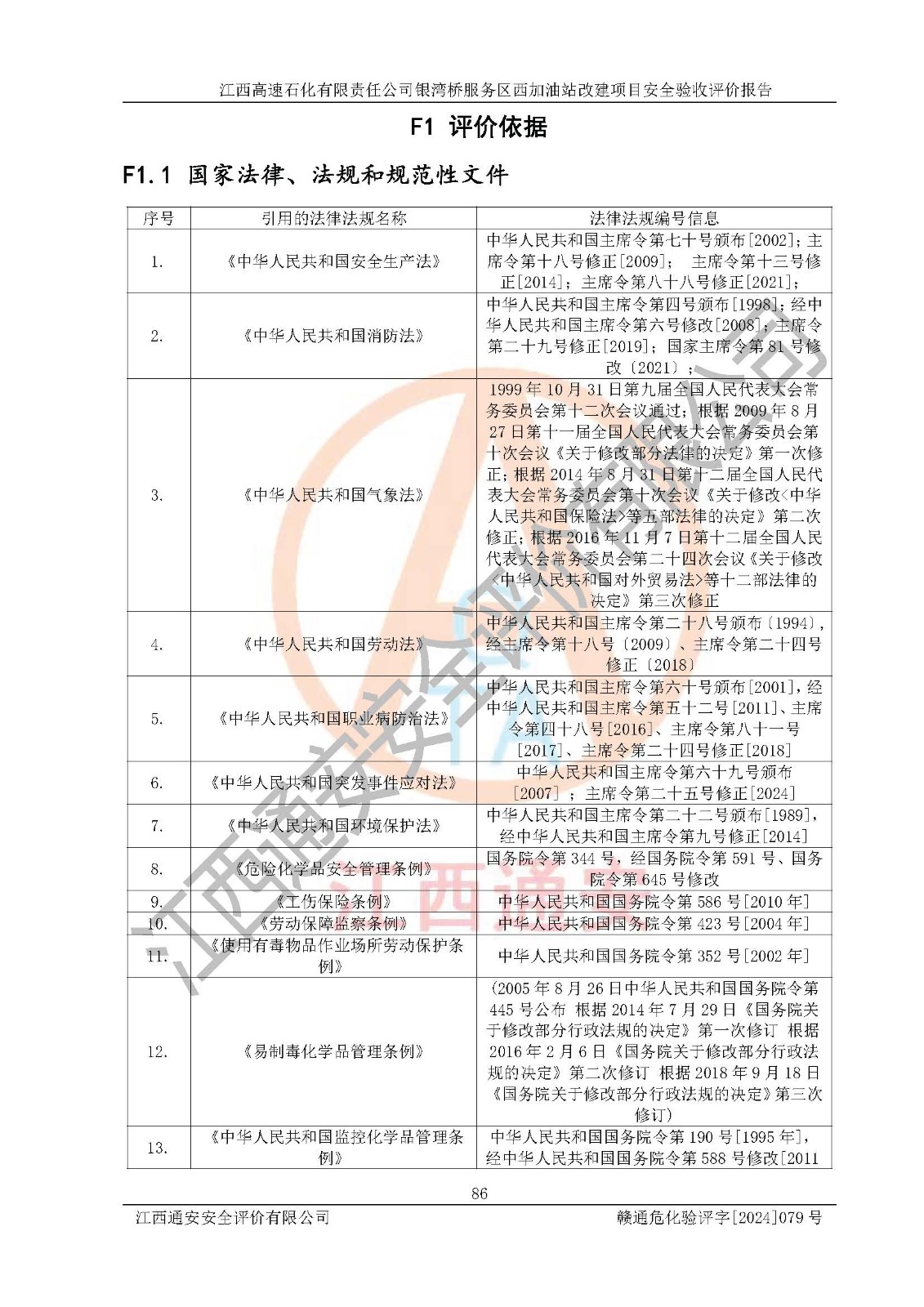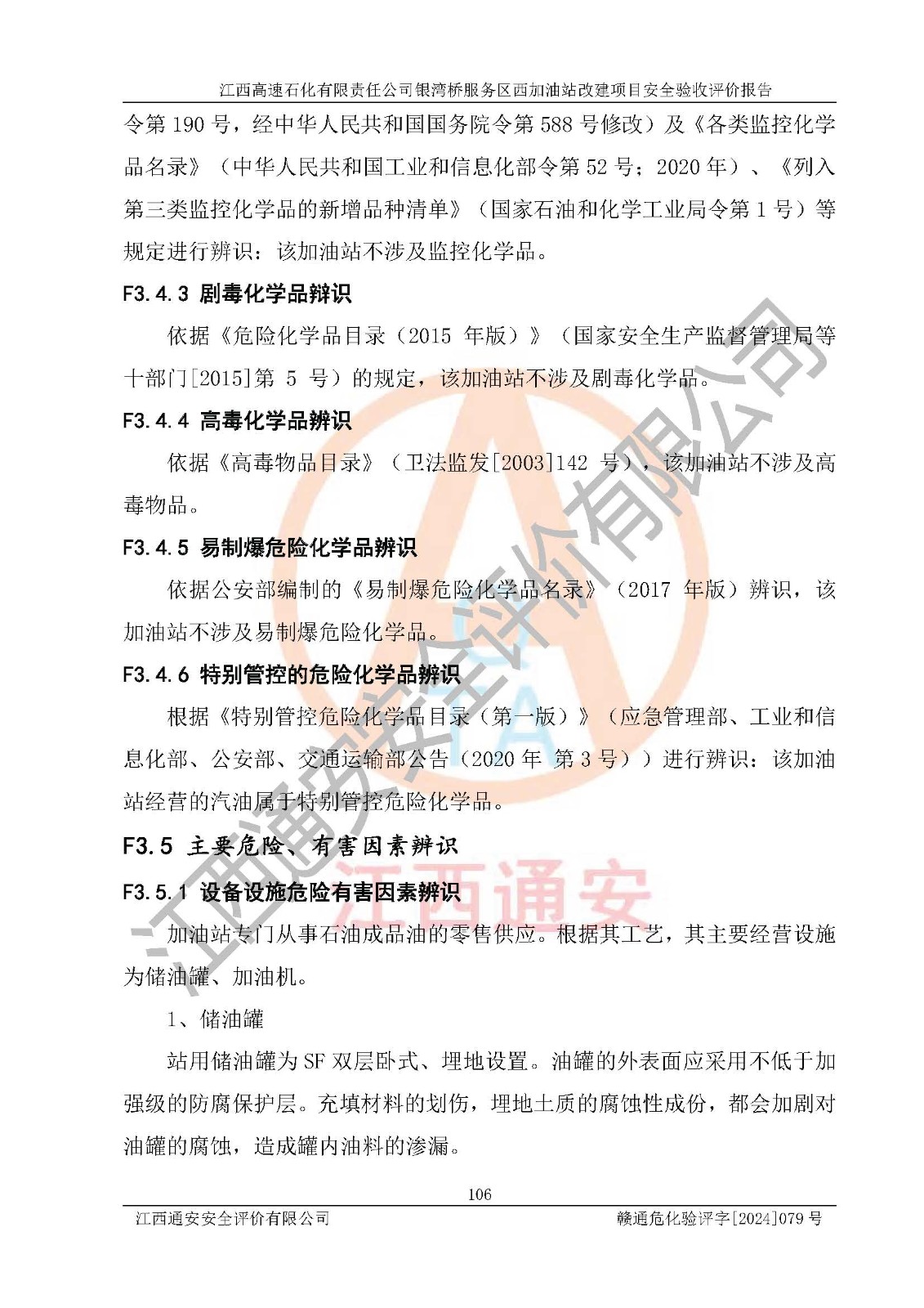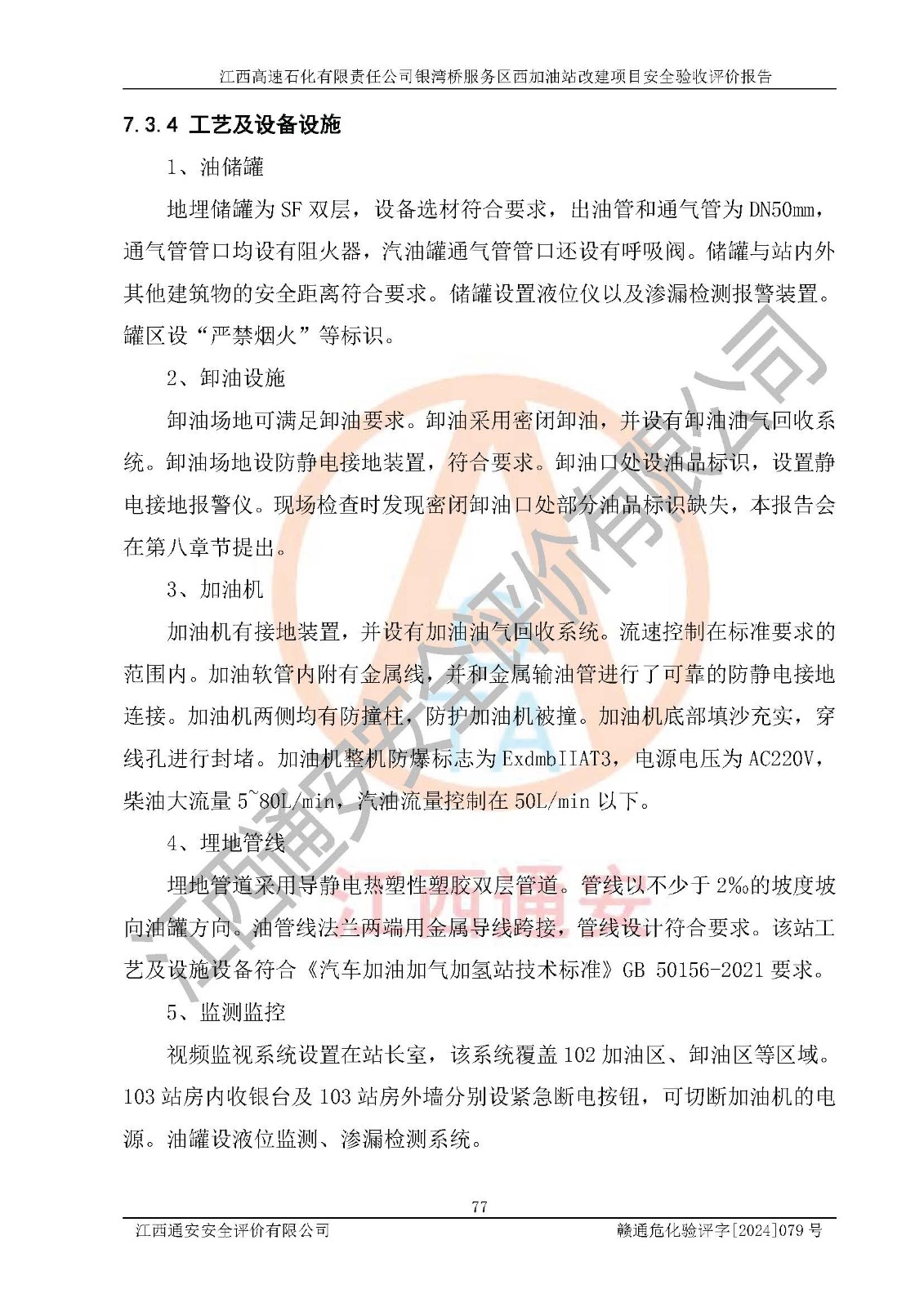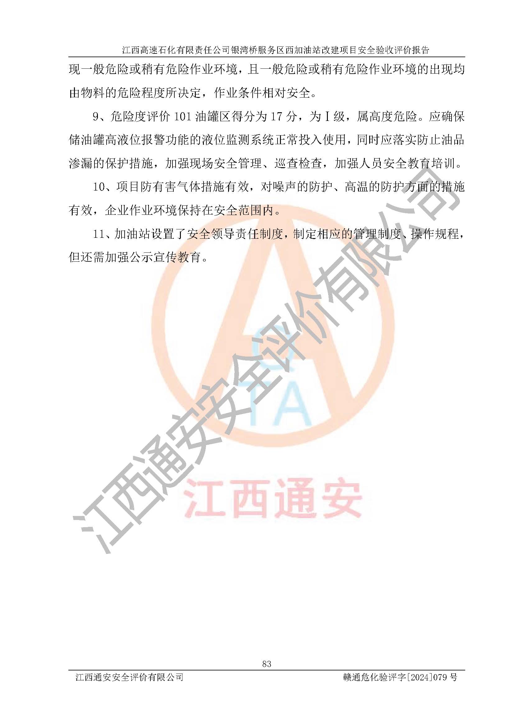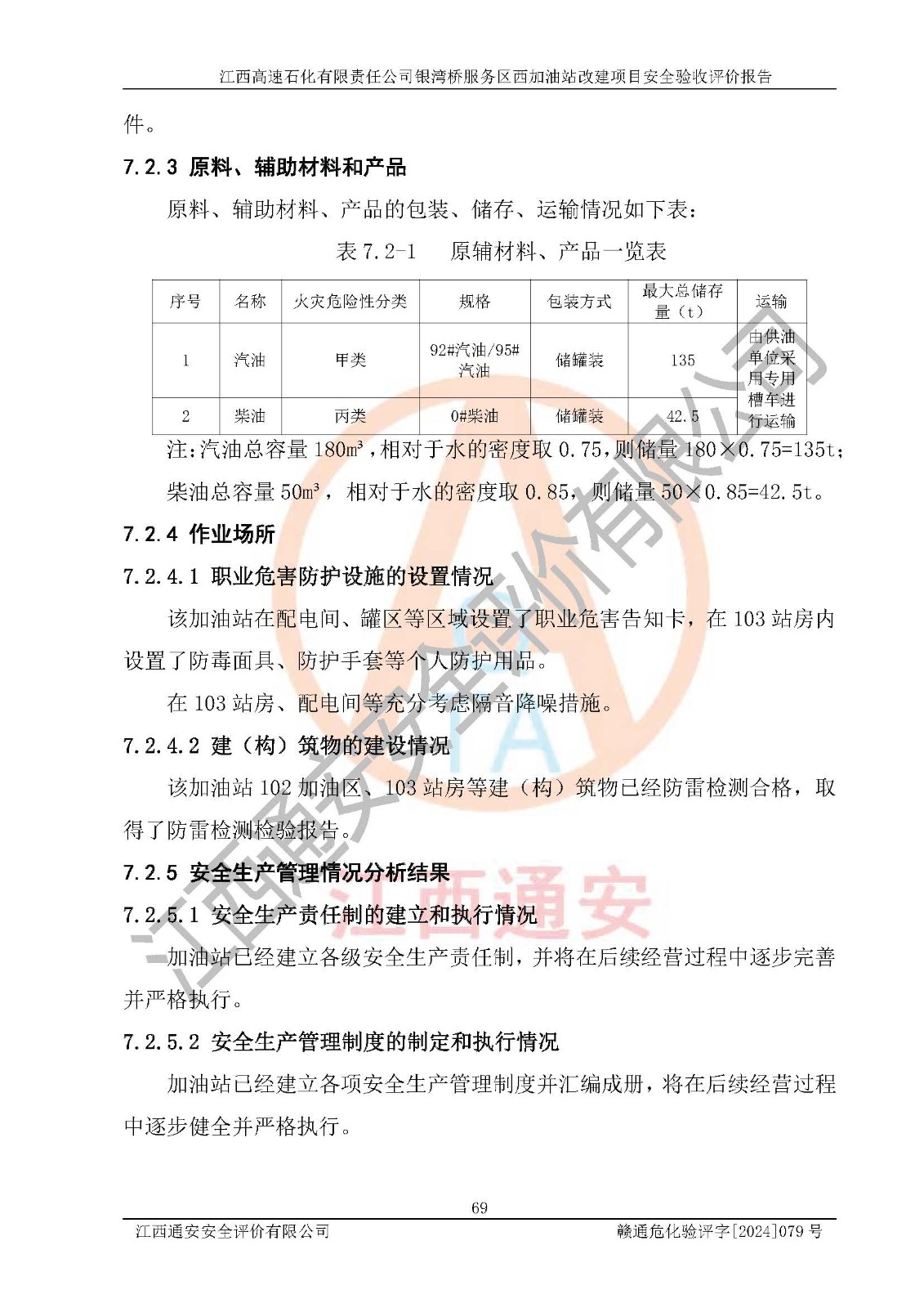 项目名称 | 江西高速石化有限责任公司银湾桥服务区西加油站改建项目安全验收评价报告 | ||||