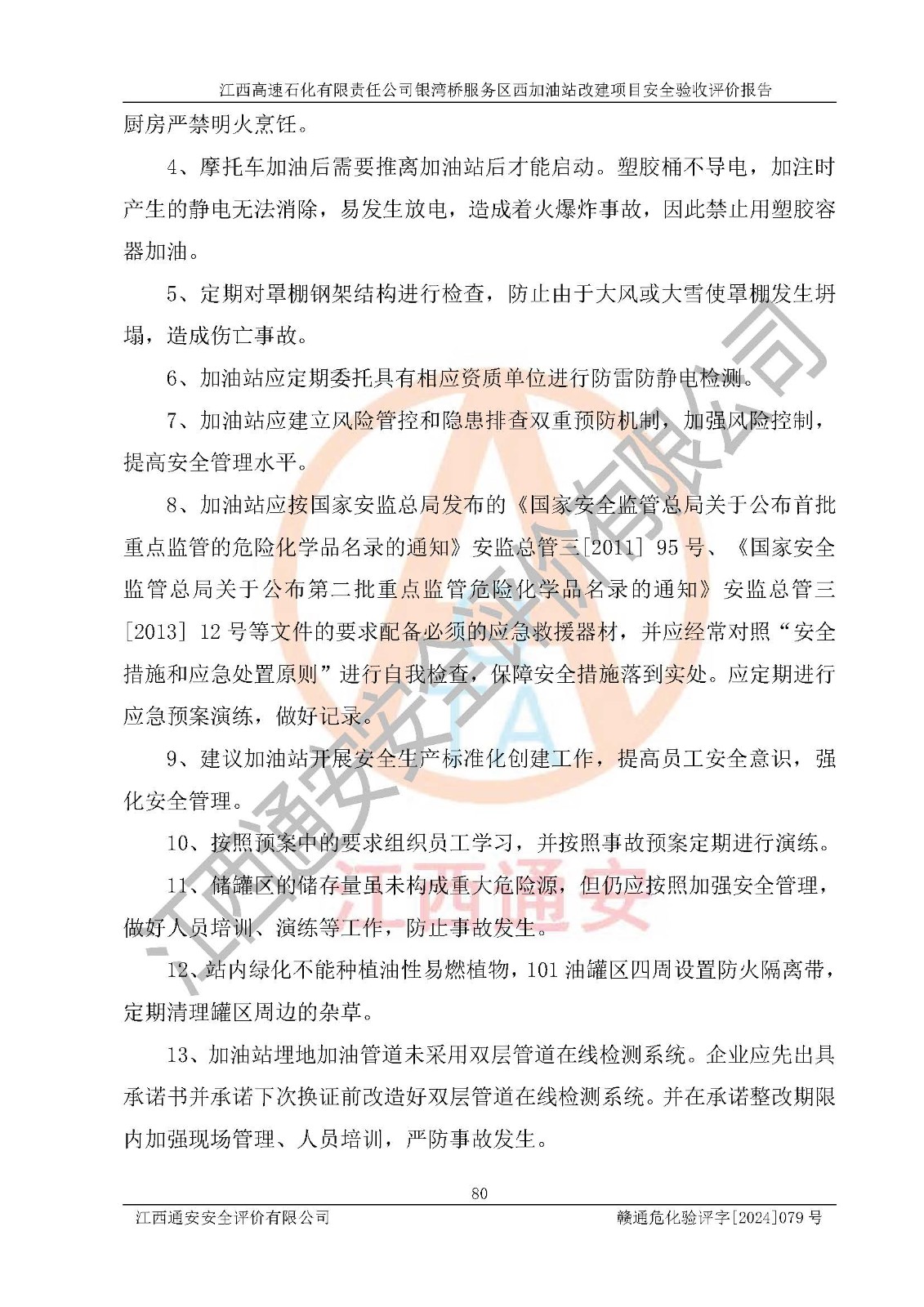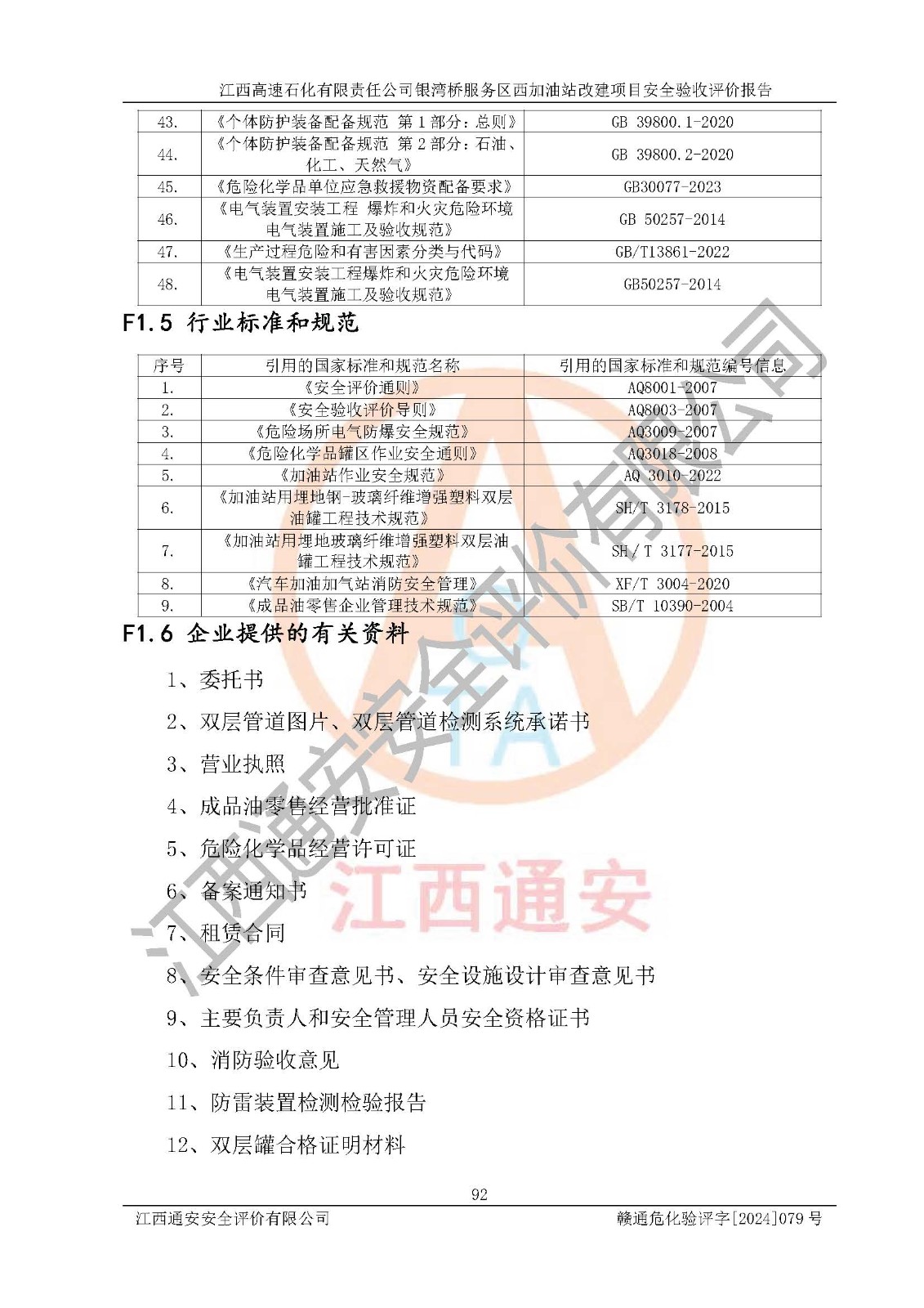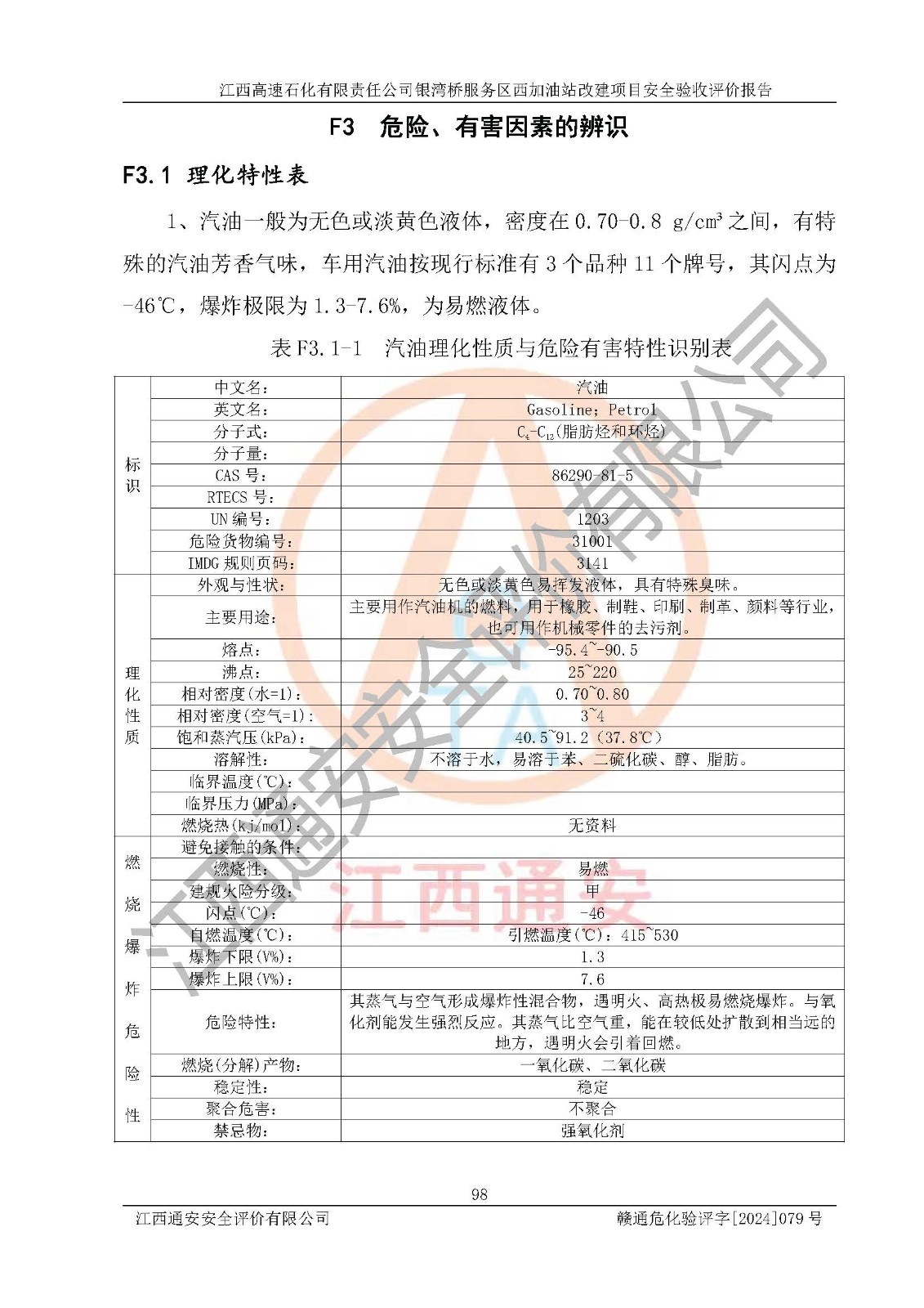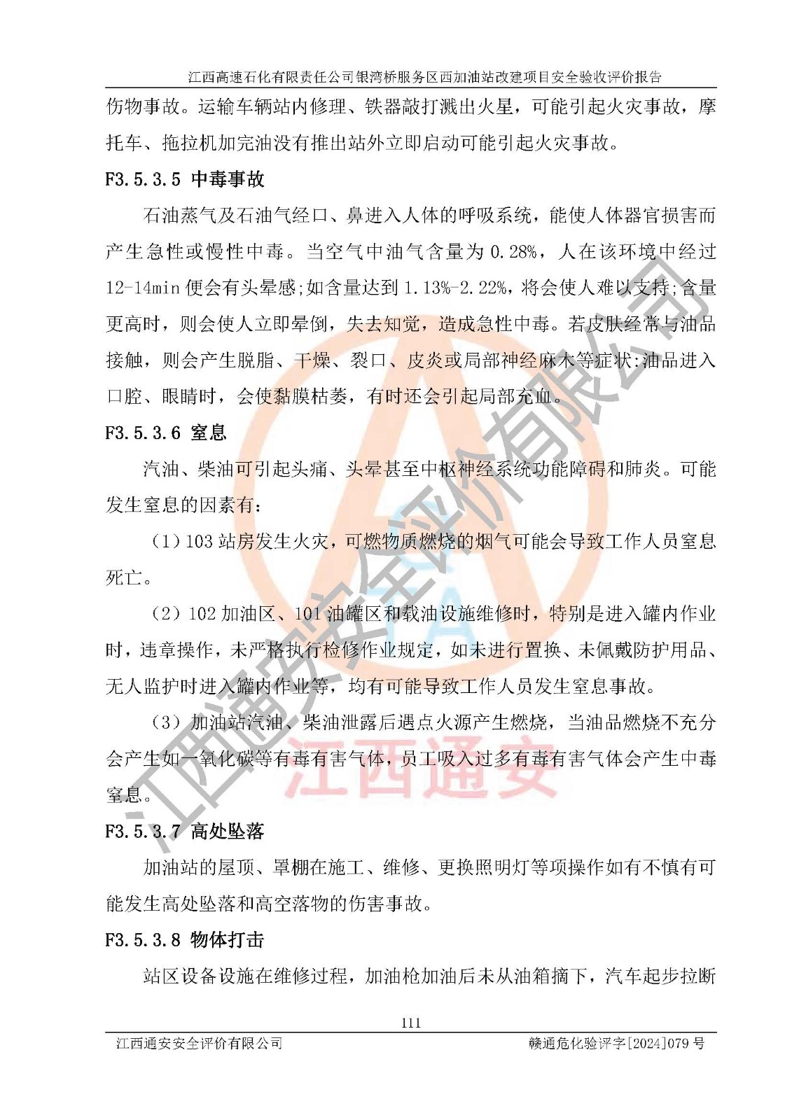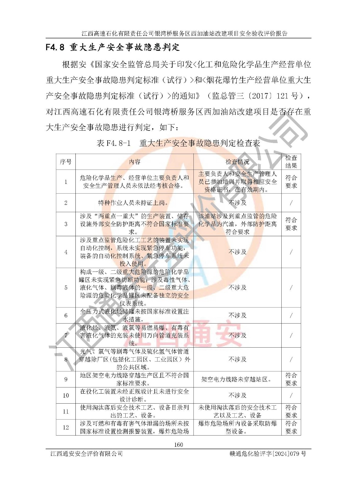 项目名称 | 江西高速石化有限责任公司银湾桥服务区西加油站改建项目安全验收评价报告 | ||||