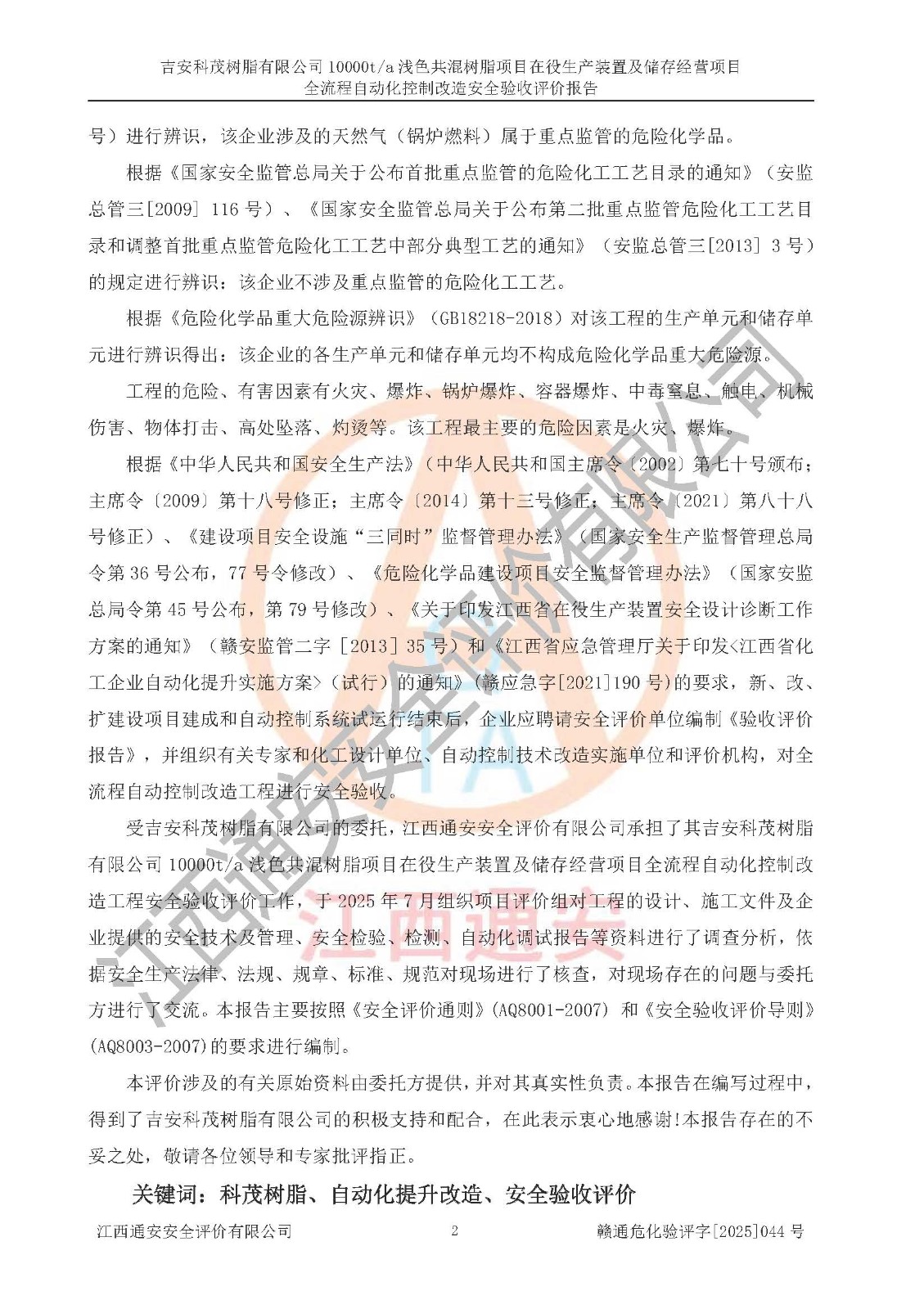 下一篇:江西优润高新材料有限公司年产10000吨纳米颜料浆生产项目安全验收评价报告