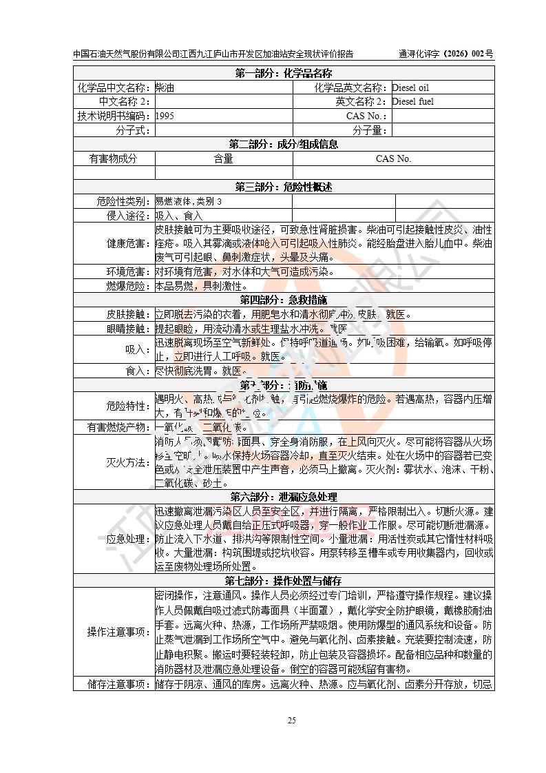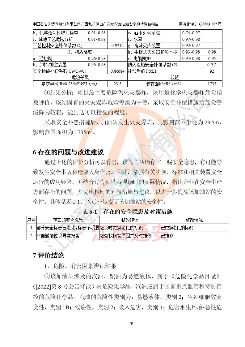 评价报告名称 | 中国石油天然气股份有限公司江西九江庐山市开发区加油站安全现状评价报告 | |||