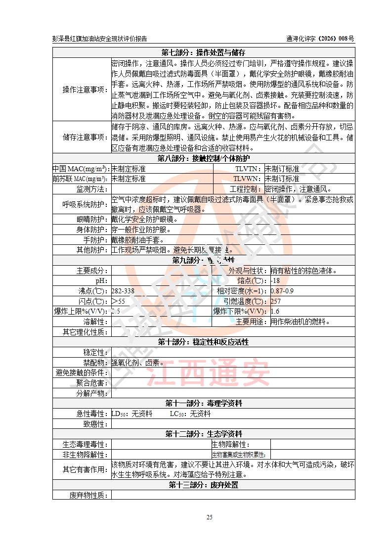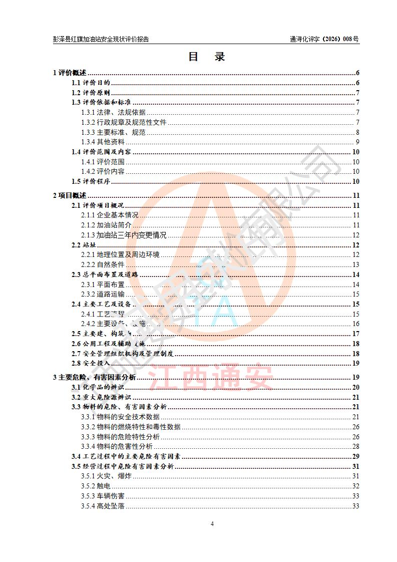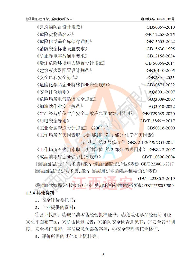 评价报告名称 | 彭泽县红旗加油站安全现状评价报告 | |||