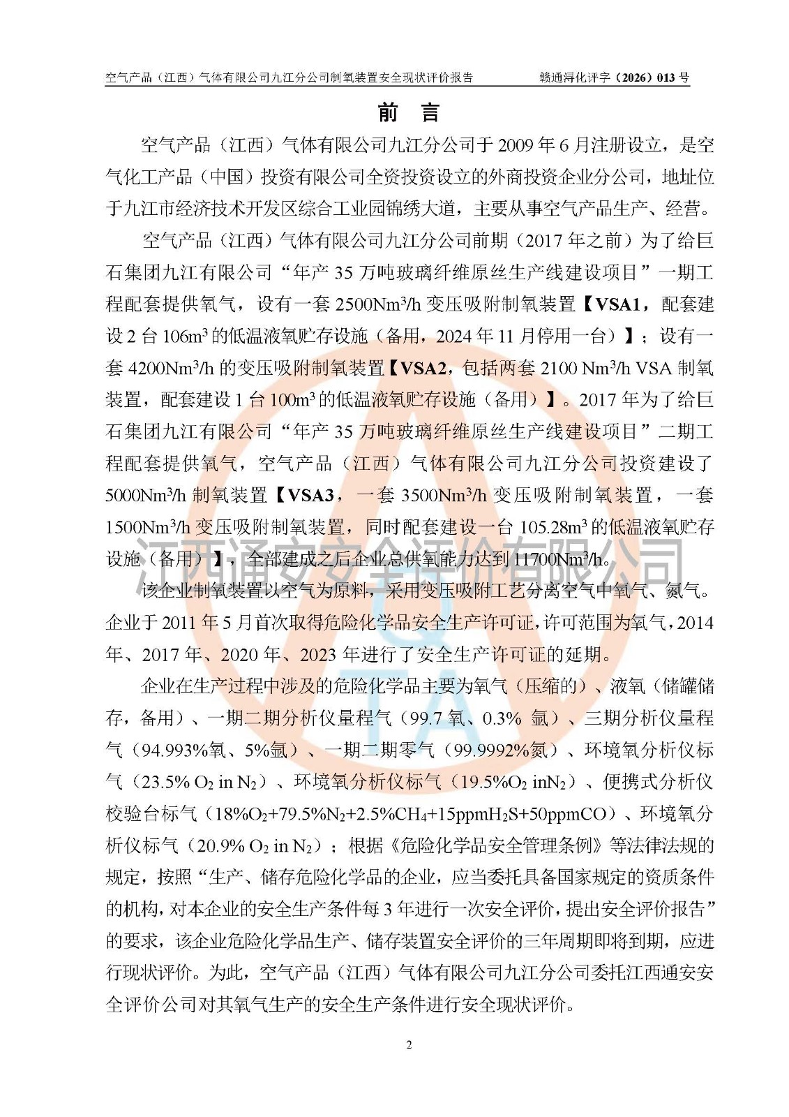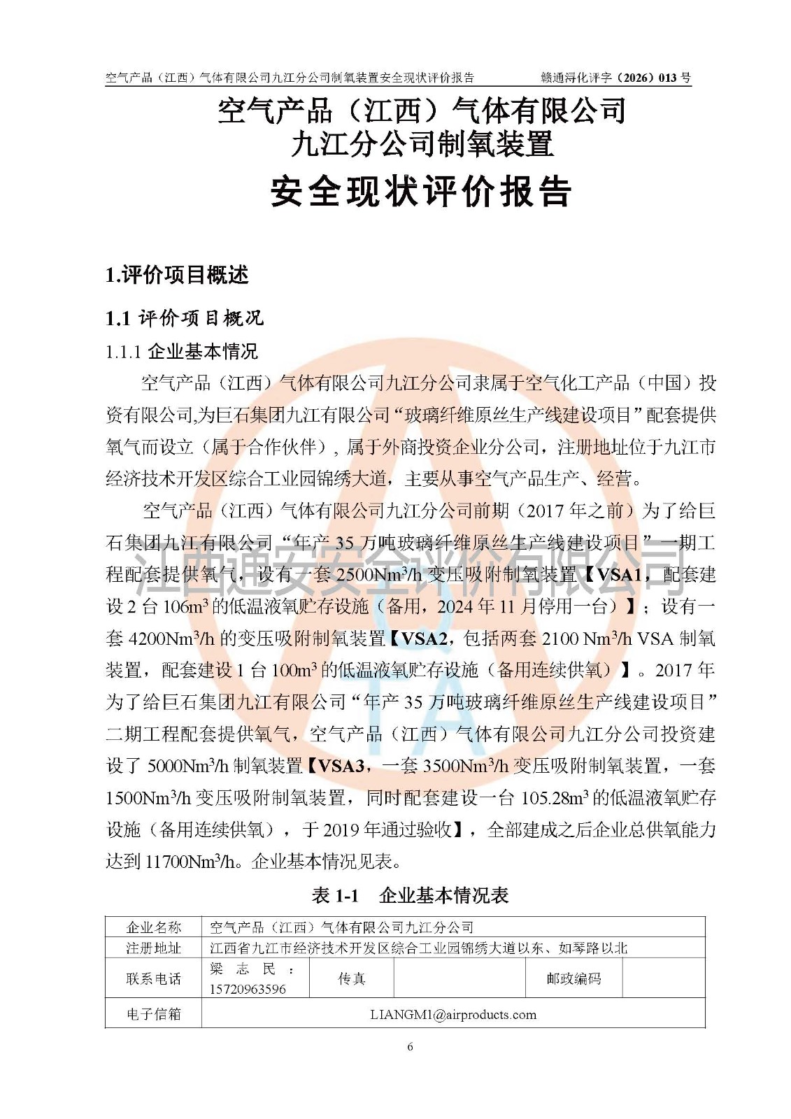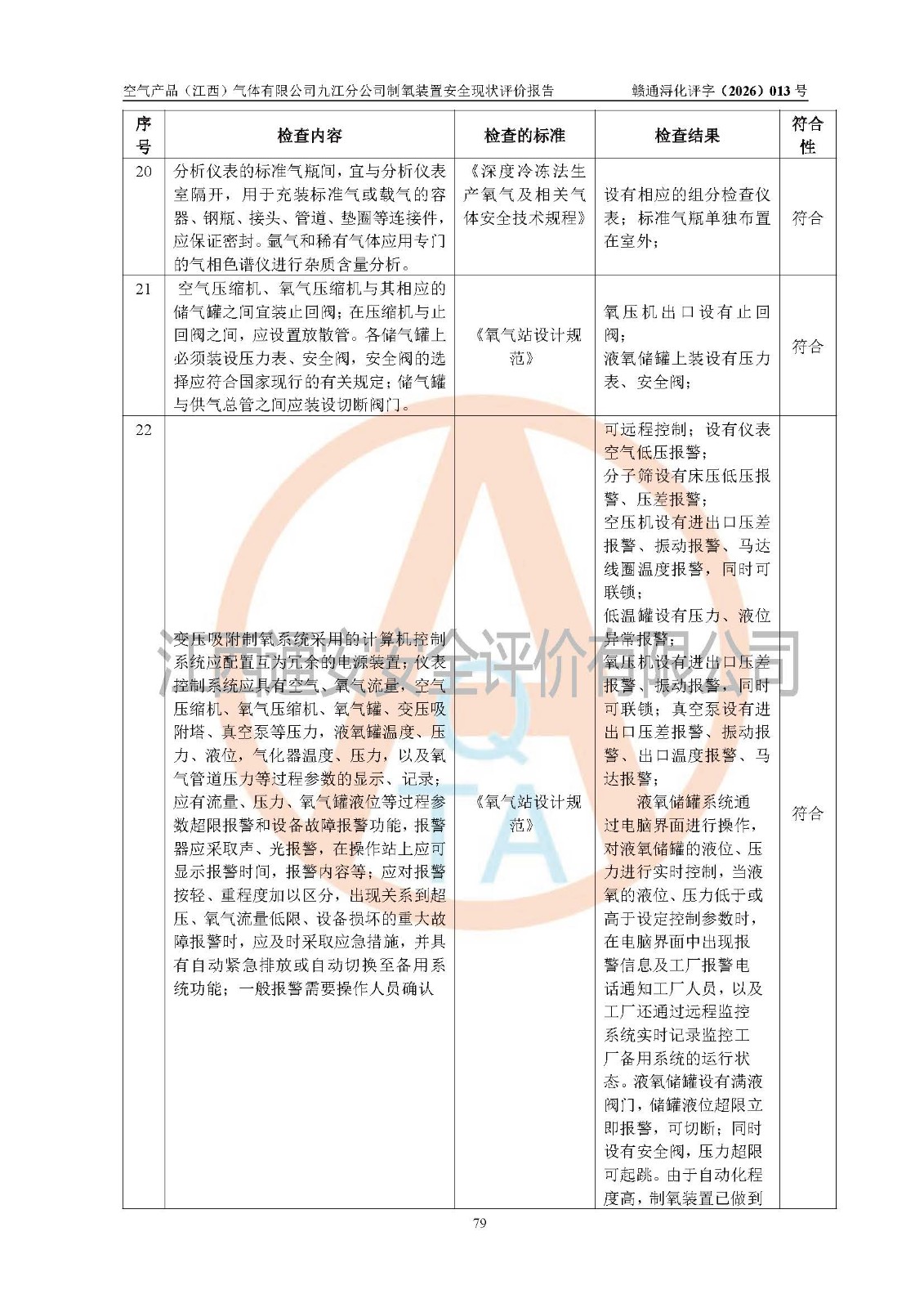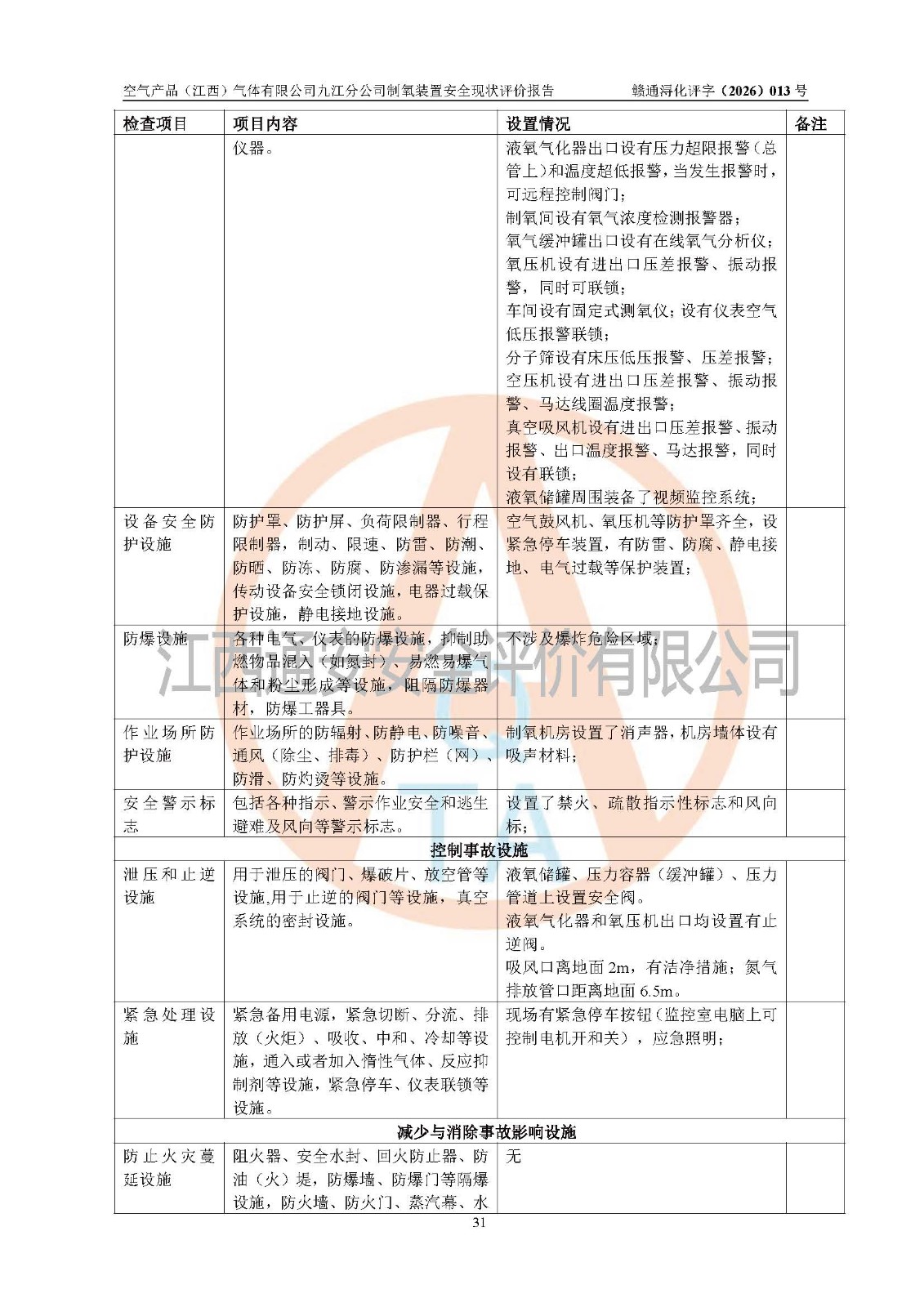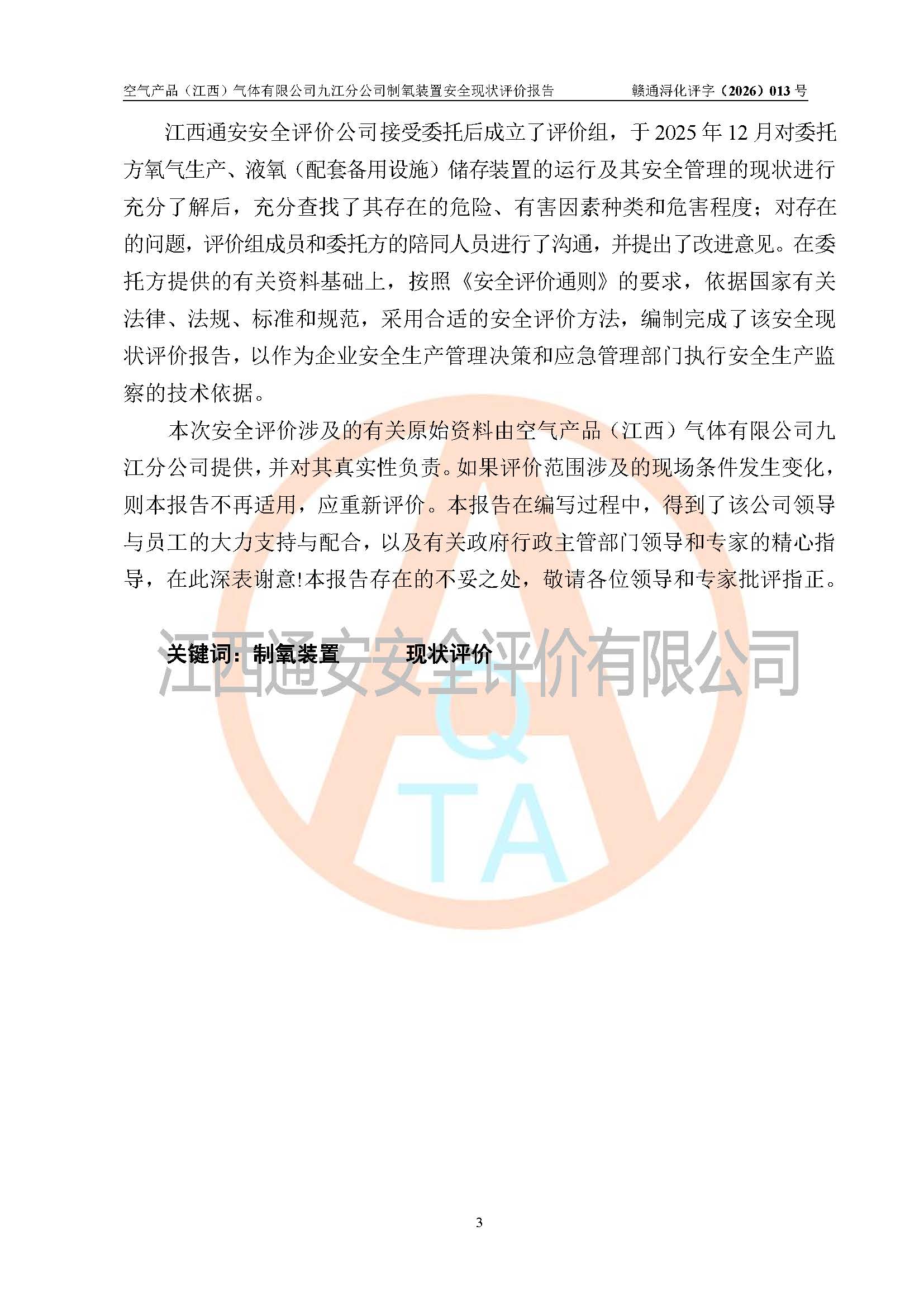 空气产品(江西)气体有限公司九江分公司制氧装置安全现状评价报告