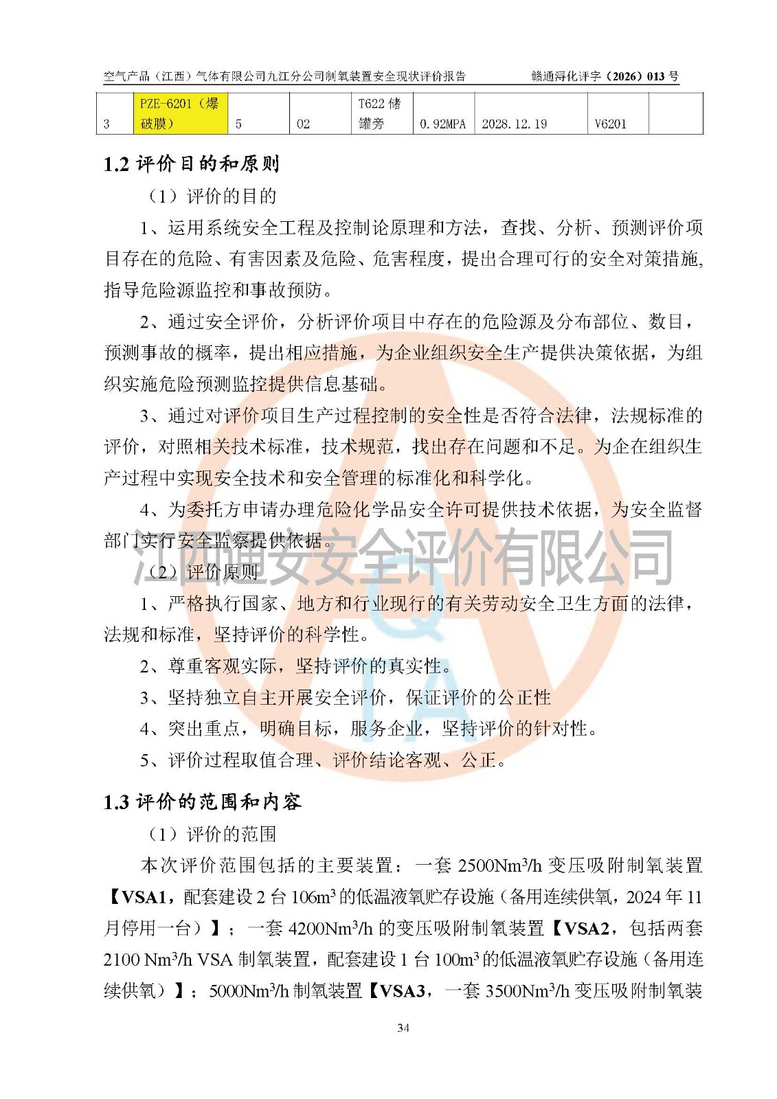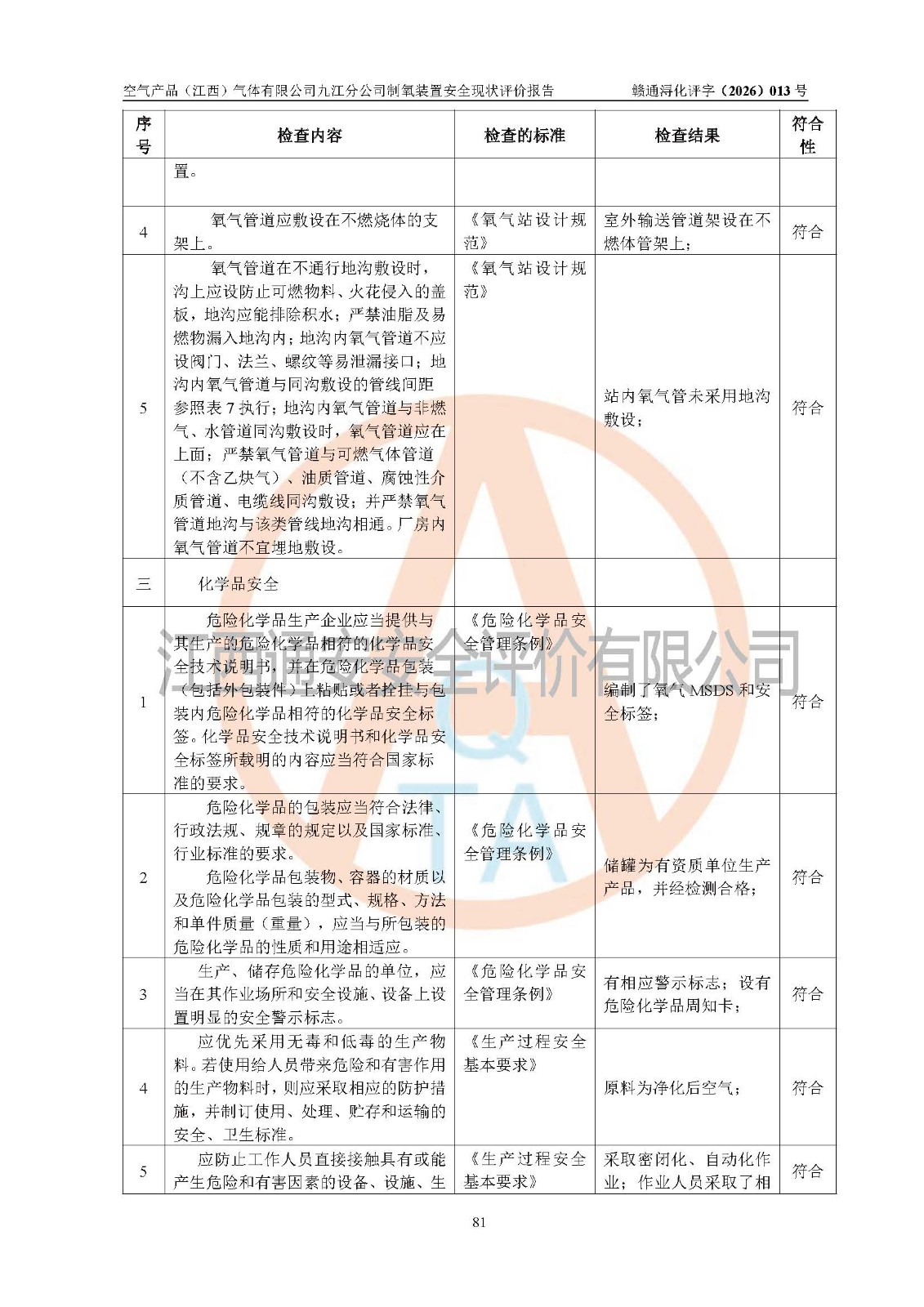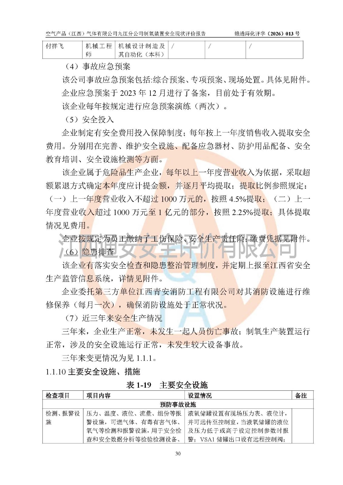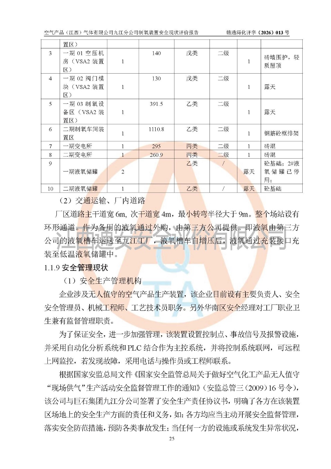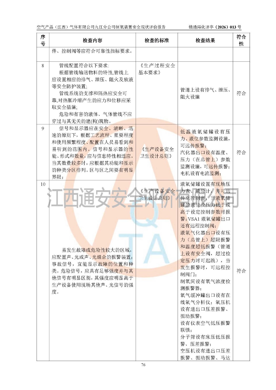 空气产品(江西)气体有限公司九江分公司制氧装置安全现状评价报告