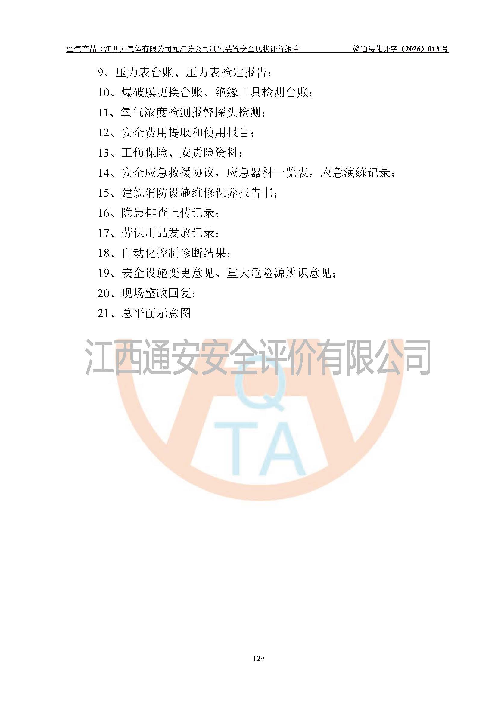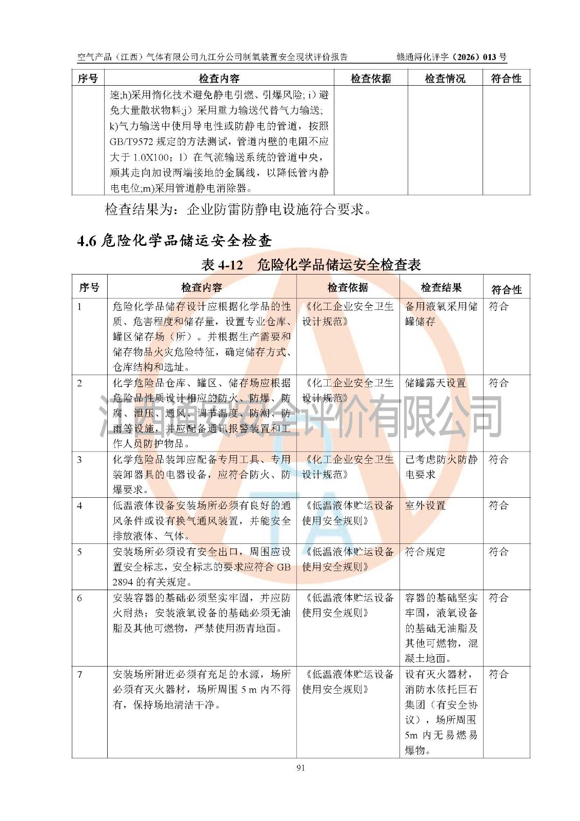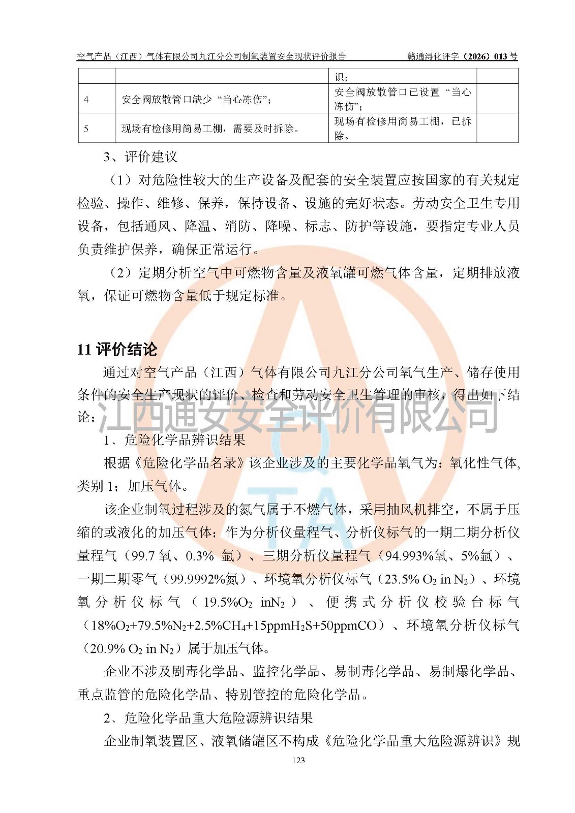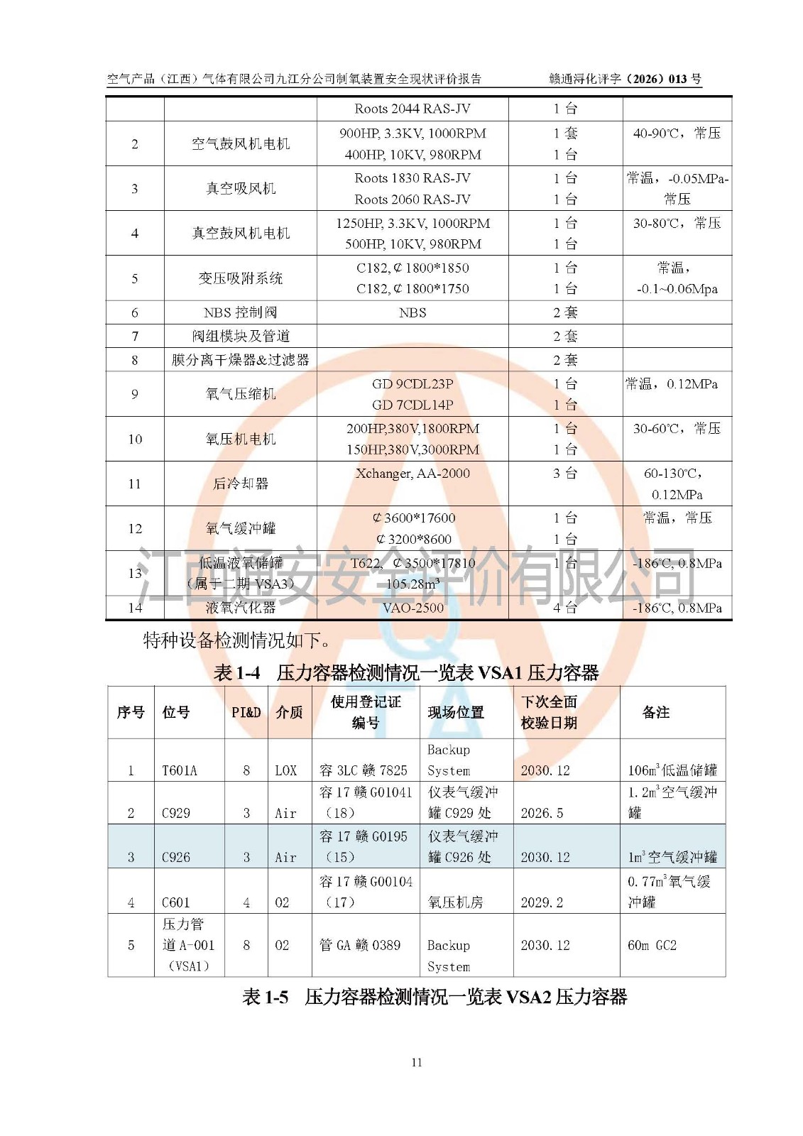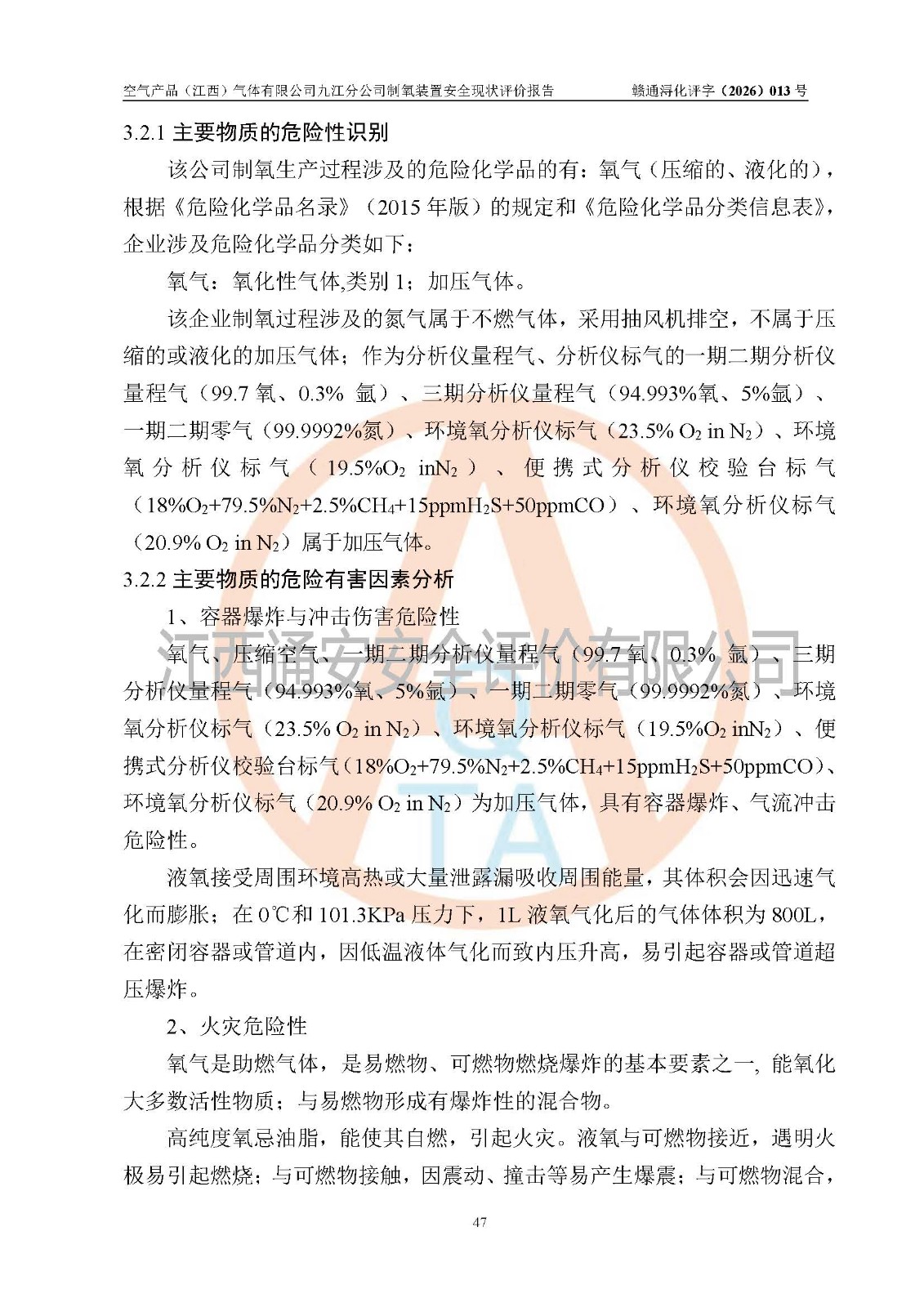 空气产品(江西)气体有限公司九江分公司制氧装置安全现状评价报告