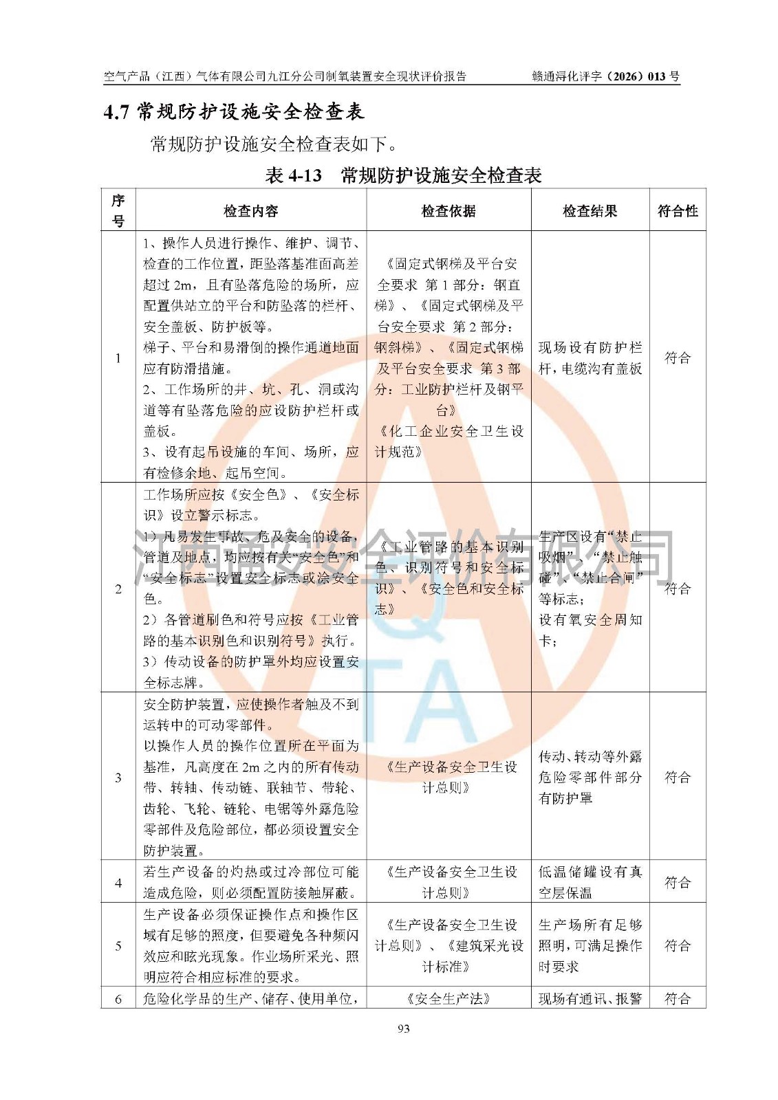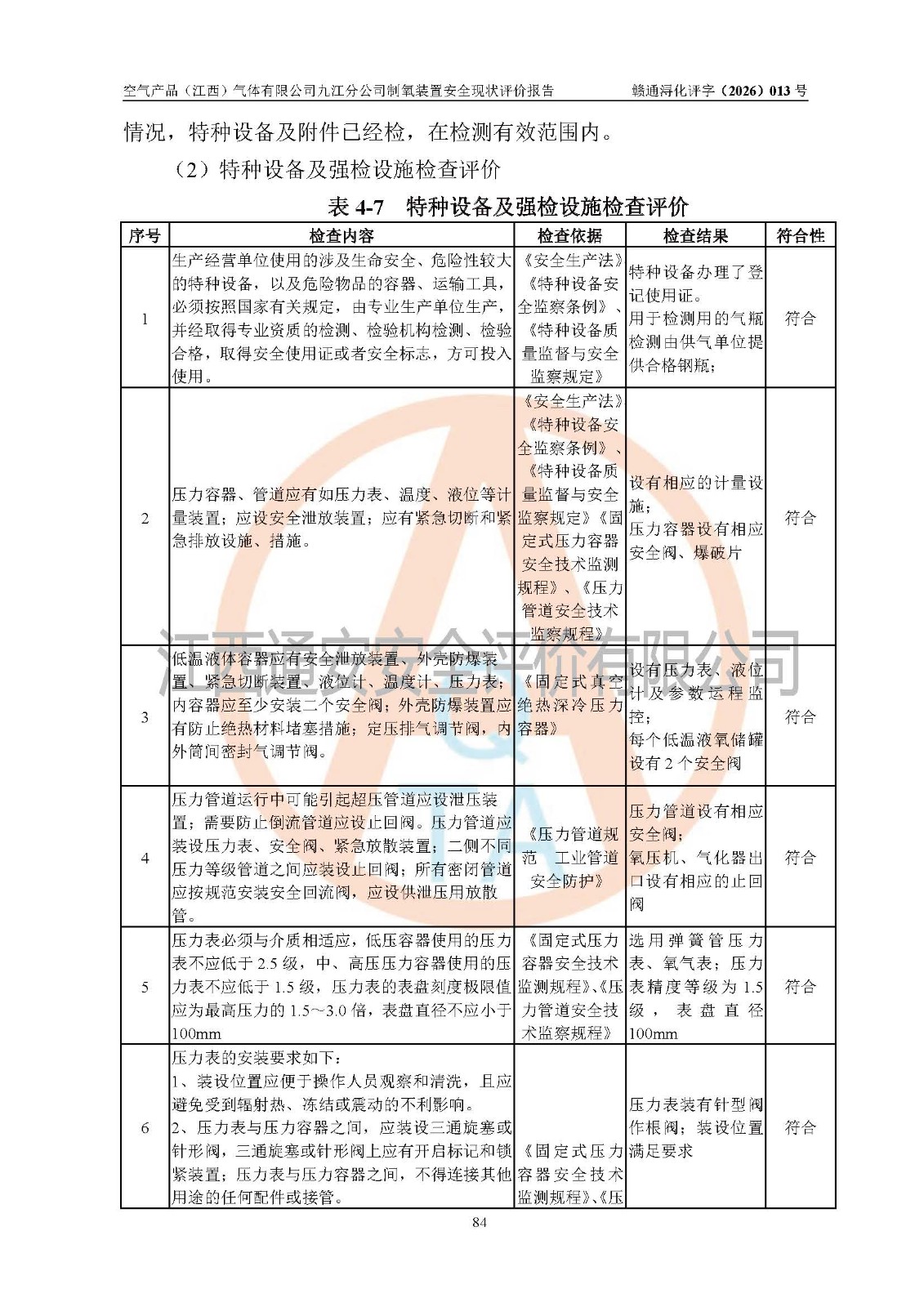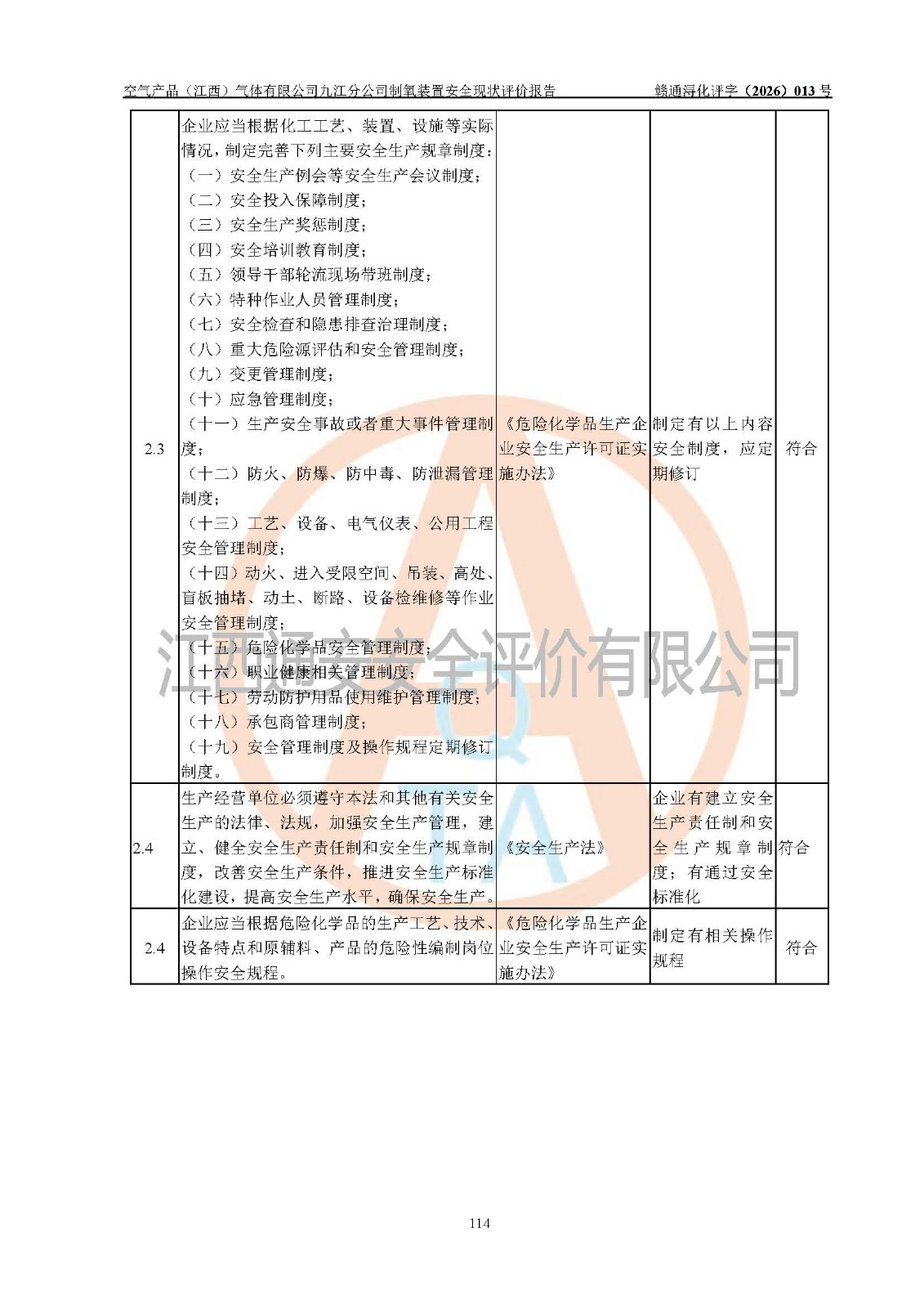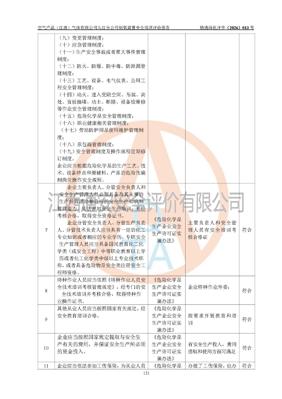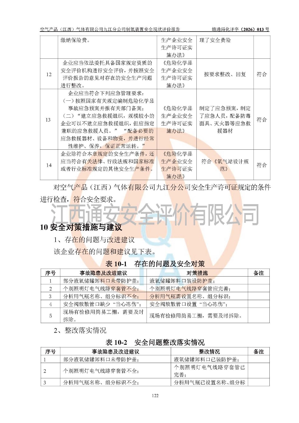 空气产品(江西)气体有限公司九江分公司制氧装置安全现状评价报告