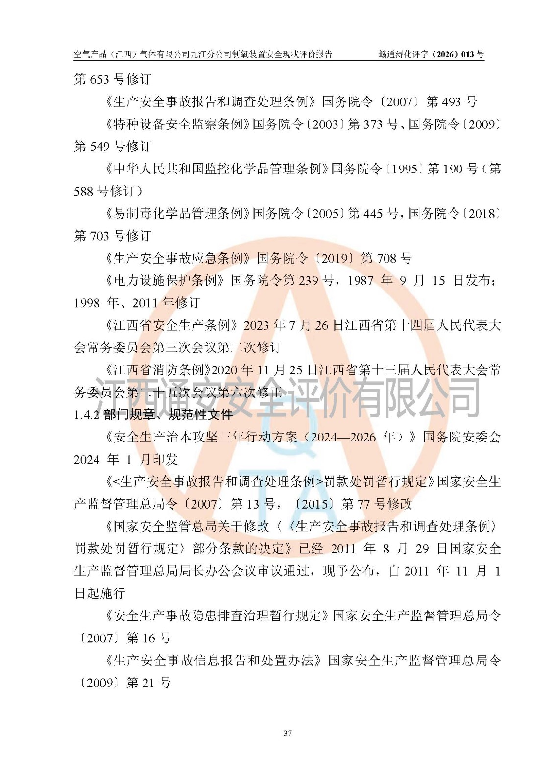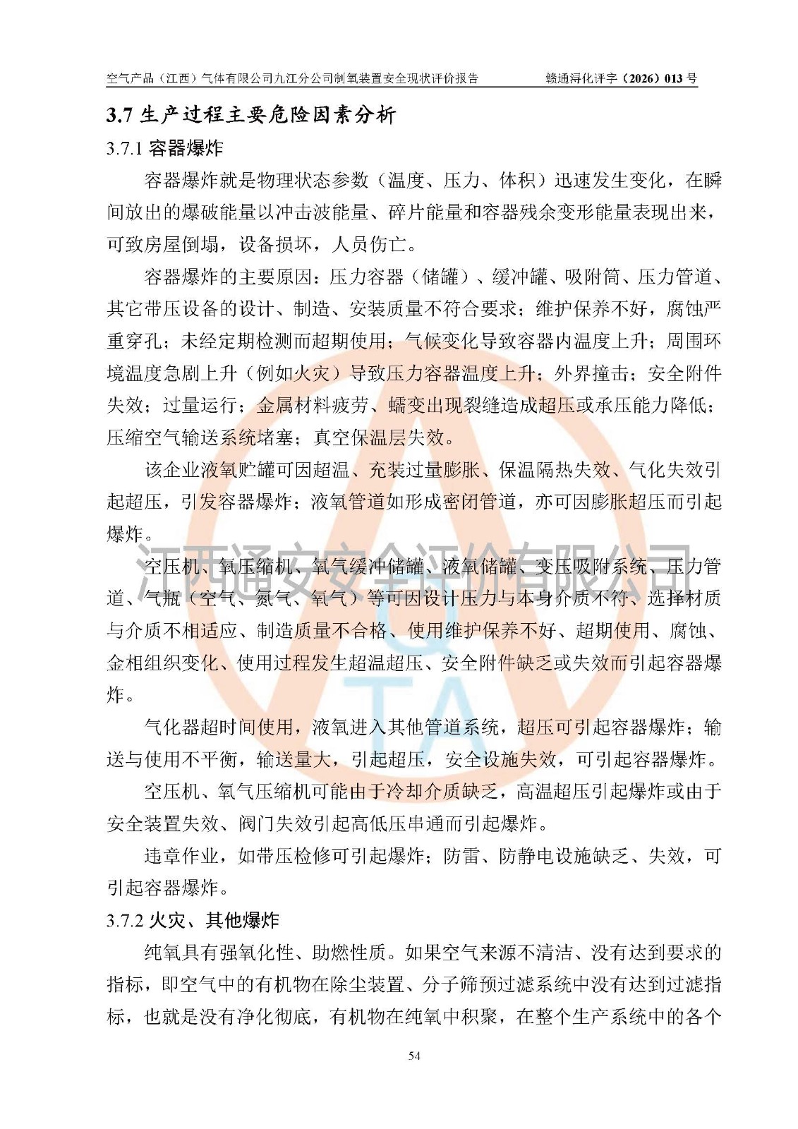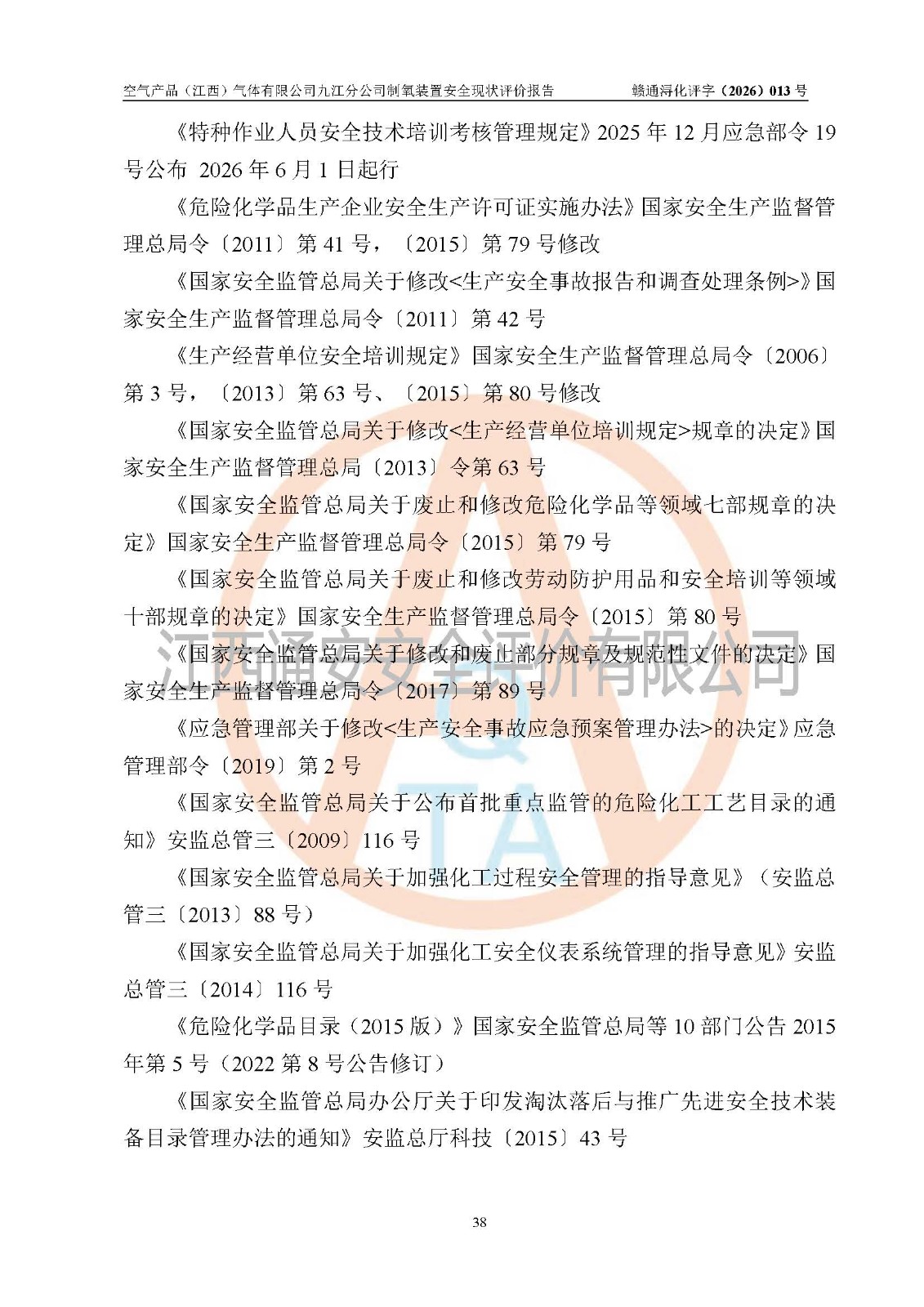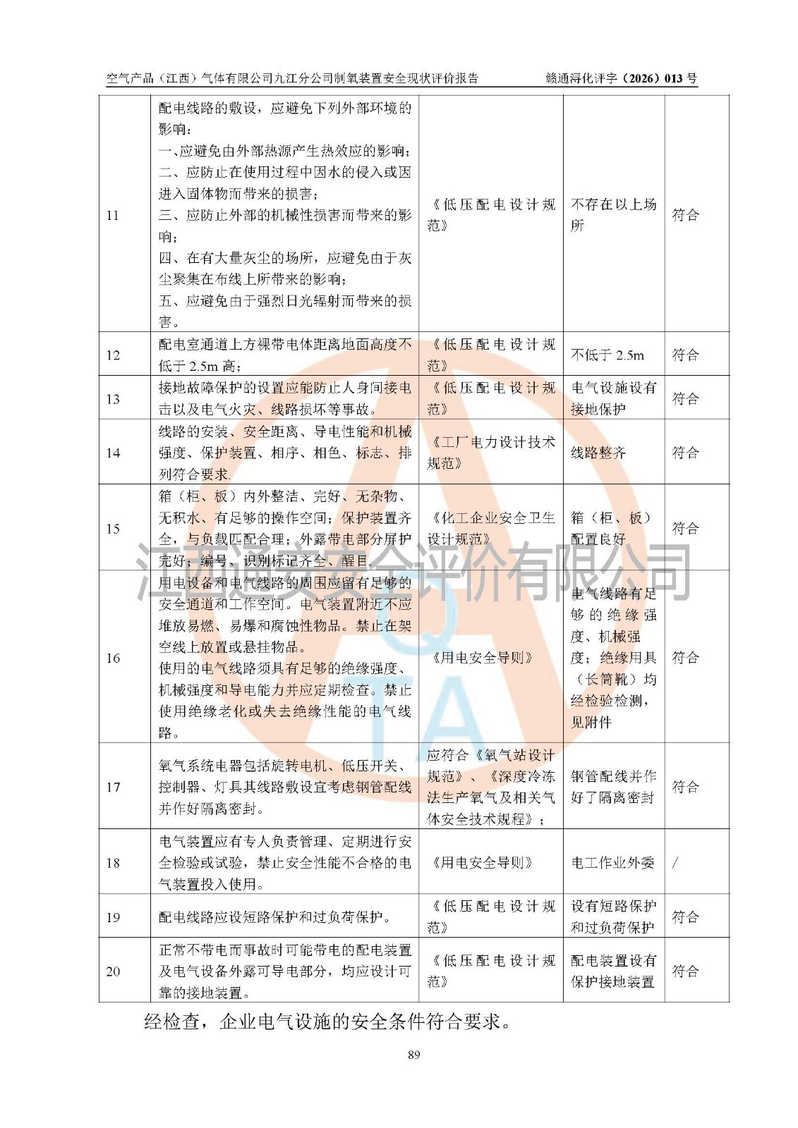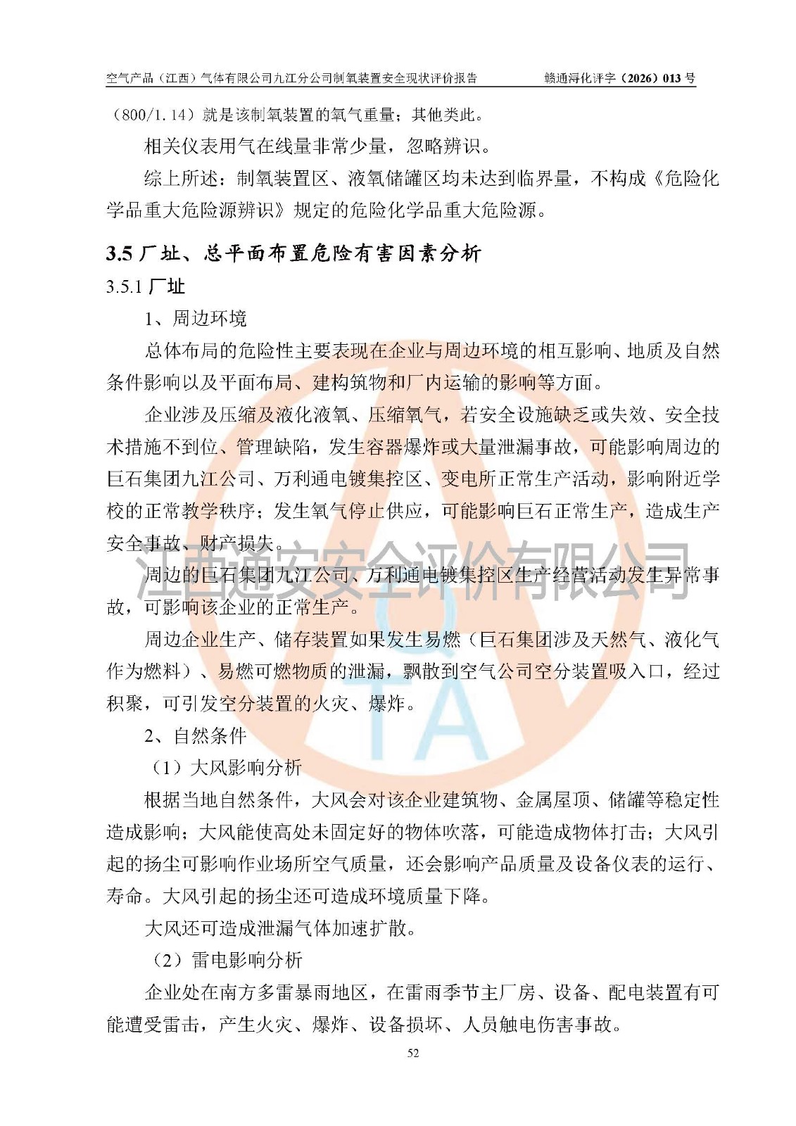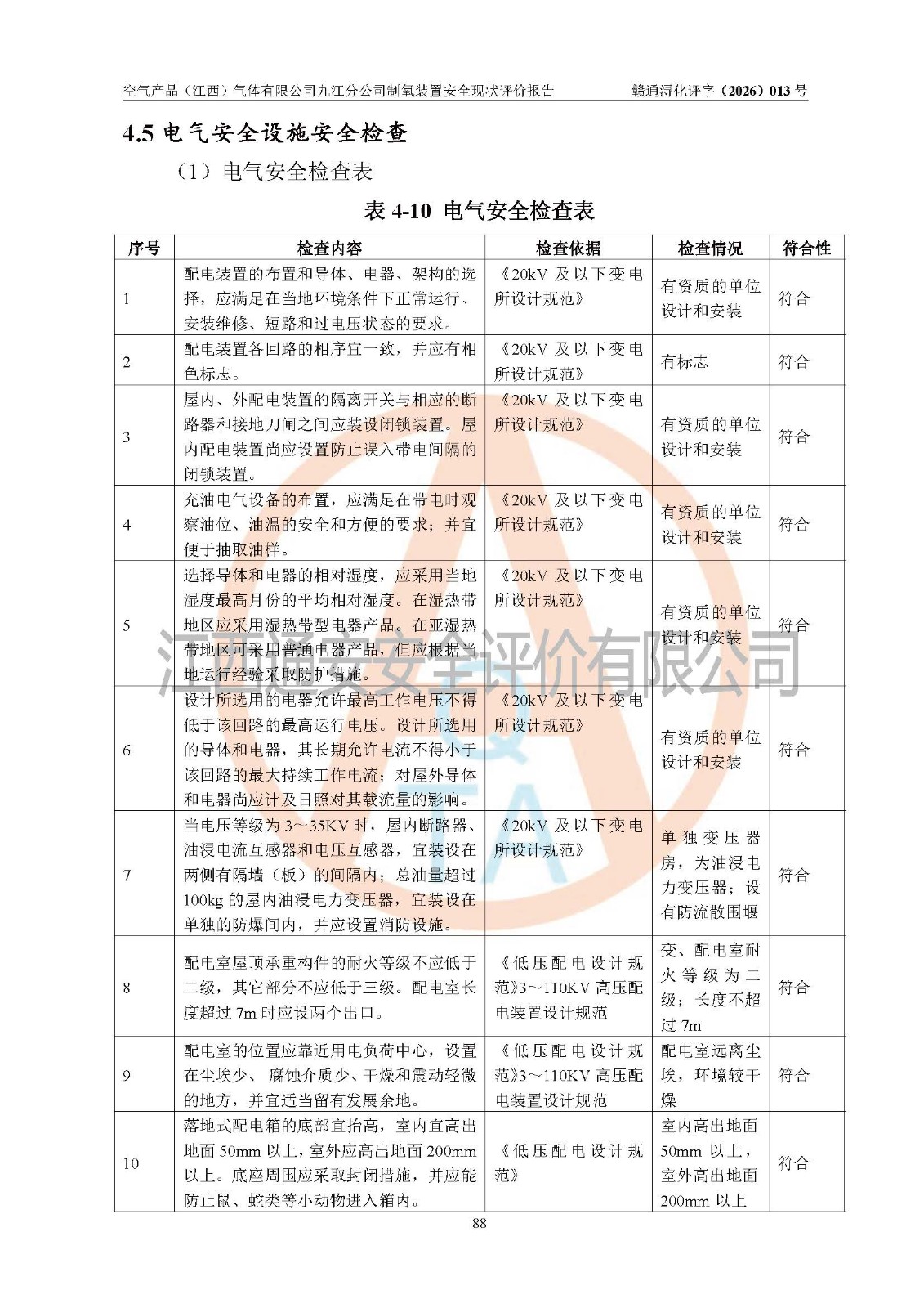 空气产品(江西)气体有限公司九江分公司制氧装置安全现状评价报告