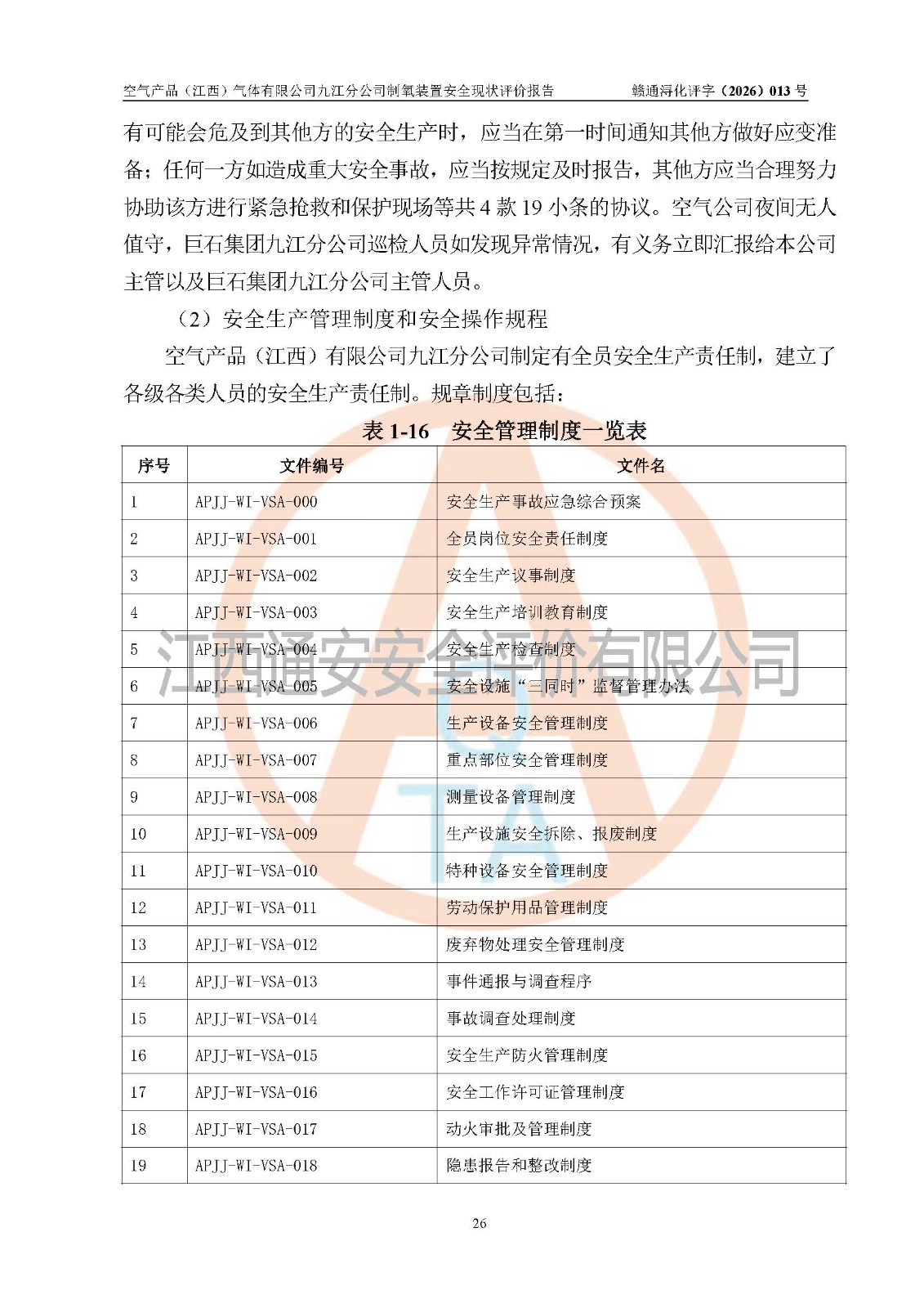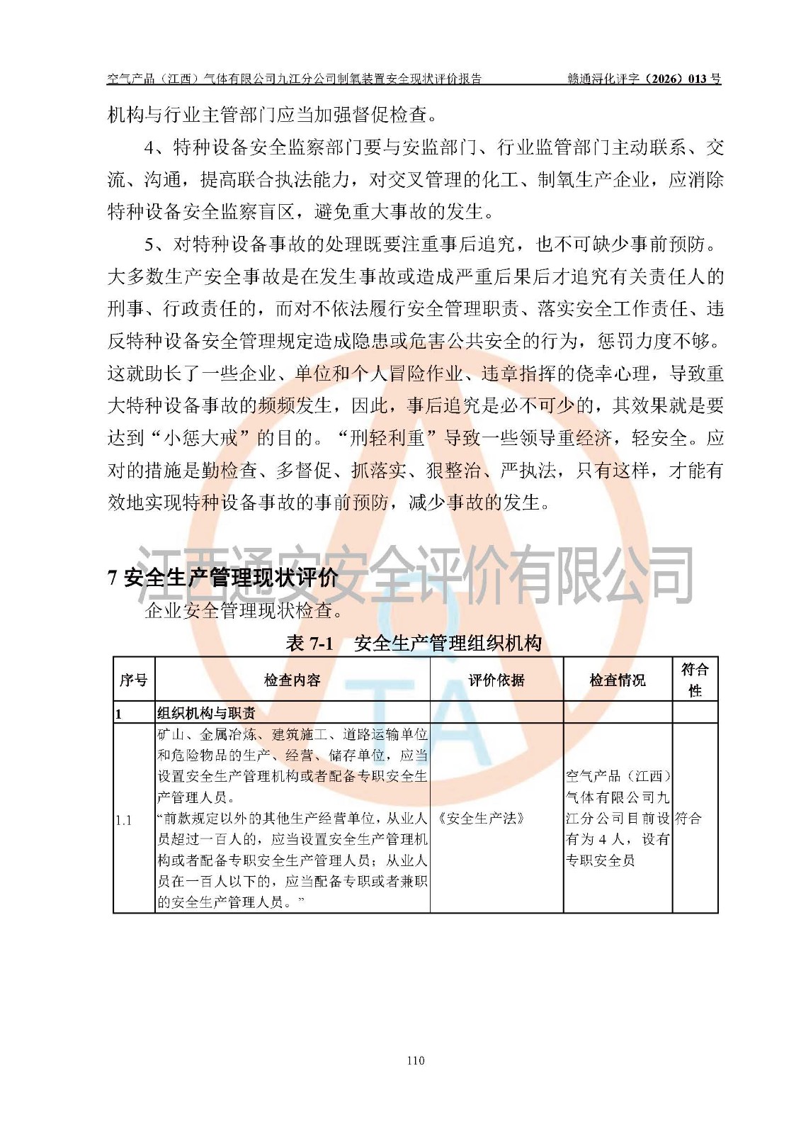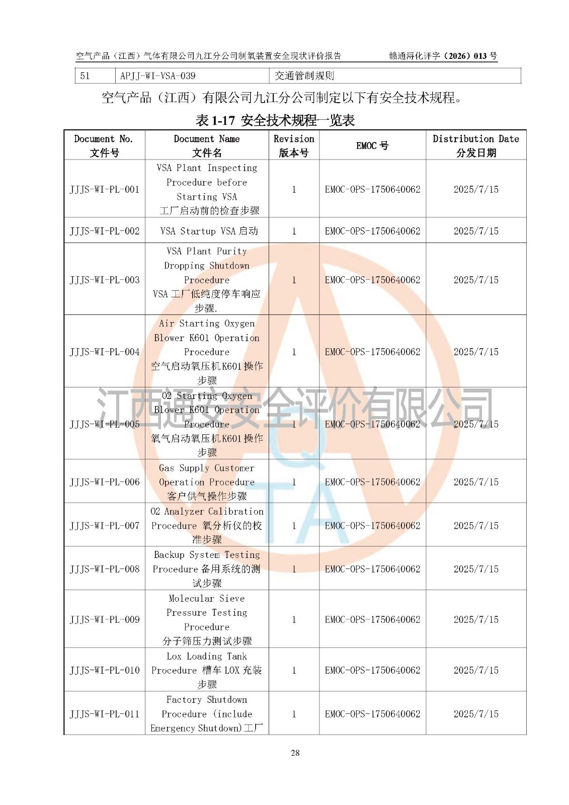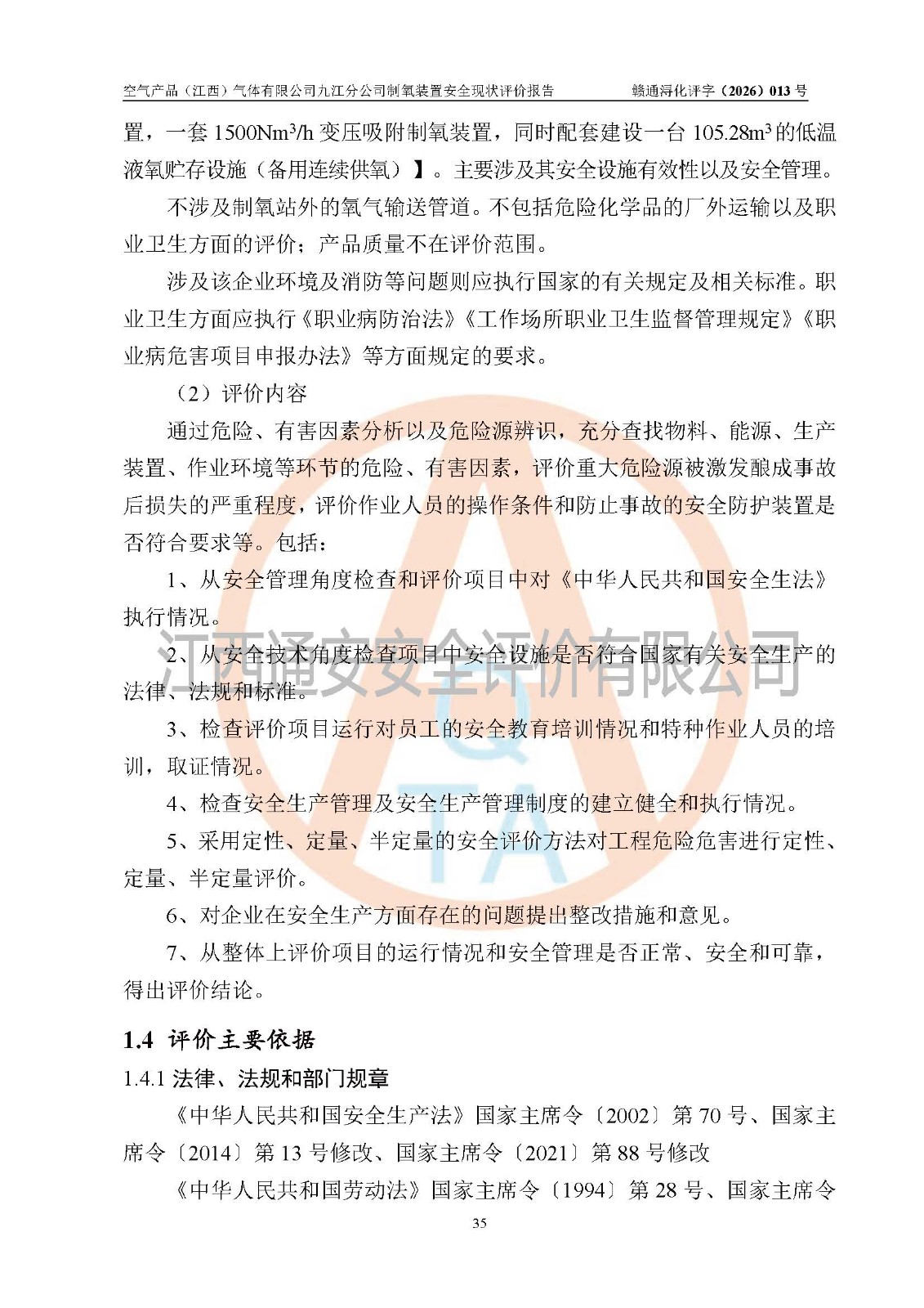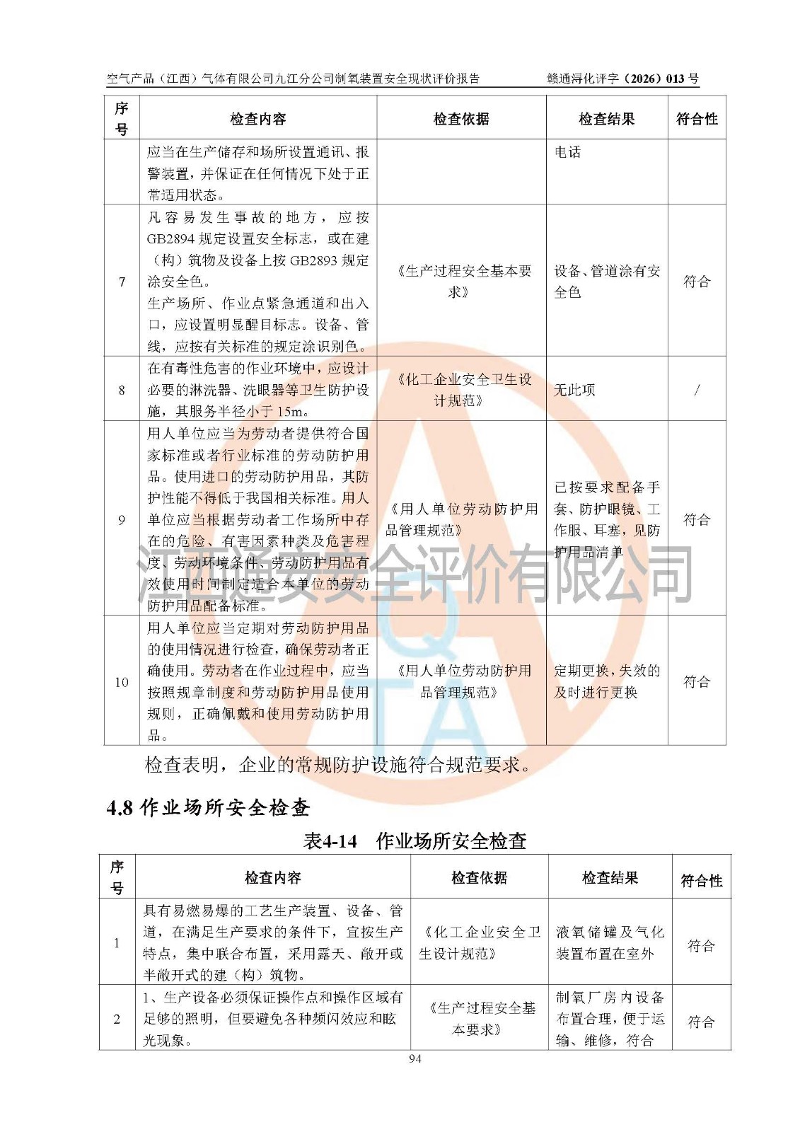 空气产品(江西)气体有限公司九江分公司制氧装置安全现状评价报告