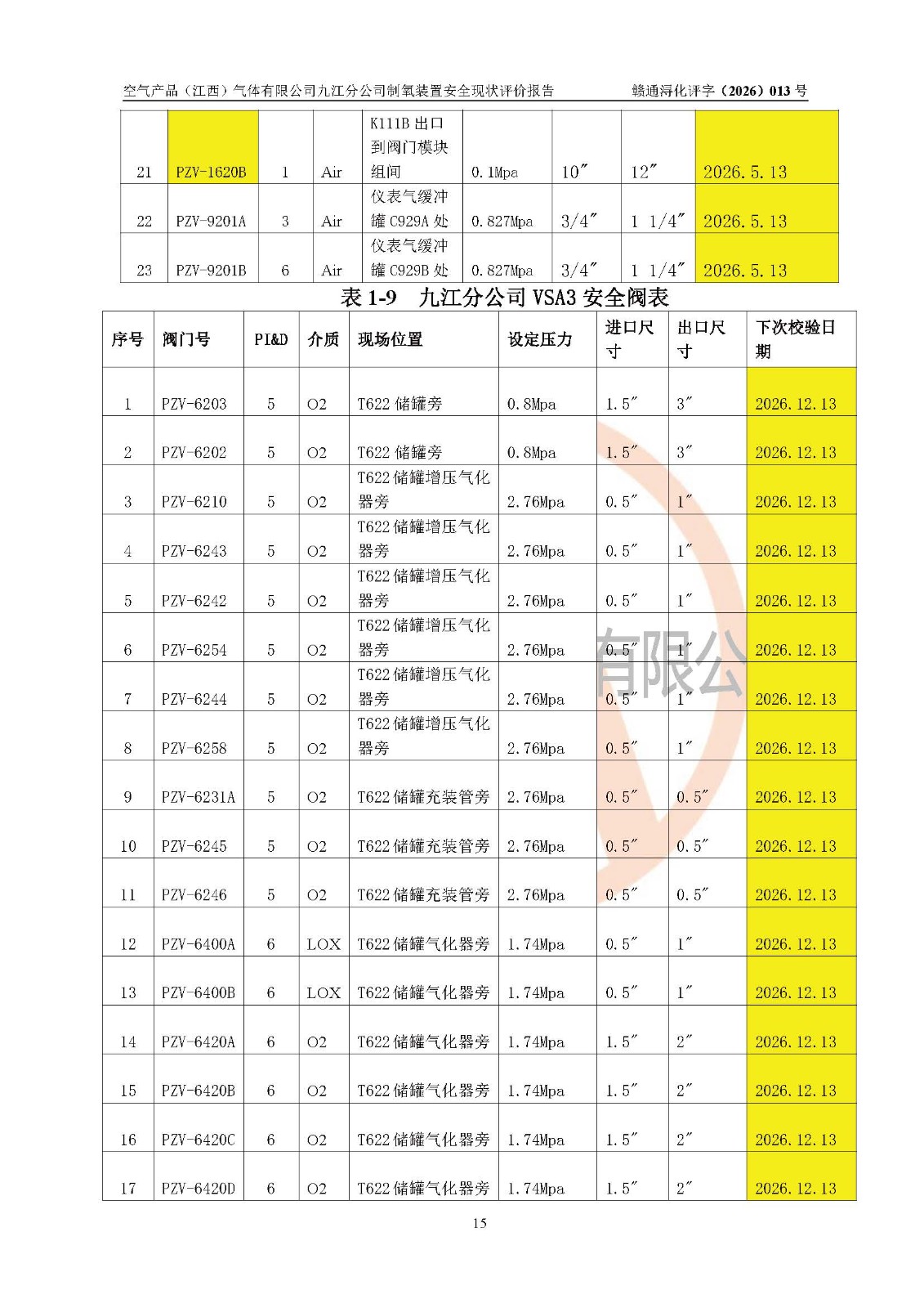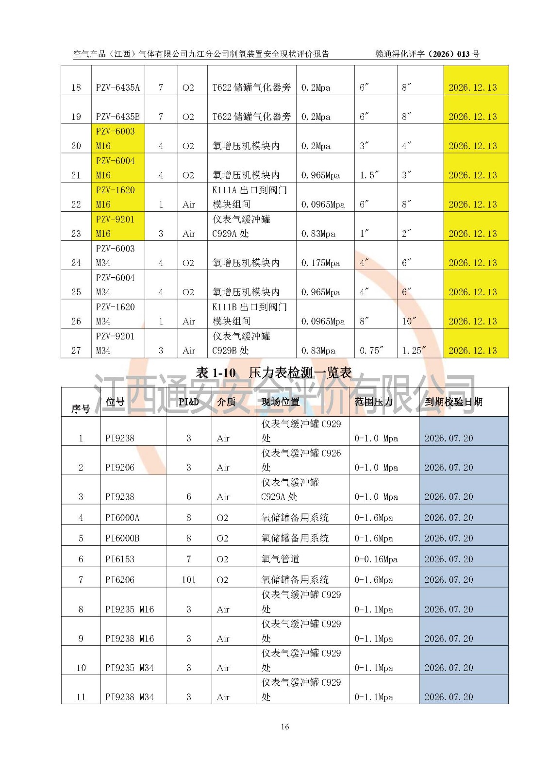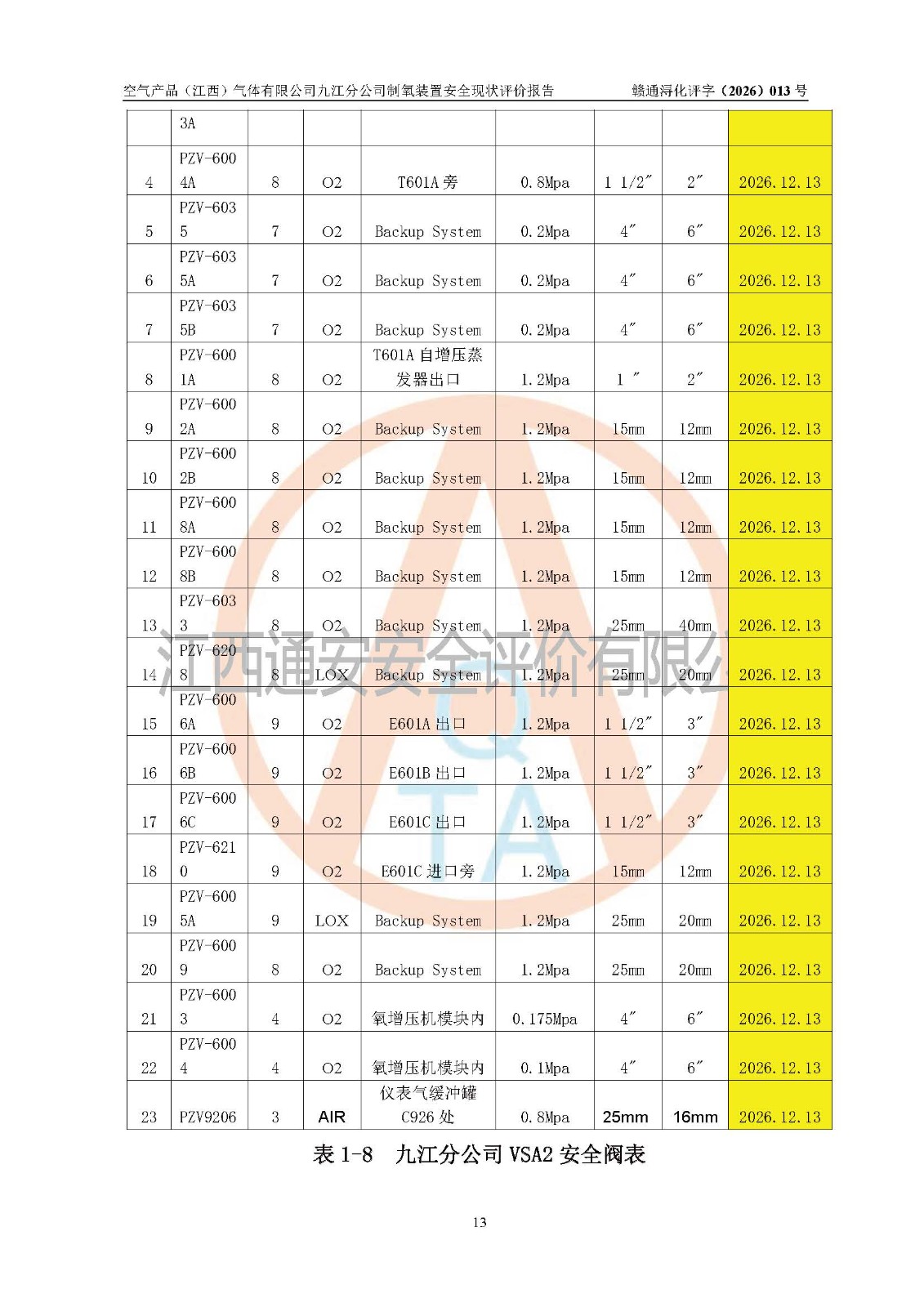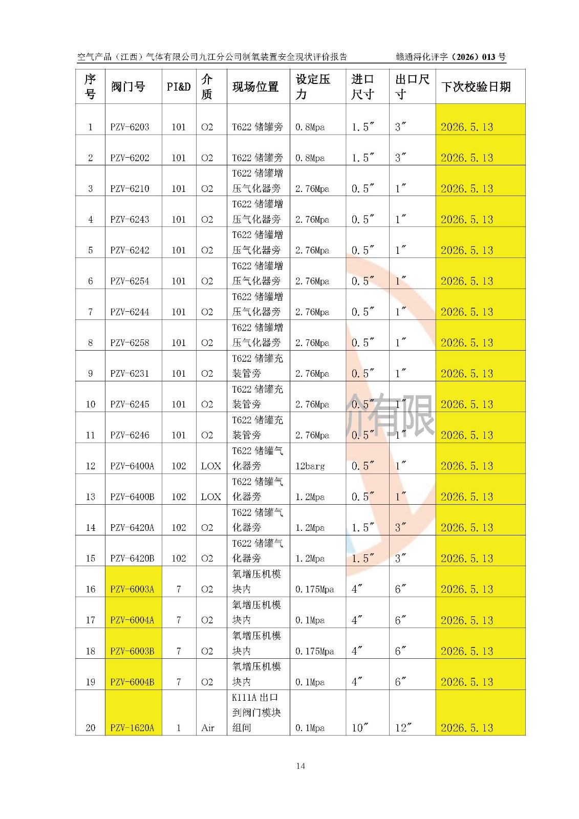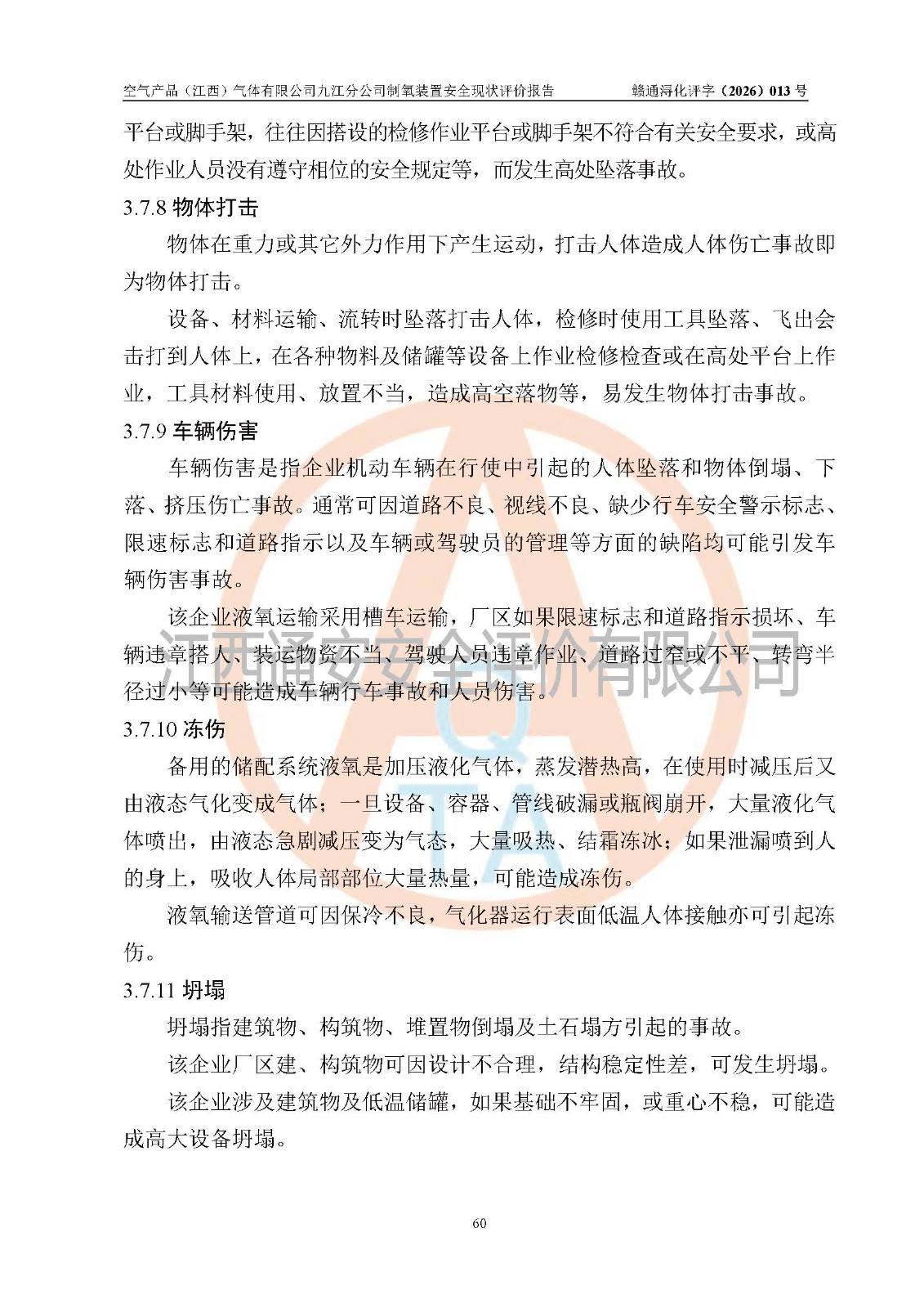 空气产品(江西)气体有限公司九江分公司制氧装置安全现状评价报告