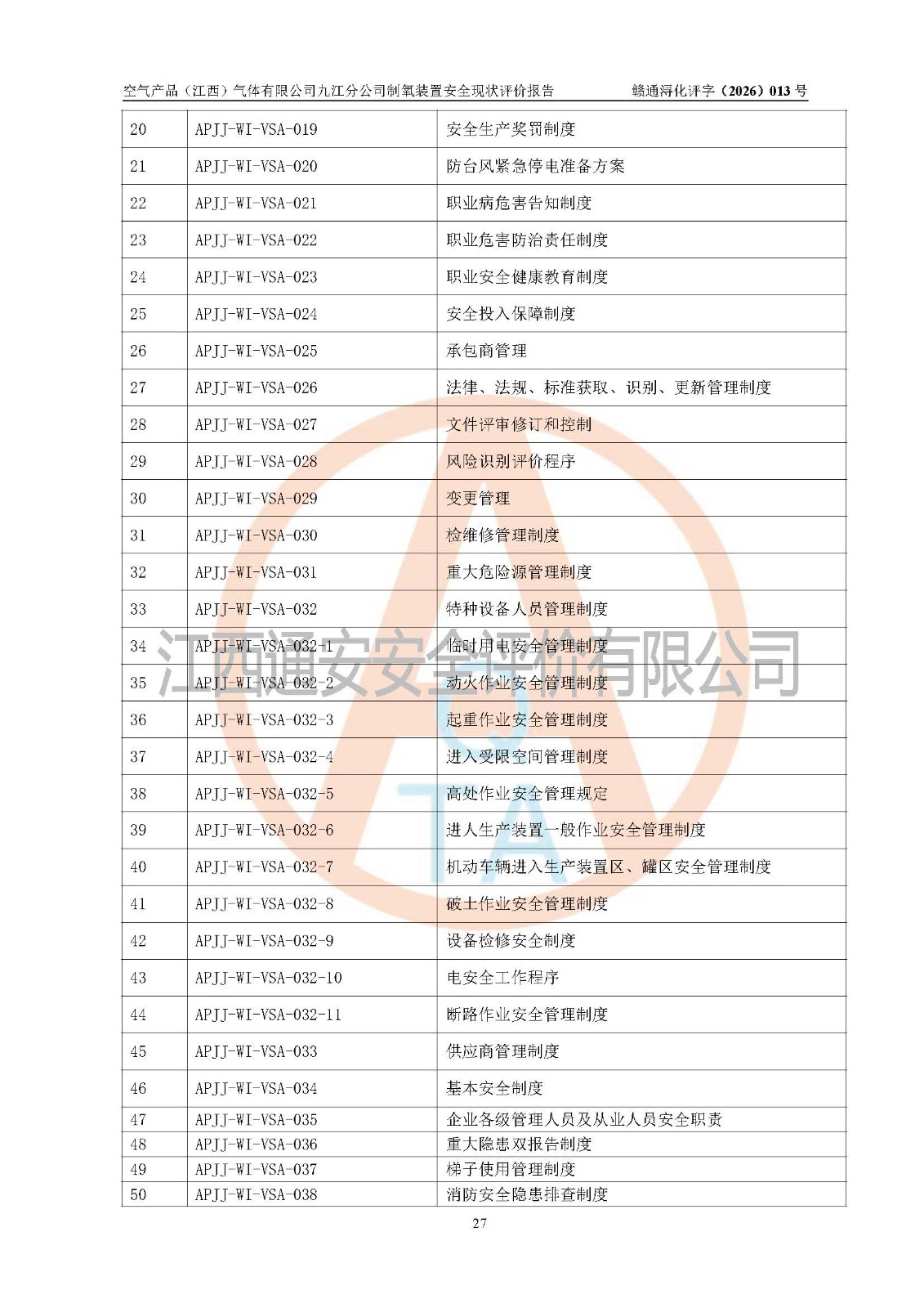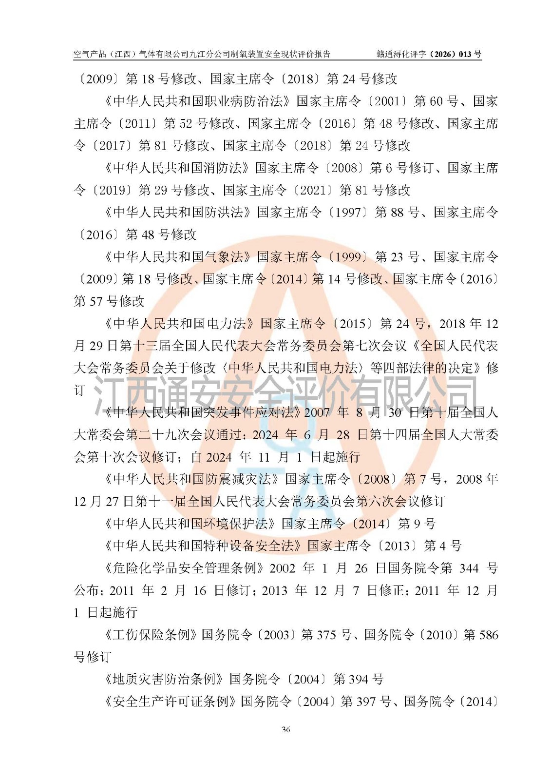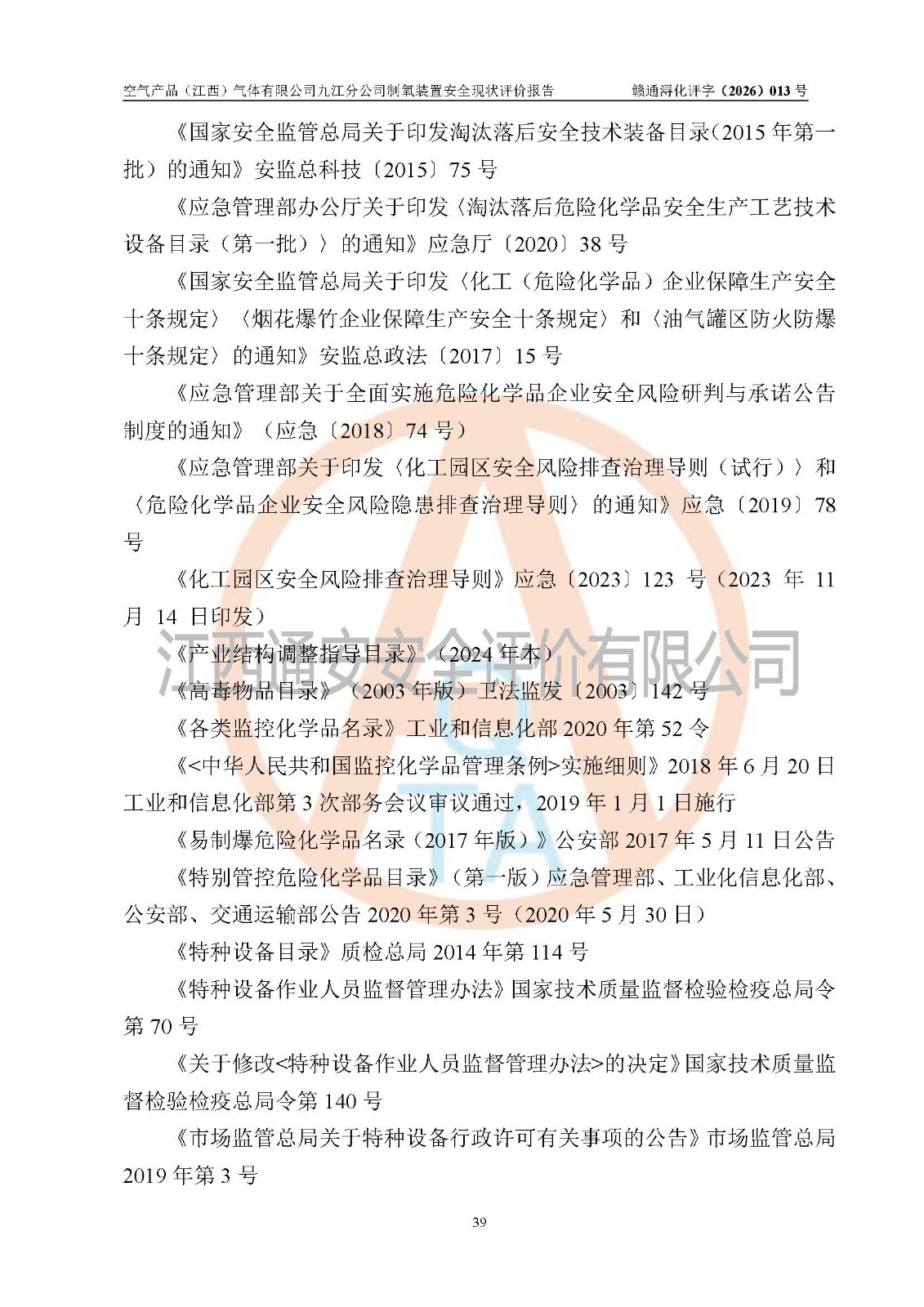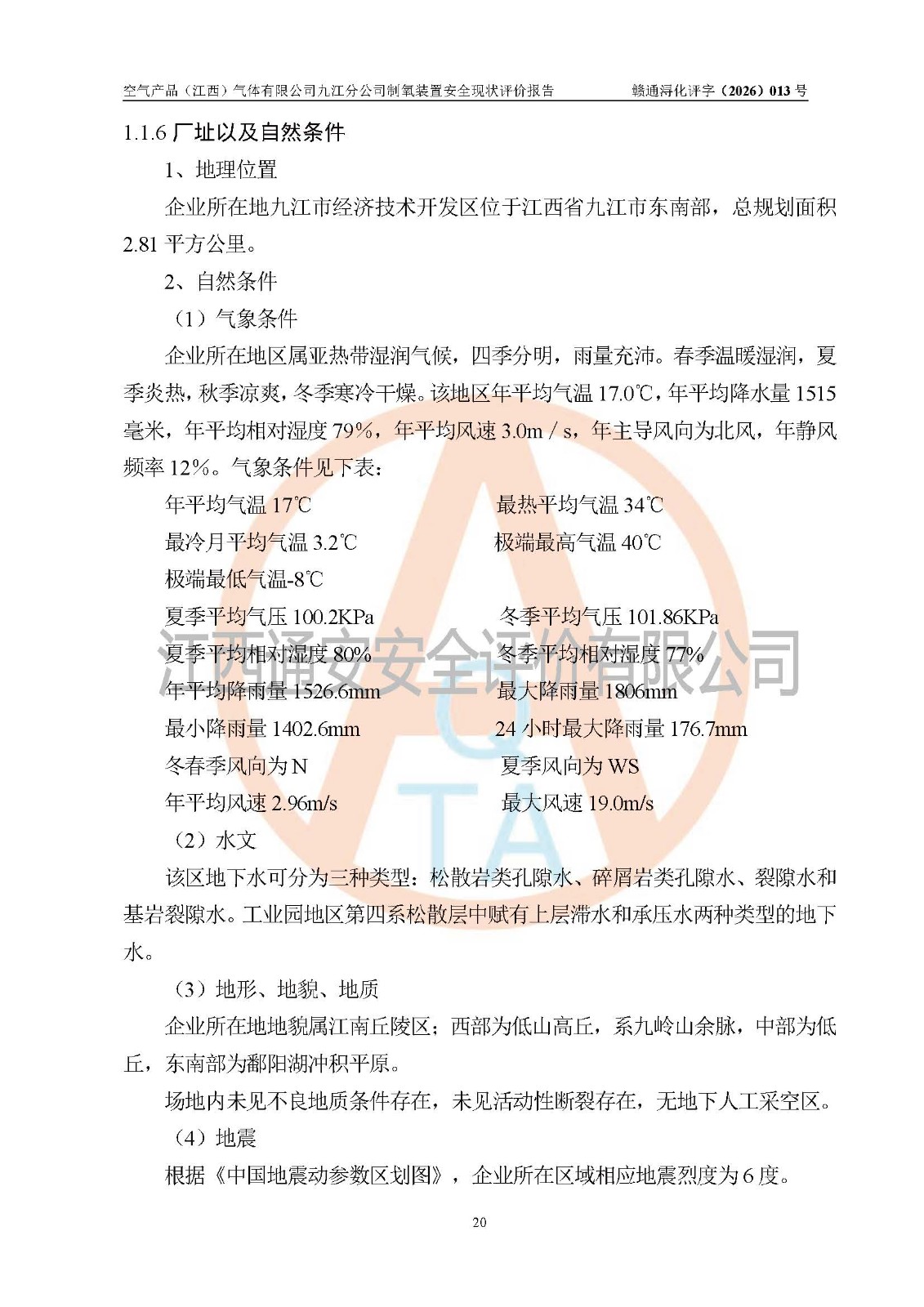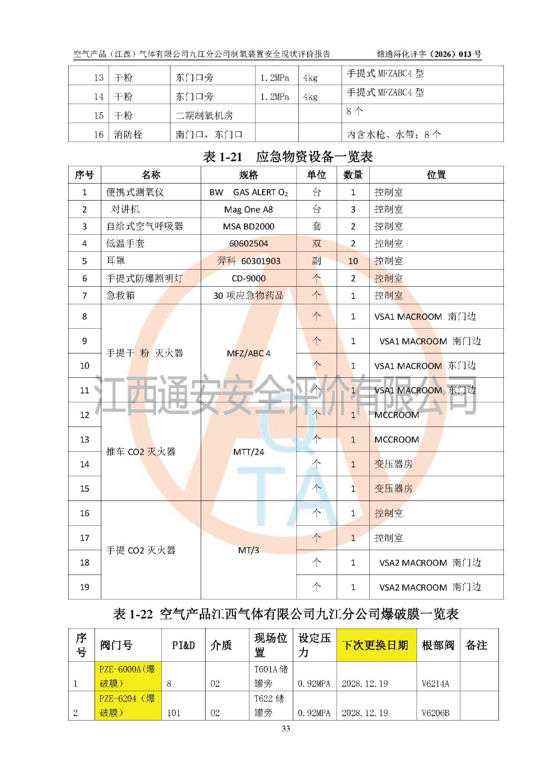 空气产品(江西)气体有限公司九江分公司制氧装置安全现状评价报告