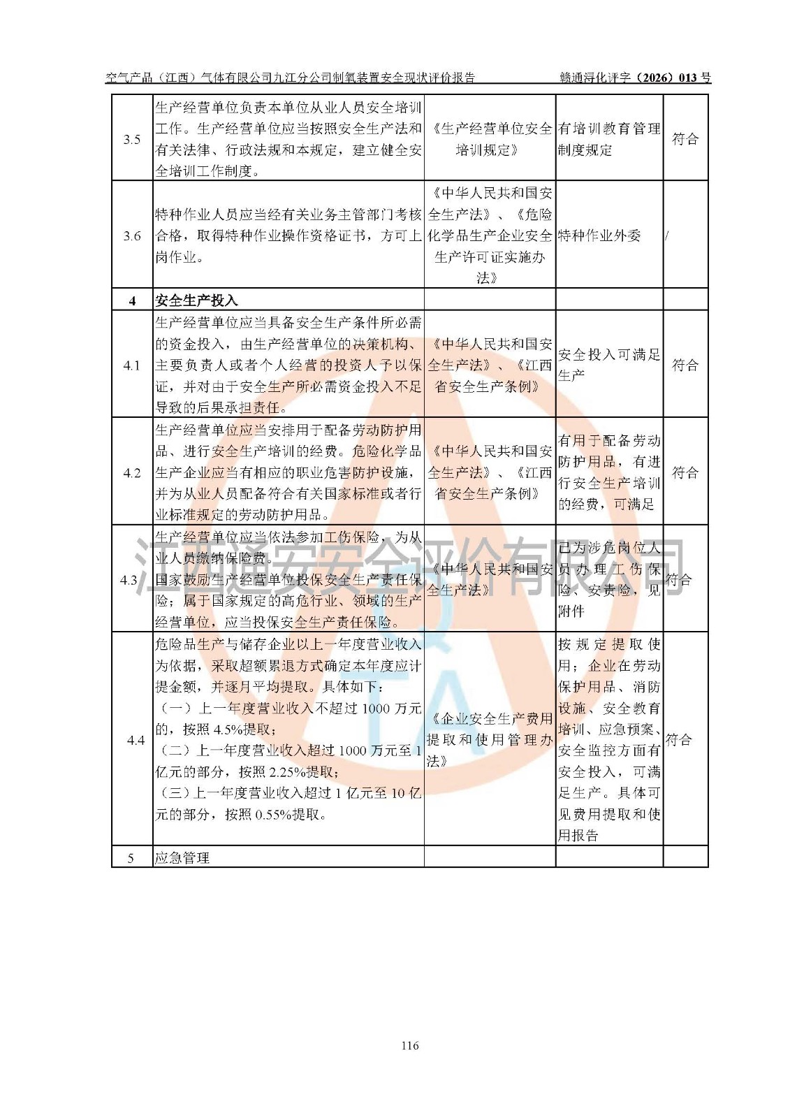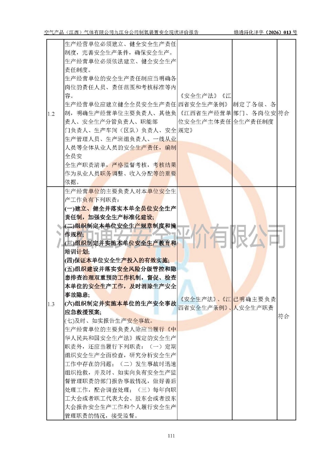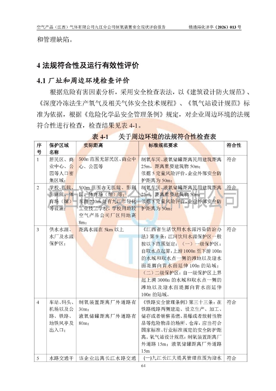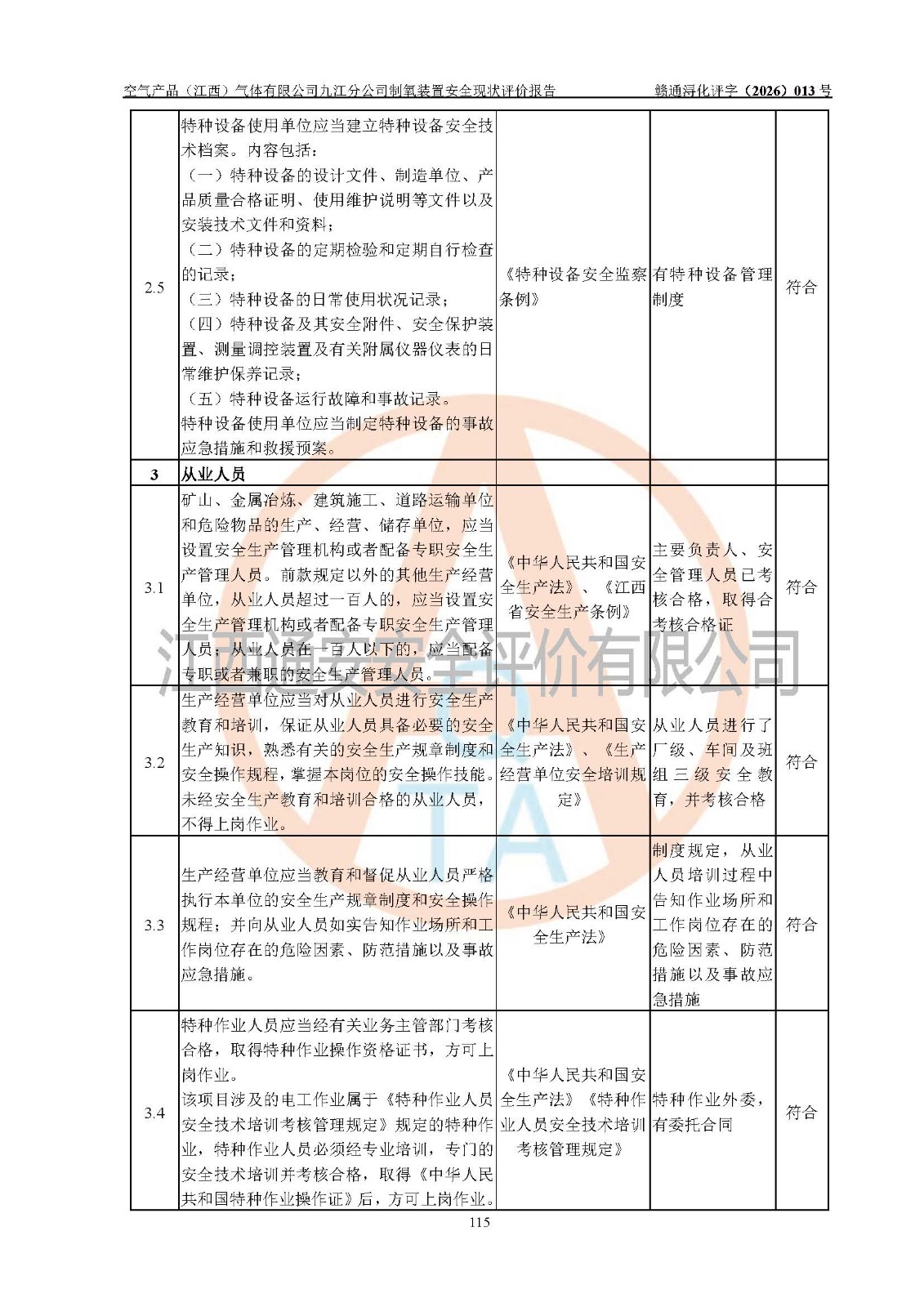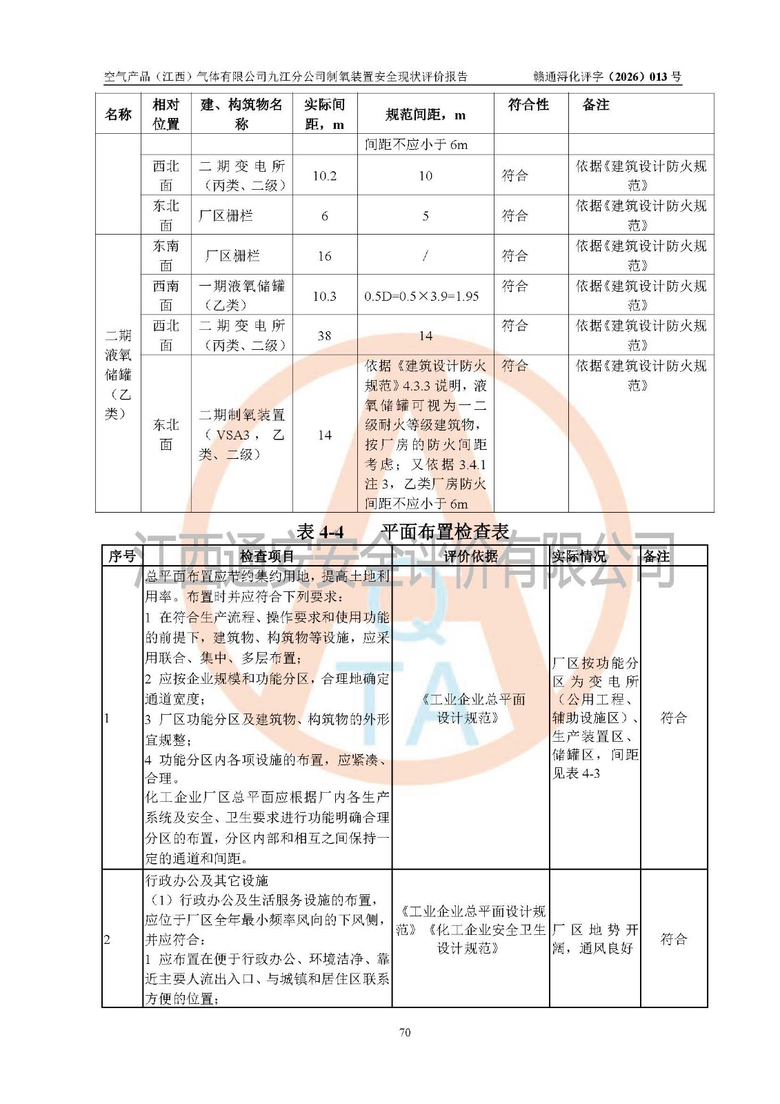 经评价组评价,空气产品(江西)气体有限公司九江分公司制氧装置现场总体布局、设备布置情况与设计图纸一致,企业在役装置不涉及危险工艺、重点监管的危险化学品、重大危险源,按设计设置有DCS系统(现场供气装置自动化程度高,做到无人值守),符合《江西省应急管理厅关手印发(江西省化工企业自动化提升实施方案〉(试行)的通知》规定。企业主要负责人(化学工程专业)及安全生产管理人员(化工安全注册安全工程师)已取得安全生产知识和管理能力考核合格证,均有三年以上化工管理经历。