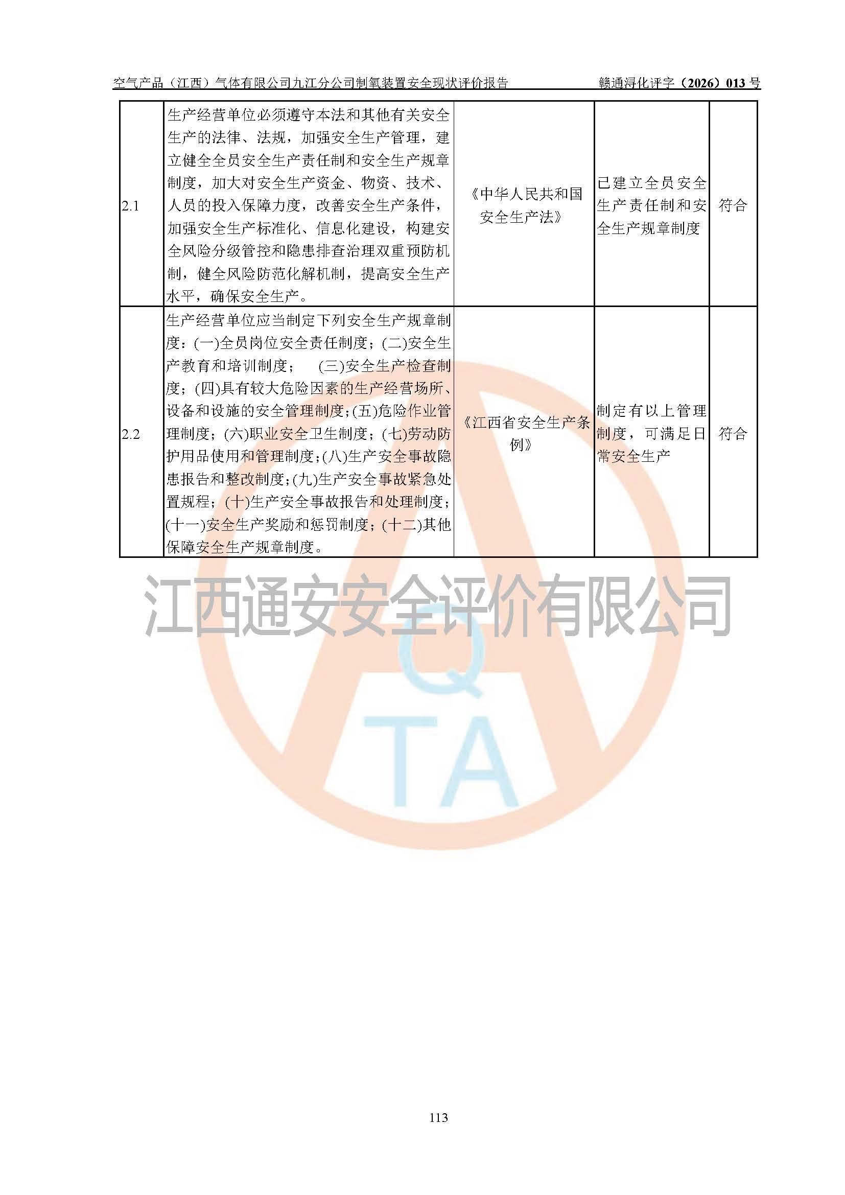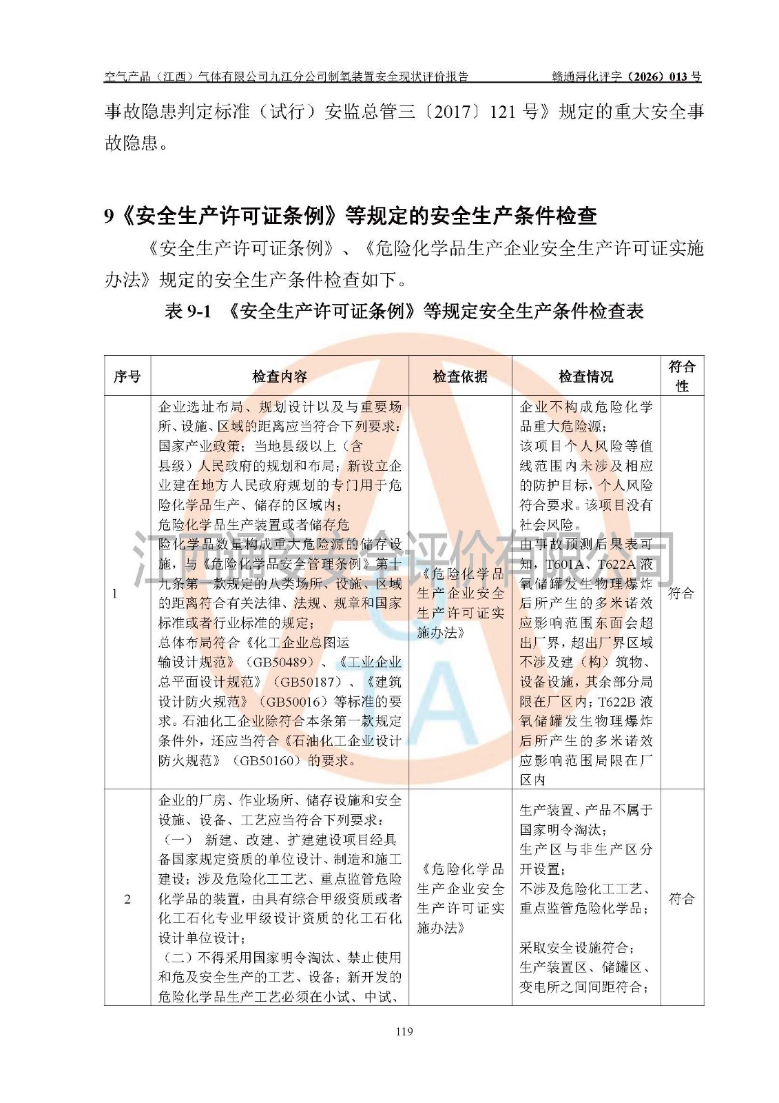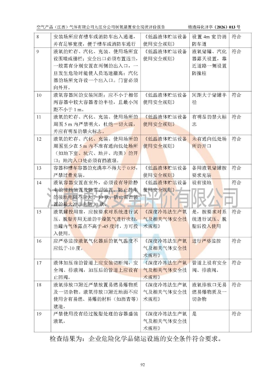 企业制氧装置及配套安全装置、防护设施以及采取的安全技术措施及安全管理措施符合**有关法规、标准、规范要求,符合《危险化学品生产企业安全生产许可证实施办法》规定的安全生产条件,在役装置风险可控,可满足安全生产条件。