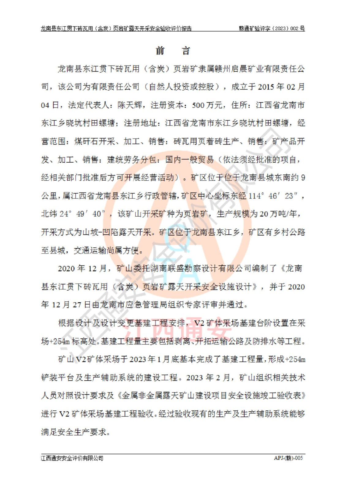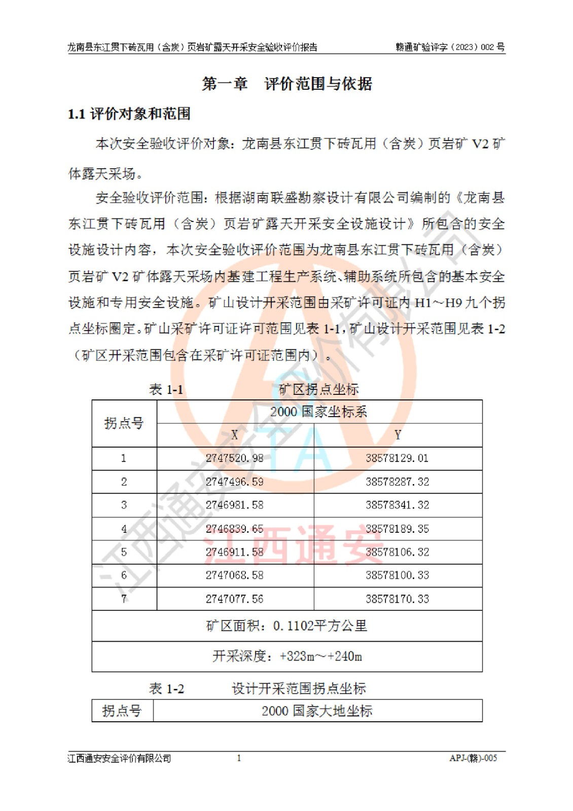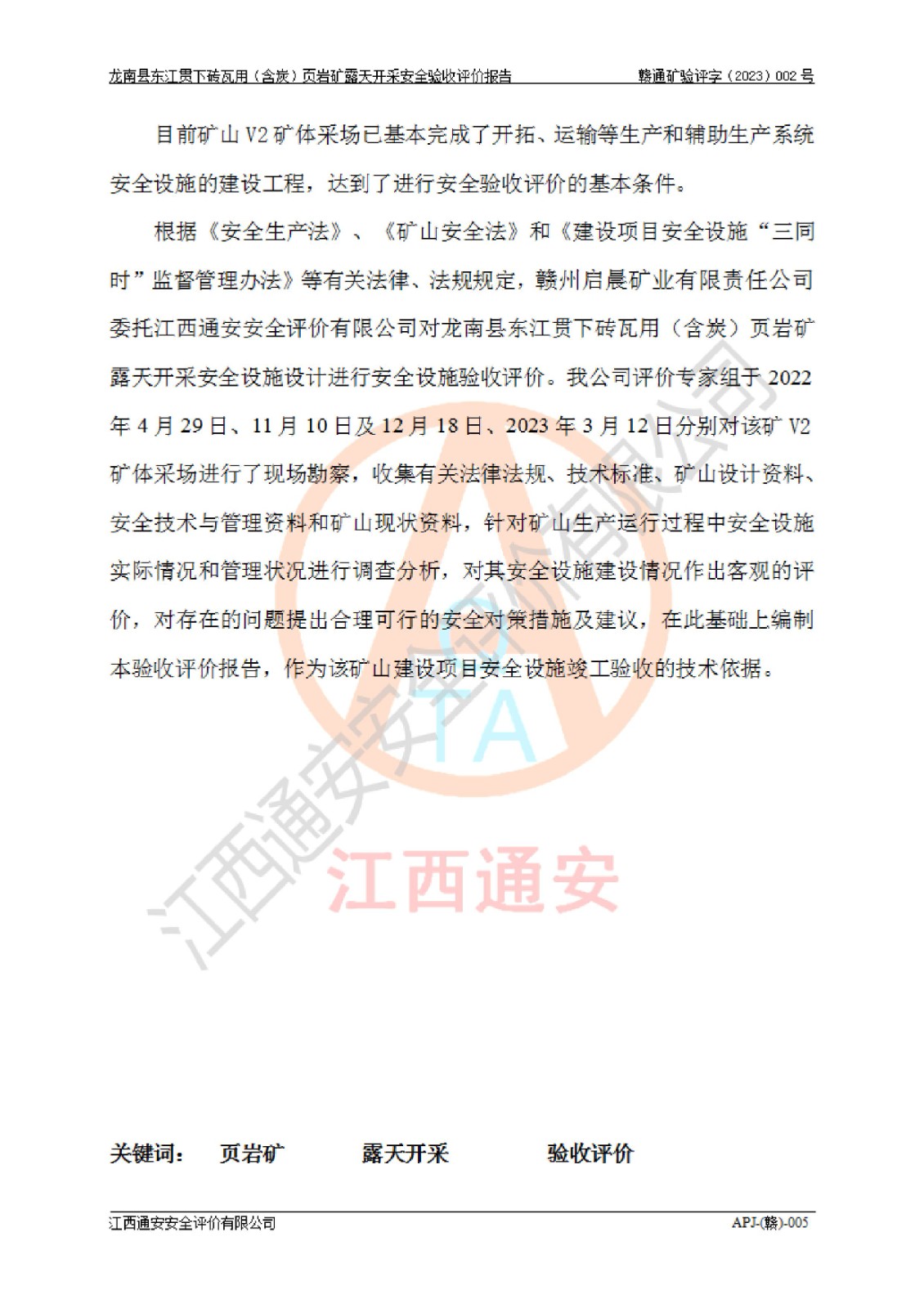 报告编号:赣通矿验评字(2023)002号