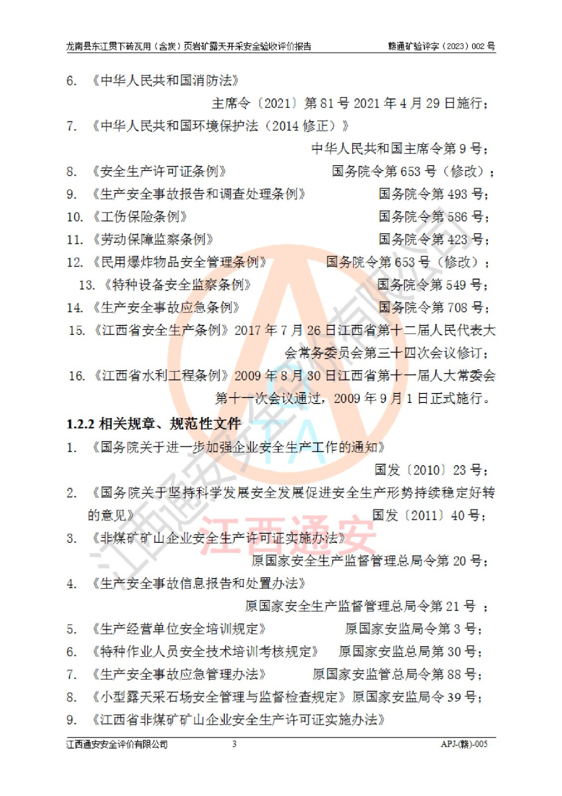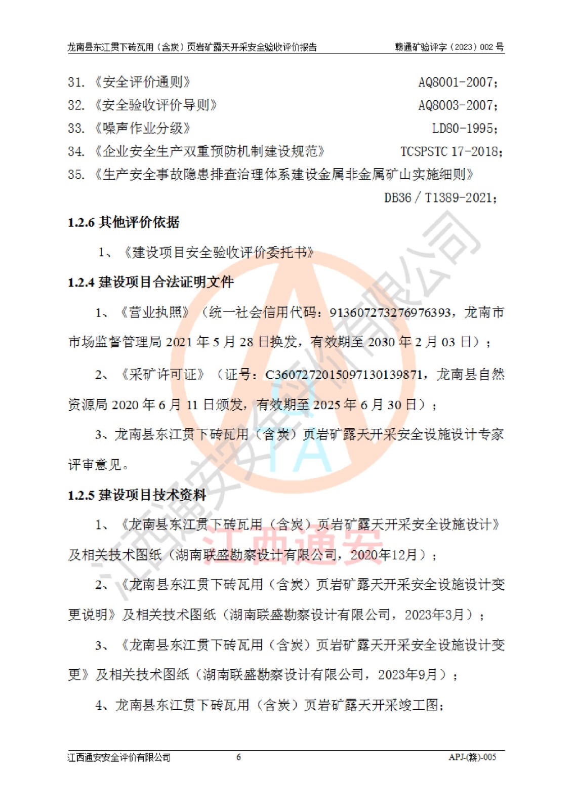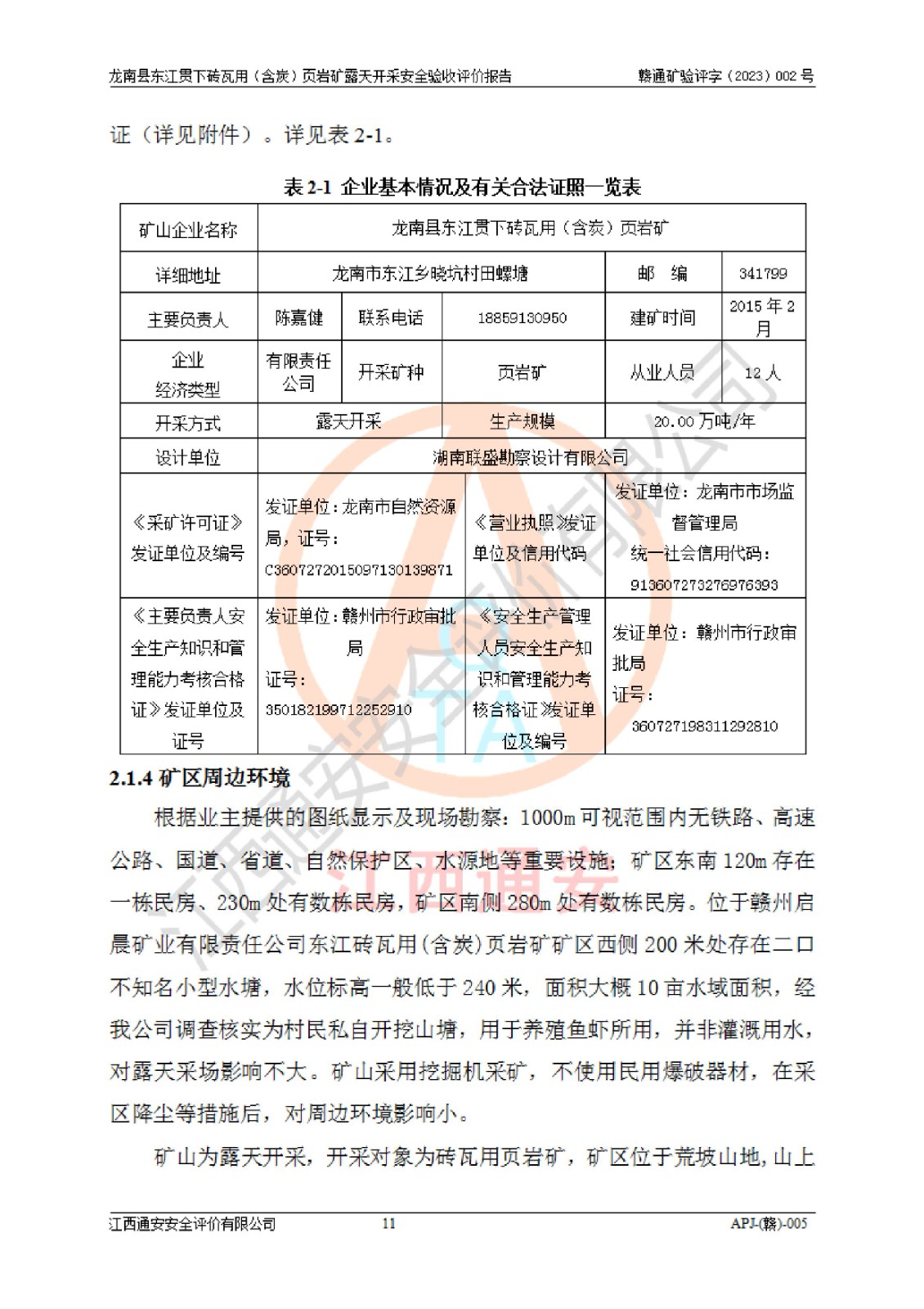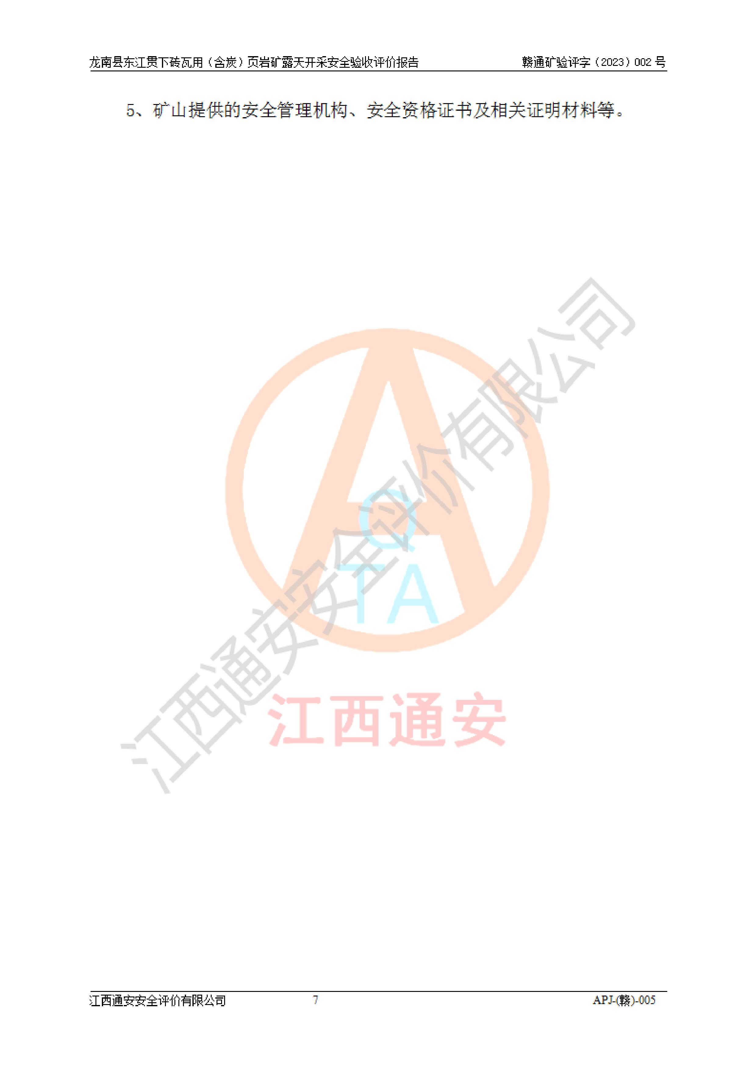 项目名称 | 龙南县东江贯下砖瓦用(含炭)页岩矿露天开采安全验收评价 | ||||