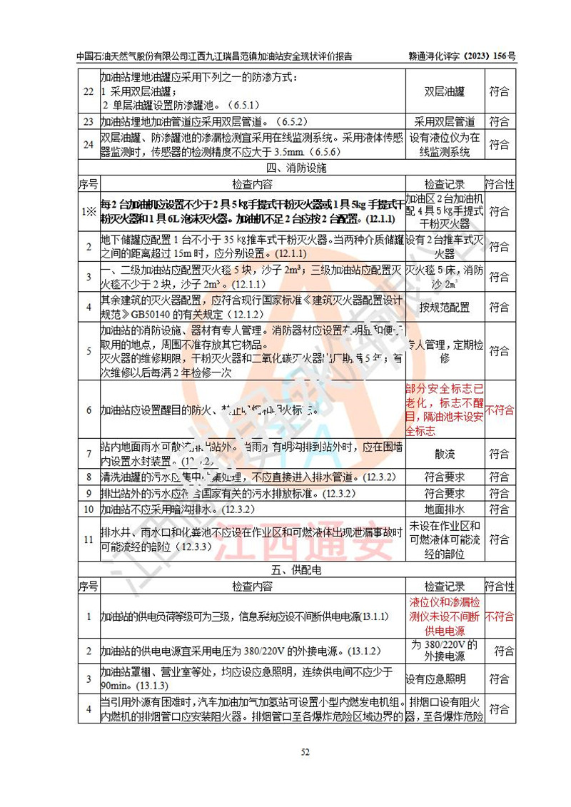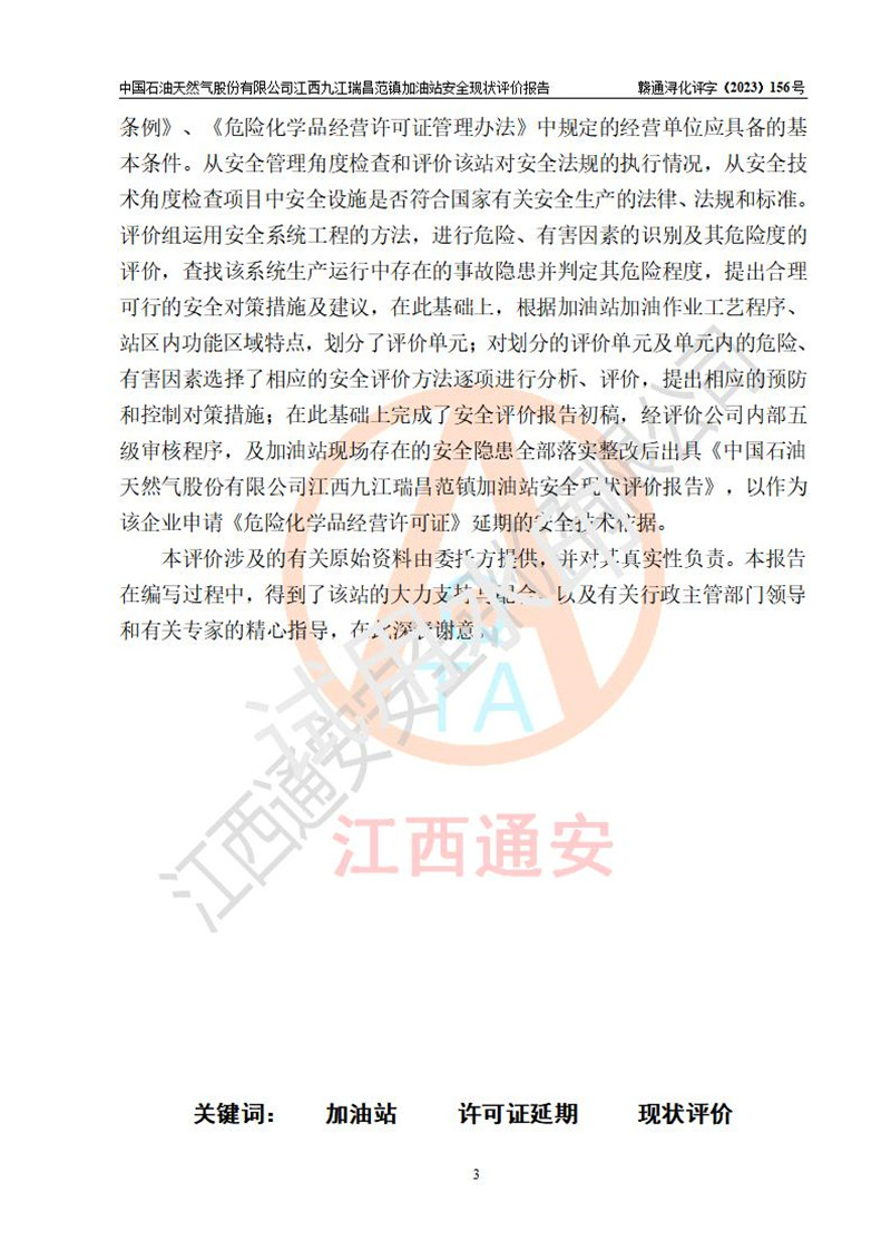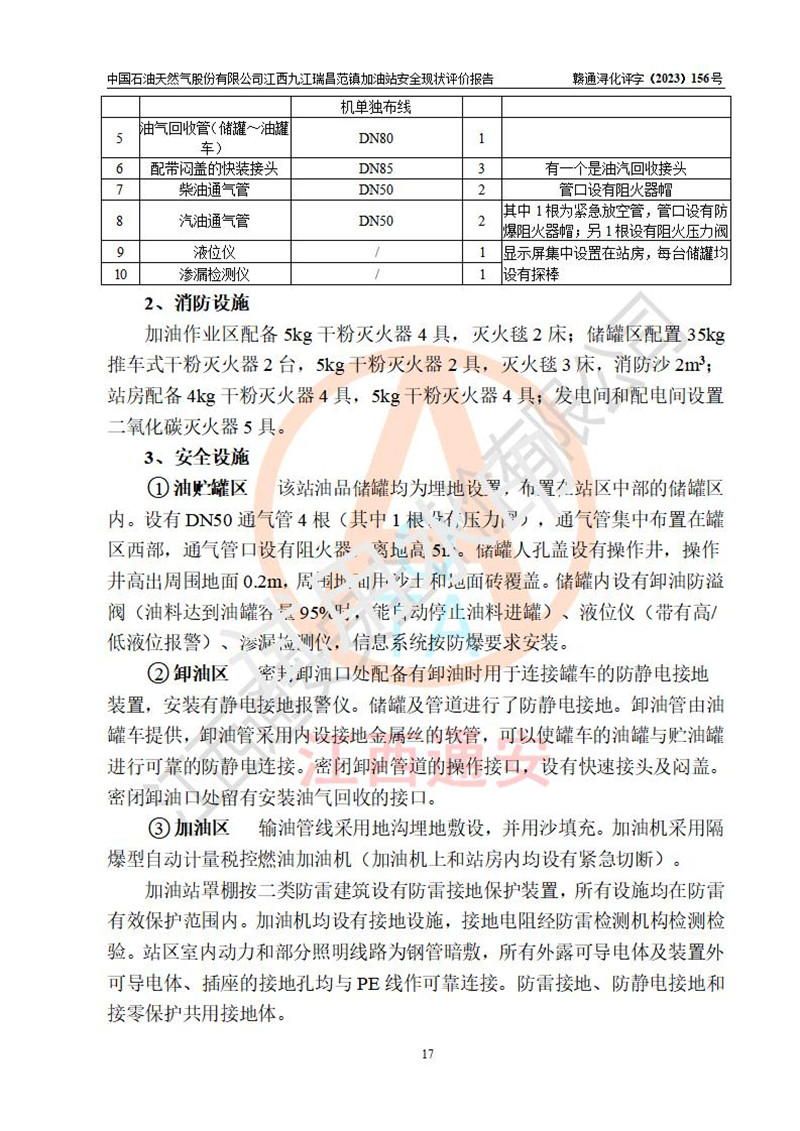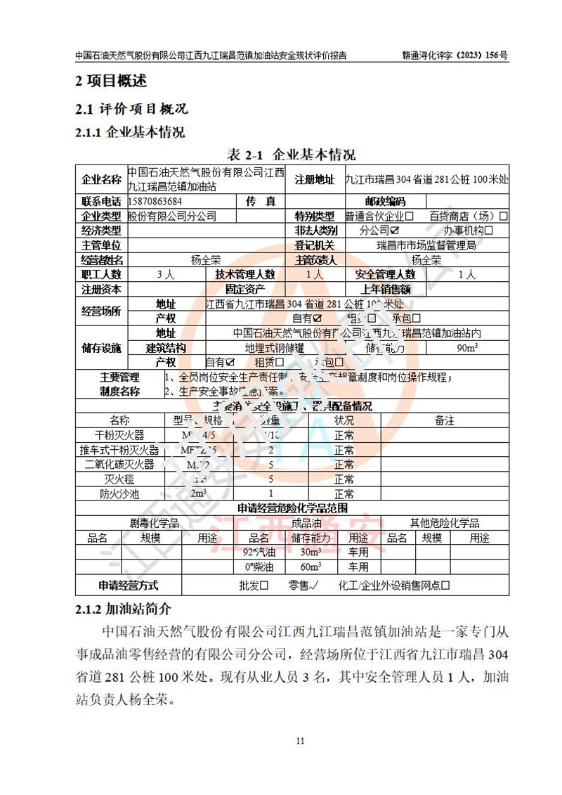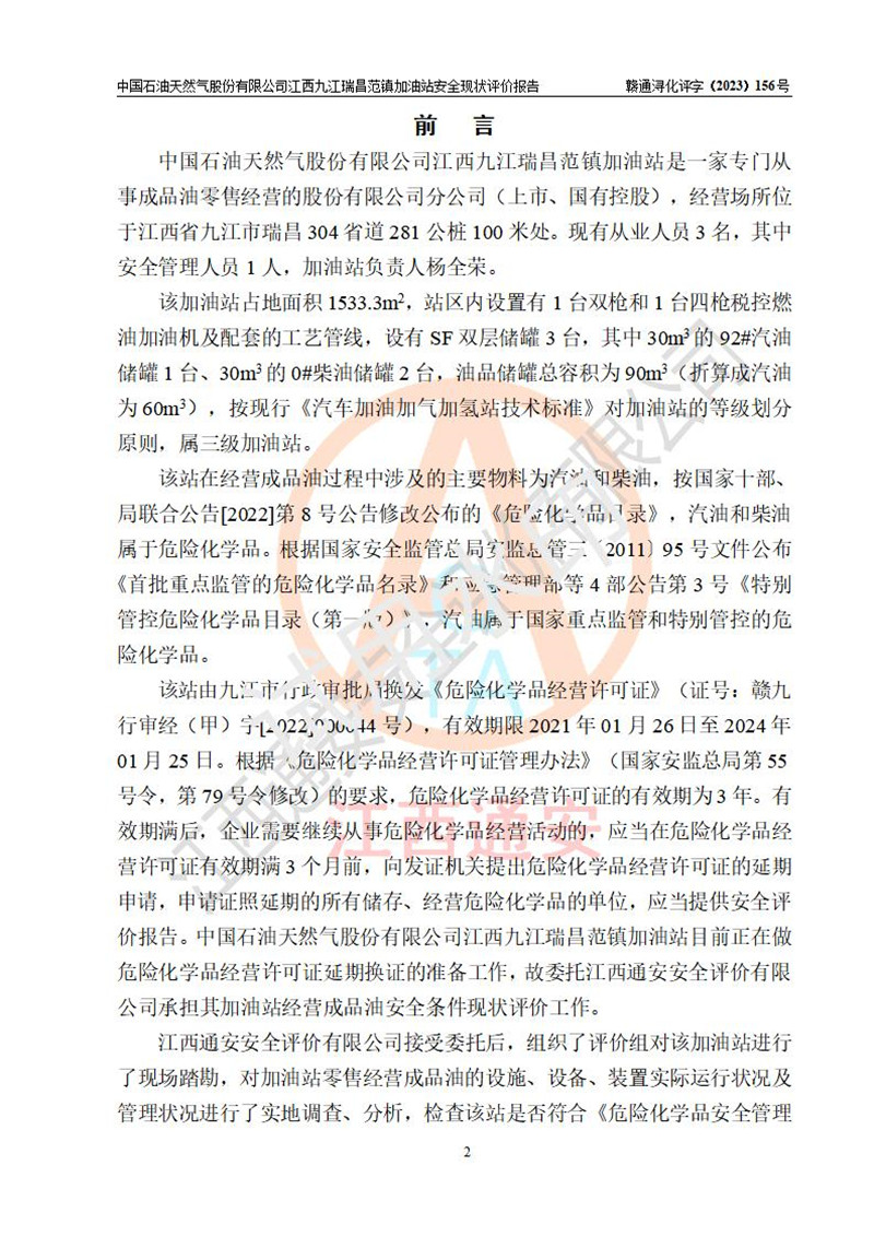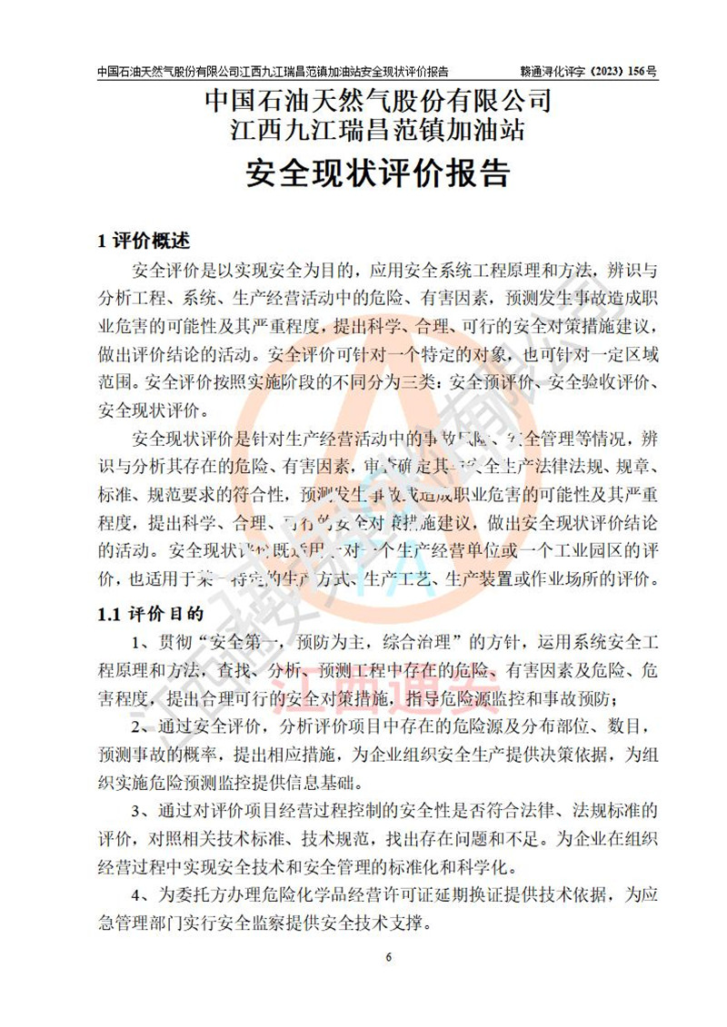 评价报告名称 | 中国石油天然气股份有限公司江西九江瑞昌范镇加油站安全现状评价报告 | |||
