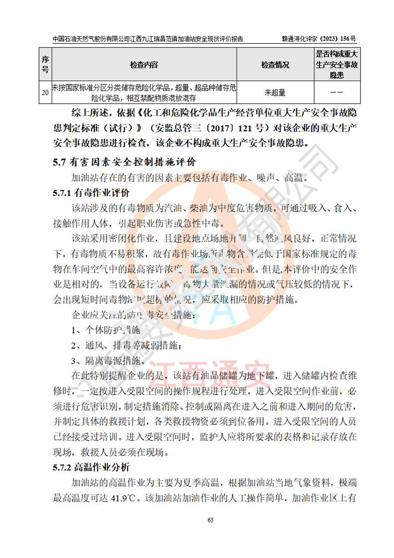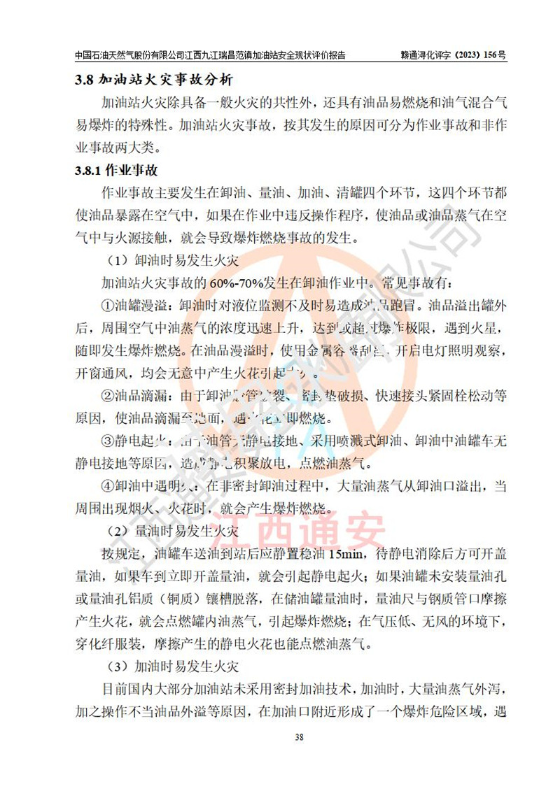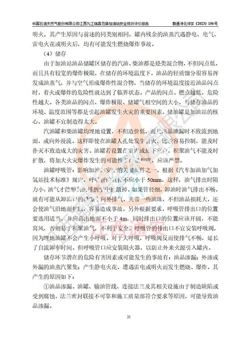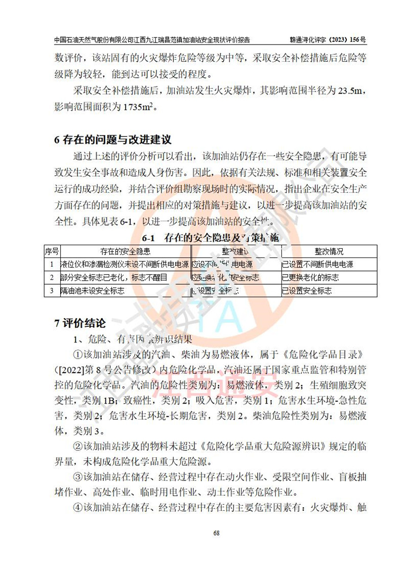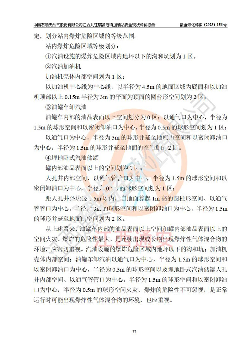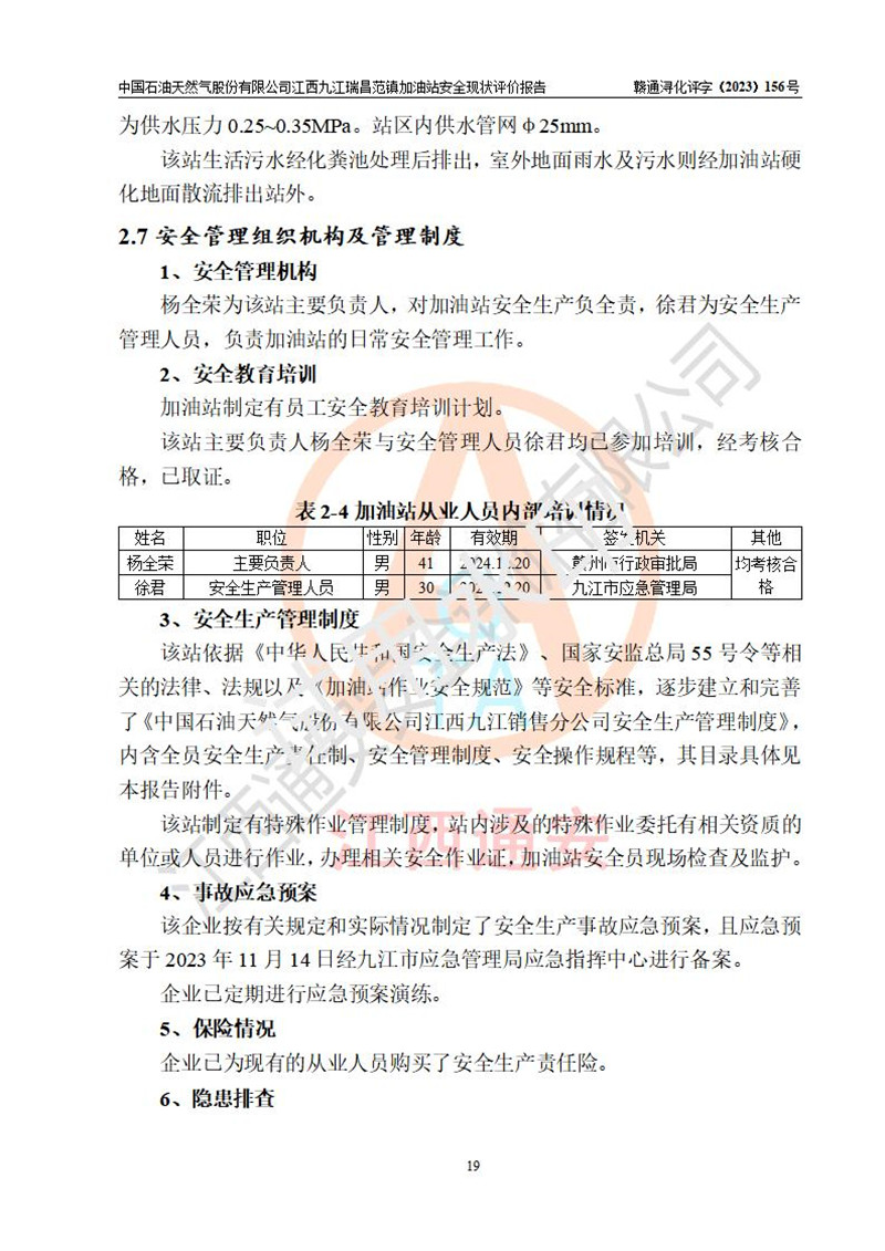 评价报告名称 | 中国石油天然气股份有限公司江西九江瑞昌范镇加油站安全现状评价报告 | |||