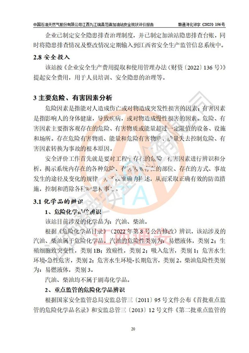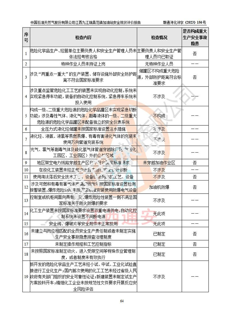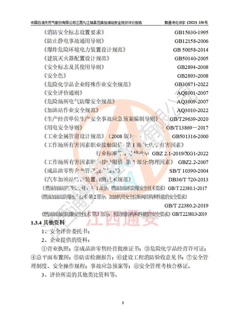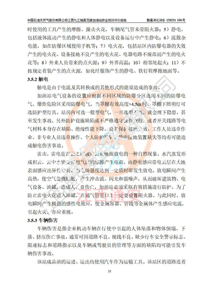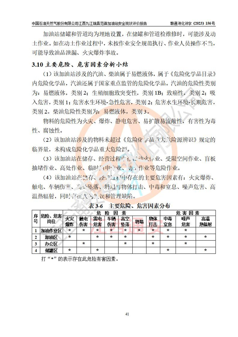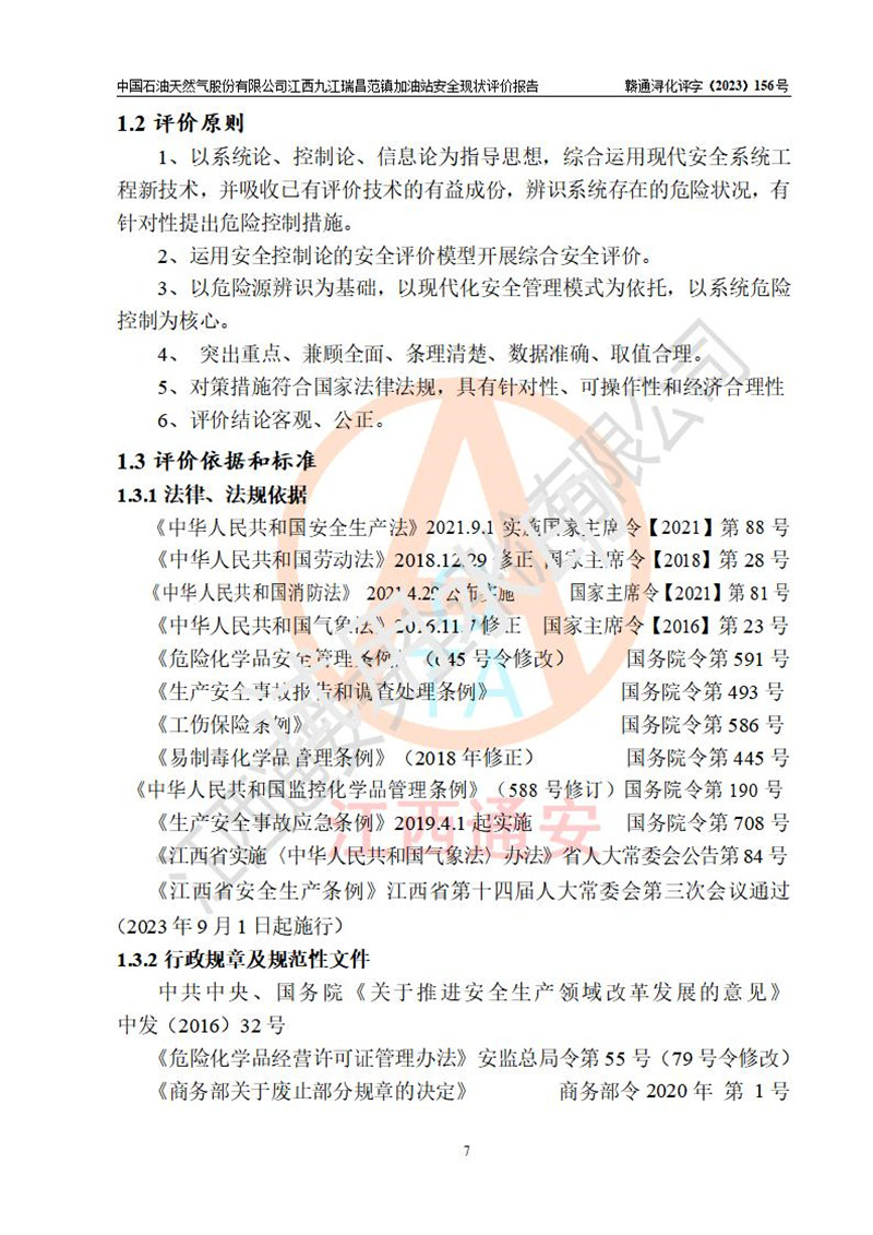 评价报告名称 | 中国石油天然气股份有限公司江西九江瑞昌范镇加油站安全现状评价报告 | |||