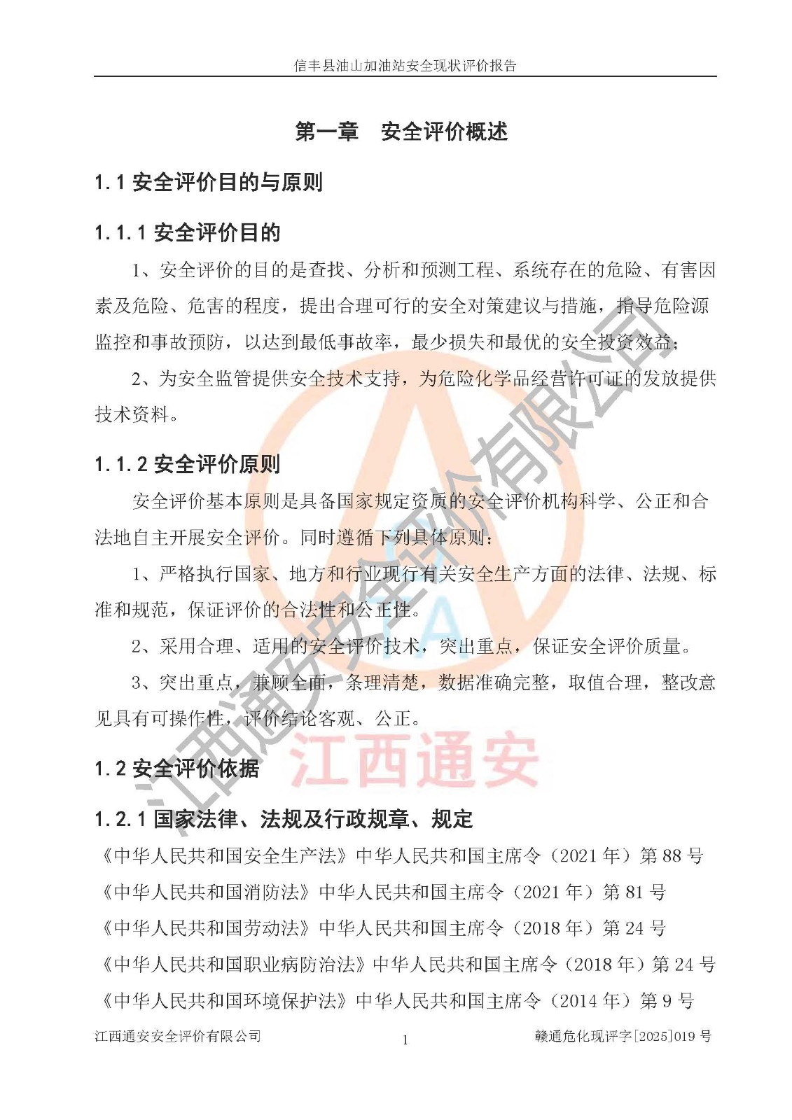 评价报告名称 | 信丰县油山加油站安全现状评价报告 | |||