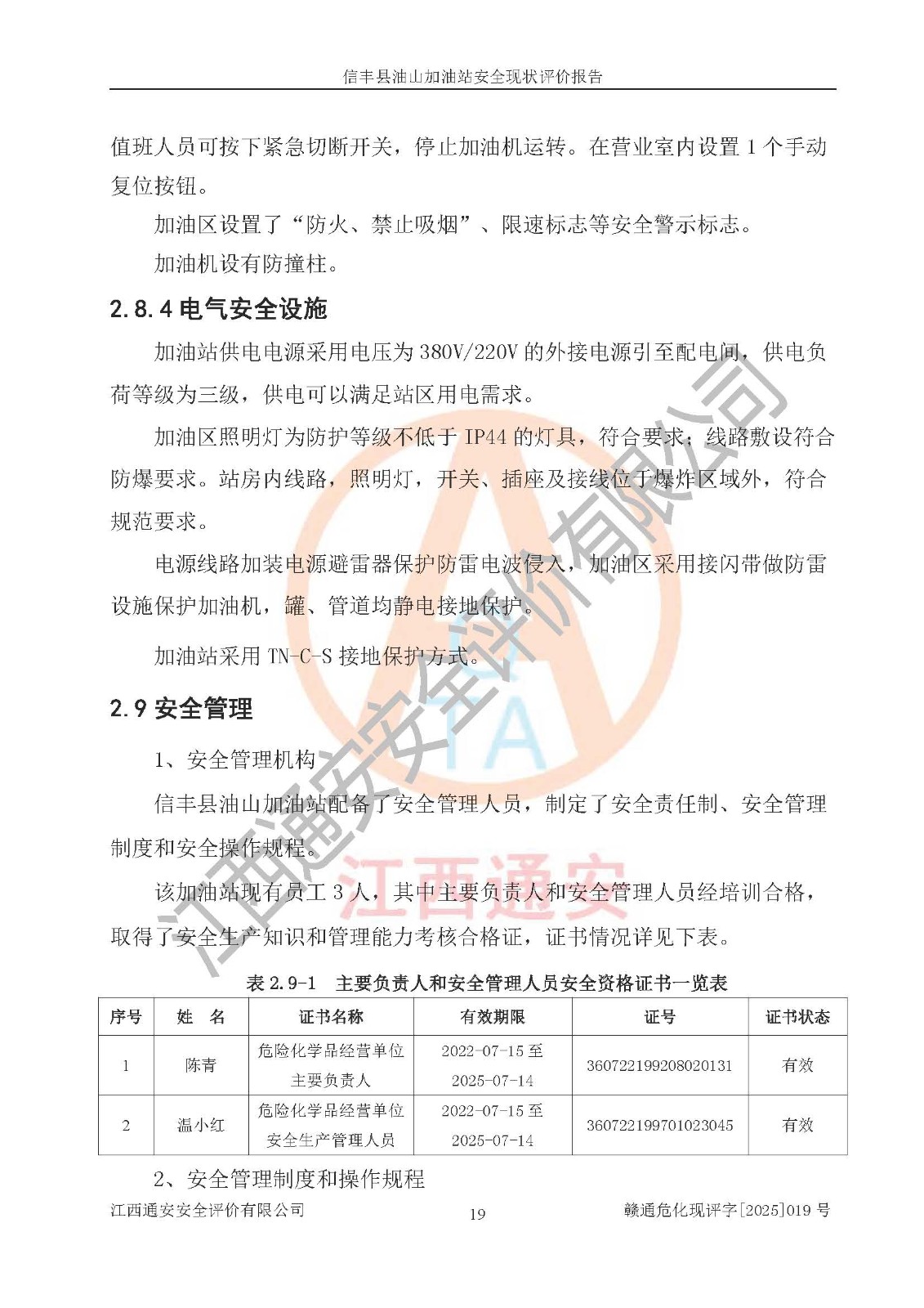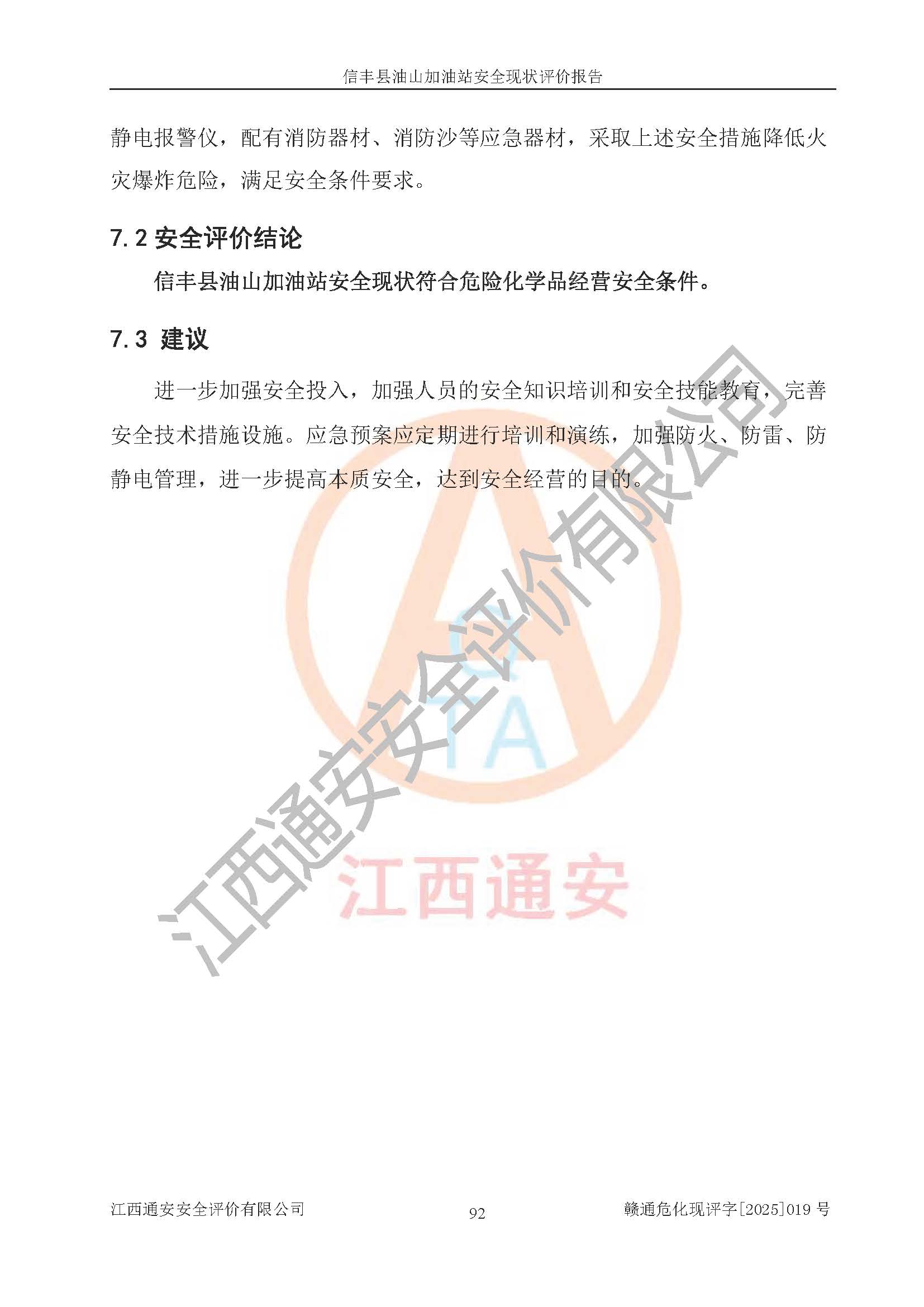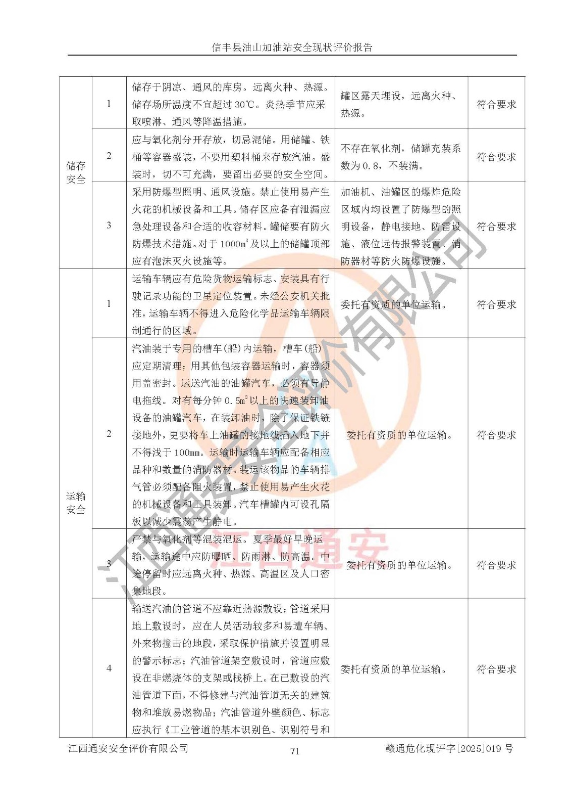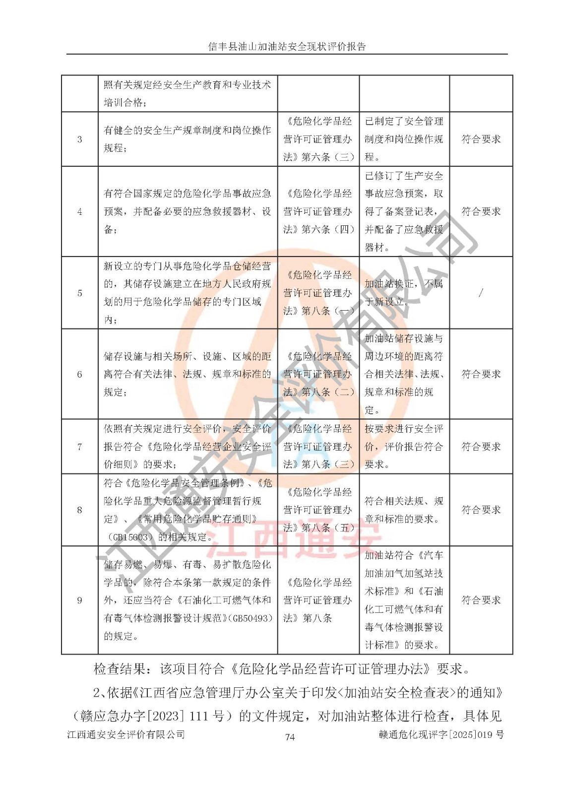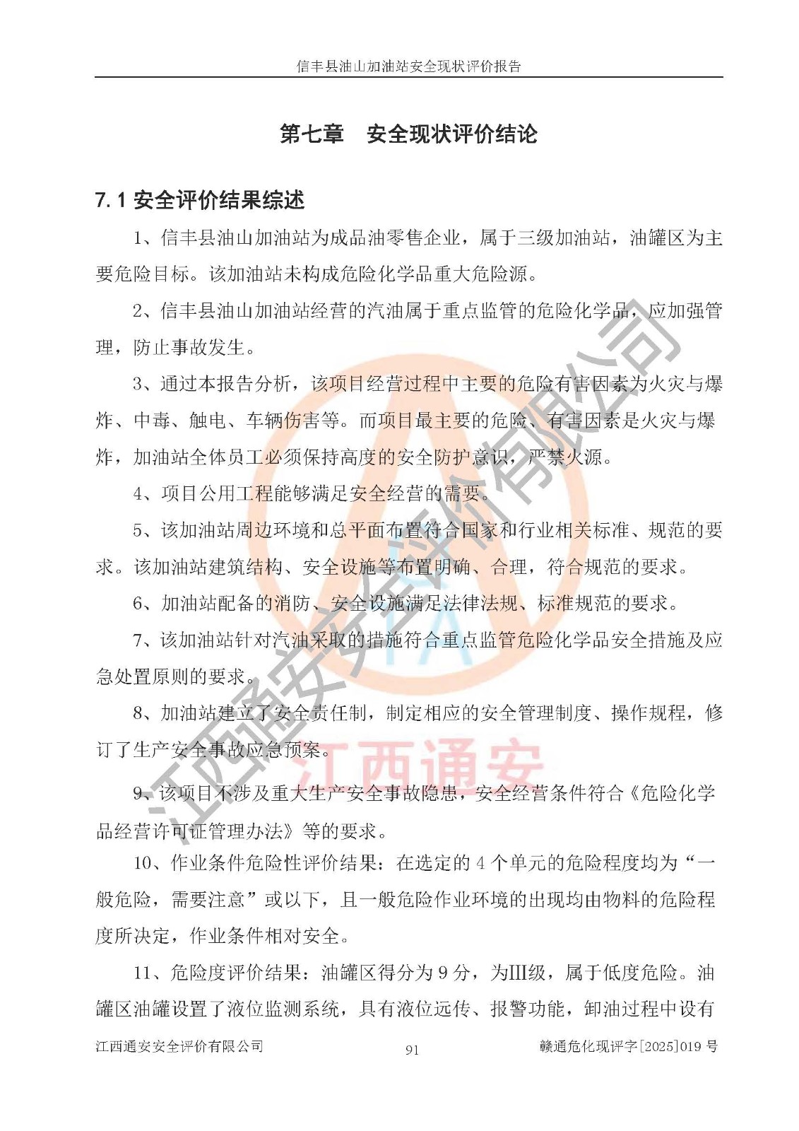 评价结论 | 信丰县油山加油站安全现状符合危险化学品经营安全条件。 | |||