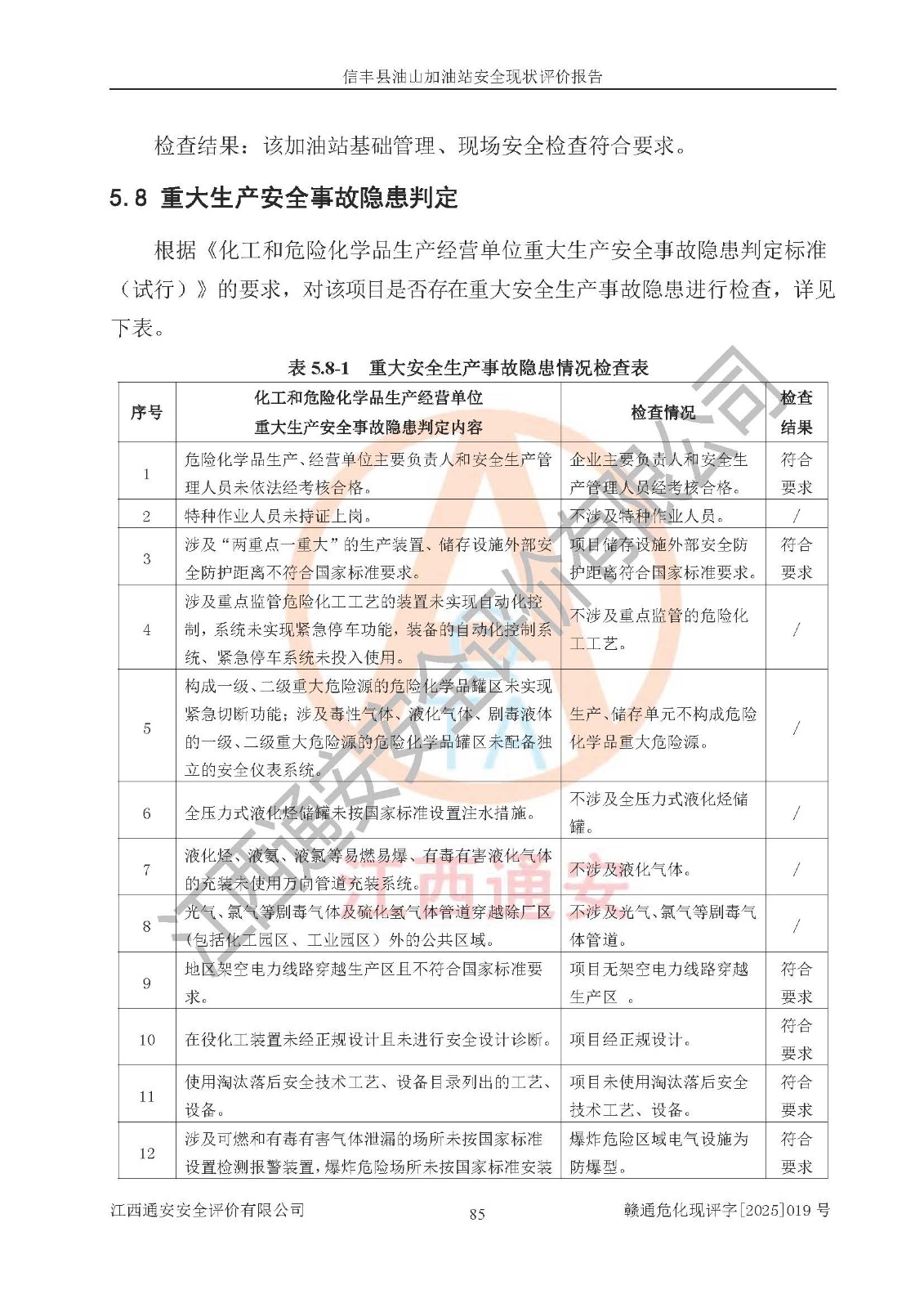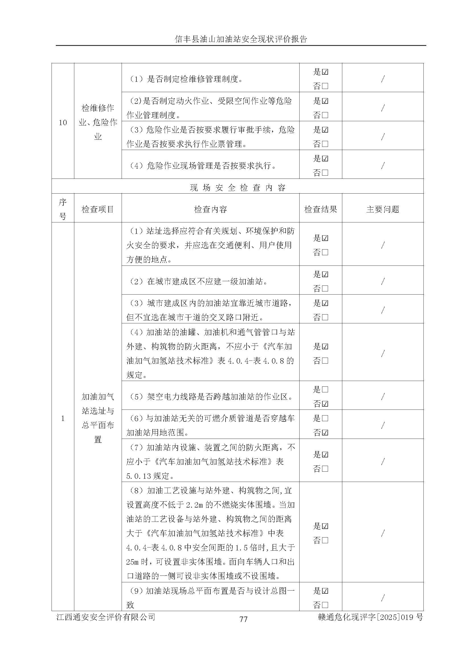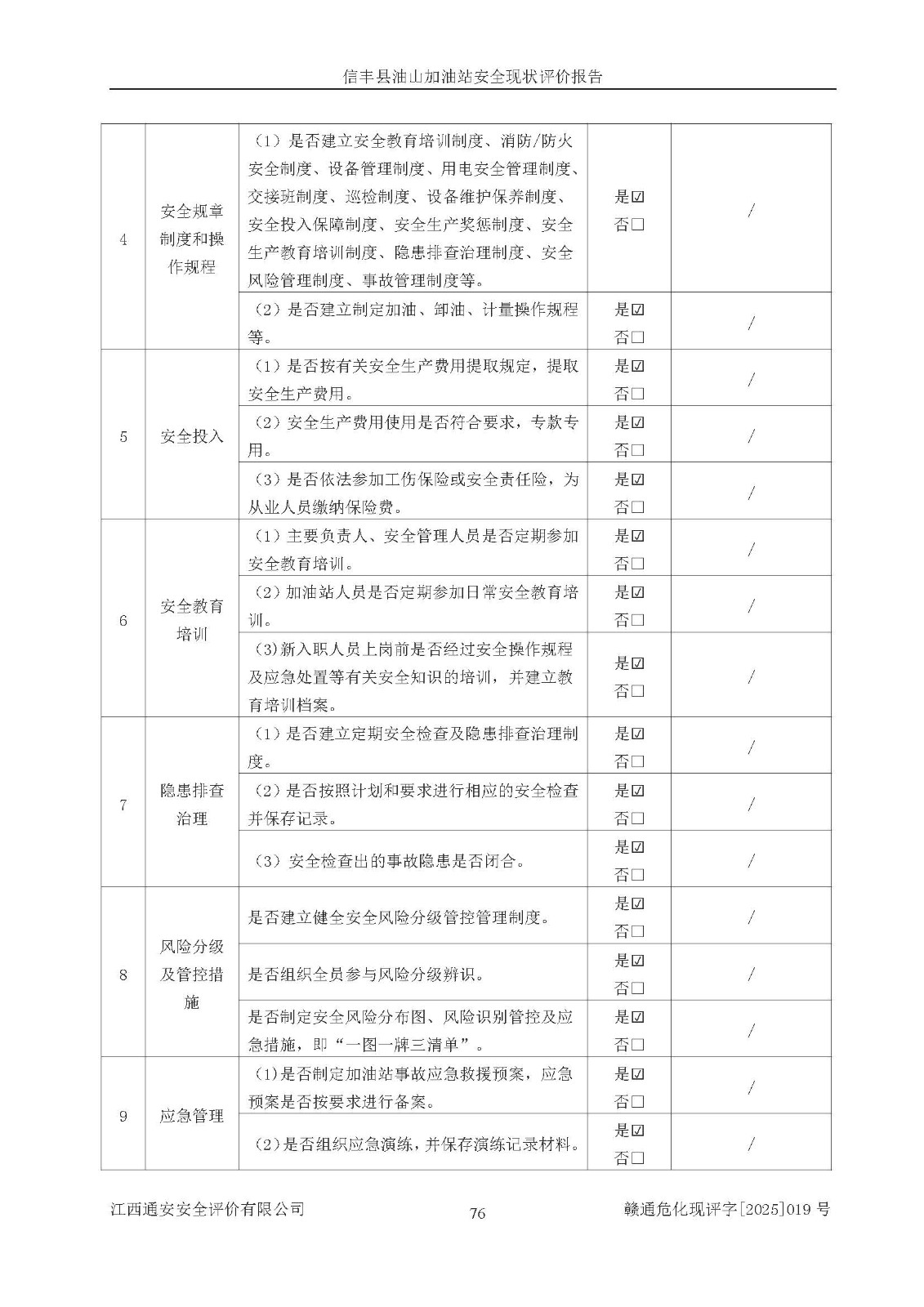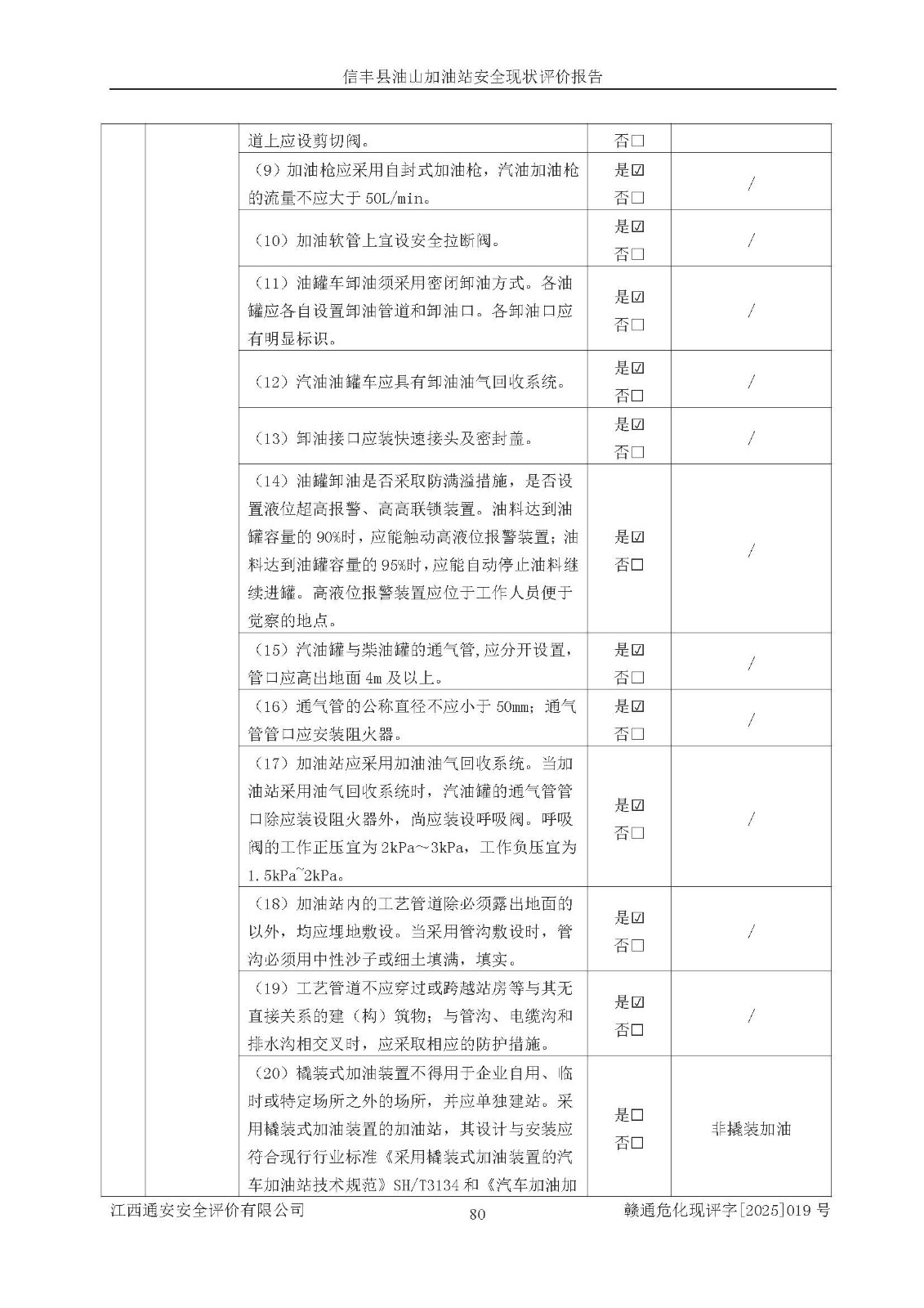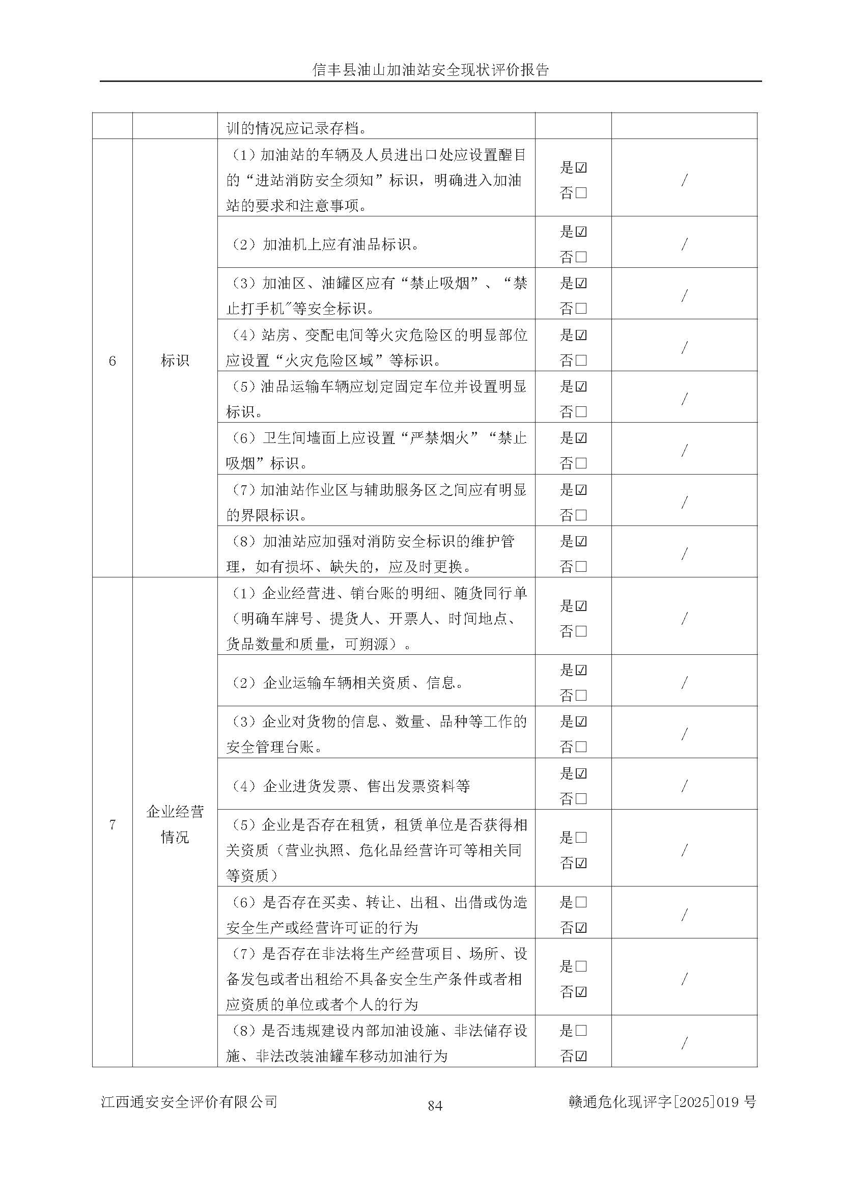 评价结论 | 信丰县油山加油站安全现状符合危险化学品经营安全条件。 | |||