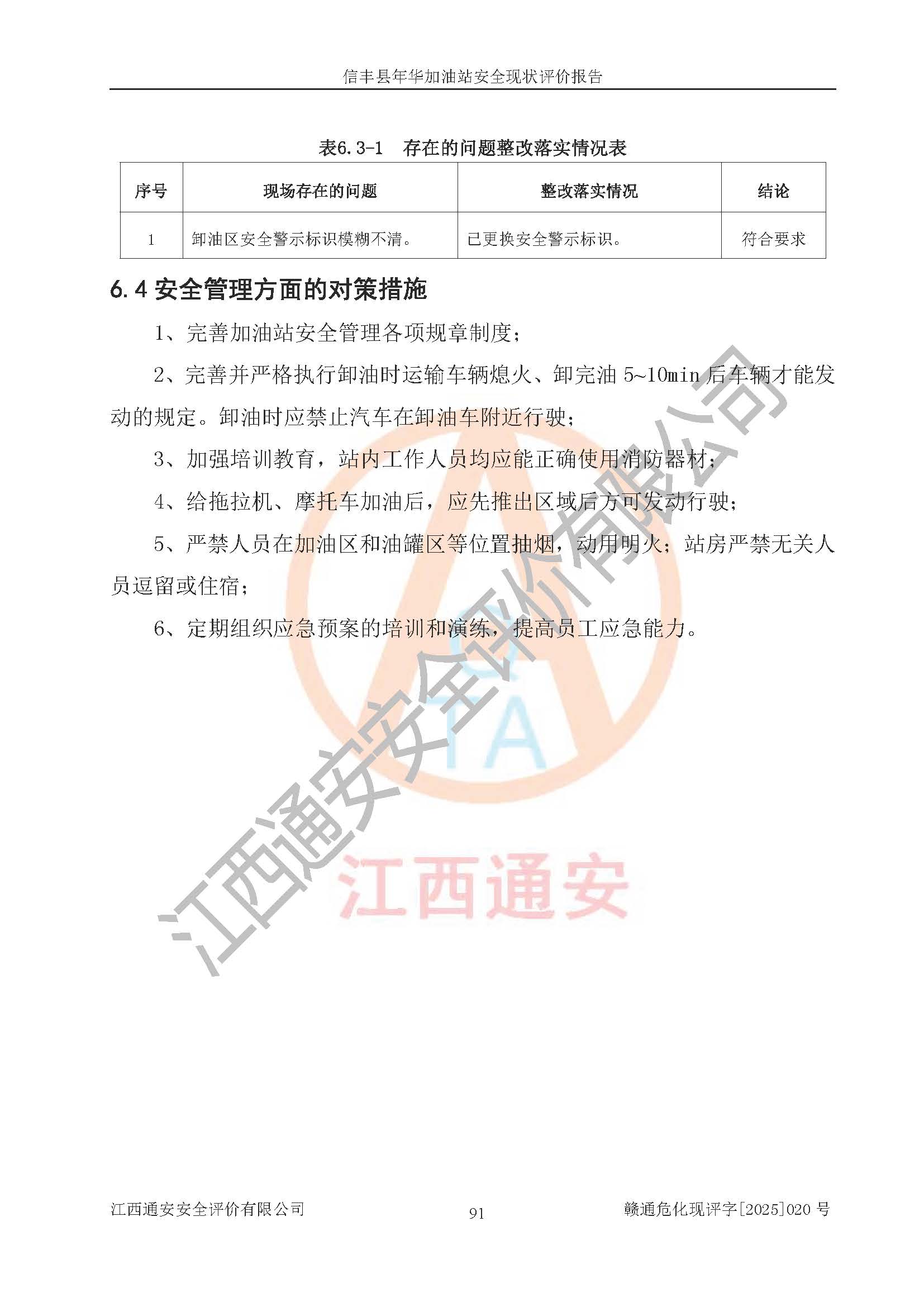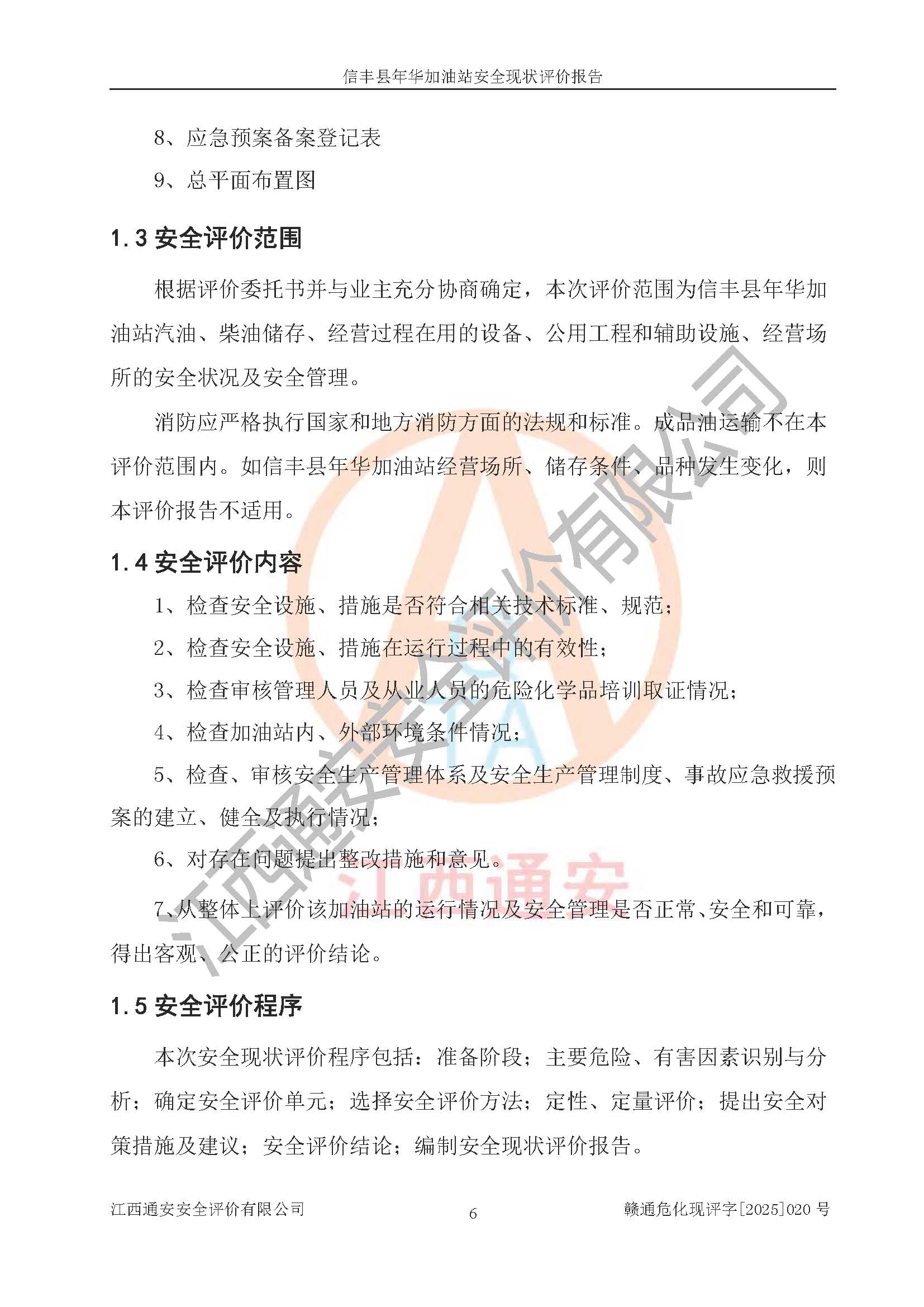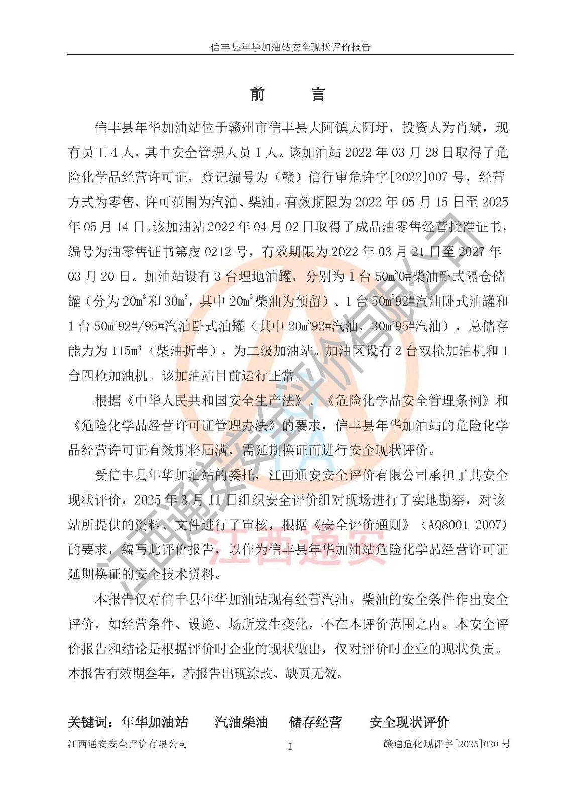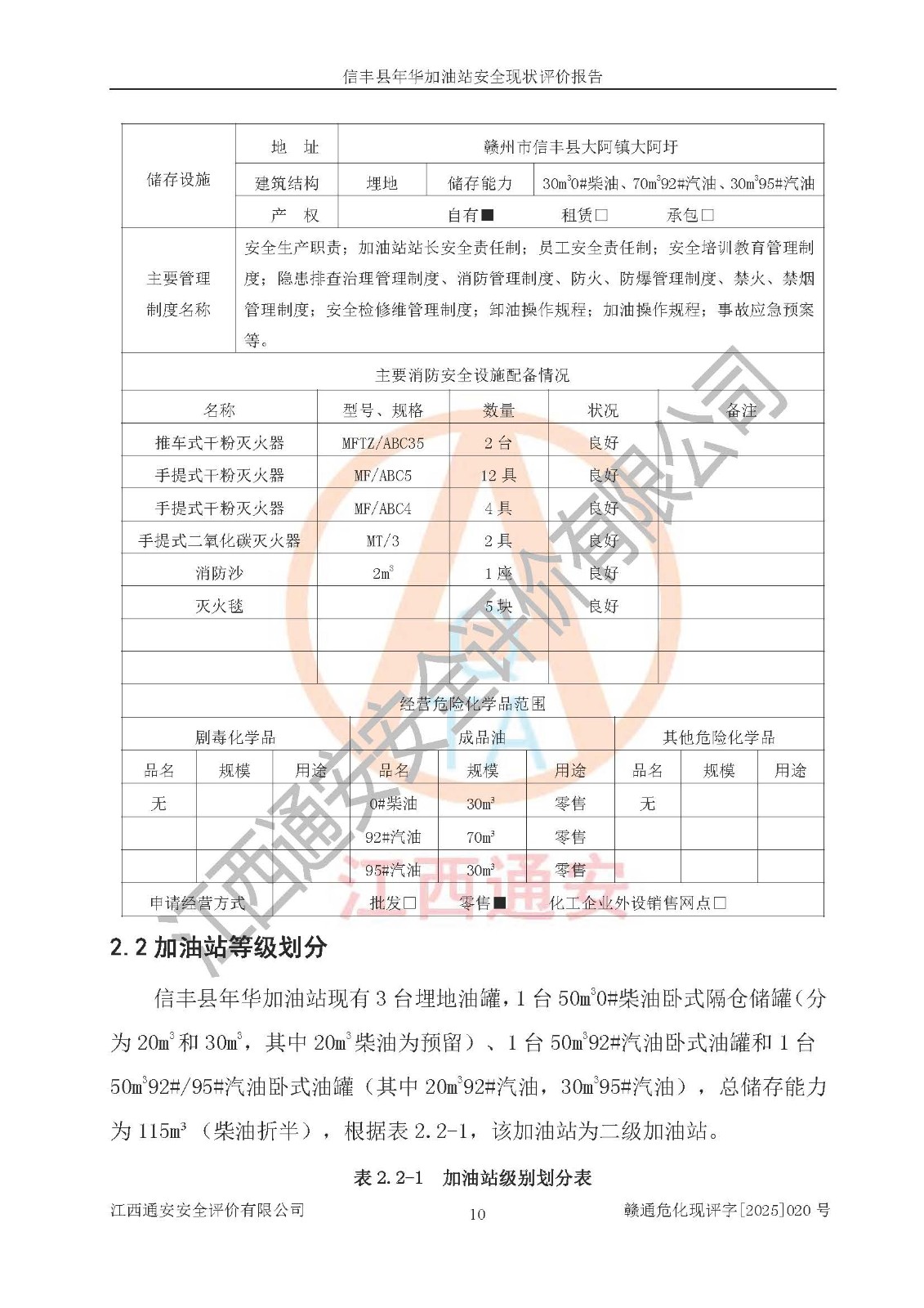 评价报告名称 | 信丰县年华加油站安全现状评价报告 | |||