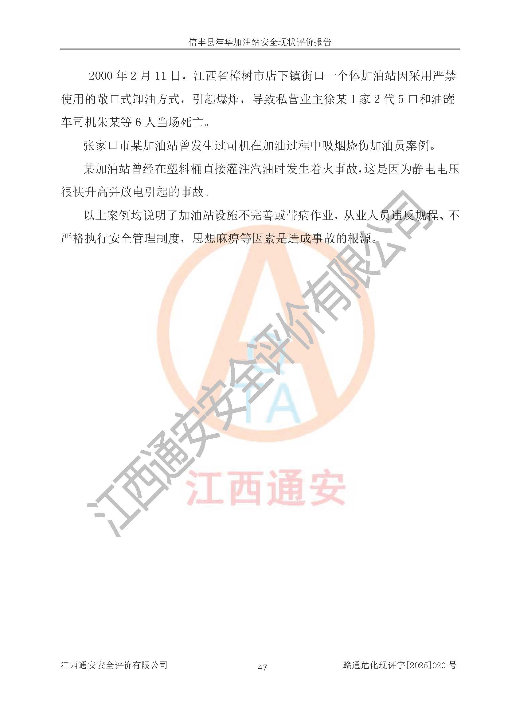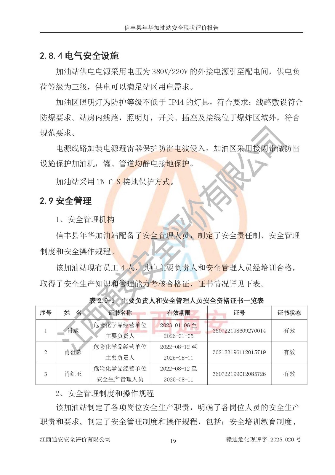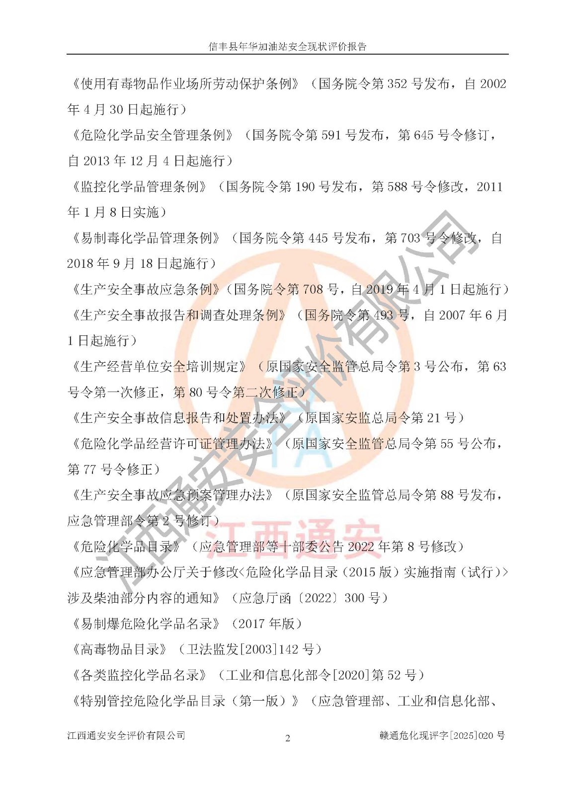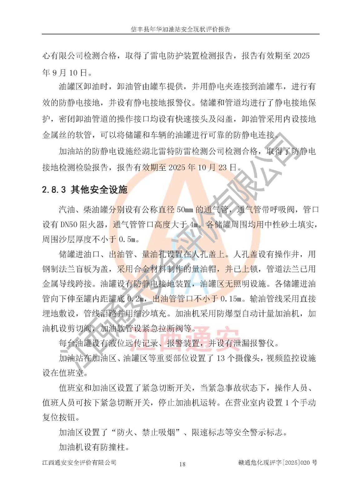 评价报告名称 | 信丰县年华加油站安全现状评价报告 | |||