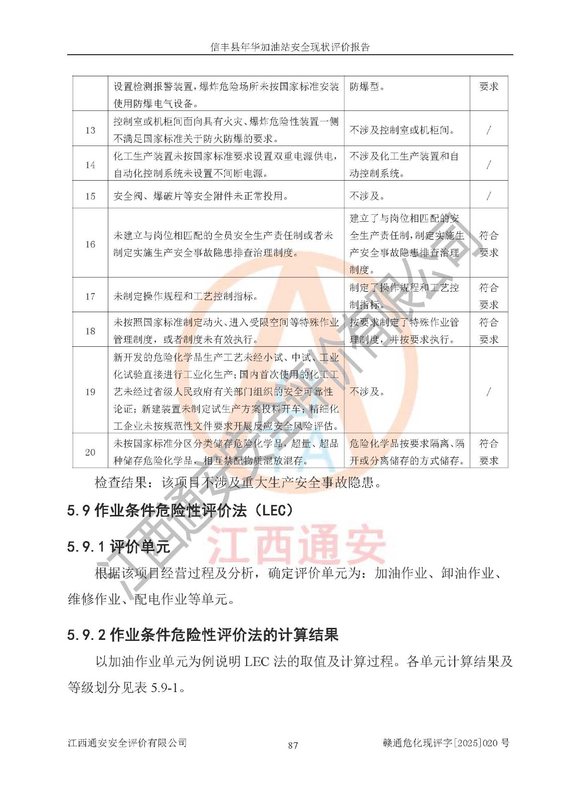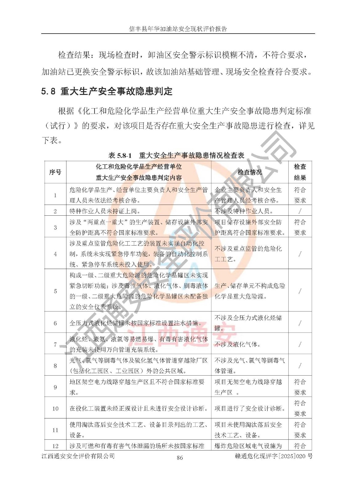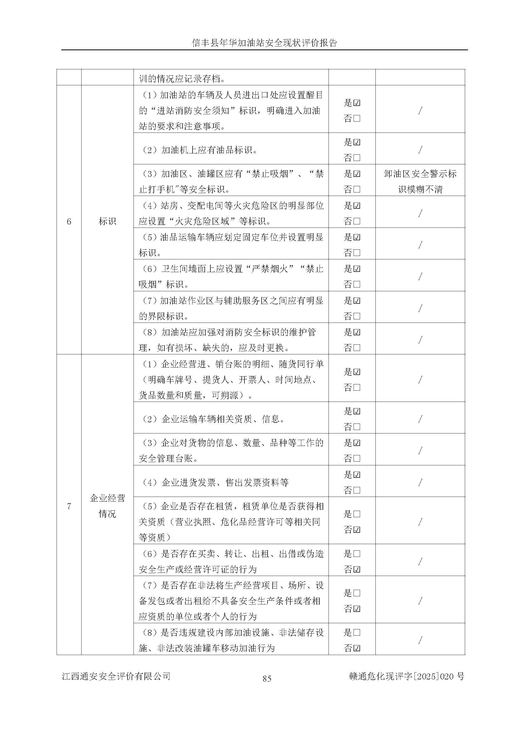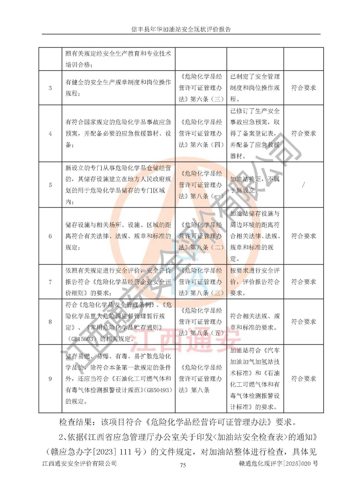 评价结论 | 信丰县年华加油站安全现状符合危险化学品经营安全条件。 | |||
