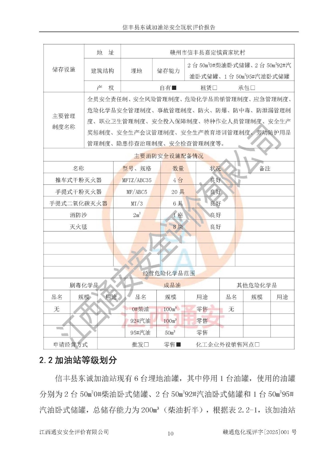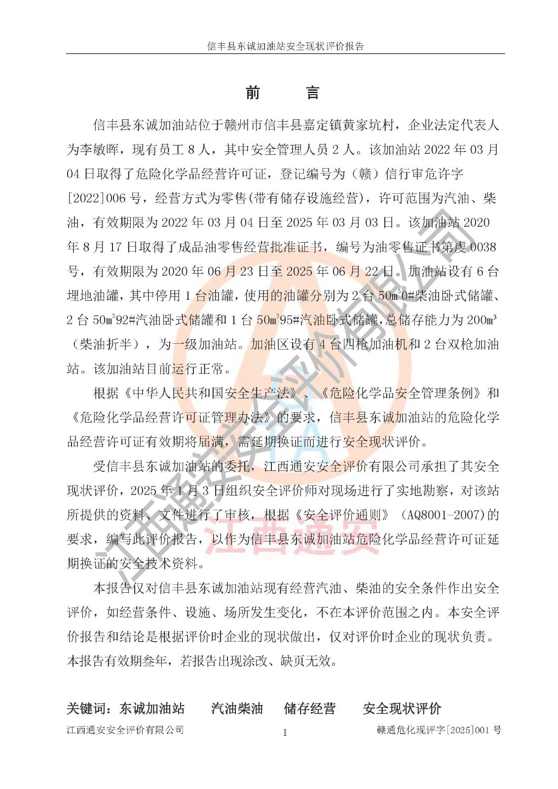 评价报告名称 | 信丰县东诚加油站安全现状评价报告 | |||