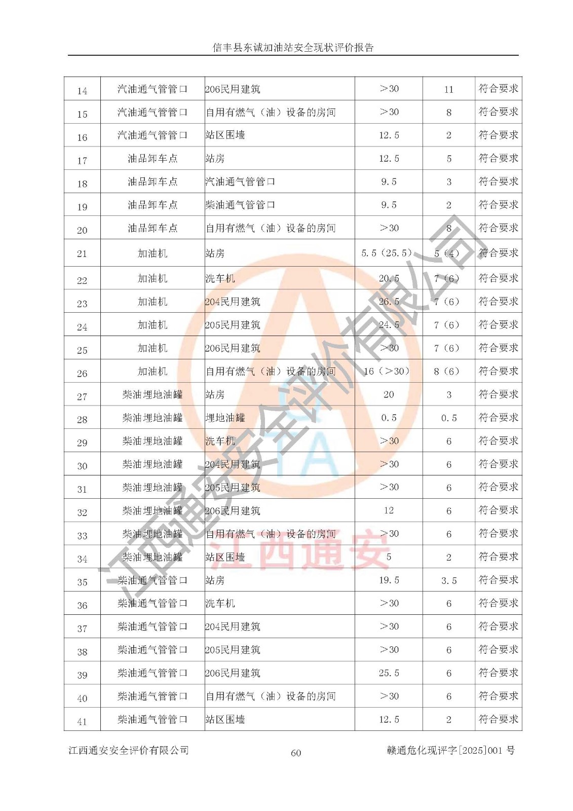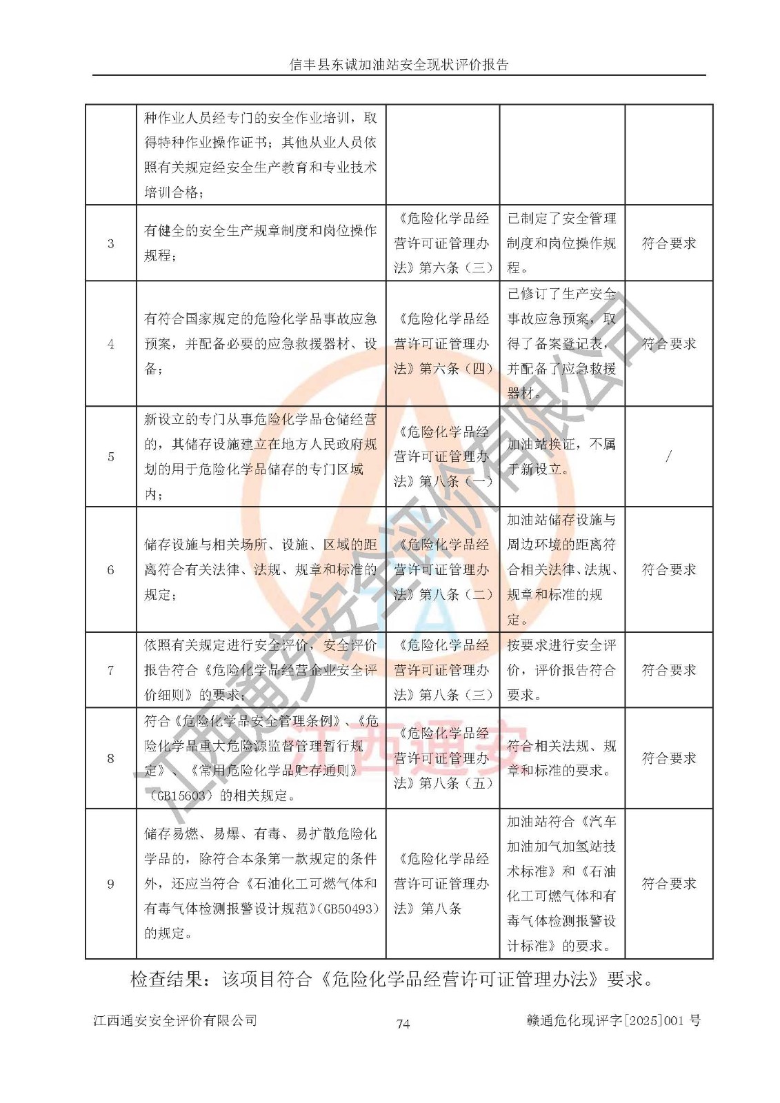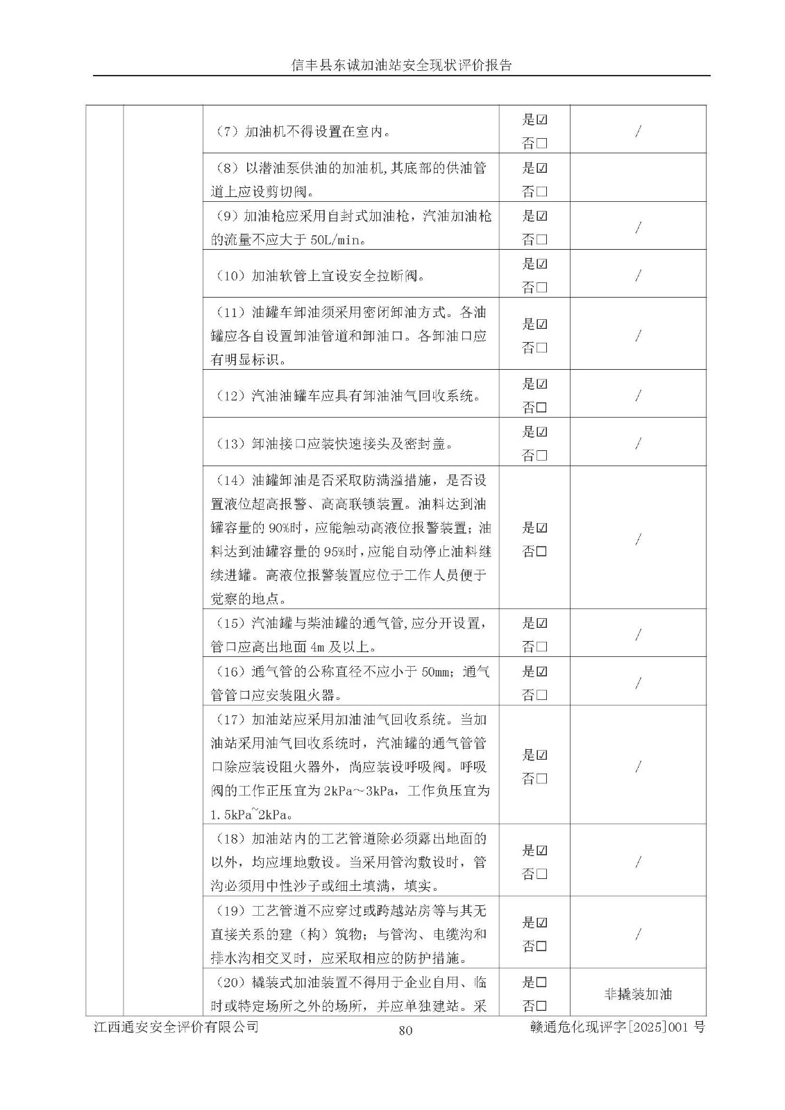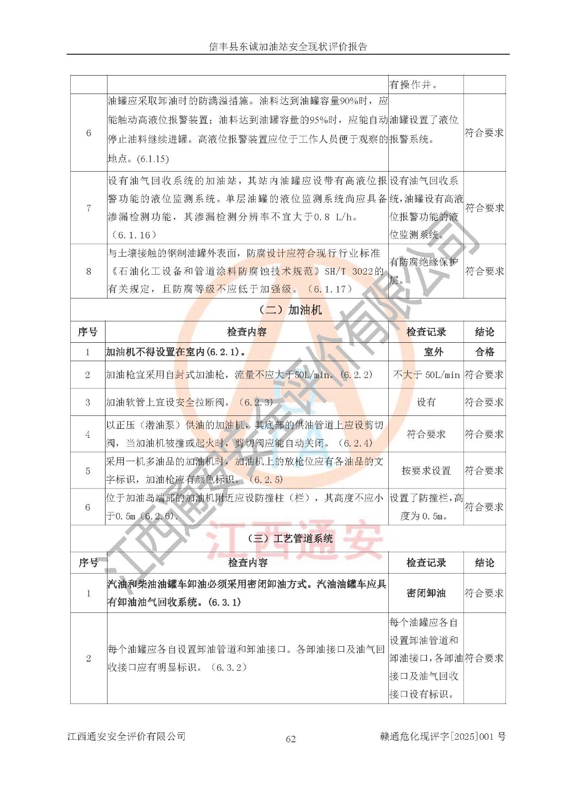 评价结论 | 信丰县东诚加油站安全现状符合危险化学品经营安全条件。 | |||
