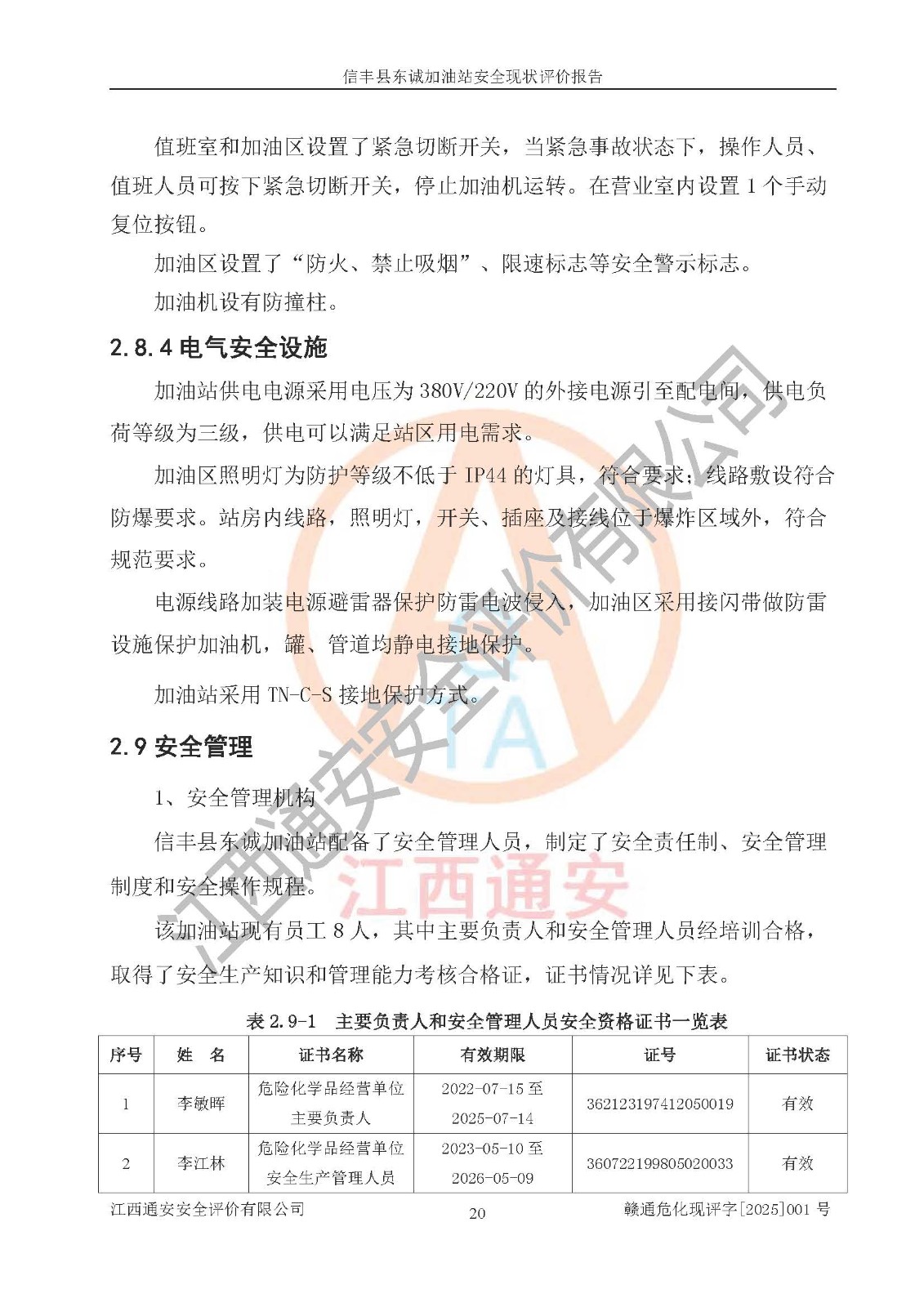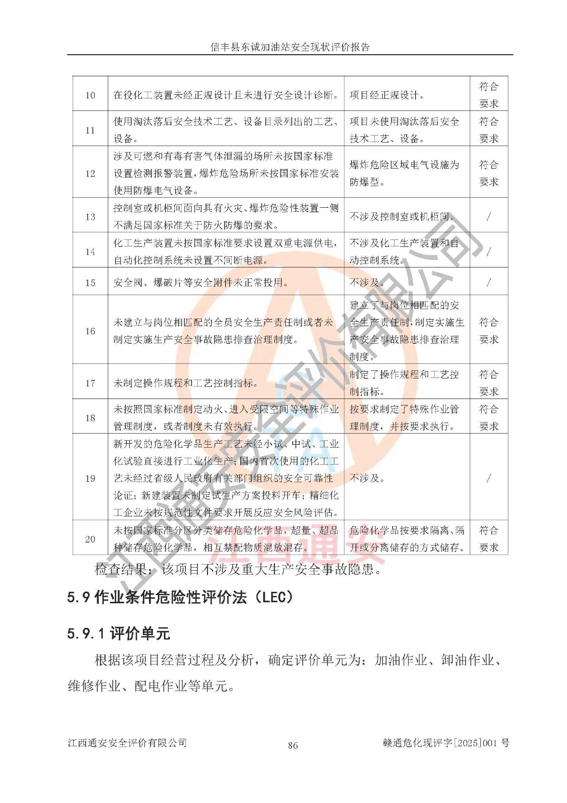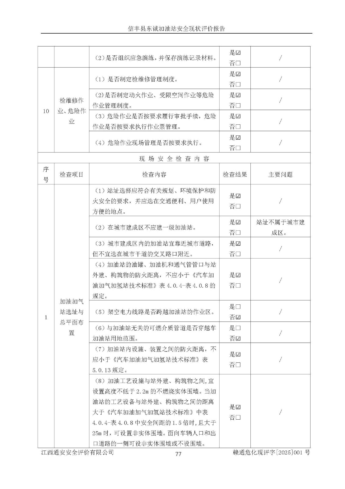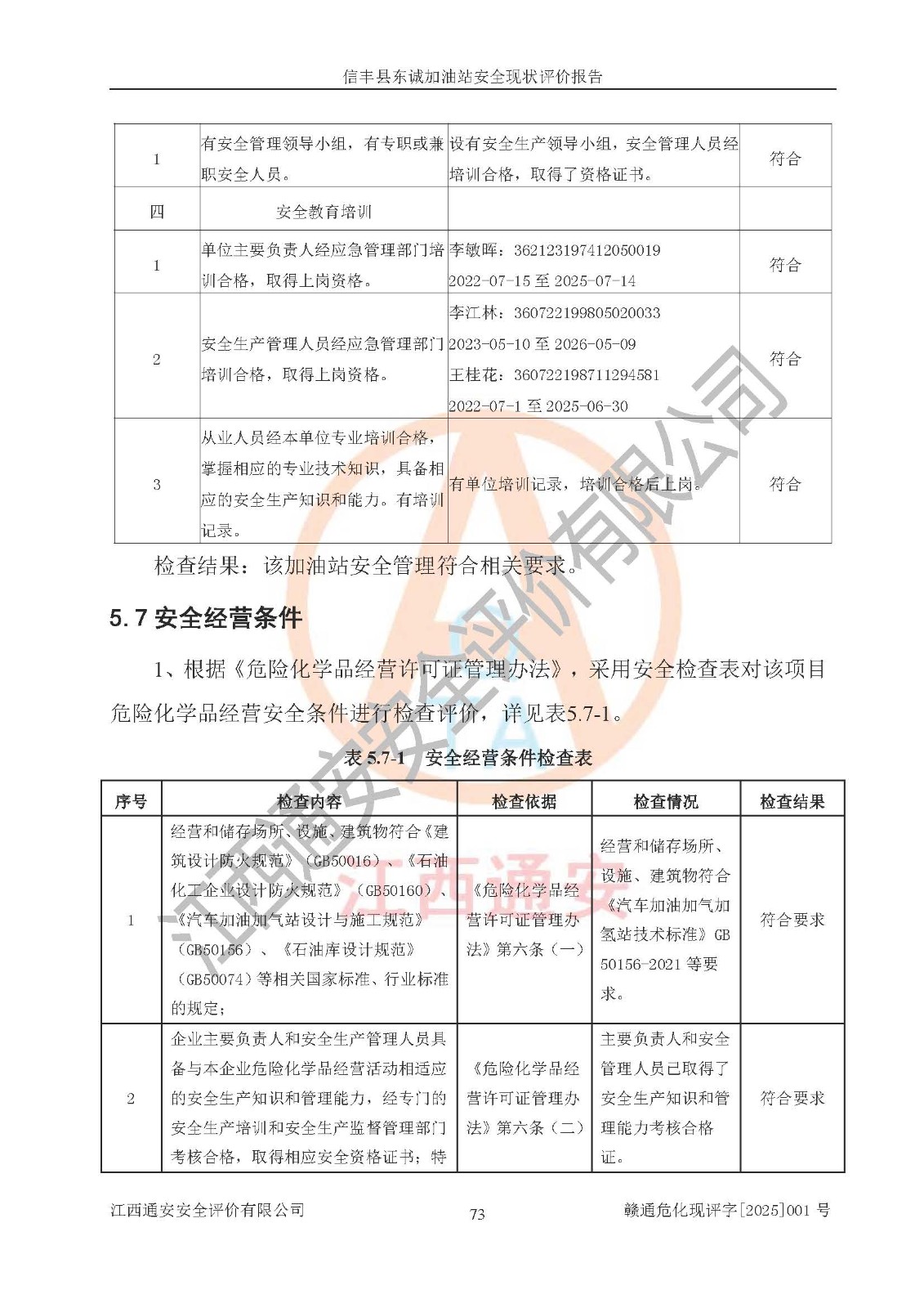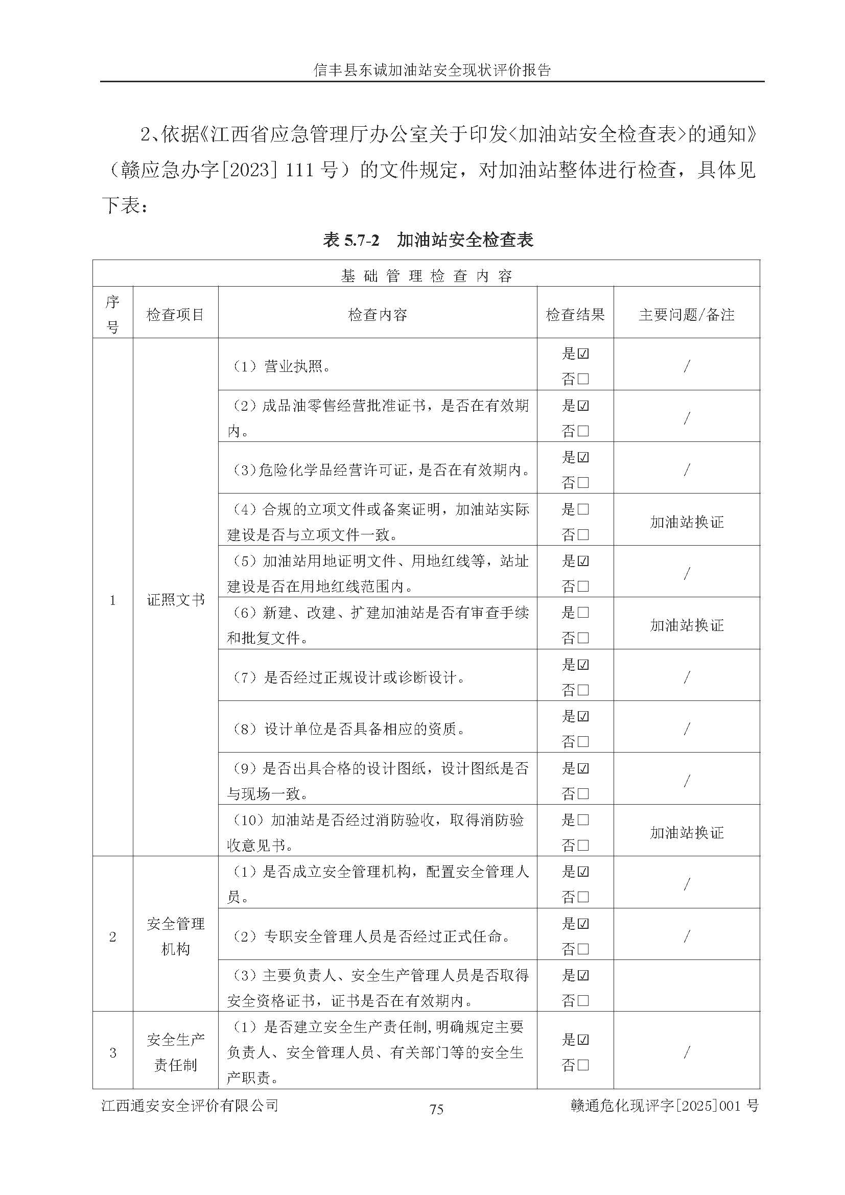 评价结论 | 信丰县东诚加油站安全现状符合危险化学品经营安全条件。 | |||