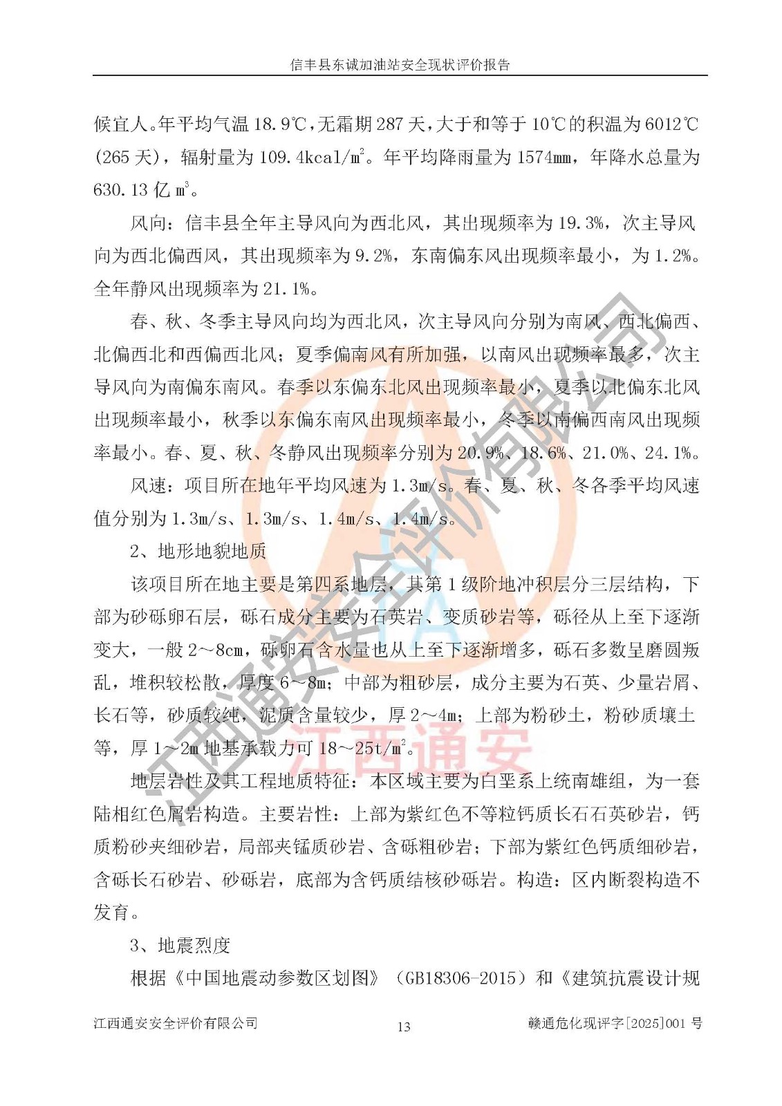 勘察现场工作时间 | 2025年1月3日 | 报告提交时间 | 2025年1月 | |
