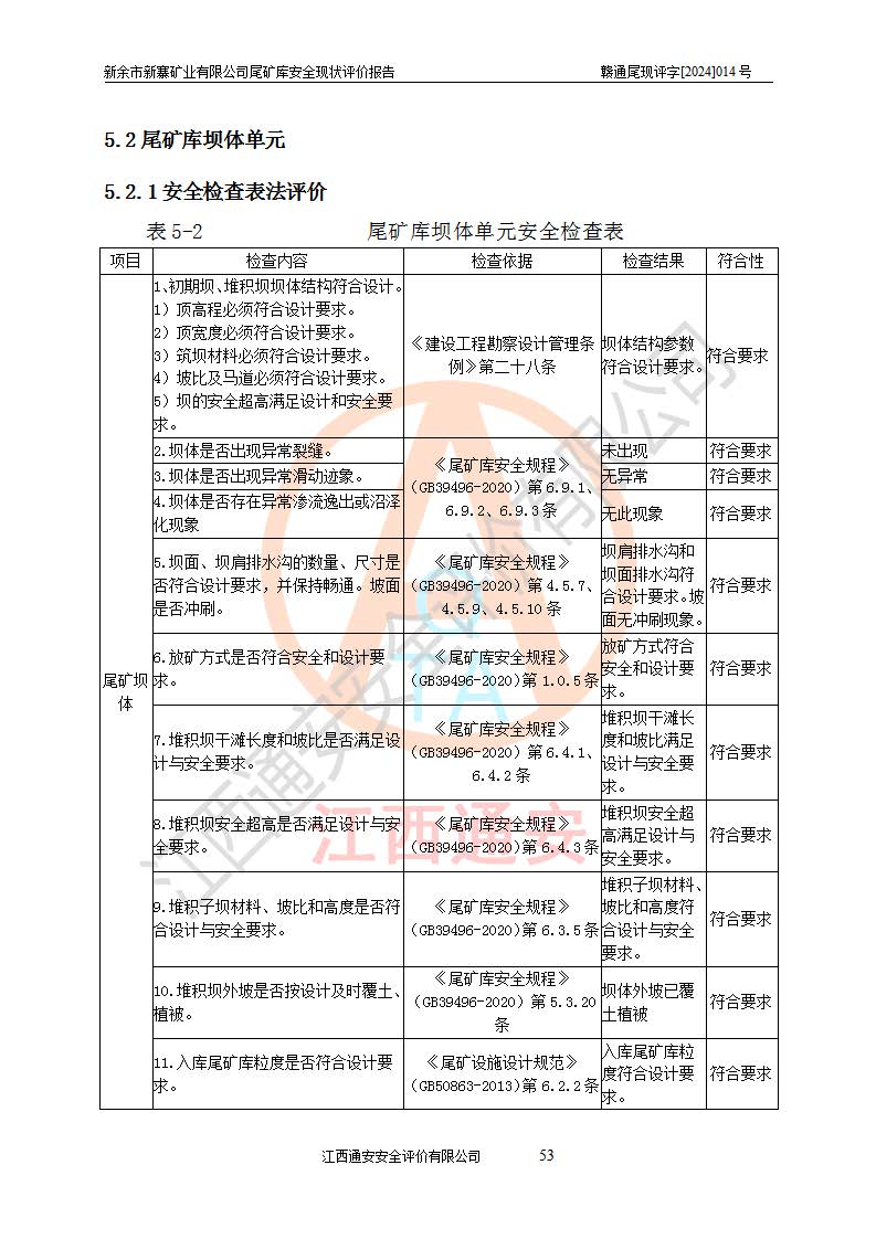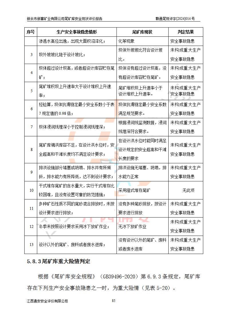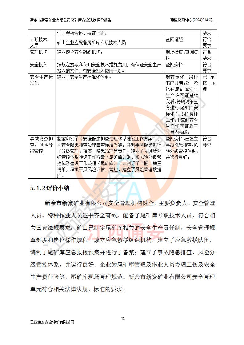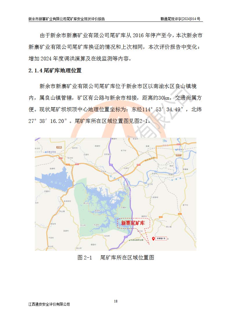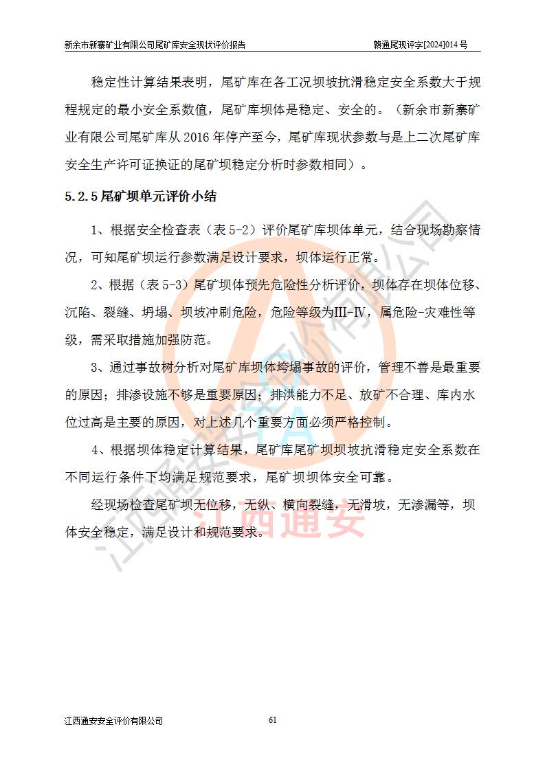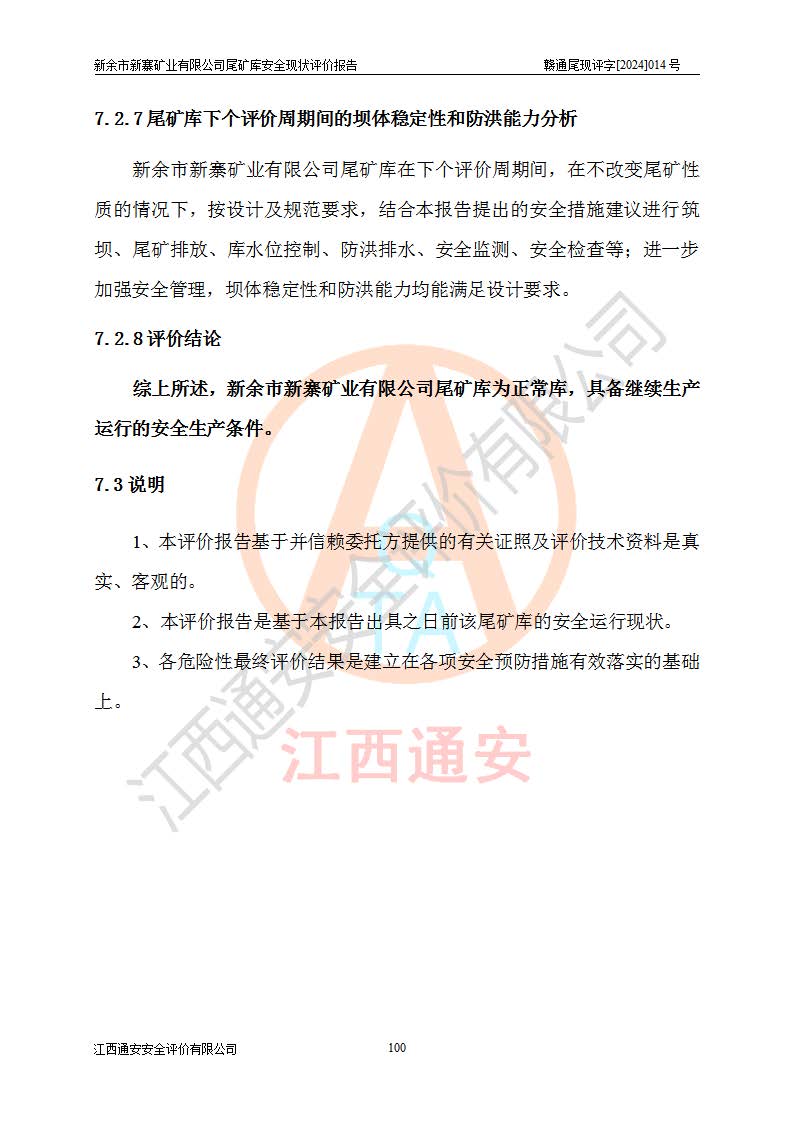 评价结论 | 新余市新寨矿业有限公司尾矿库为正常库,具备继续生产运行的安全生产条件。