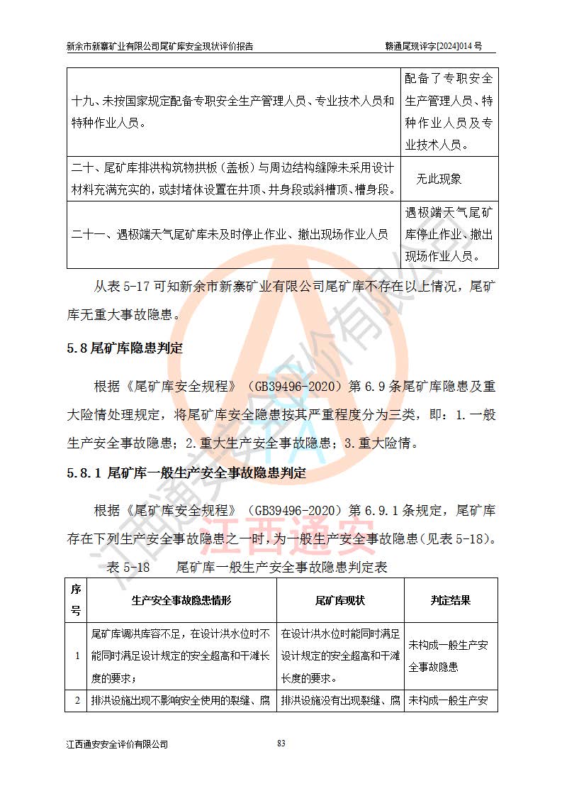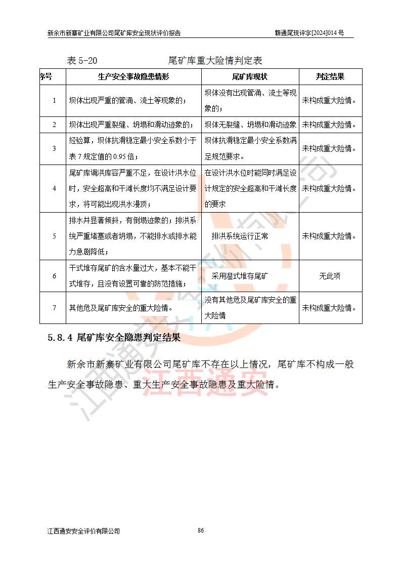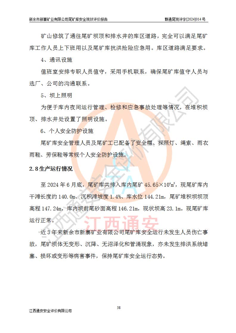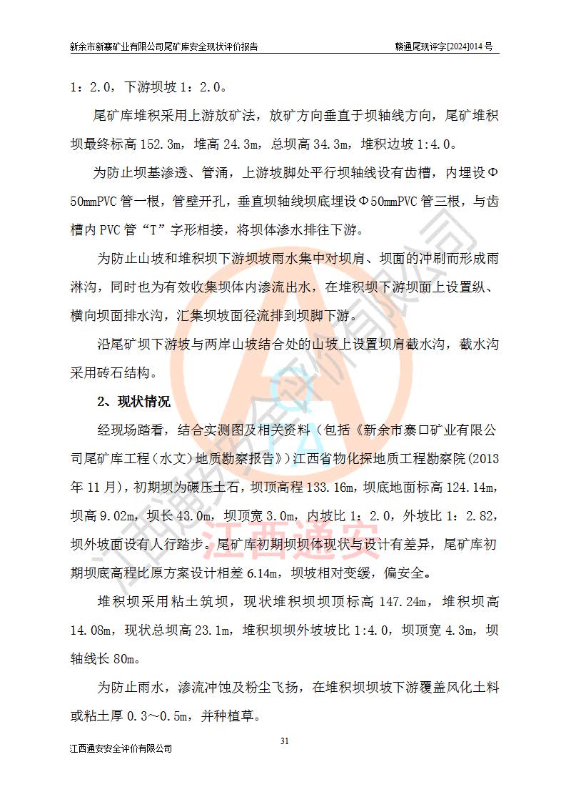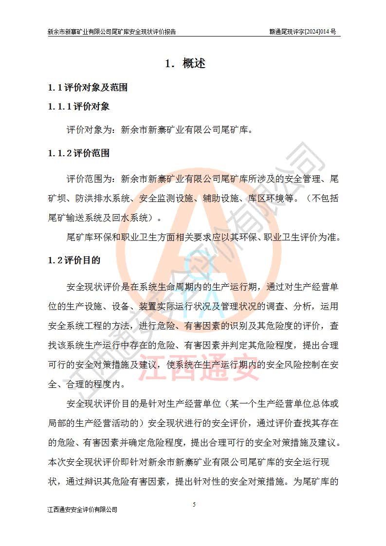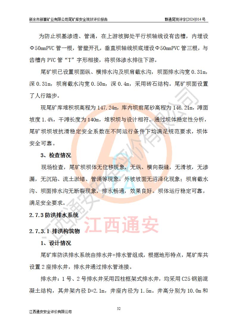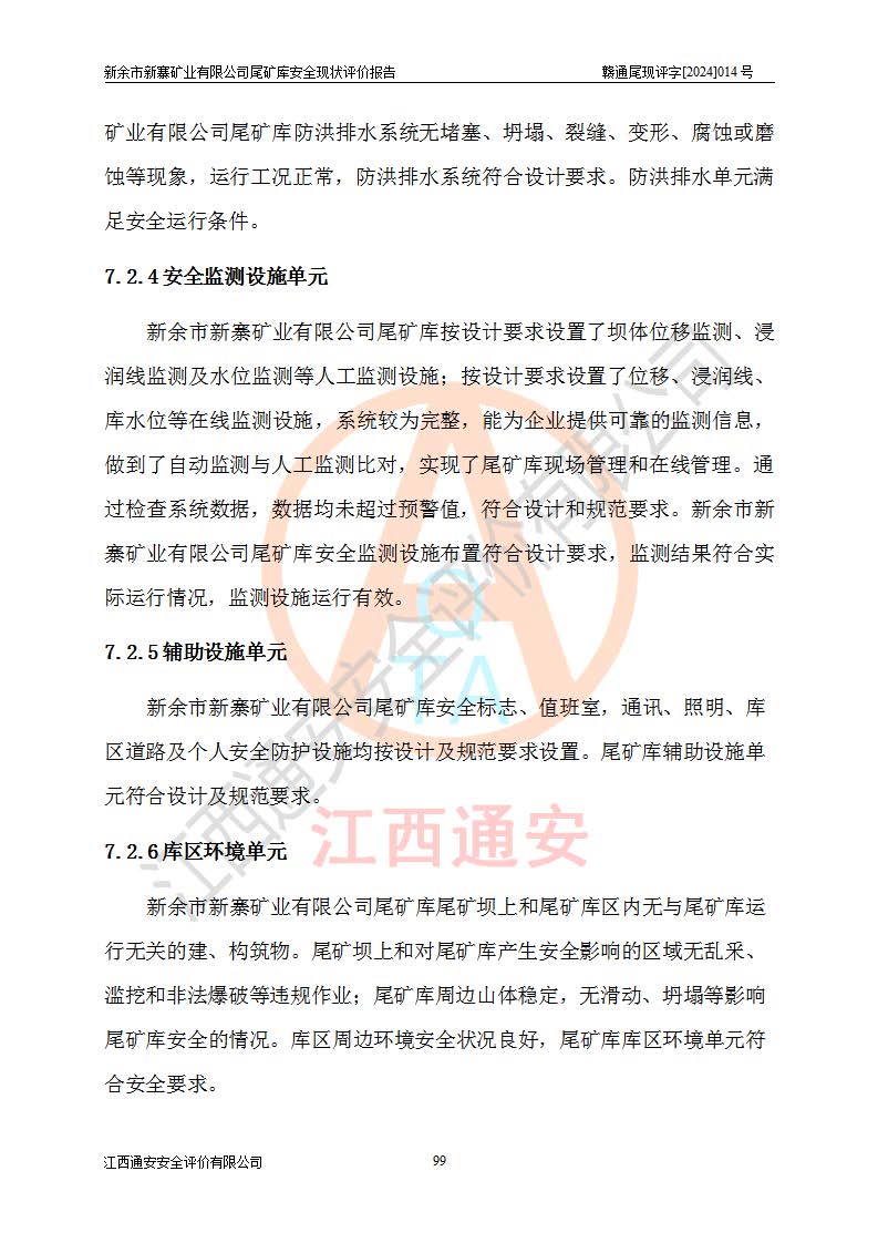 评价结论 | 新余市新寨矿业有限公司尾矿库为正常库,具备继续生产运行的安全生产条件。