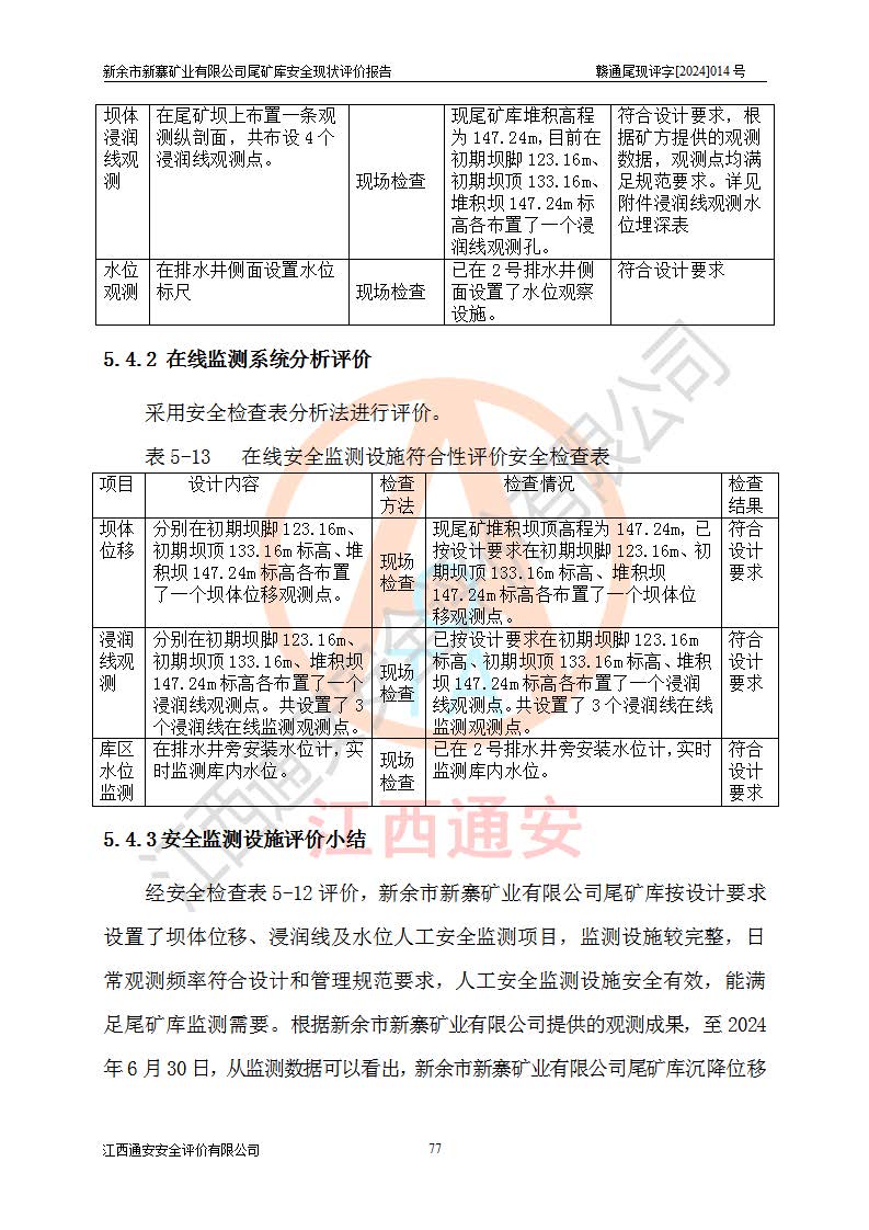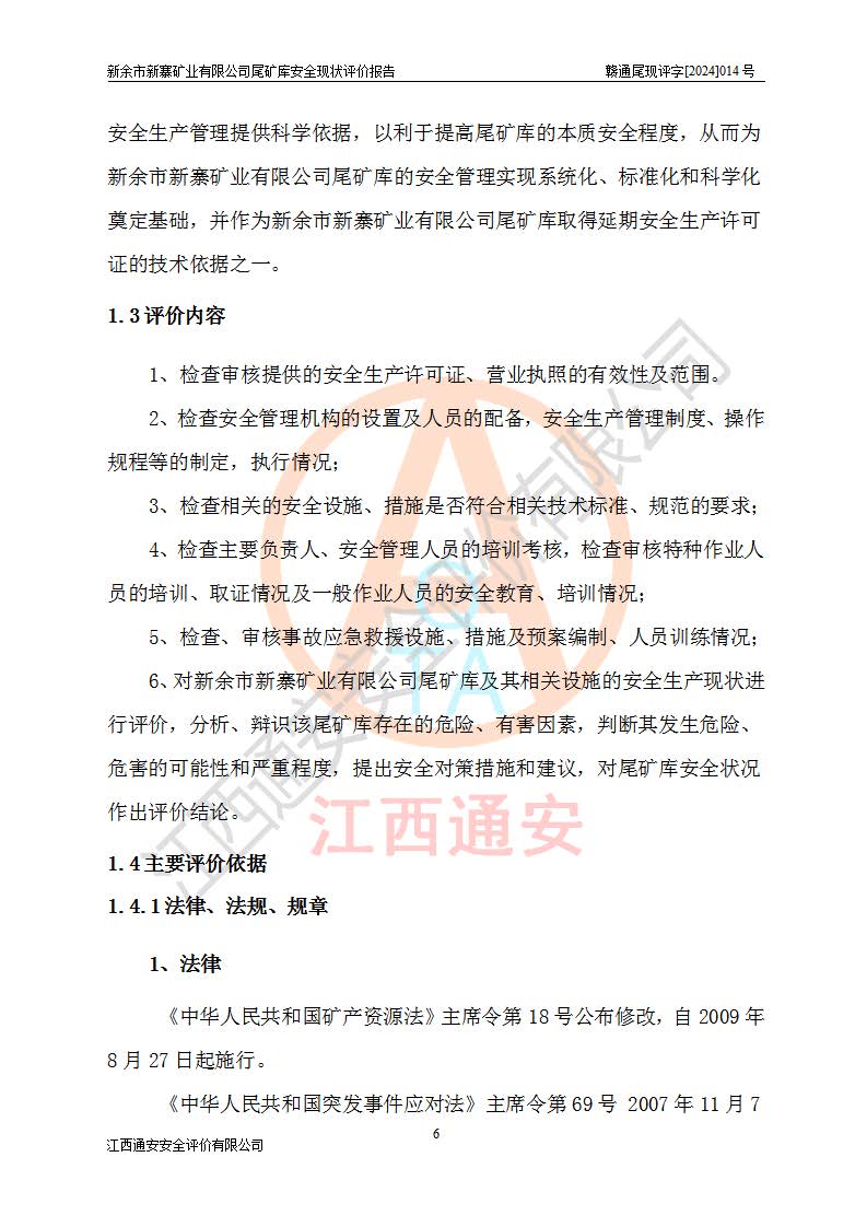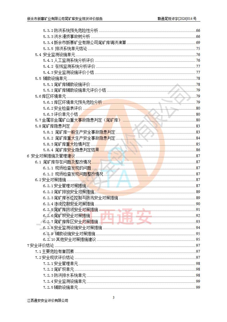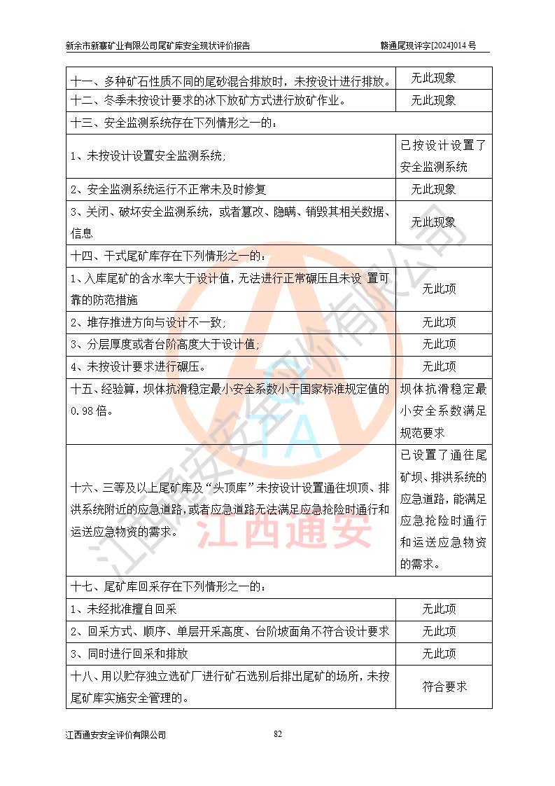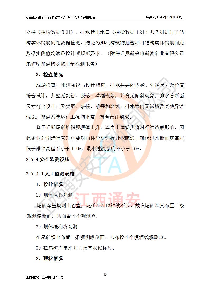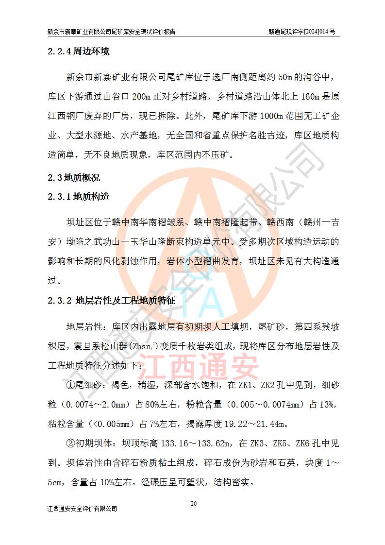 评价结论 | 新余市新寨矿业有限公司尾矿库为正常库,具备继续生产运行的安全生产条件。