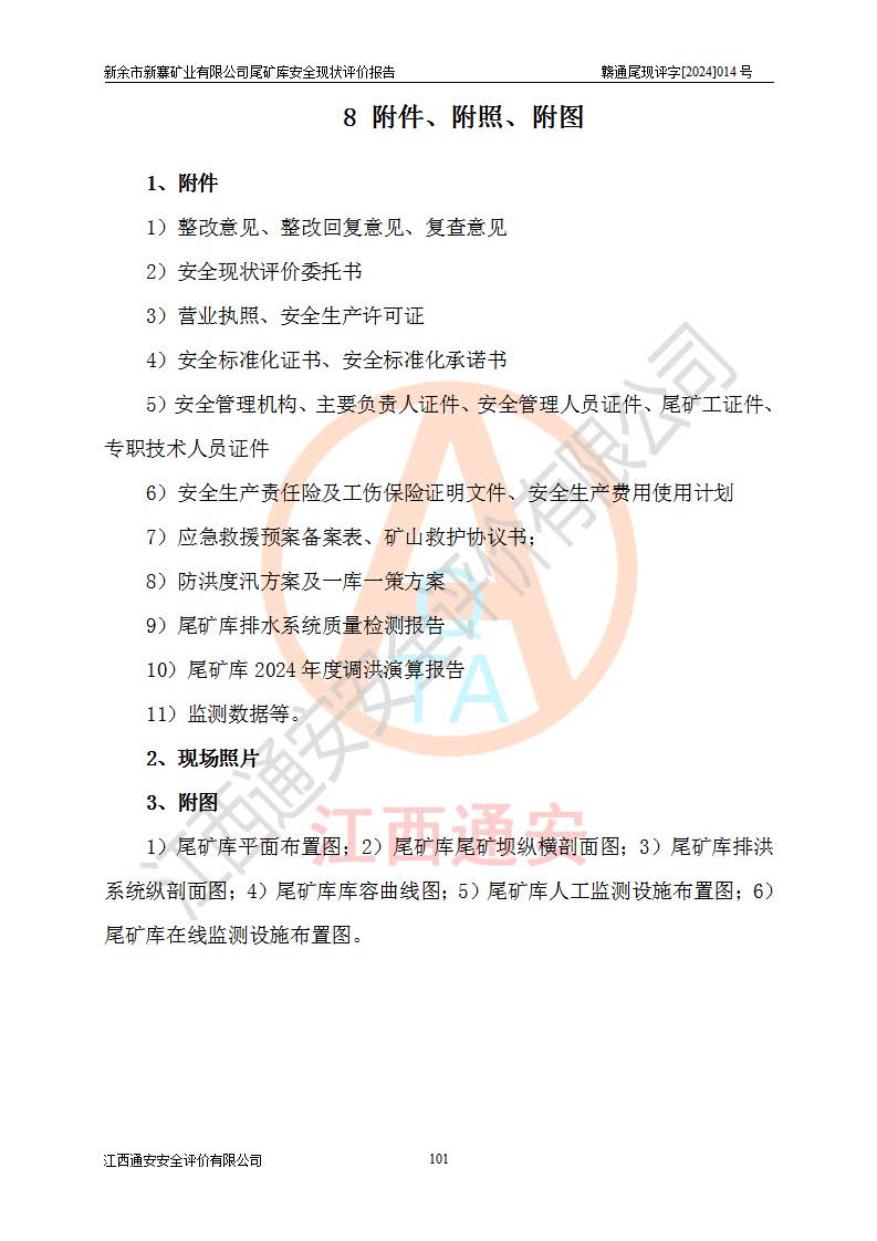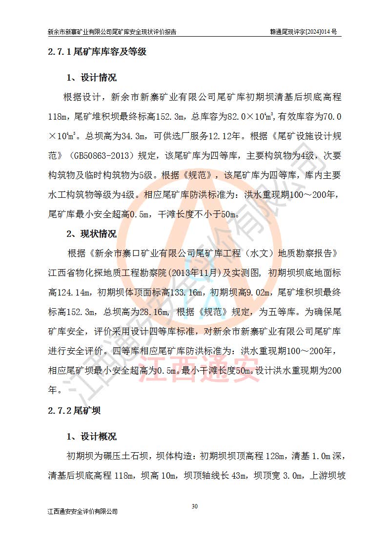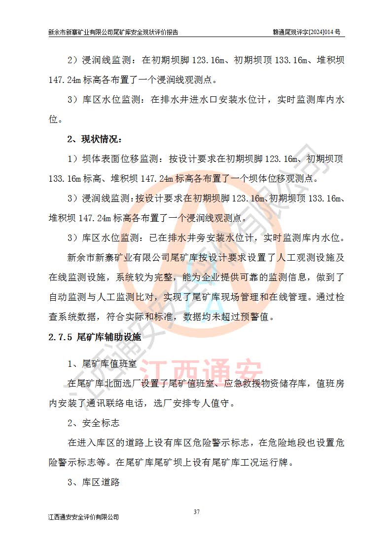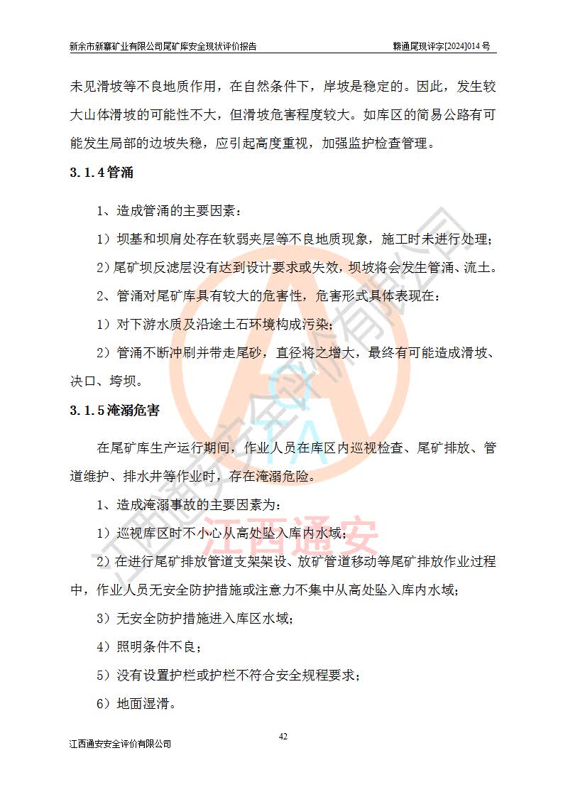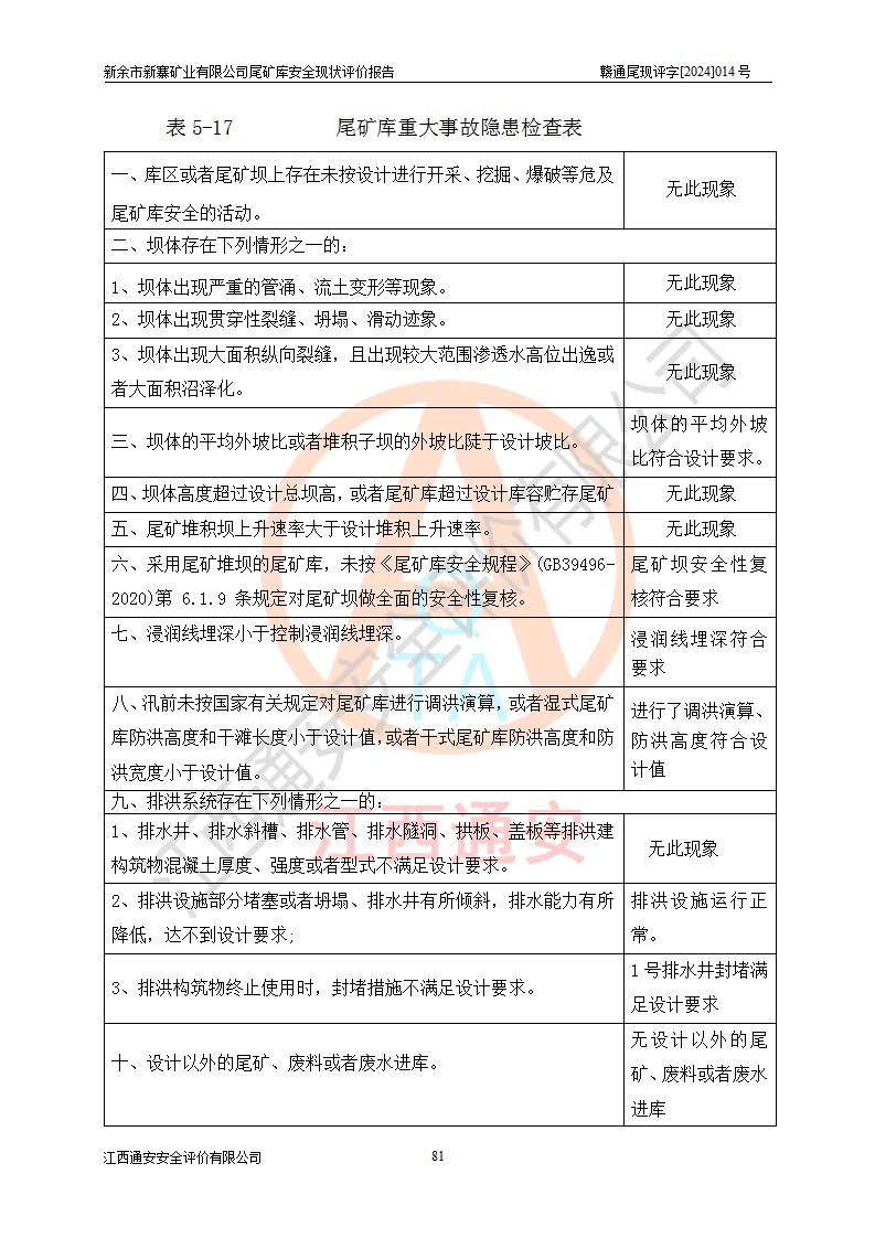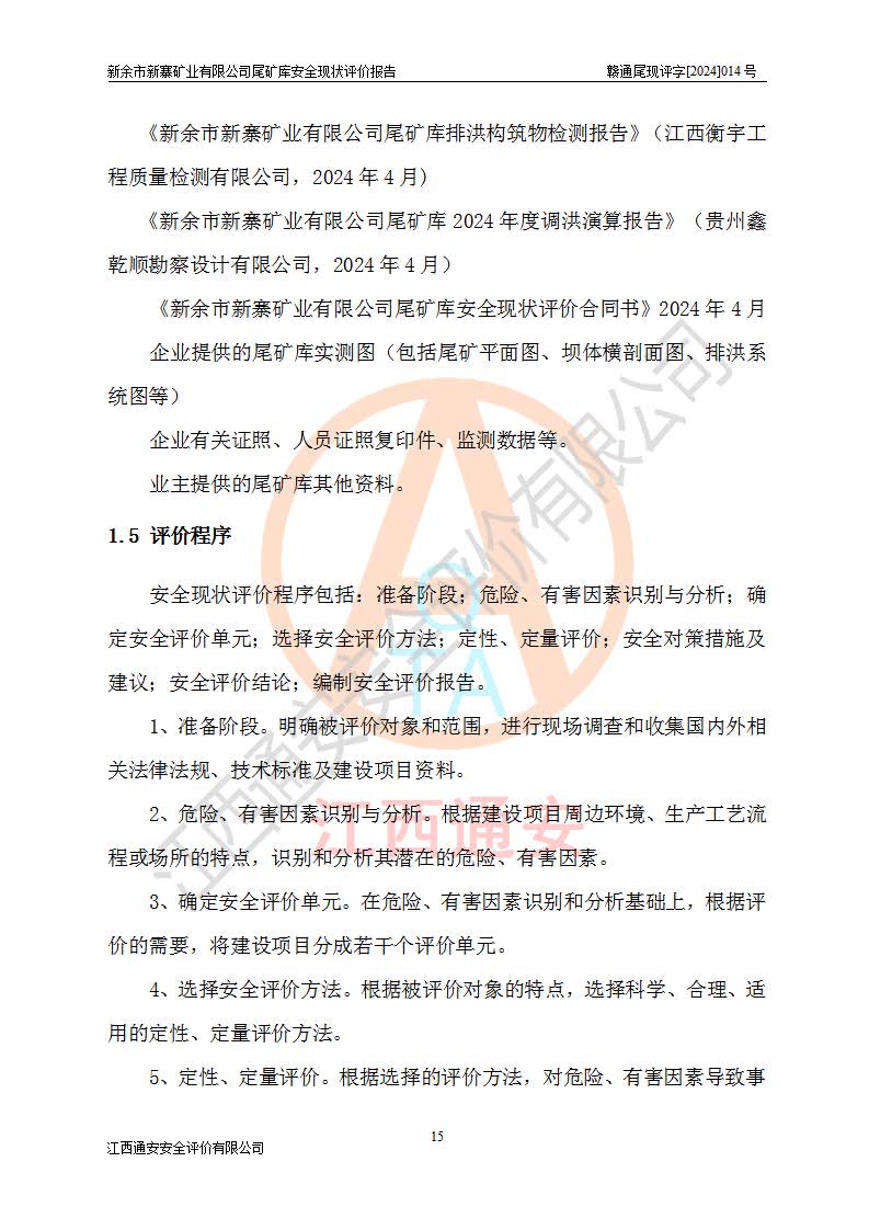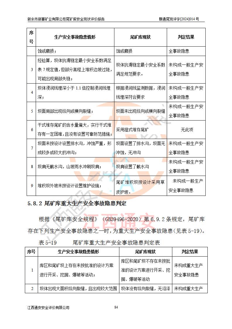 评价结论 | 新余市新寨矿业有限公司尾矿库为正常库,具备继续生产运行的安全生产条件。