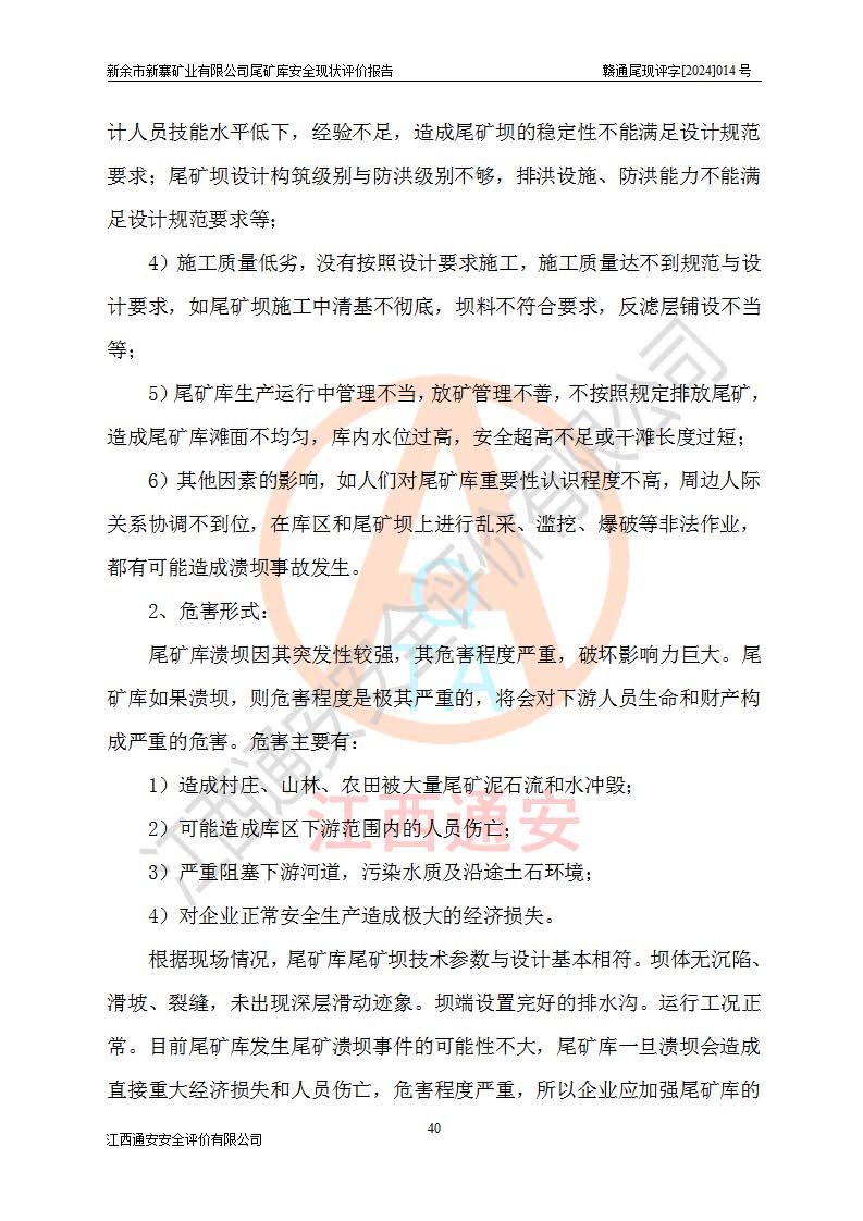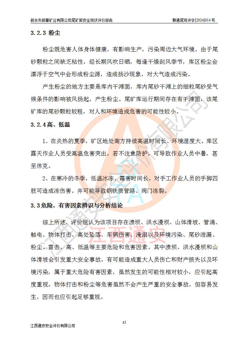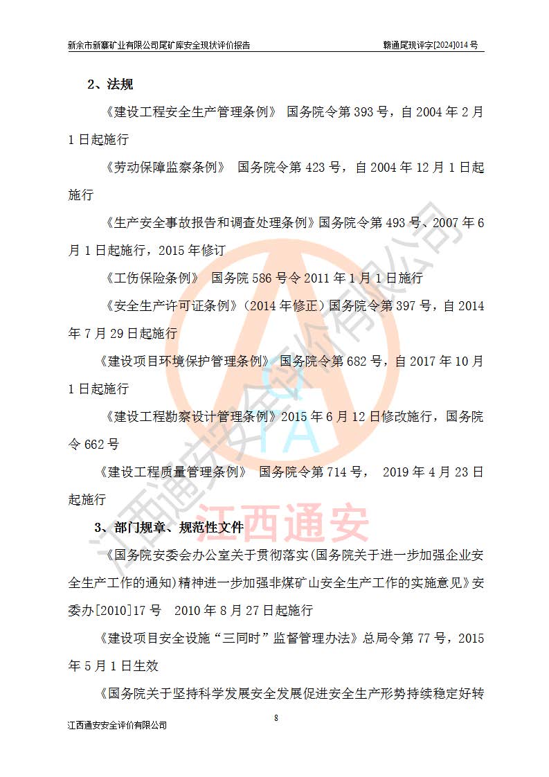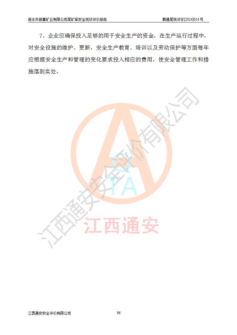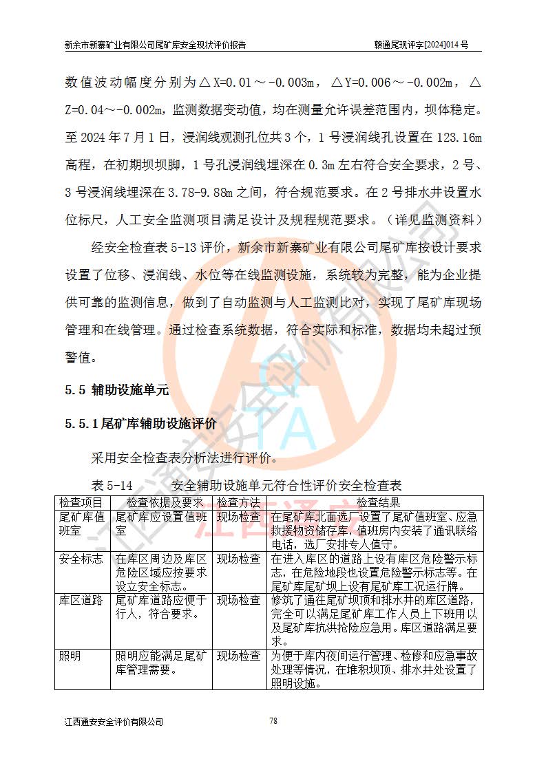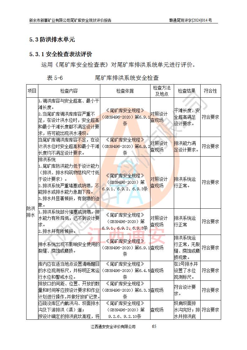 评价结论 | 新余市新寨矿业有限公司尾矿库为正常库,具备继续生产运行的安全生产条件。