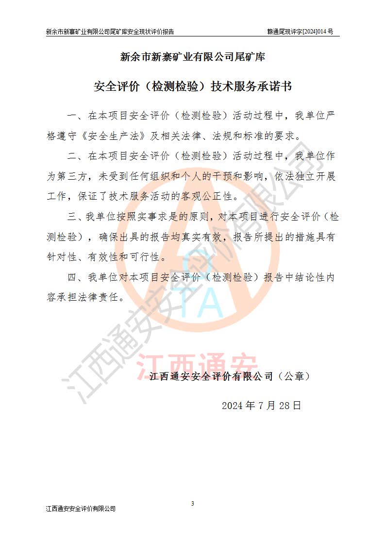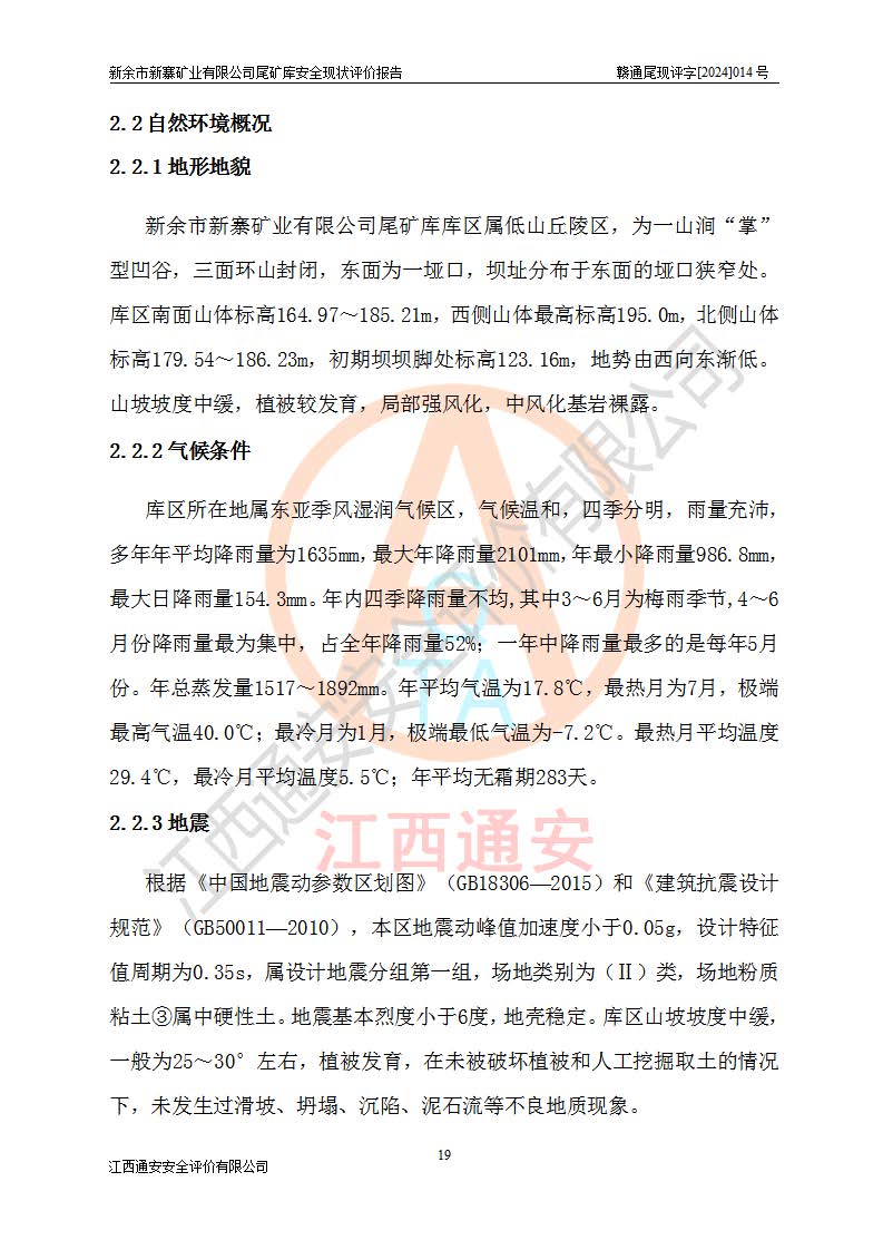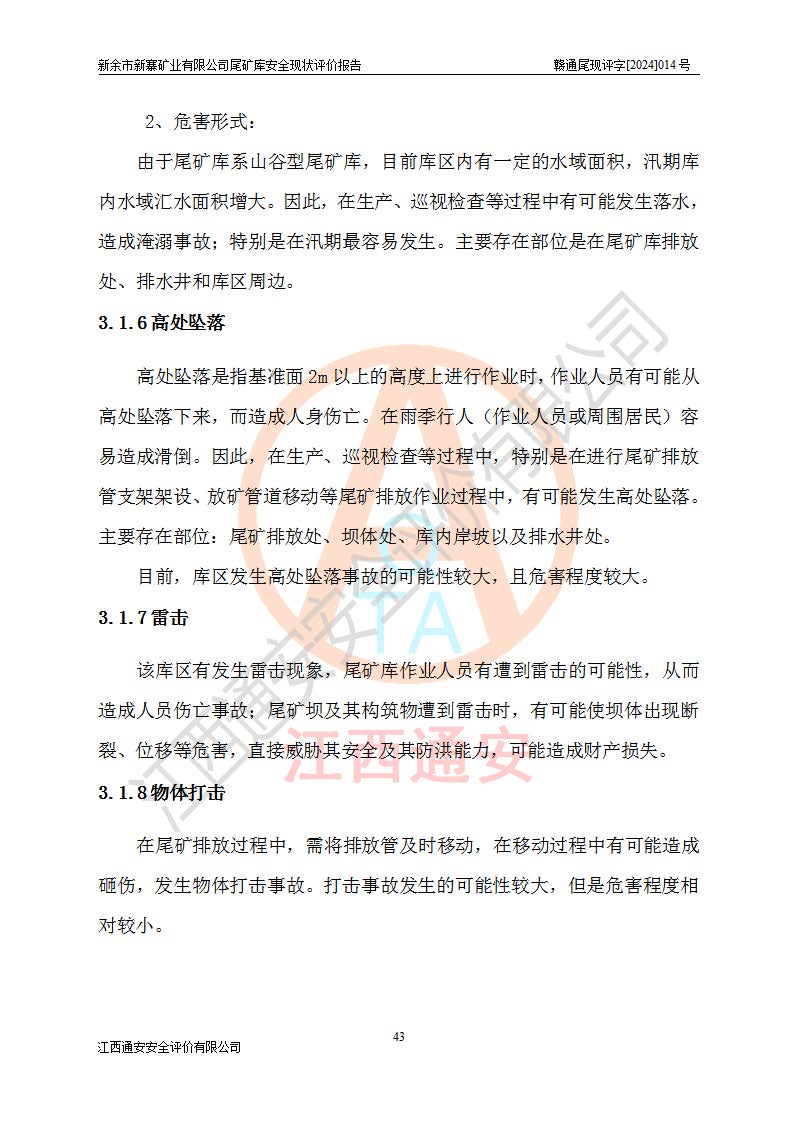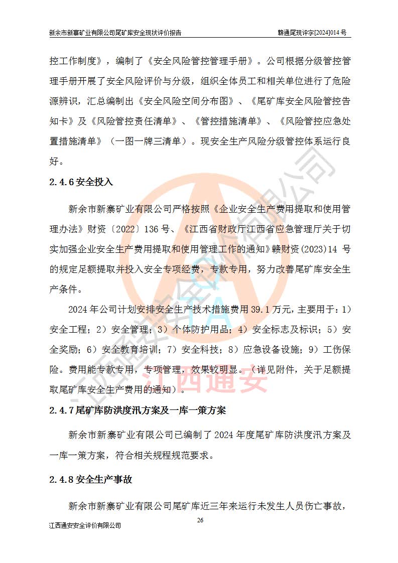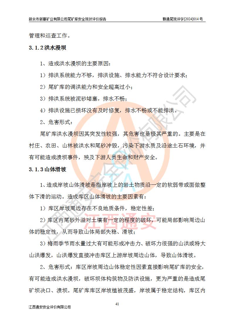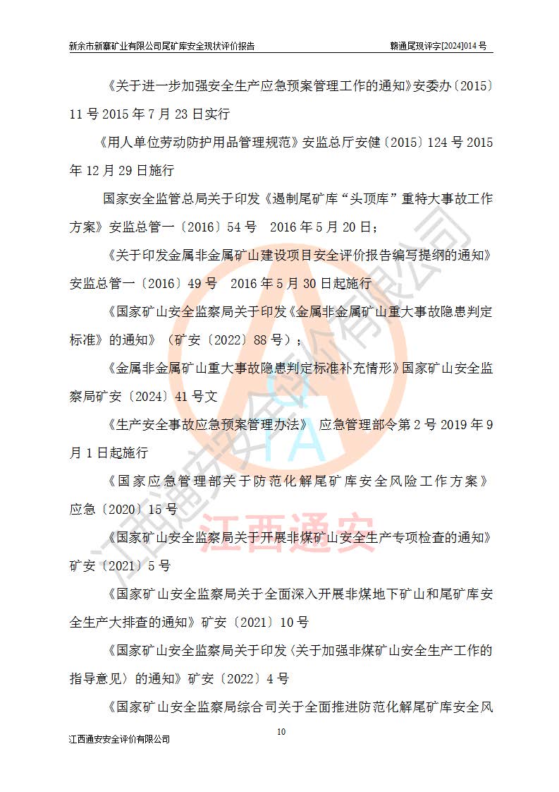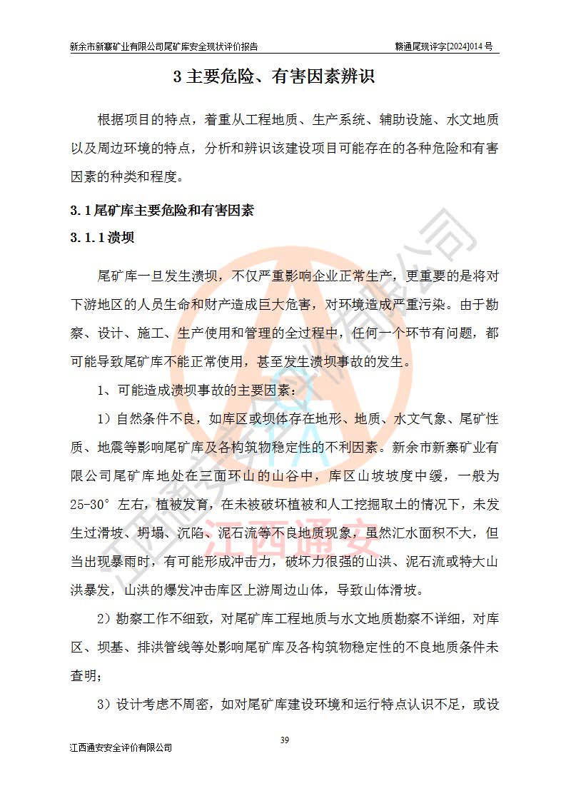 评价结论 | 新余市新寨矿业有限公司尾矿库为正常库,具备继续生产运行的安全生产条件。