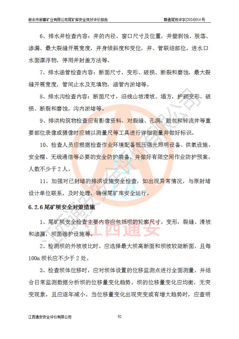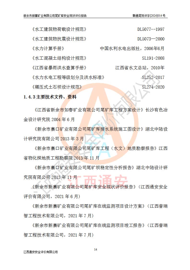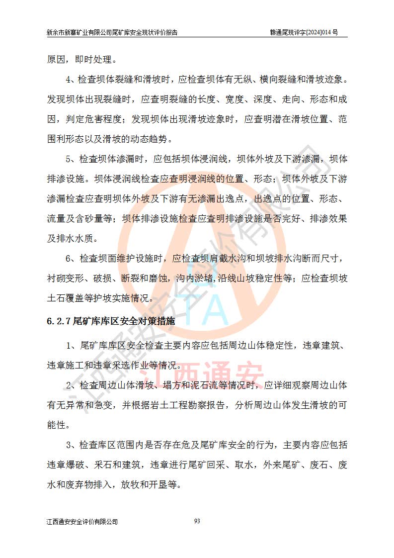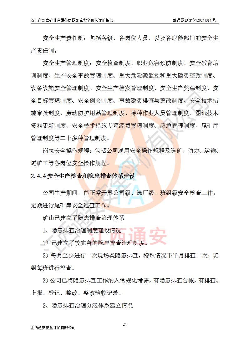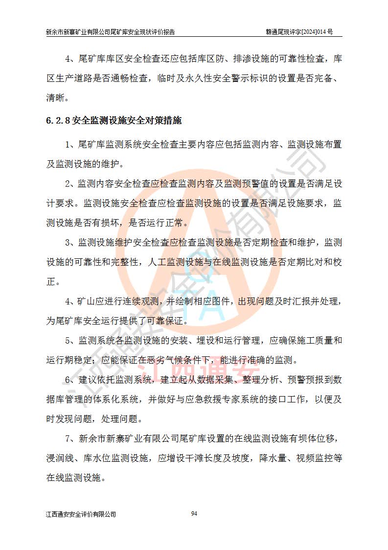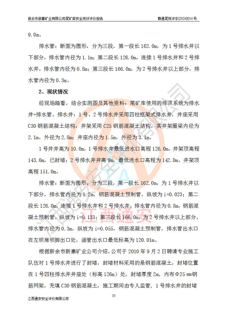 评价结论 | 新余市新寨矿业有限公司尾矿库为正常库,具备继续生产运行的安全生产条件。