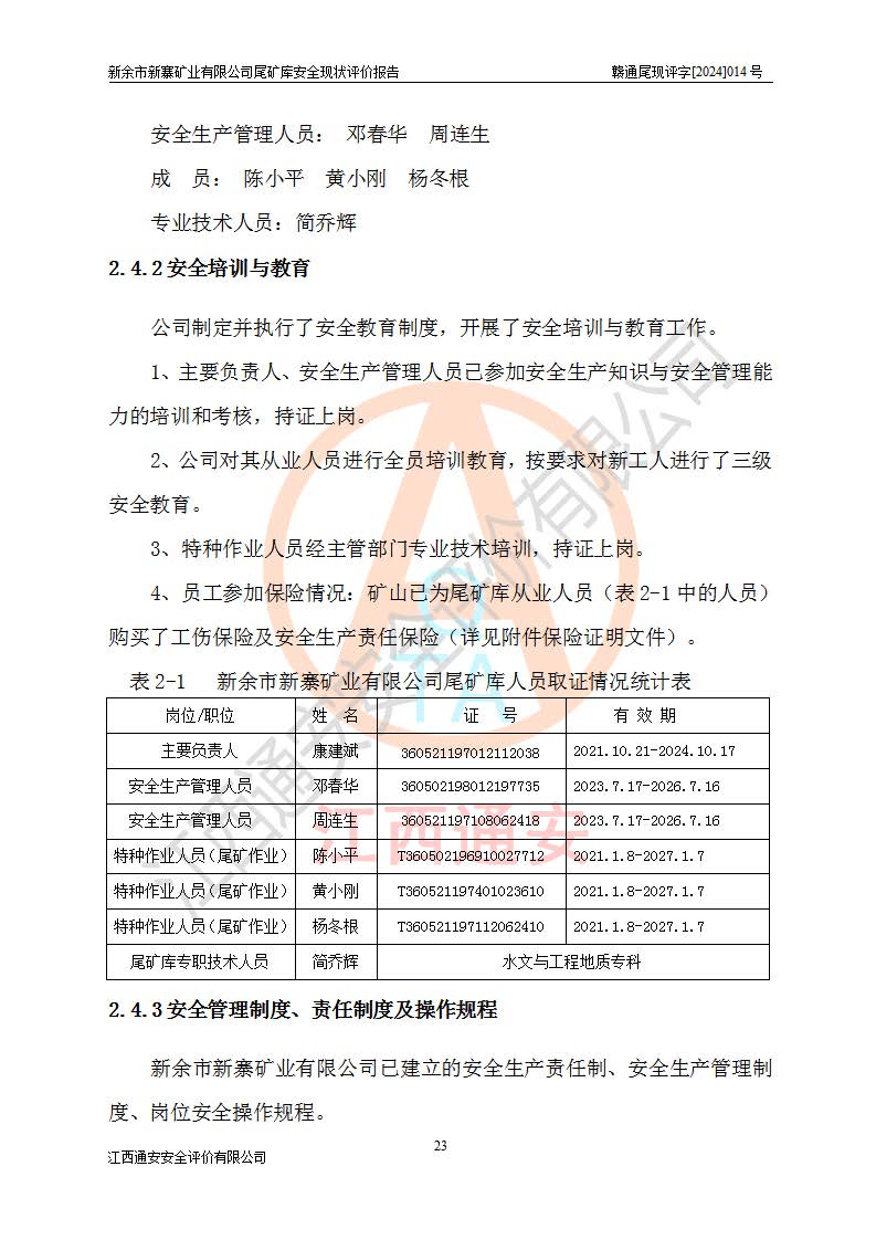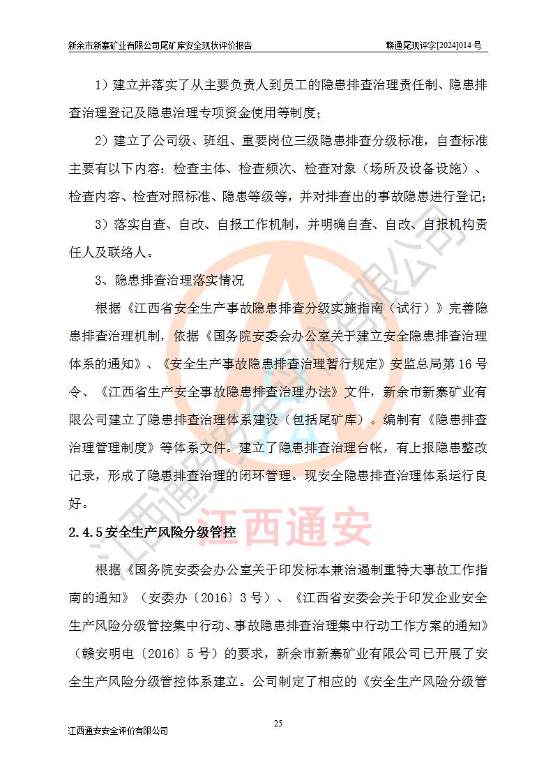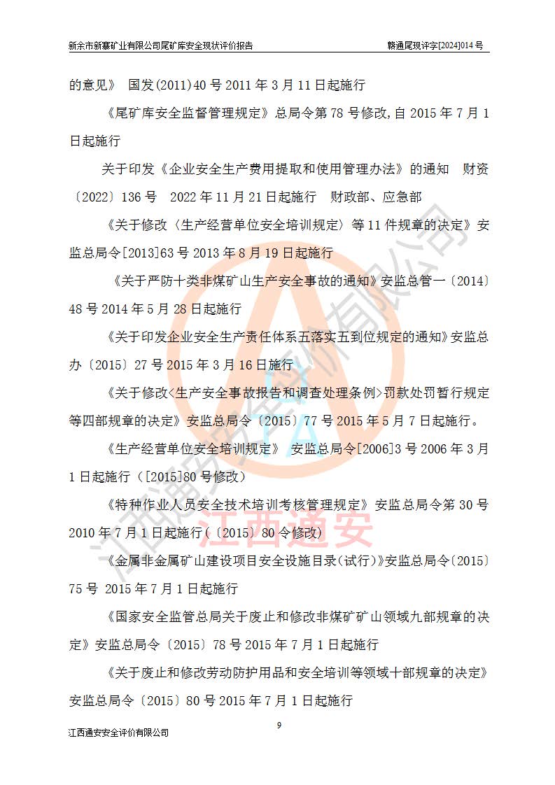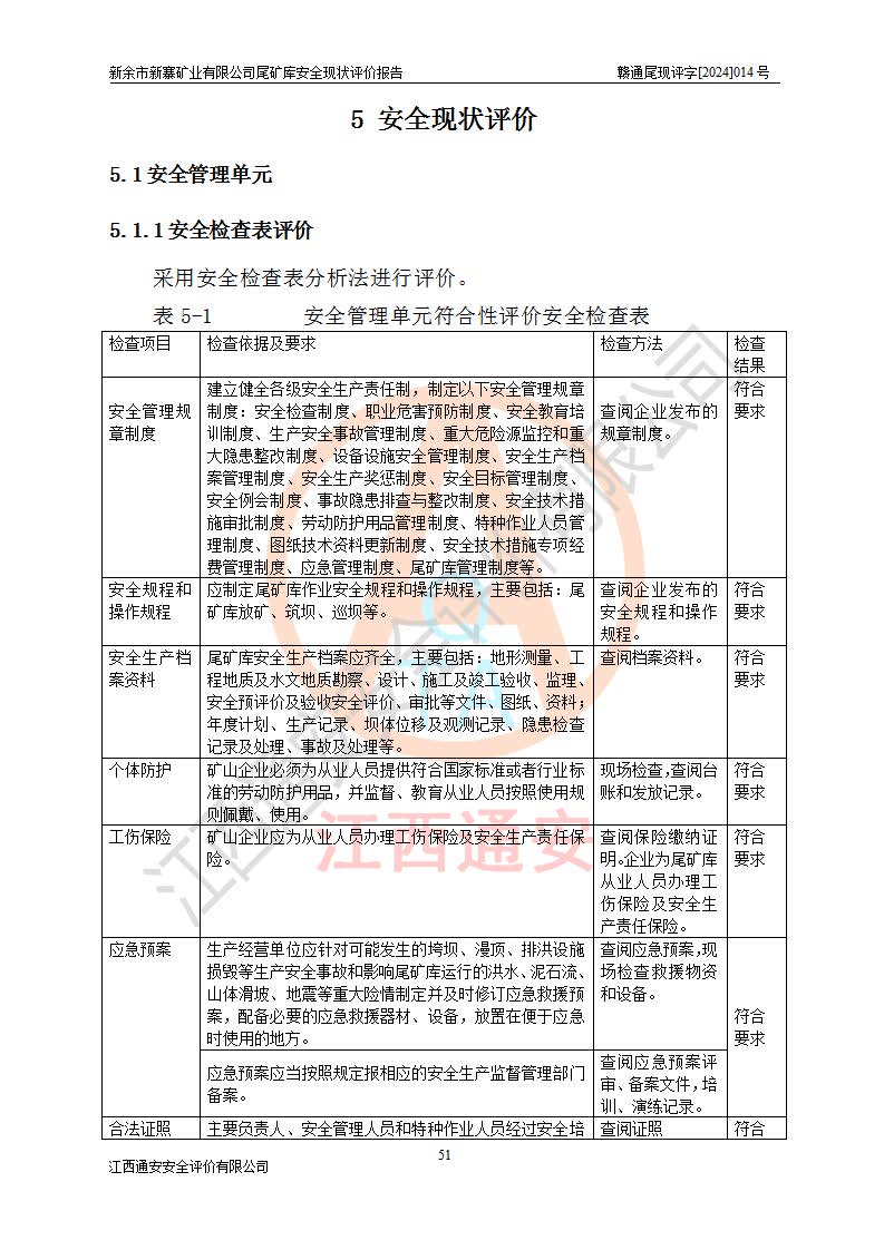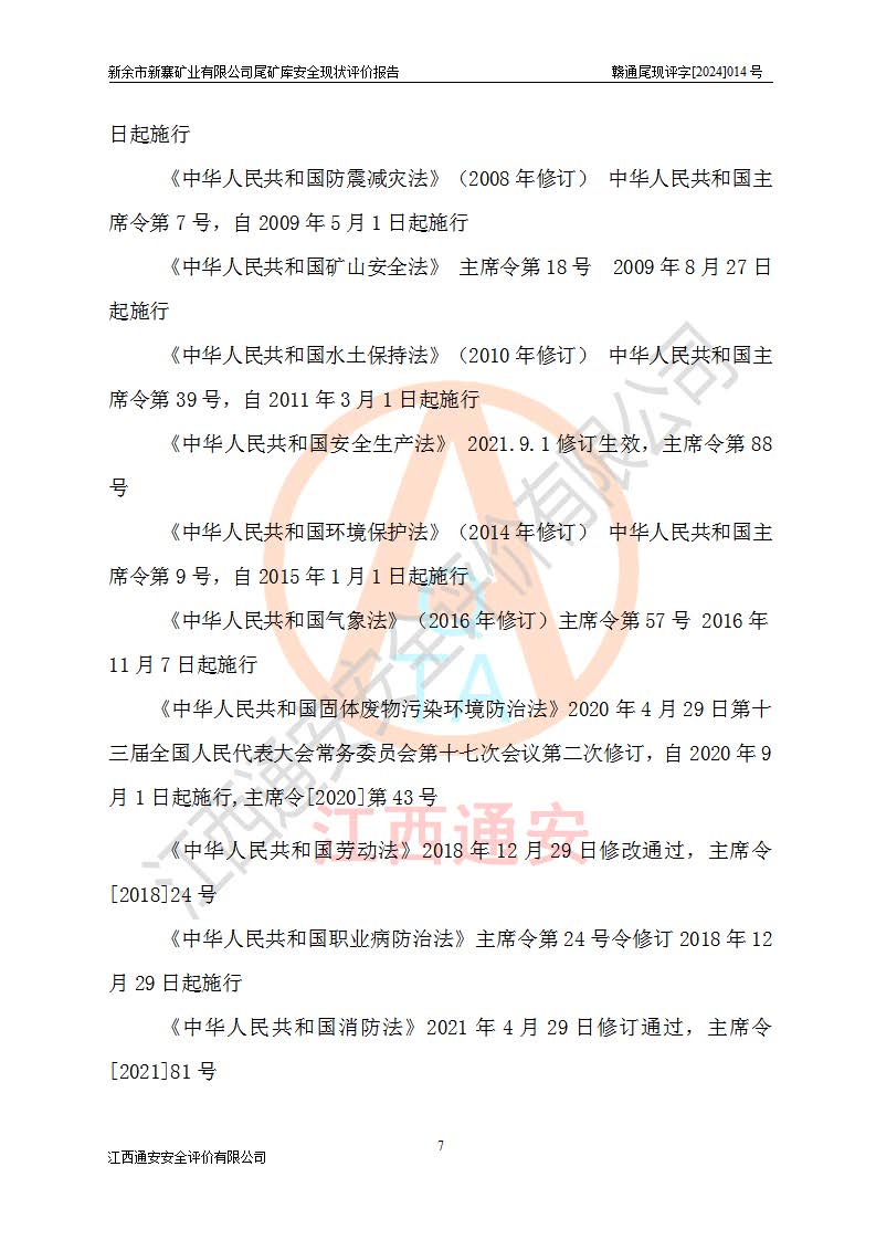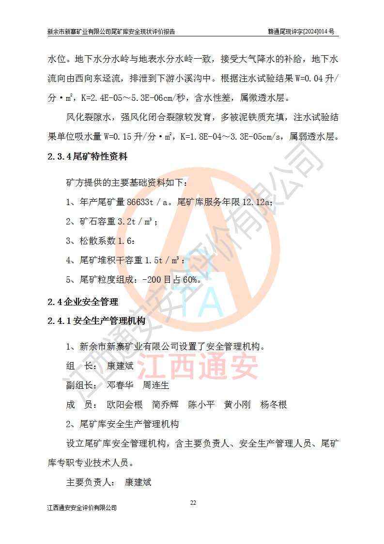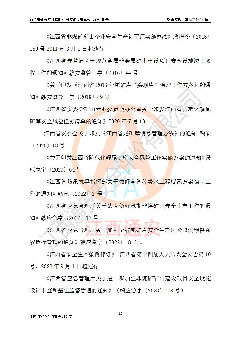 评价结论 | 新余市新寨矿业有限公司尾矿库为正常库,具备继续生产运行的安全生产条件。