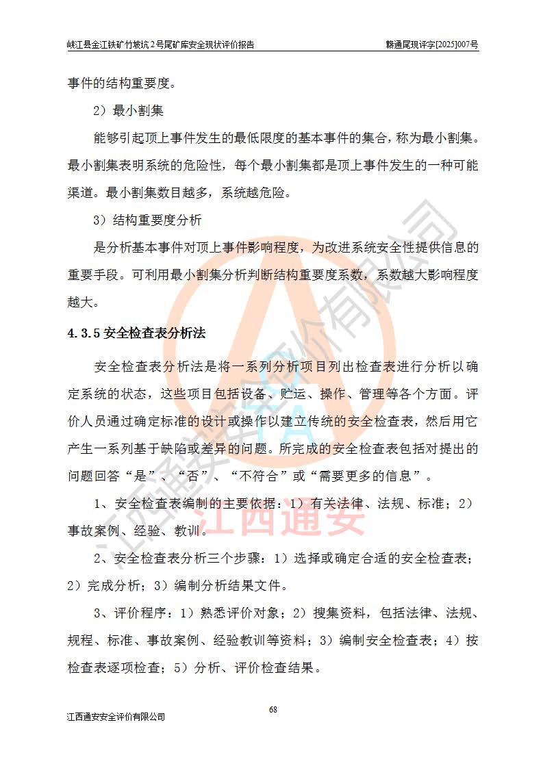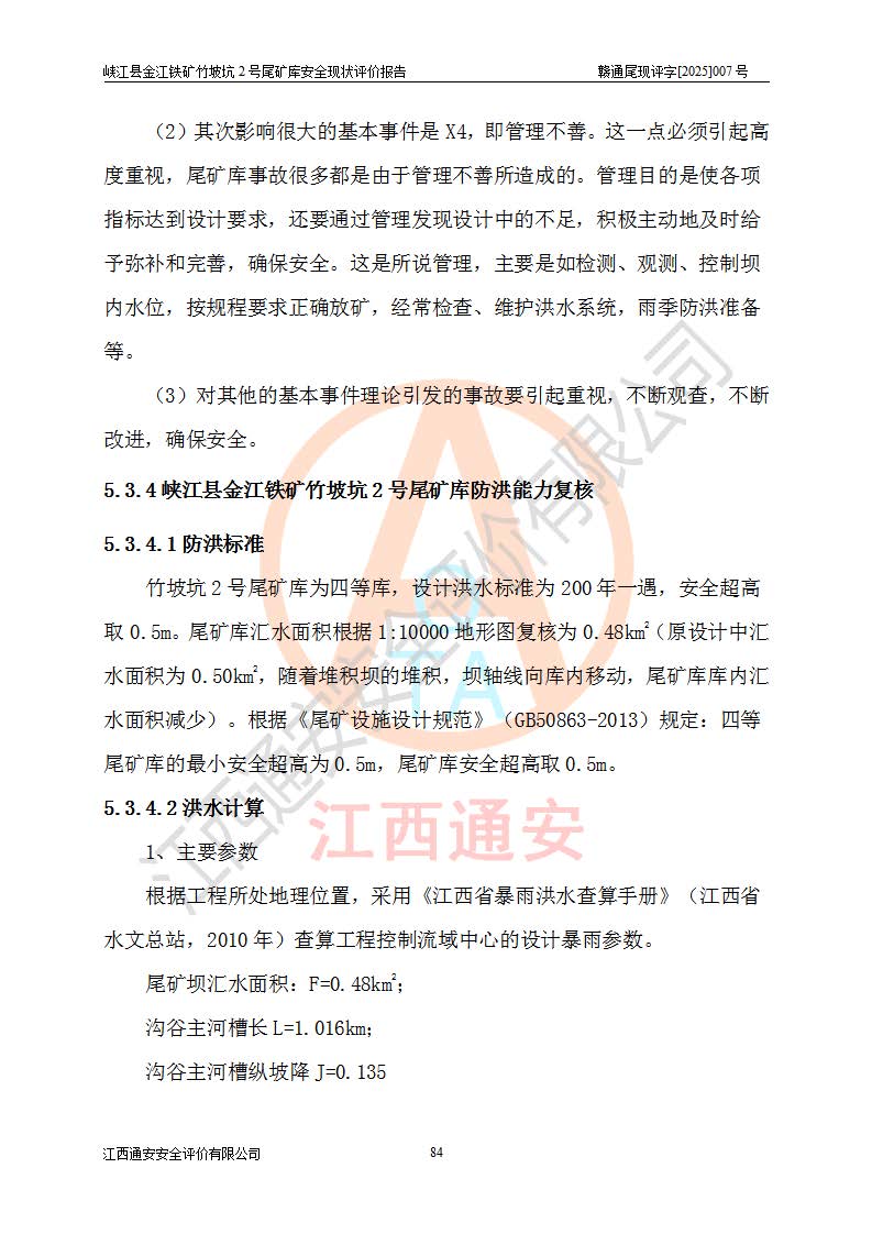 评价报告名称 | 峡江县金江铁矿竹坡坑2号尾矿库安全现状评价报告 | |||