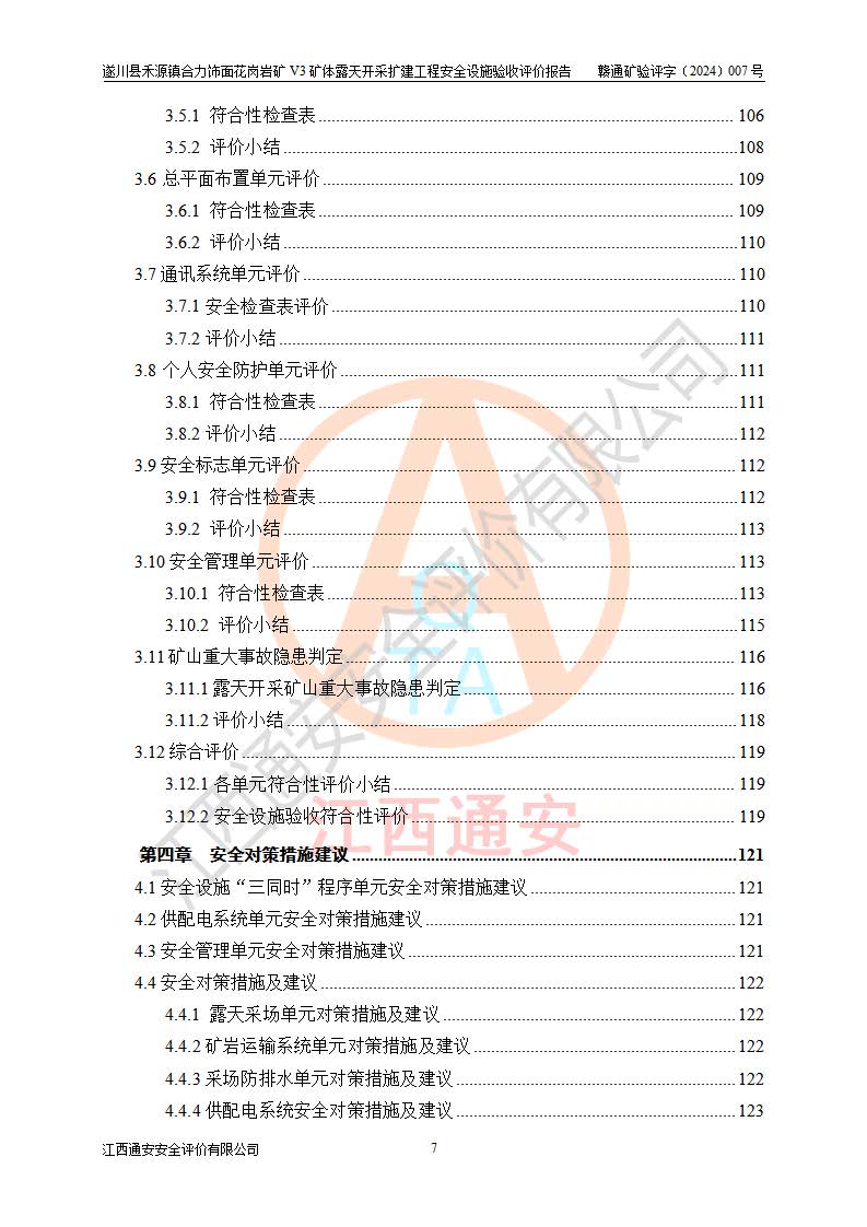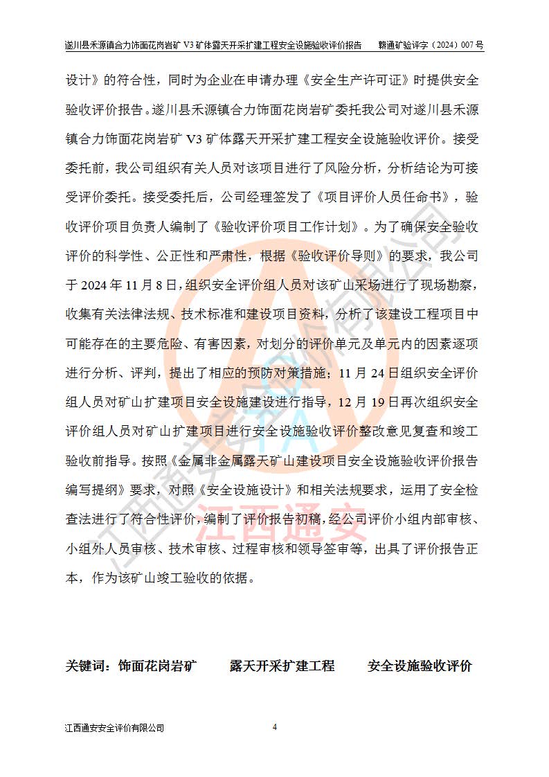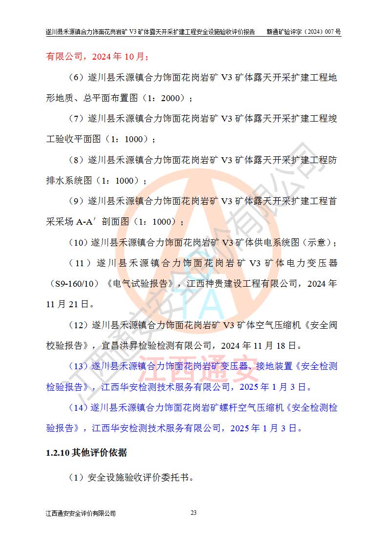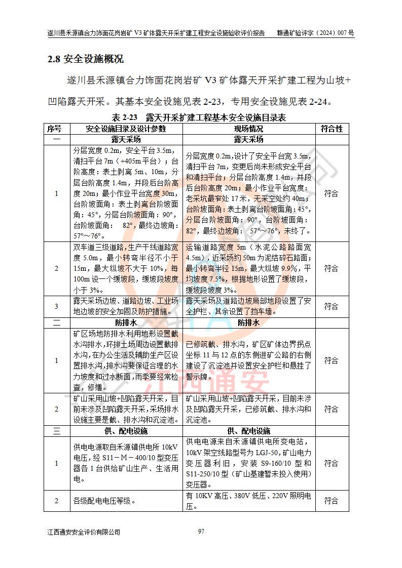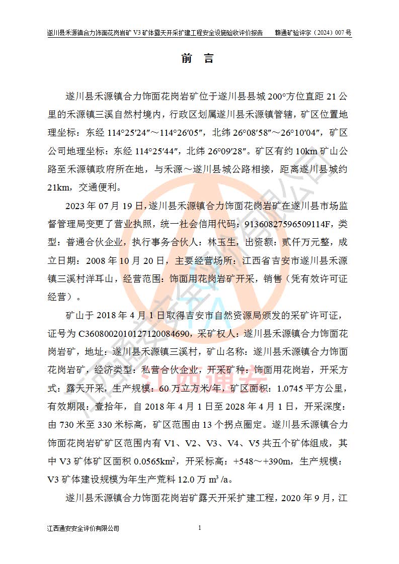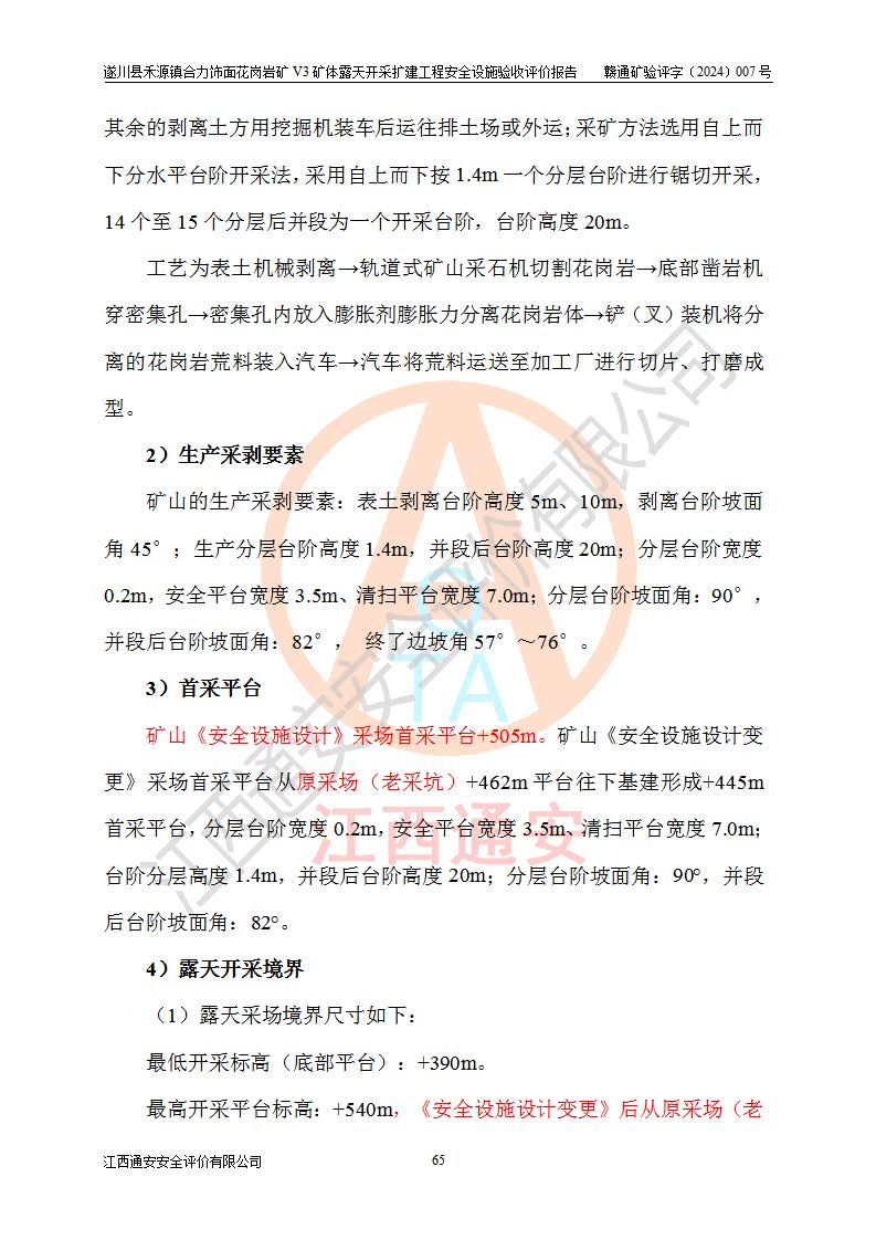 项目名称 | 遂川县禾源镇合力饰面花岗岩矿V3矿体露天开采扩建工程安全设施验收评价报告 | ||||