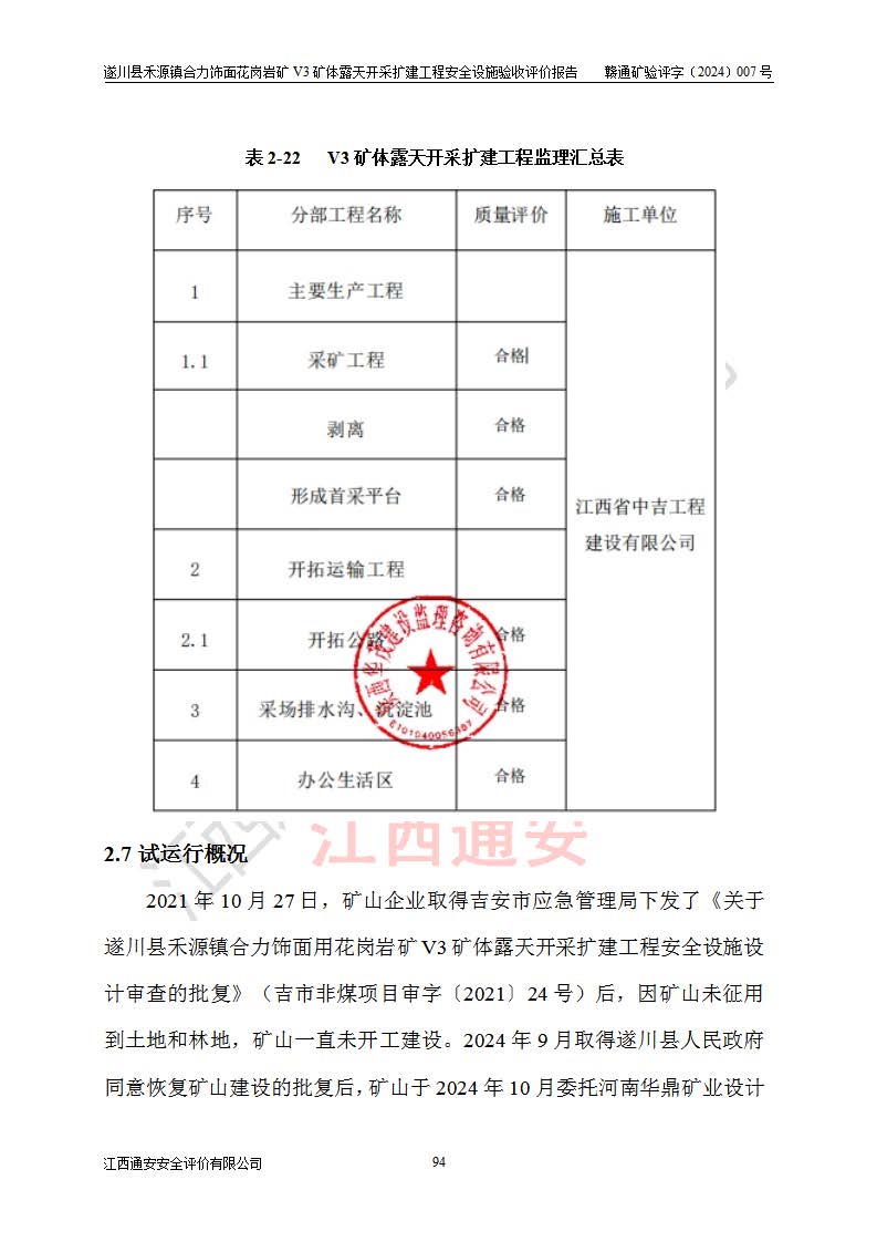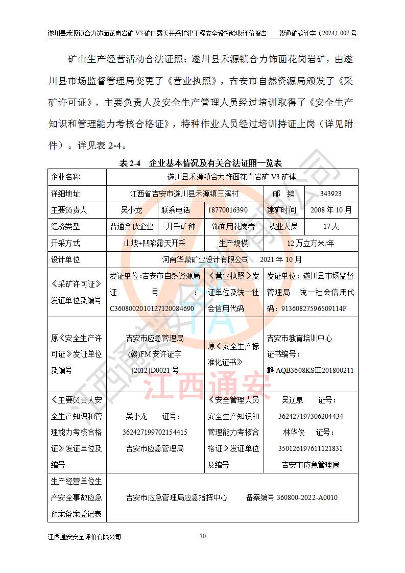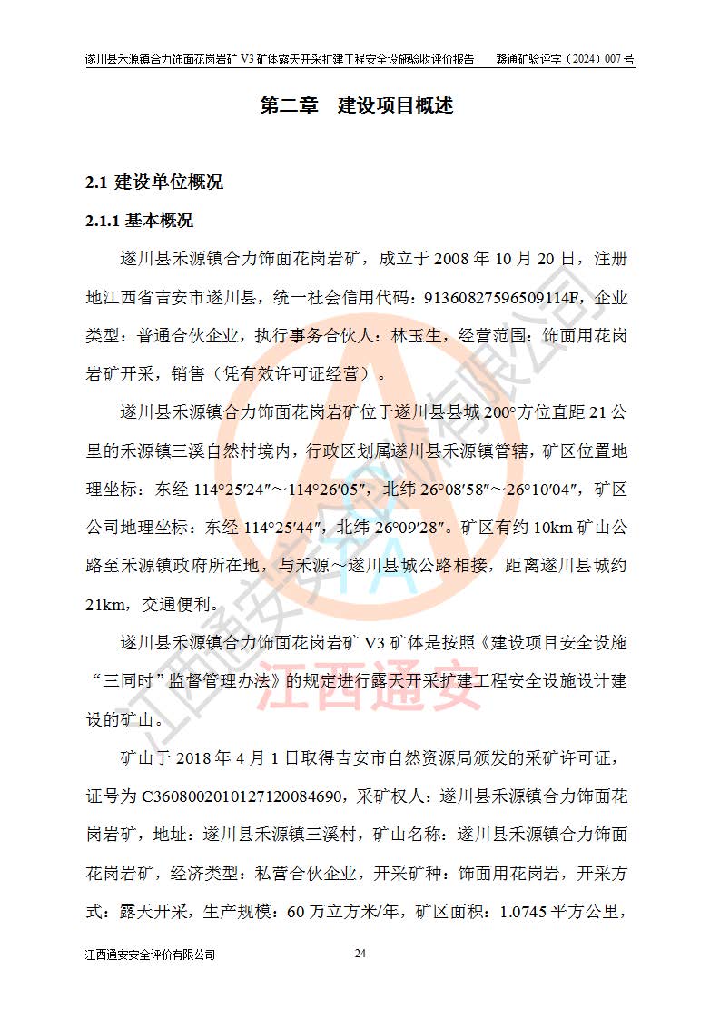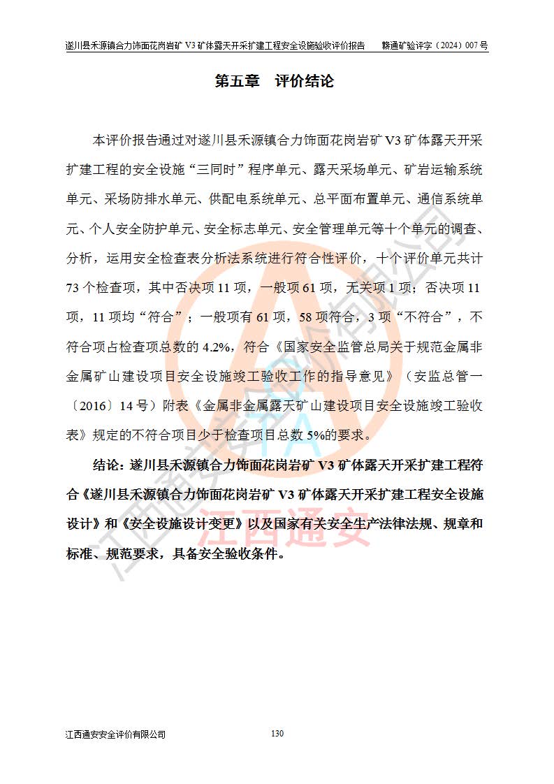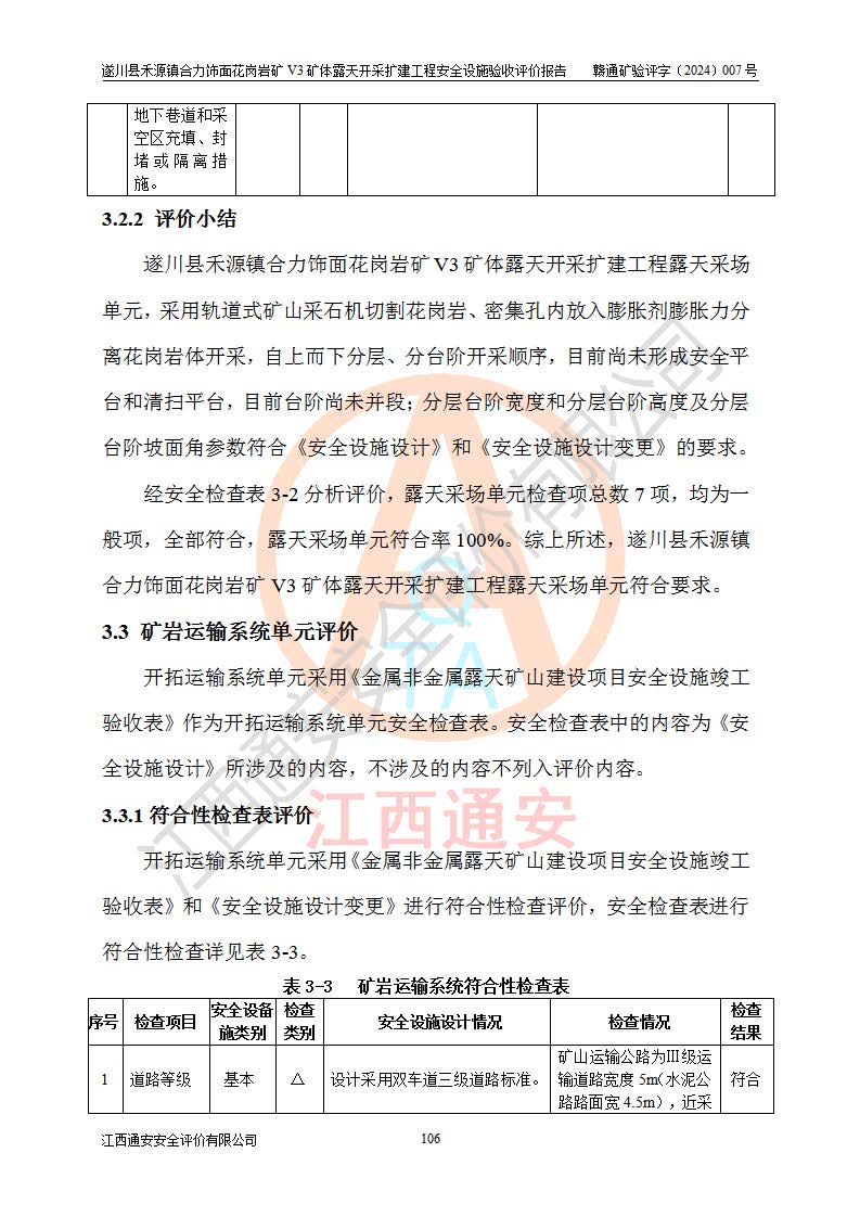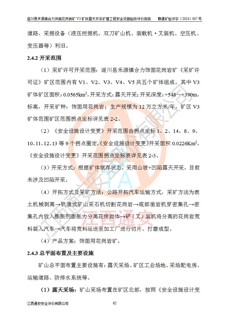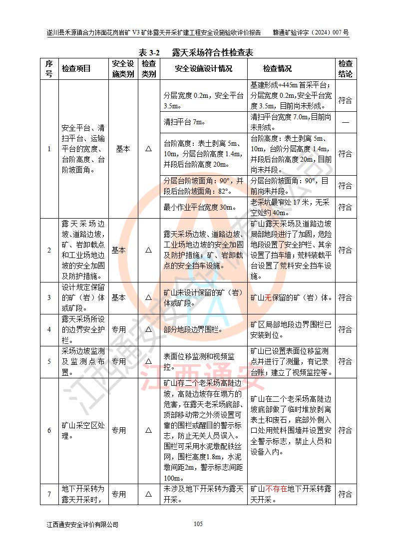 项目名称 | 遂川县禾源镇合力饰面花岗岩矿V3矿体露天开采扩建工程安全设施验收评价报告 | ||||
