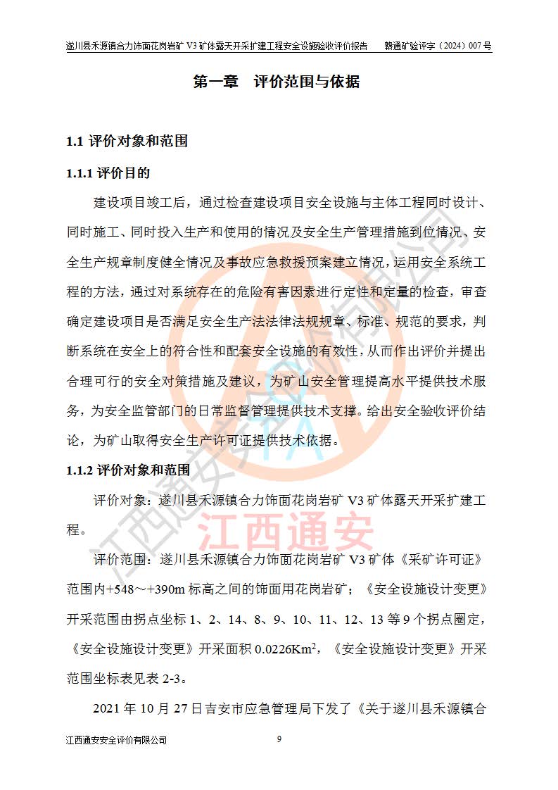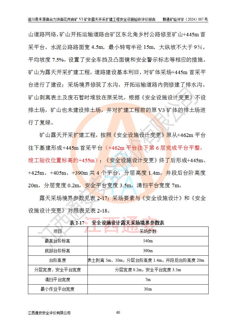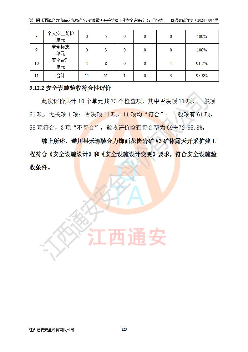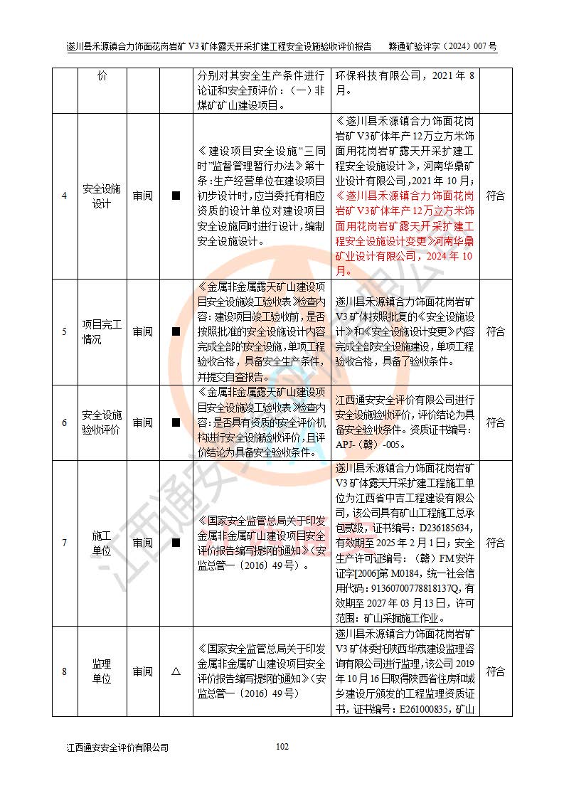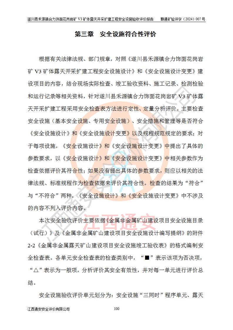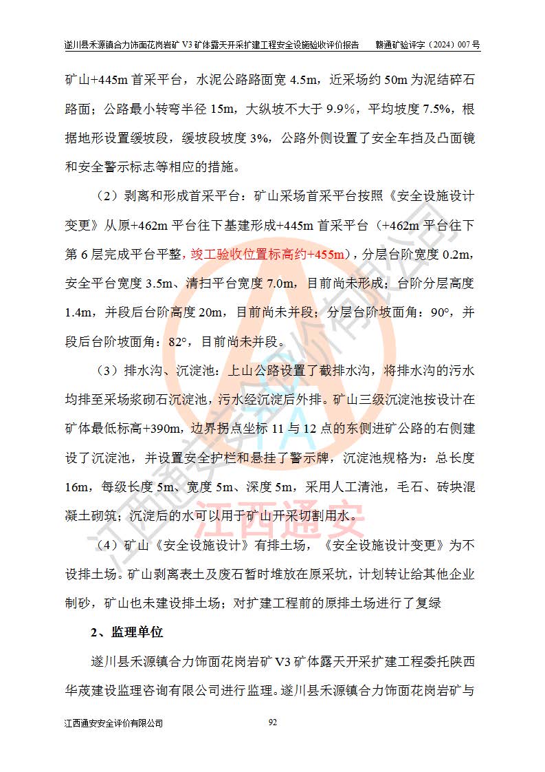 项目名称 | 遂川县禾源镇合力饰面花岗岩矿V3矿体露天开采扩建工程安全设施验收评价报告 | ||||