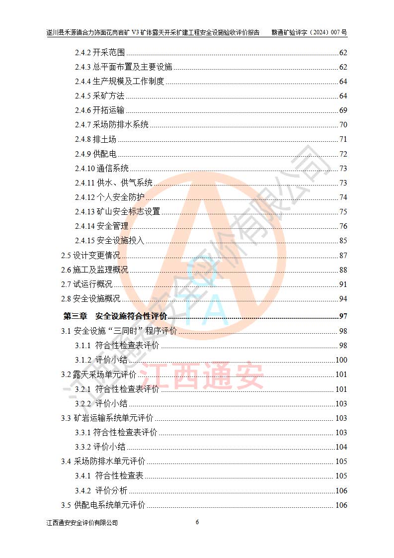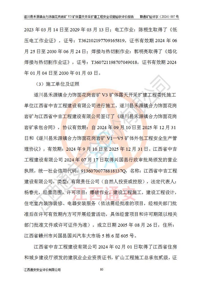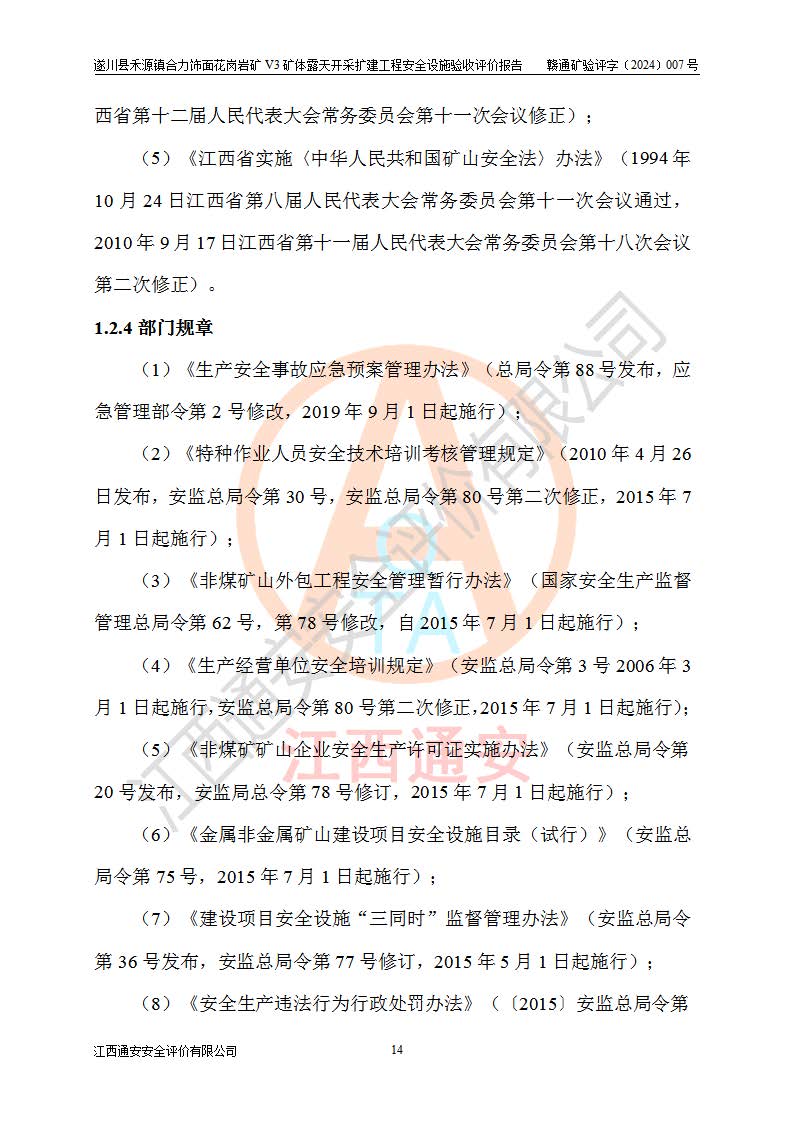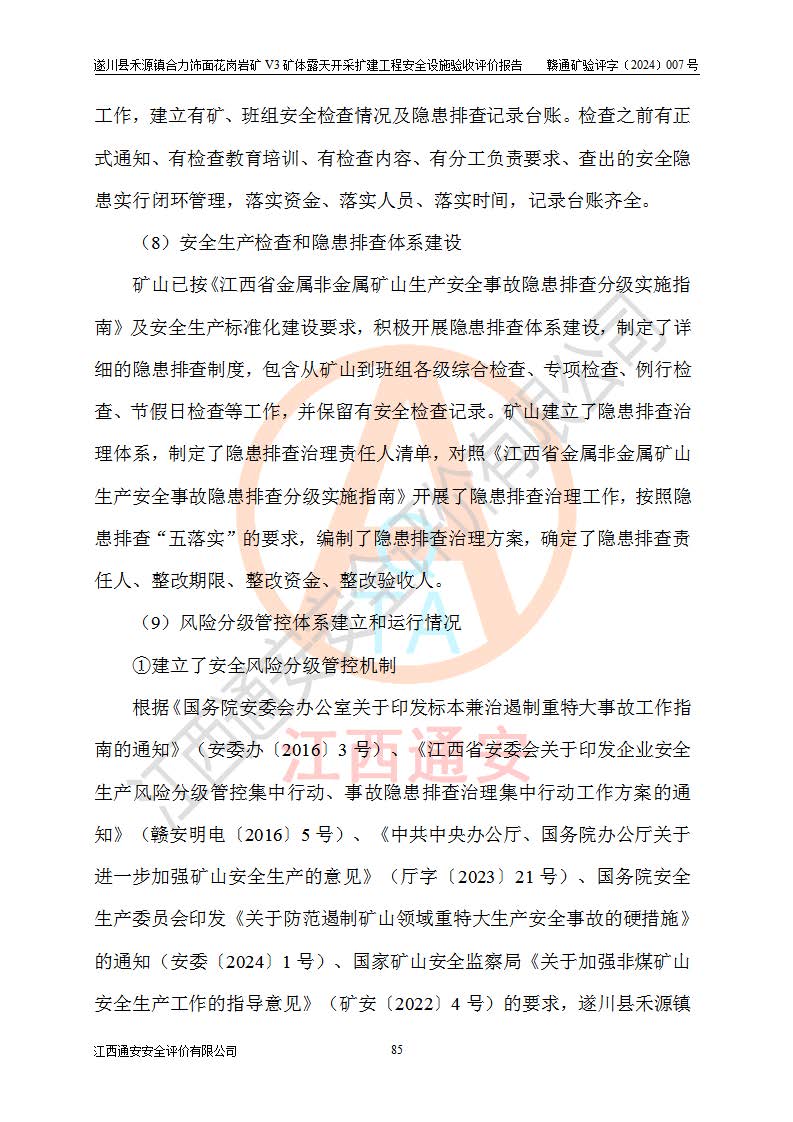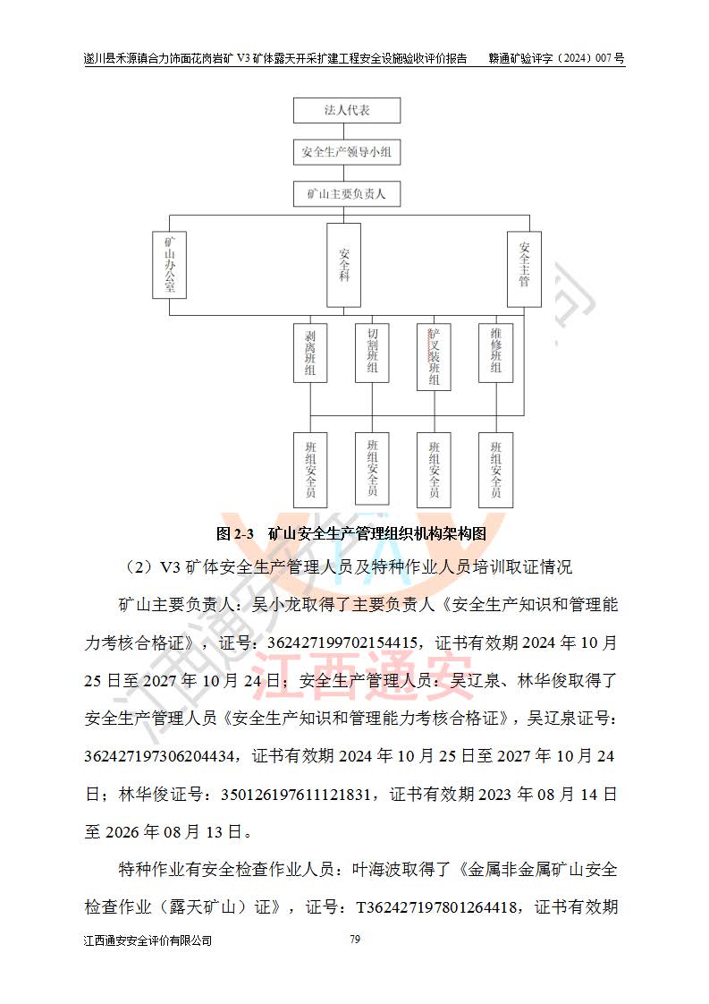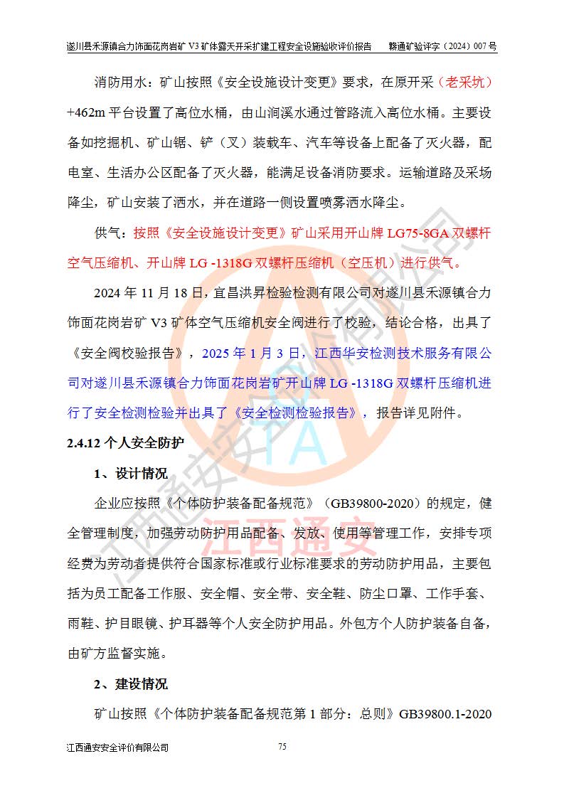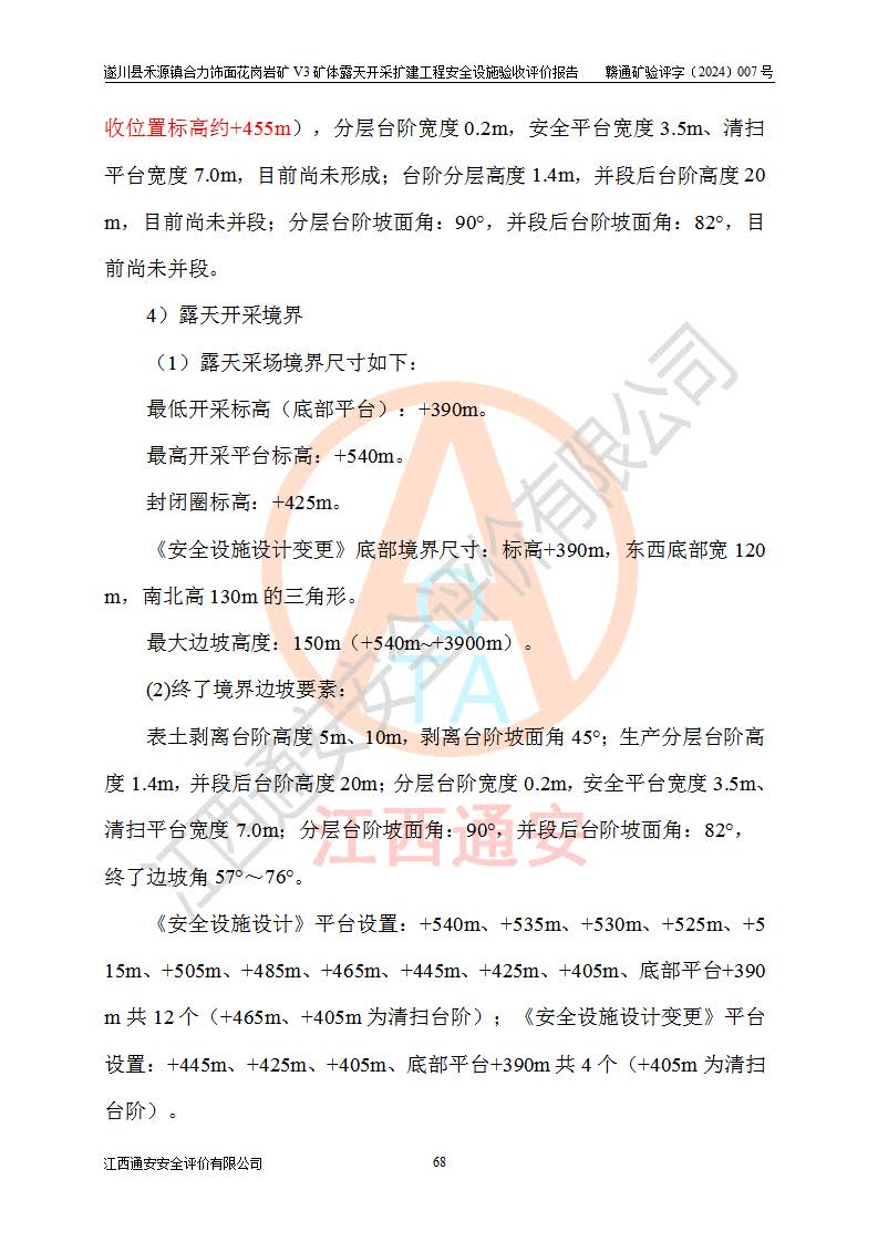 项目名称 | 遂川县禾源镇合力饰面花岗岩矿V3矿体露天开采扩建工程安全设施验收评价报告 | ||||
