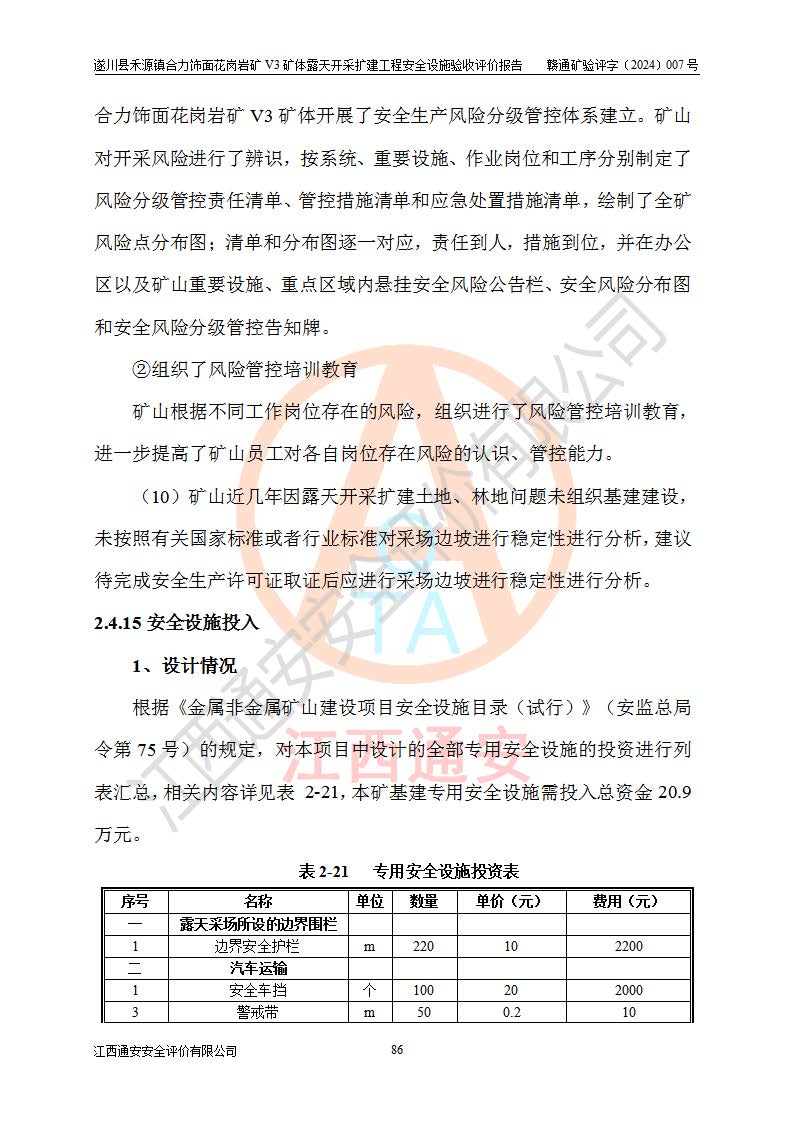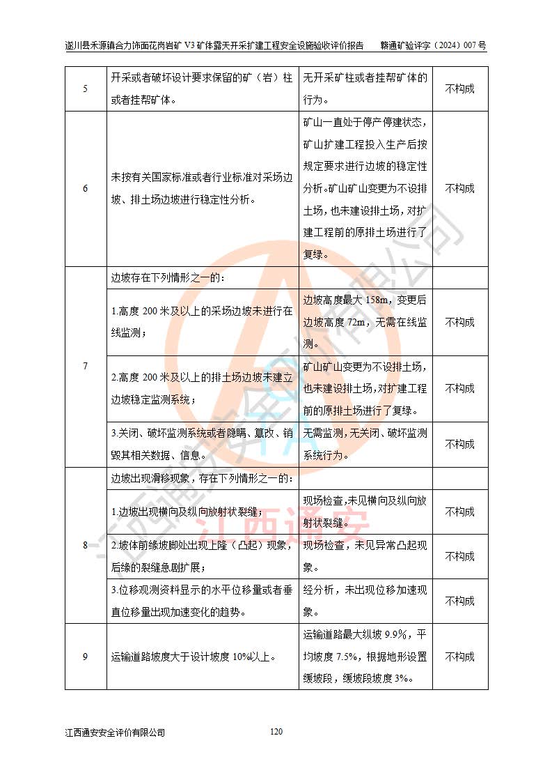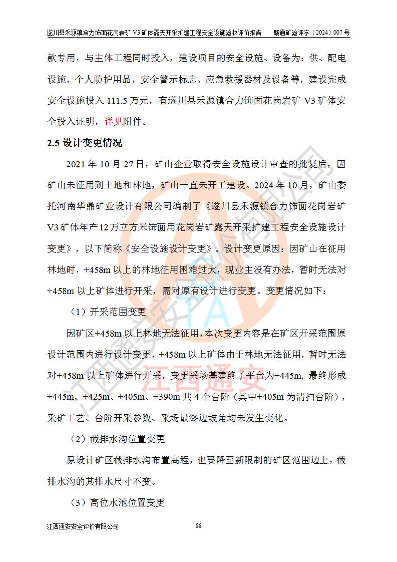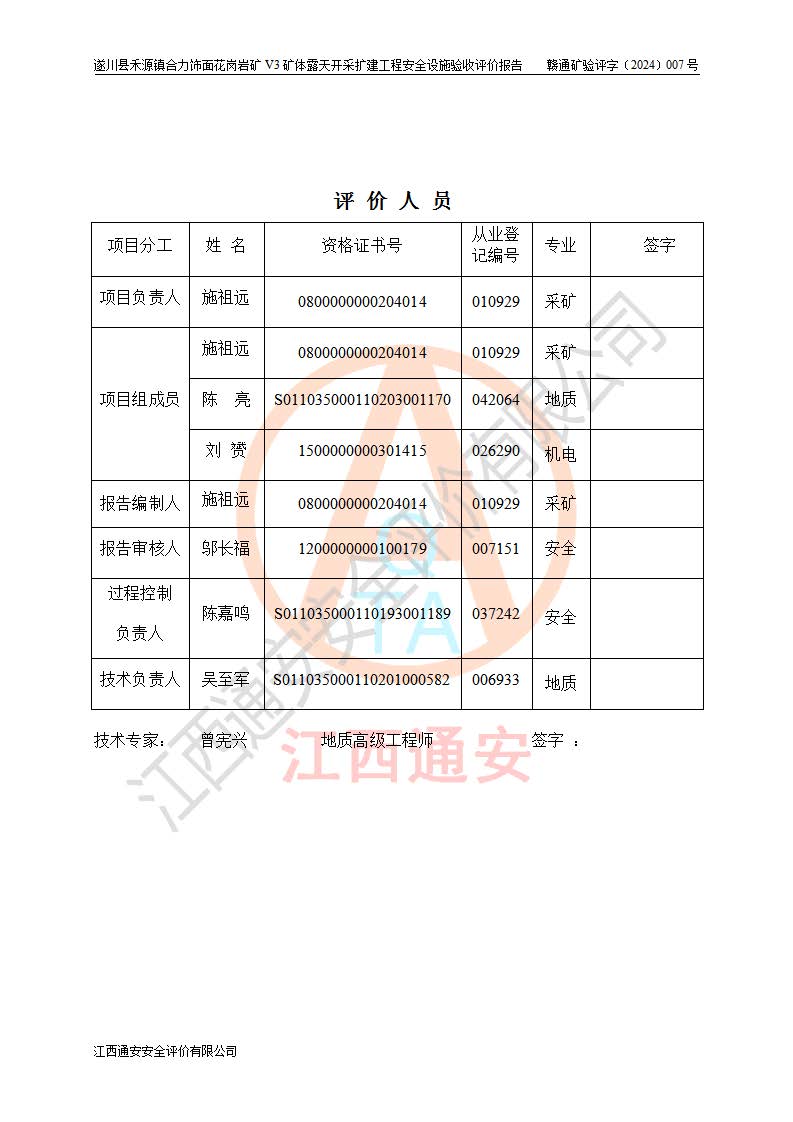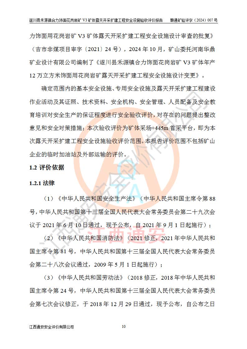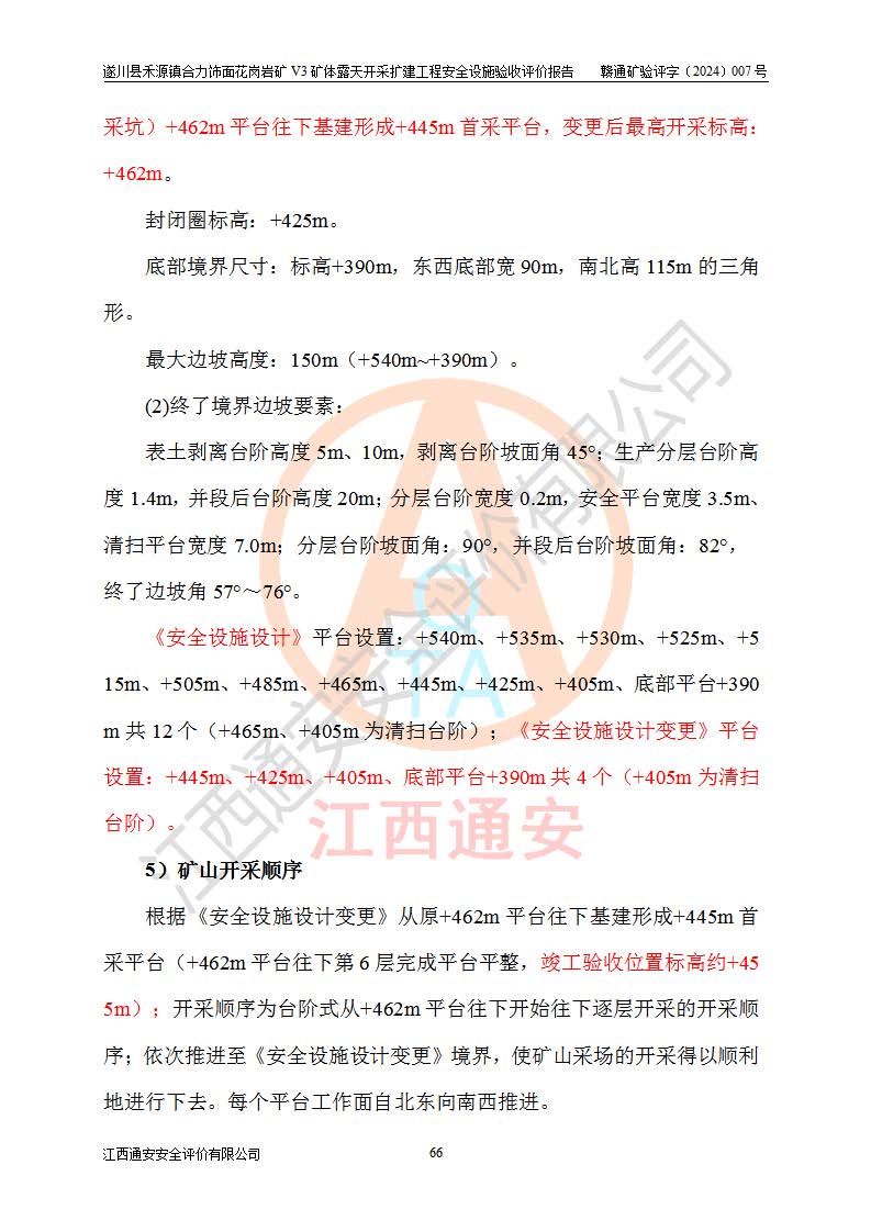 项目名称 | 遂川县禾源镇合力饰面花岗岩矿V3矿体露天开采扩建工程安全设施验收评价报告 | ||||