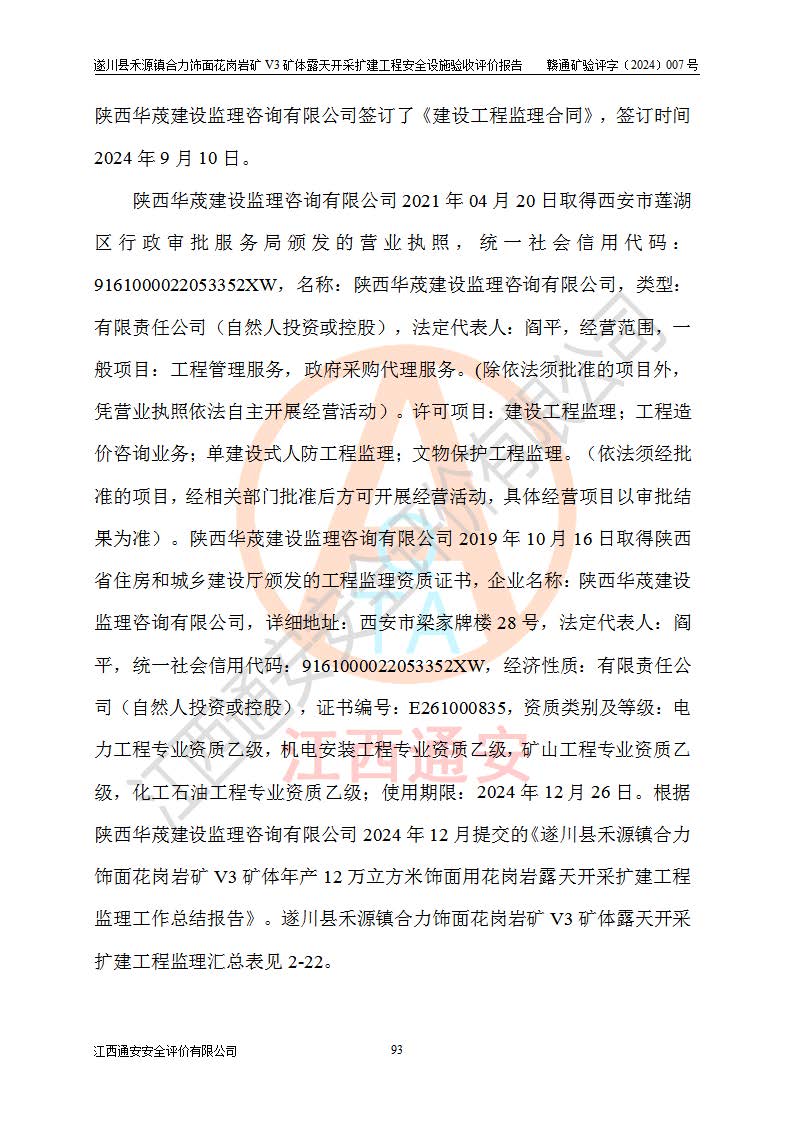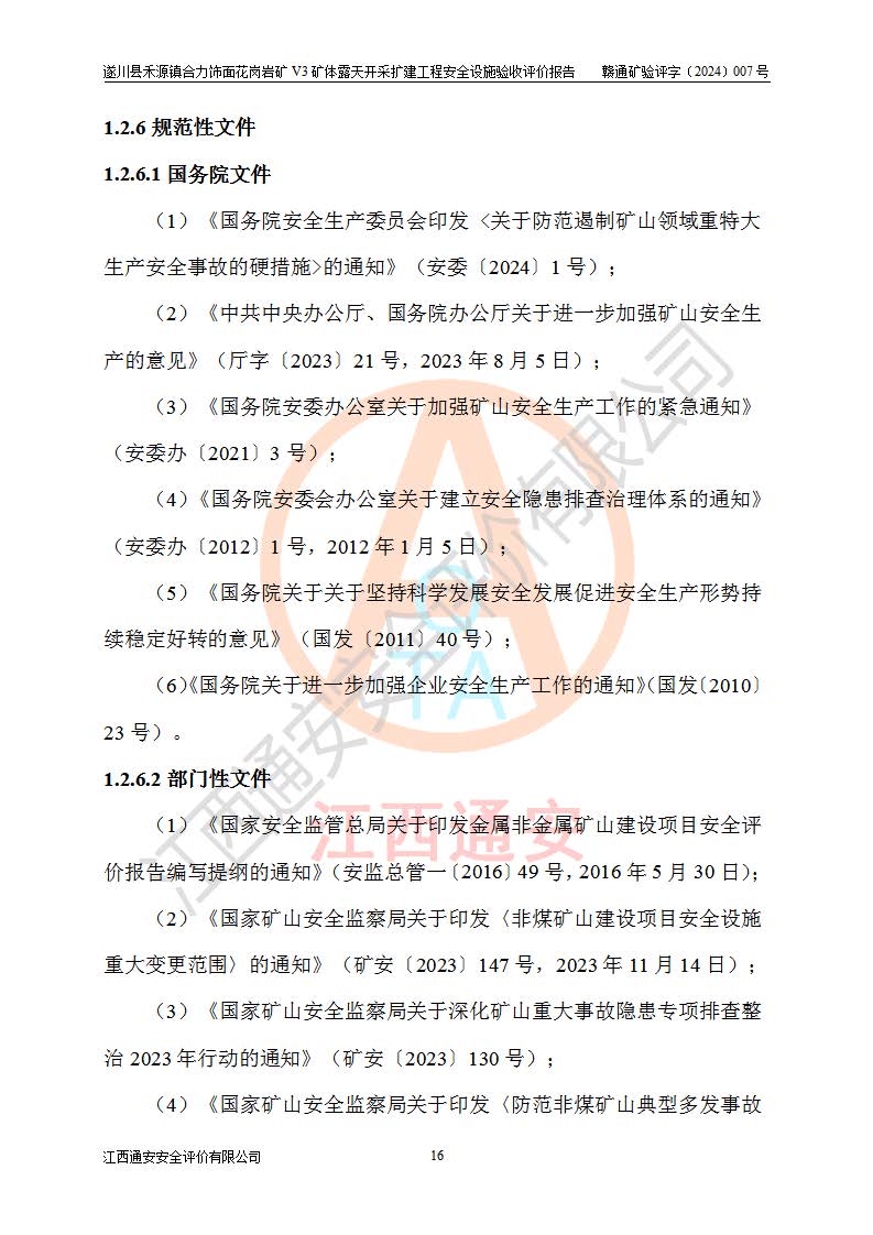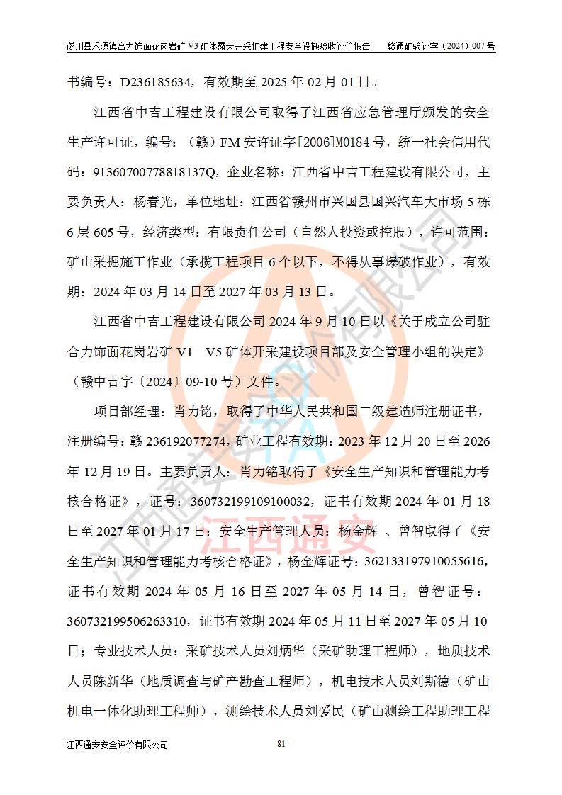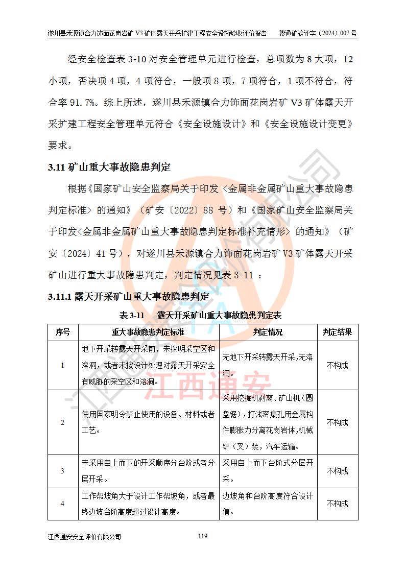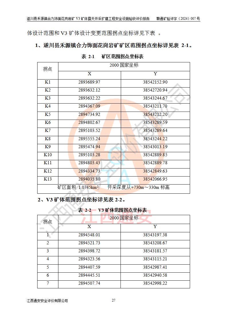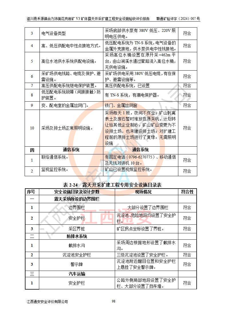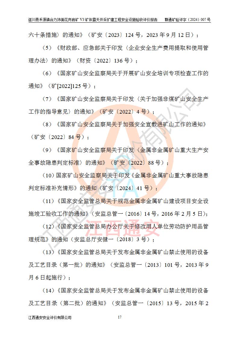 项目名称 | 遂川县禾源镇合力饰面花岗岩矿V3矿体露天开采扩建工程安全设施验收评价报告 | ||||