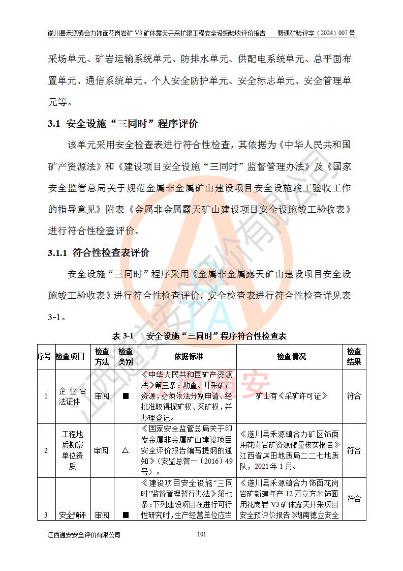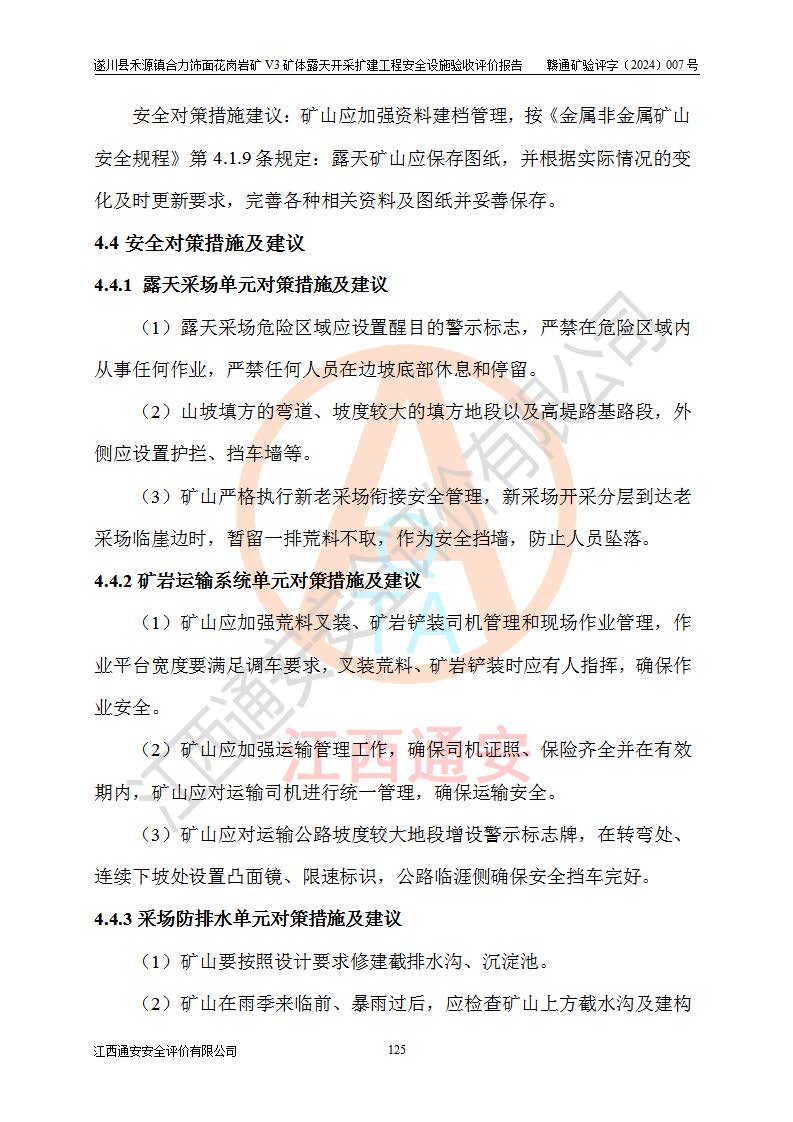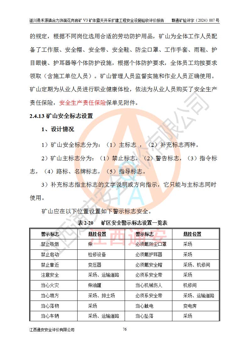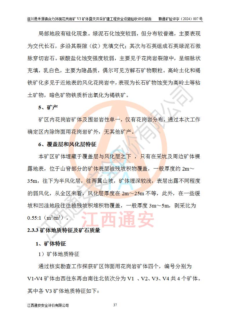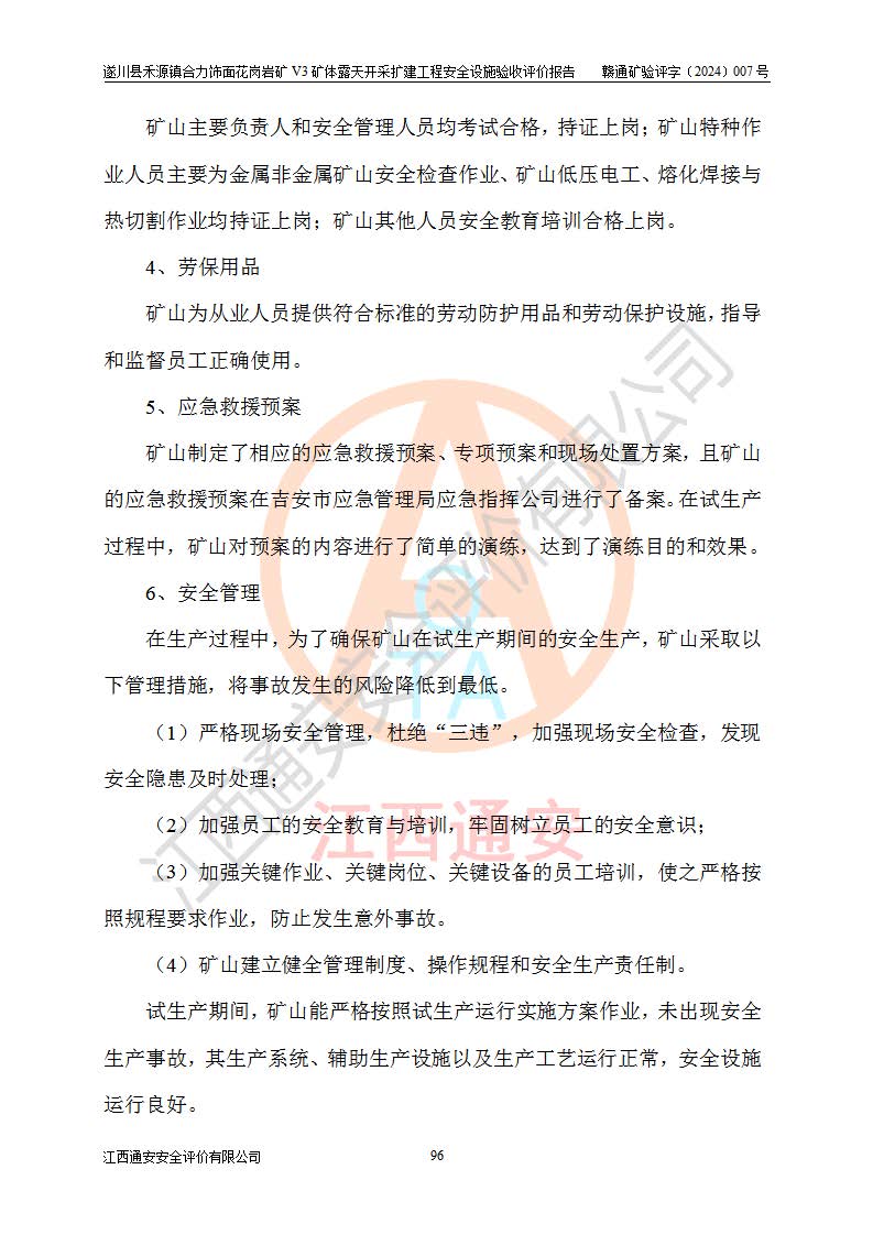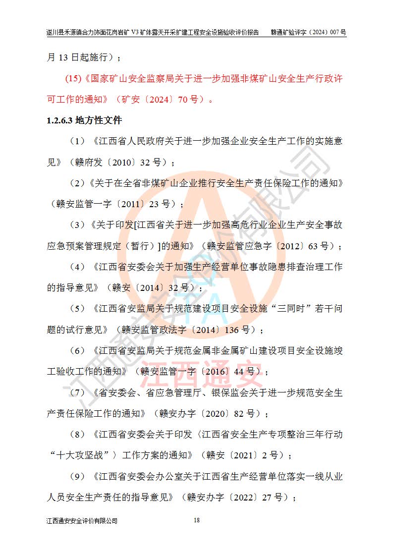 项目名称 | 遂川县禾源镇合力饰面花岗岩矿V3矿体露天开采扩建工程安全设施验收评价报告 | ||||
