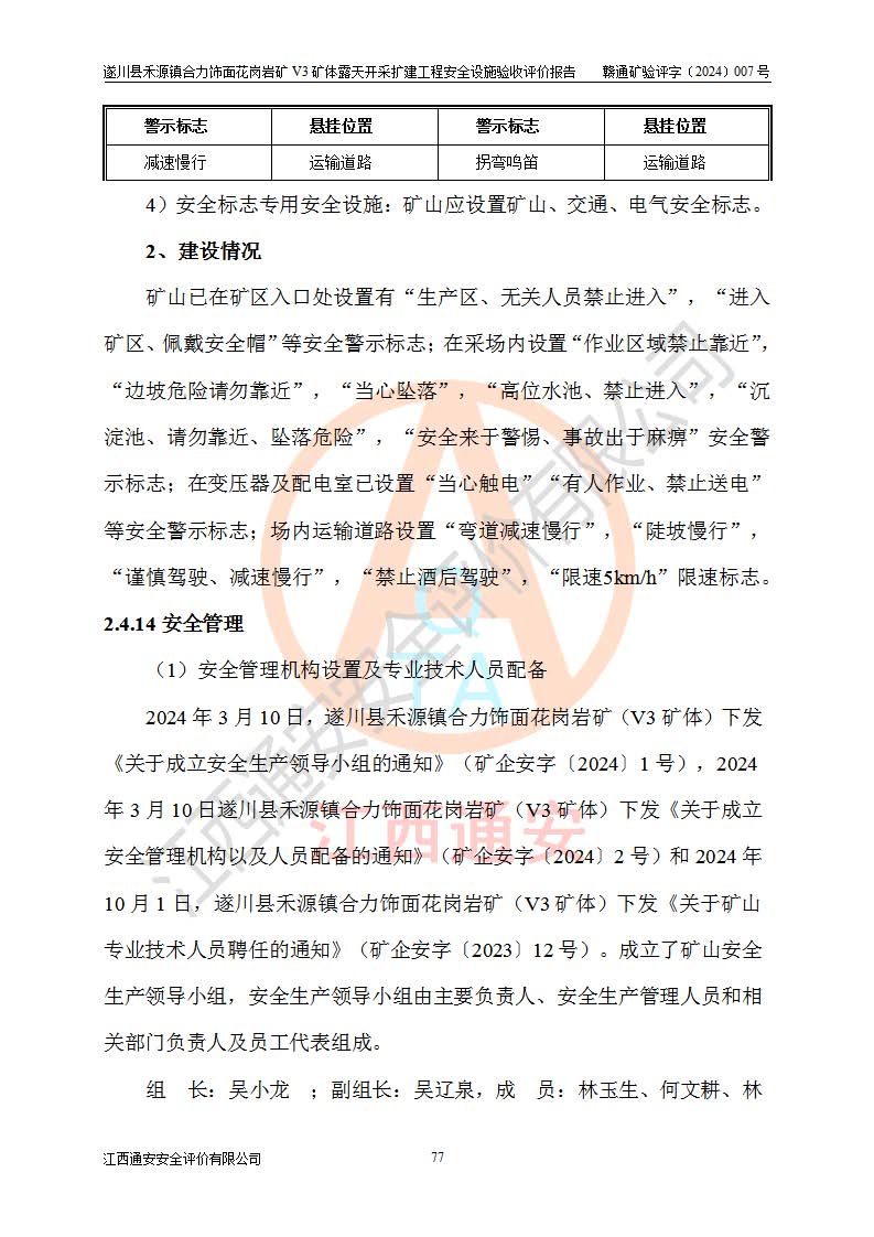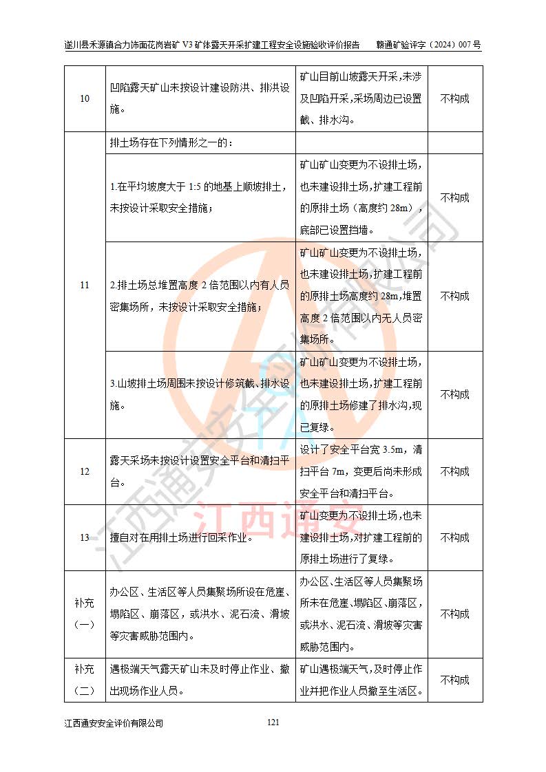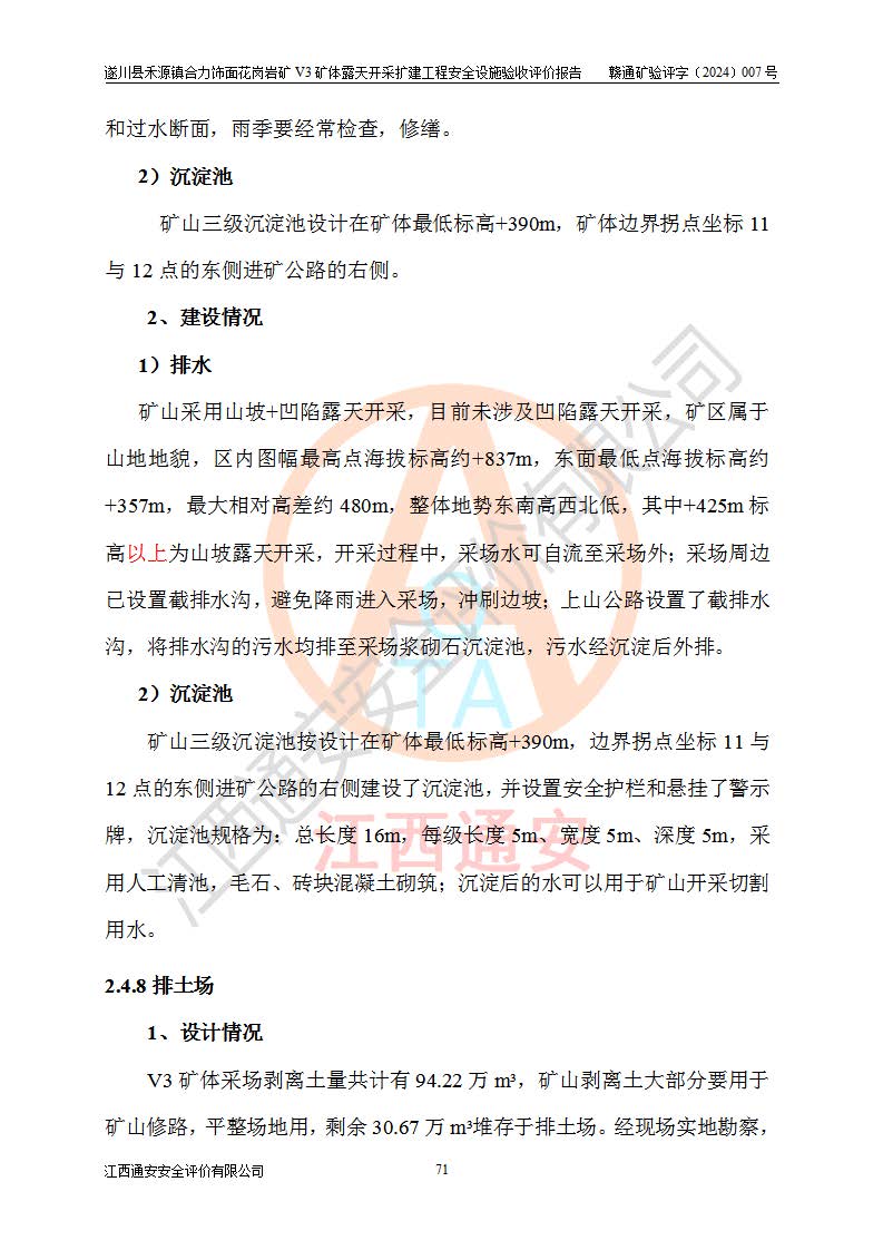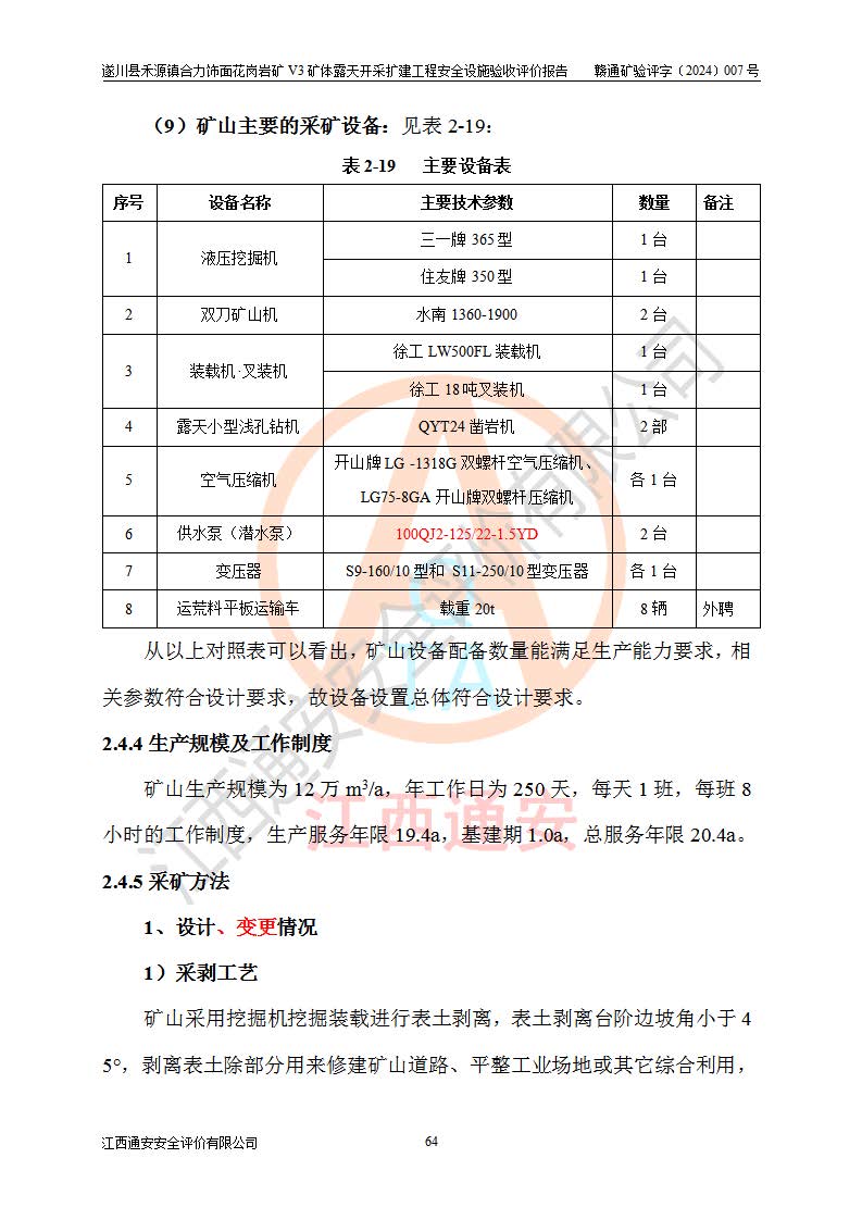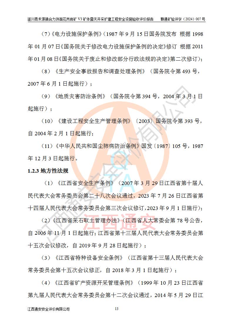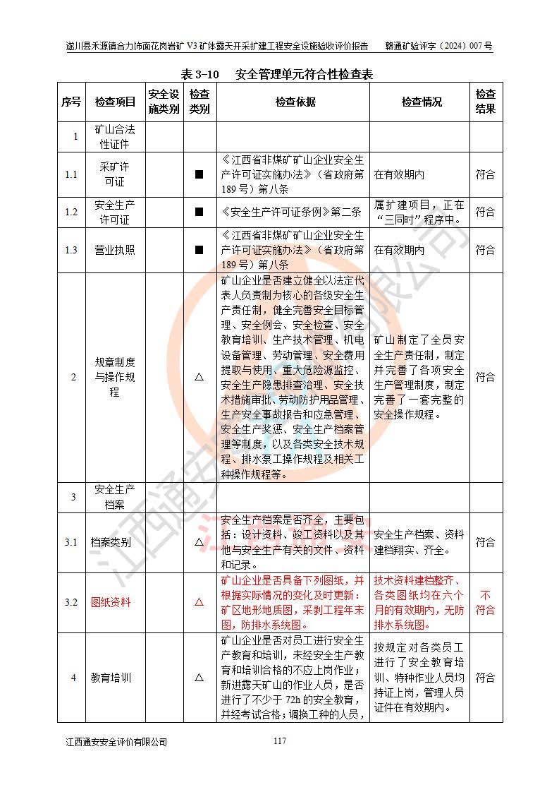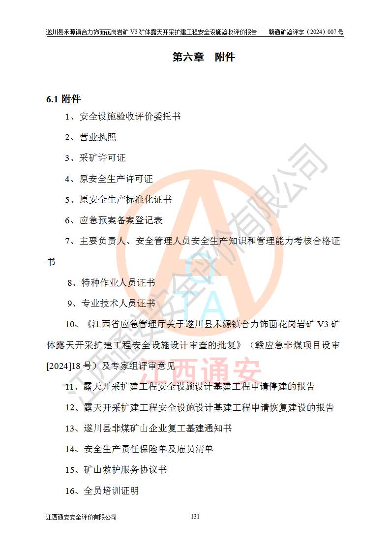 项目名称 | 遂川县禾源镇合力饰面花岗岩矿V3矿体露天开采扩建工程安全设施验收评价报告 | ||||